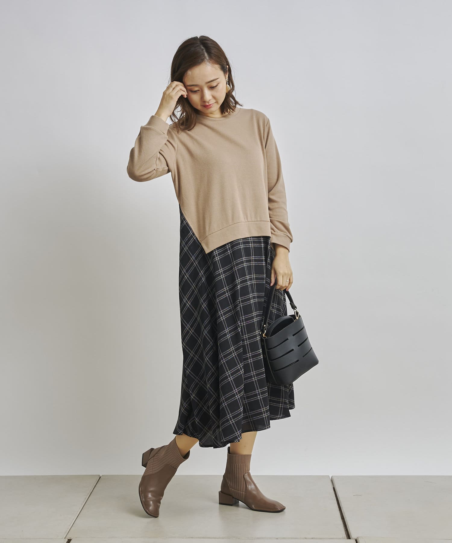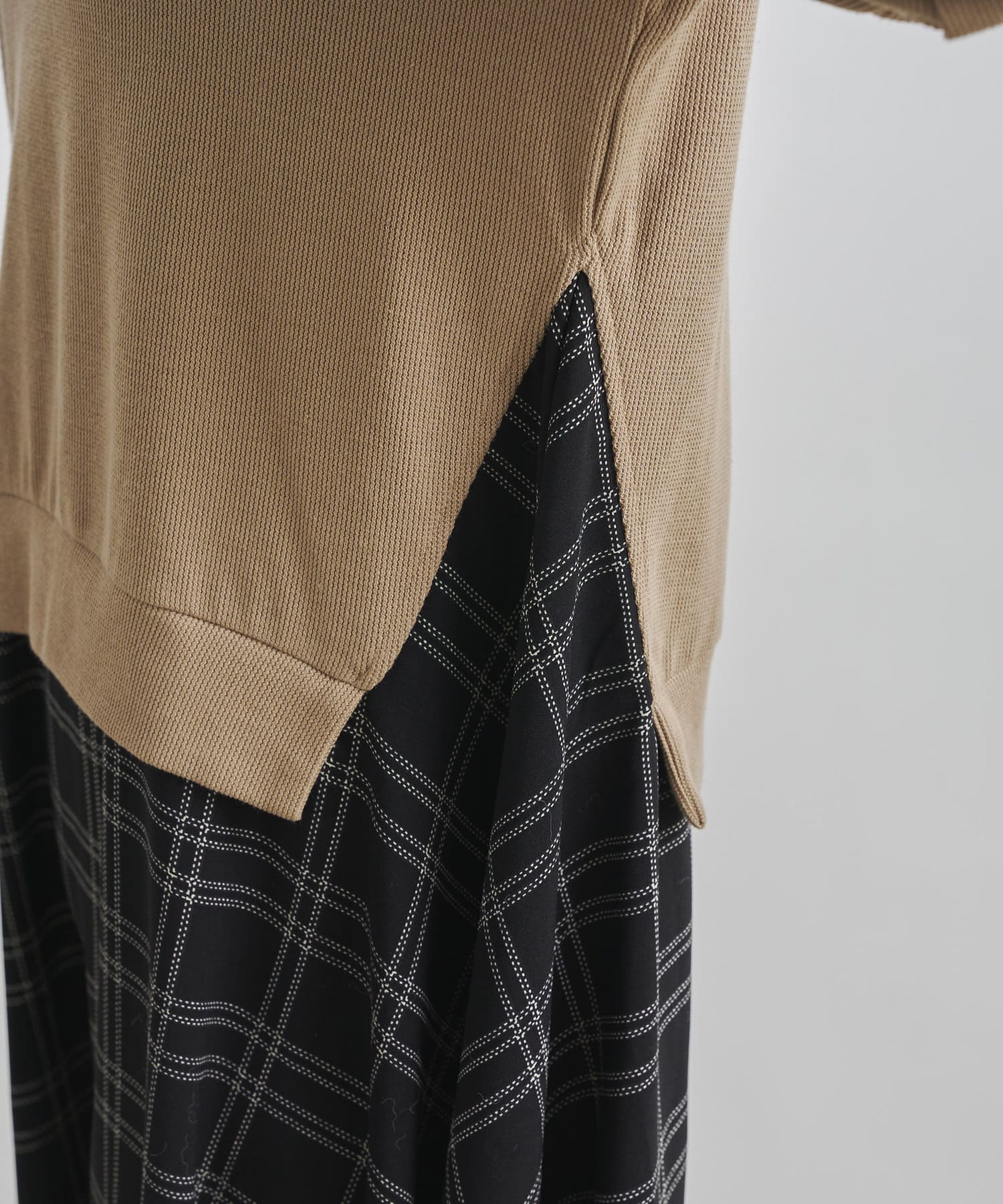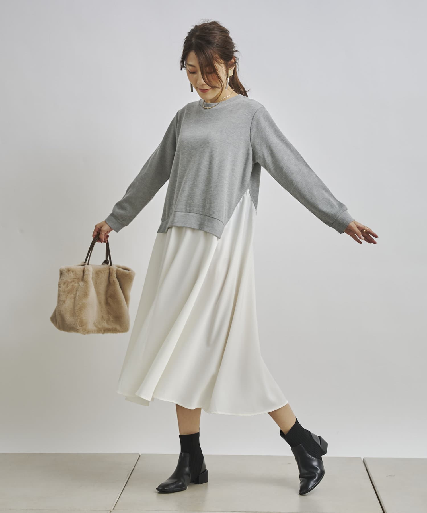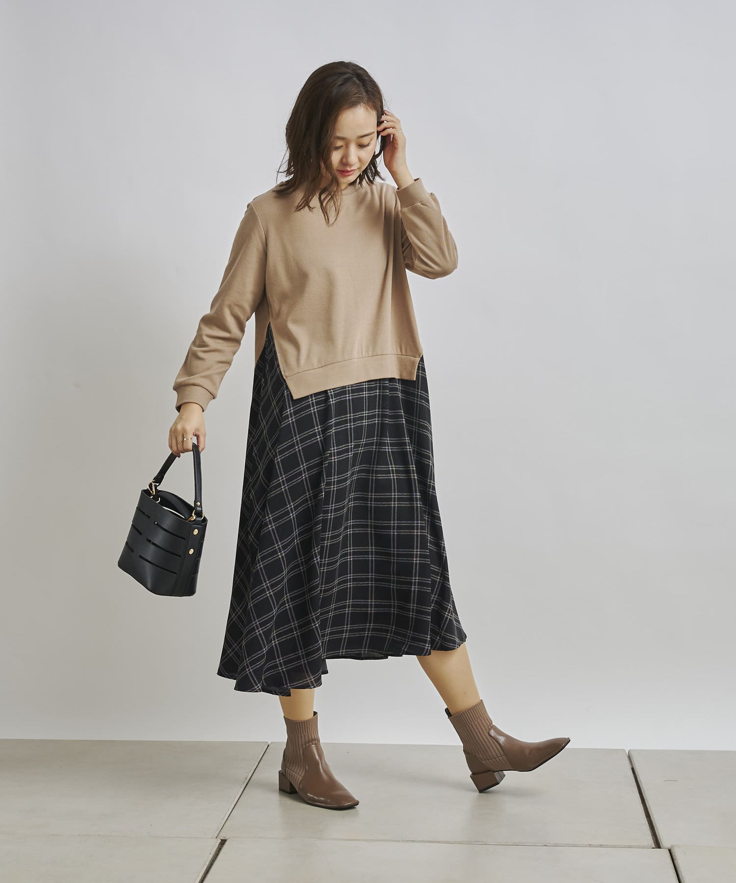 1枚でコーディネートが完成する時短アイテム!!ドッキングワンピースで楽にこなれた印象に