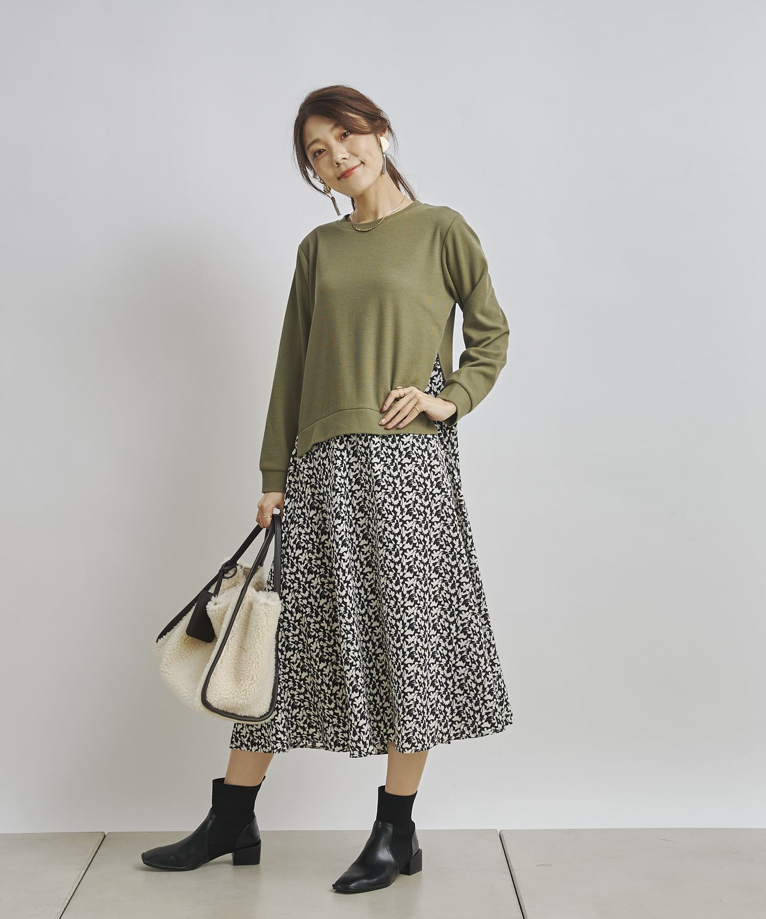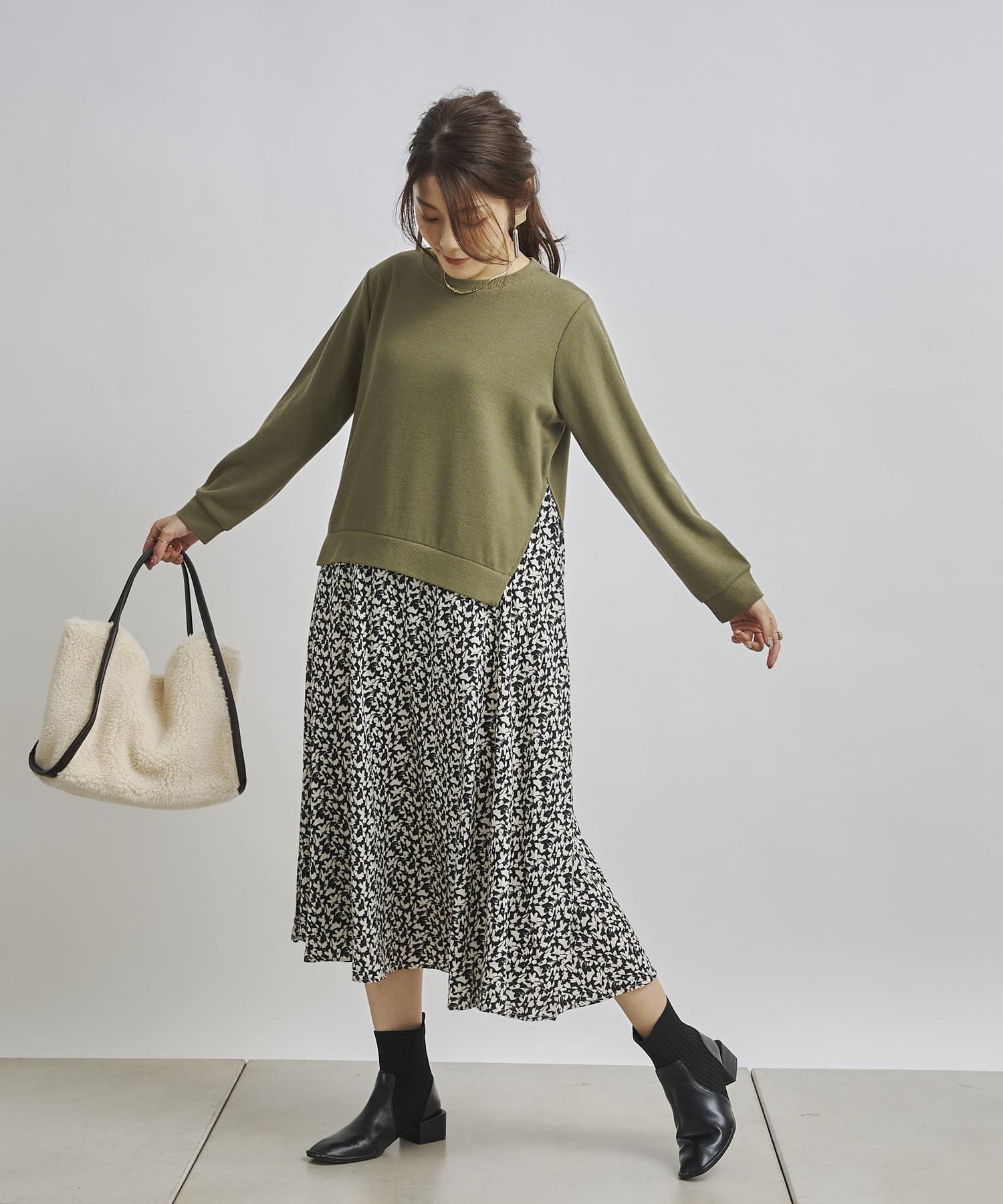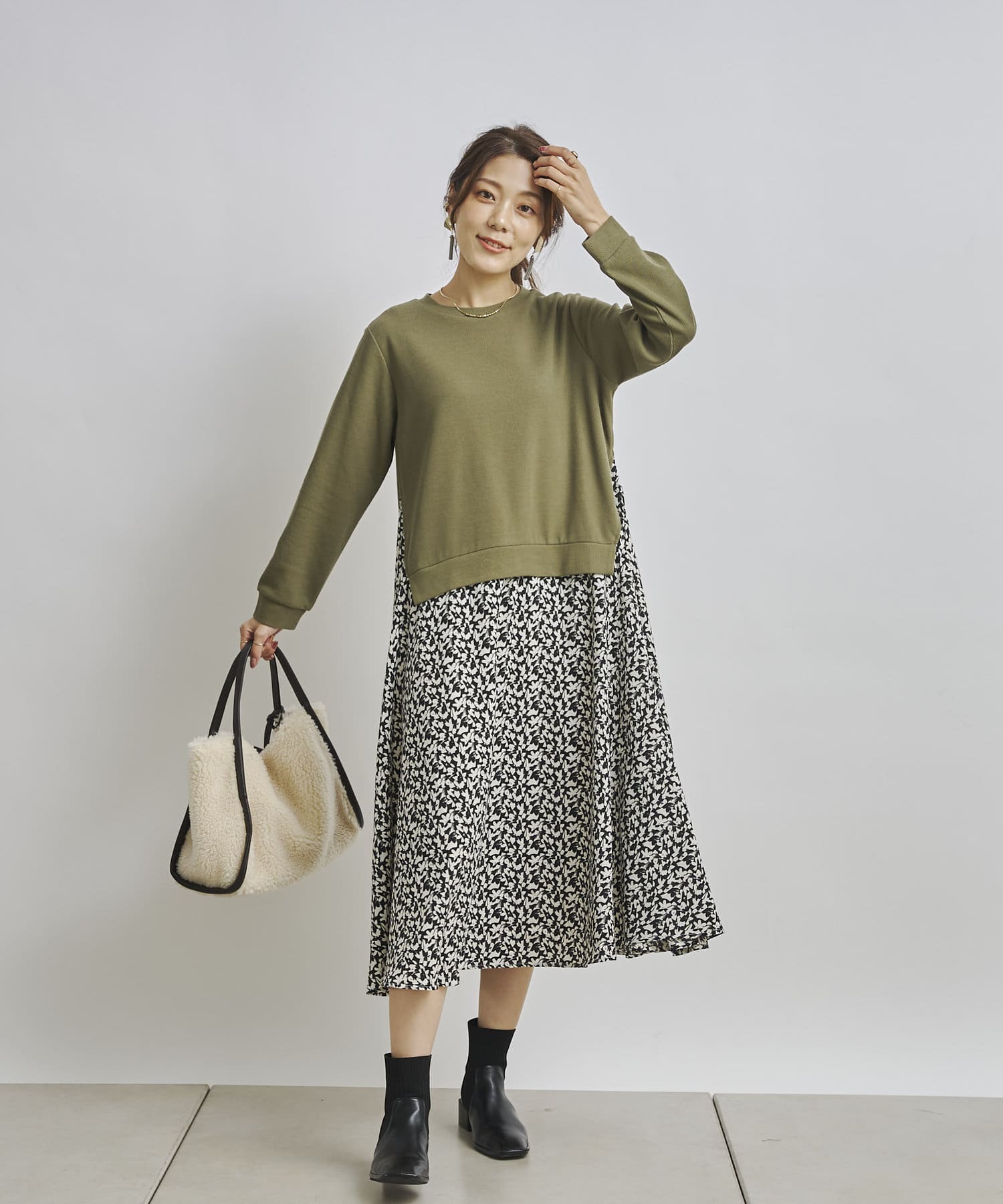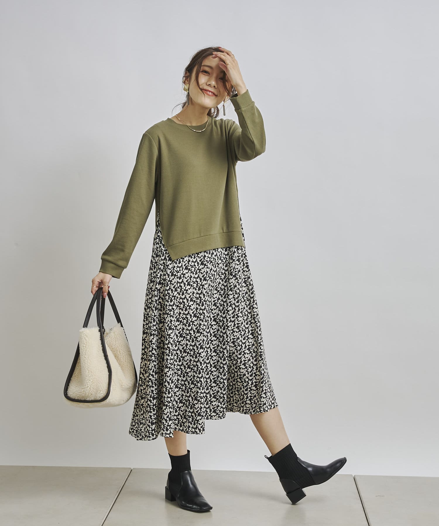 1枚でコーディネートが完成する時短アイテム!!ドッキングワンピースで楽にこなれた印象に