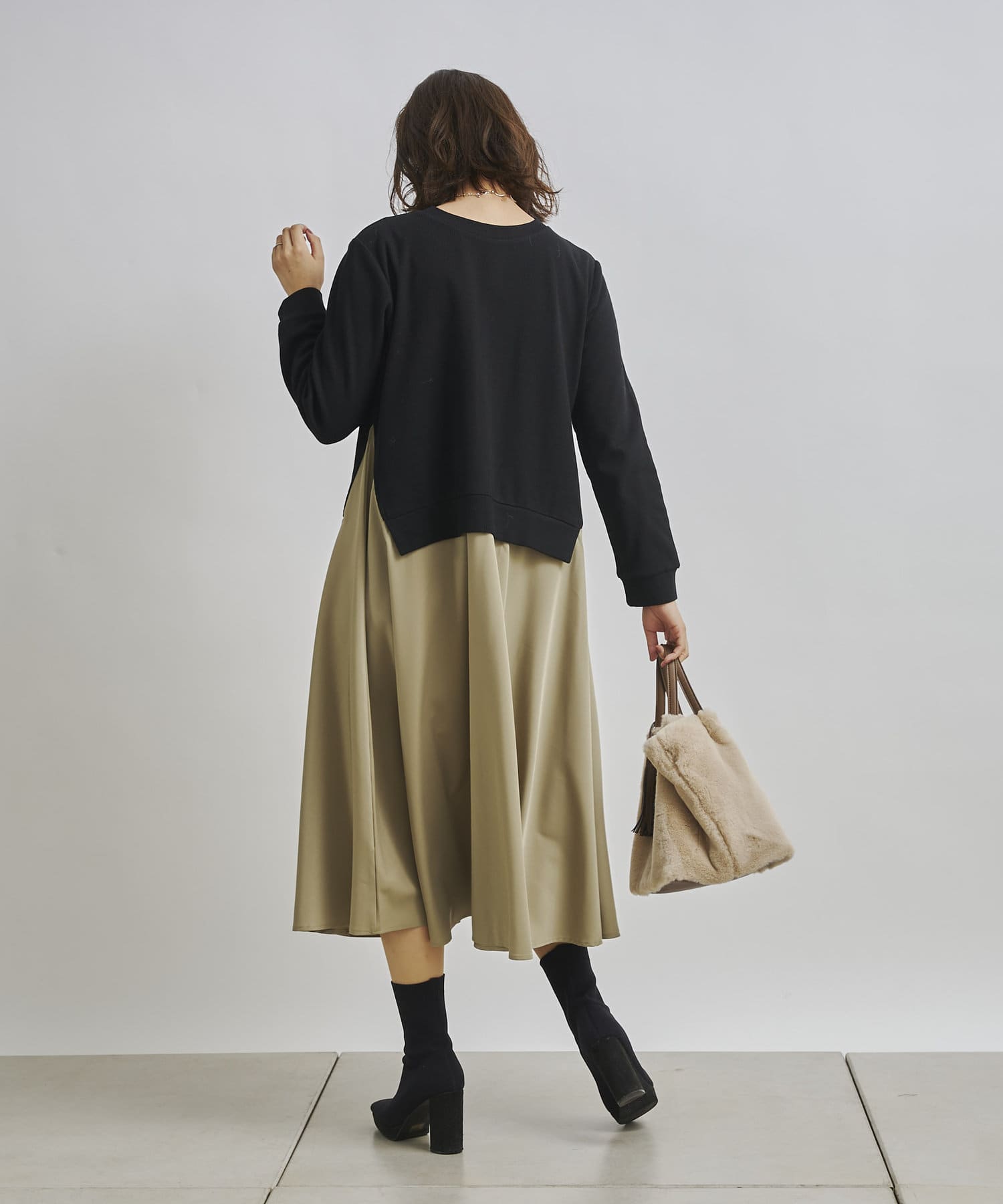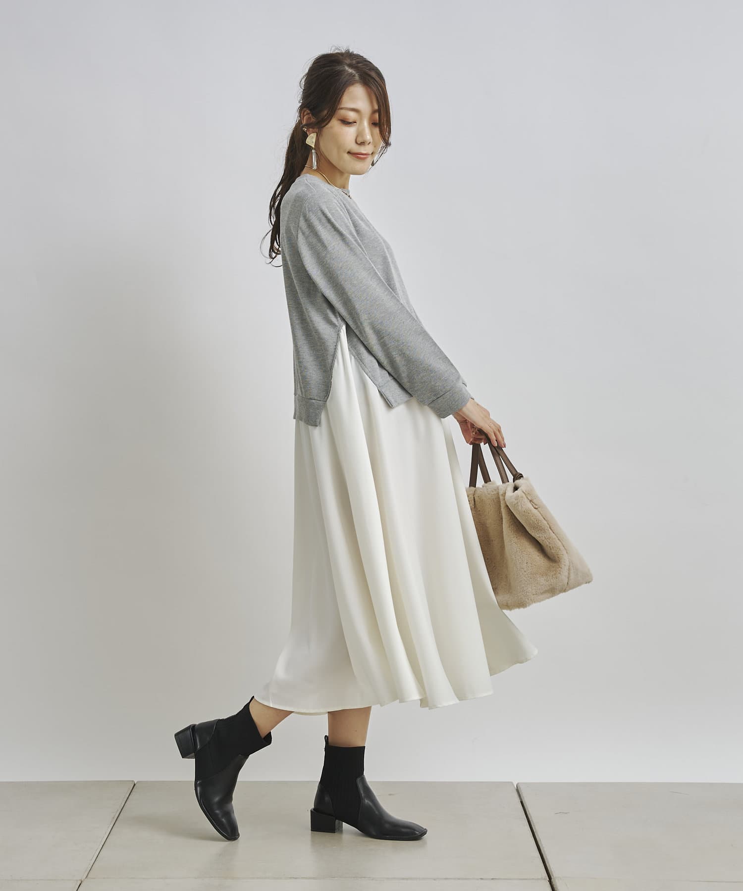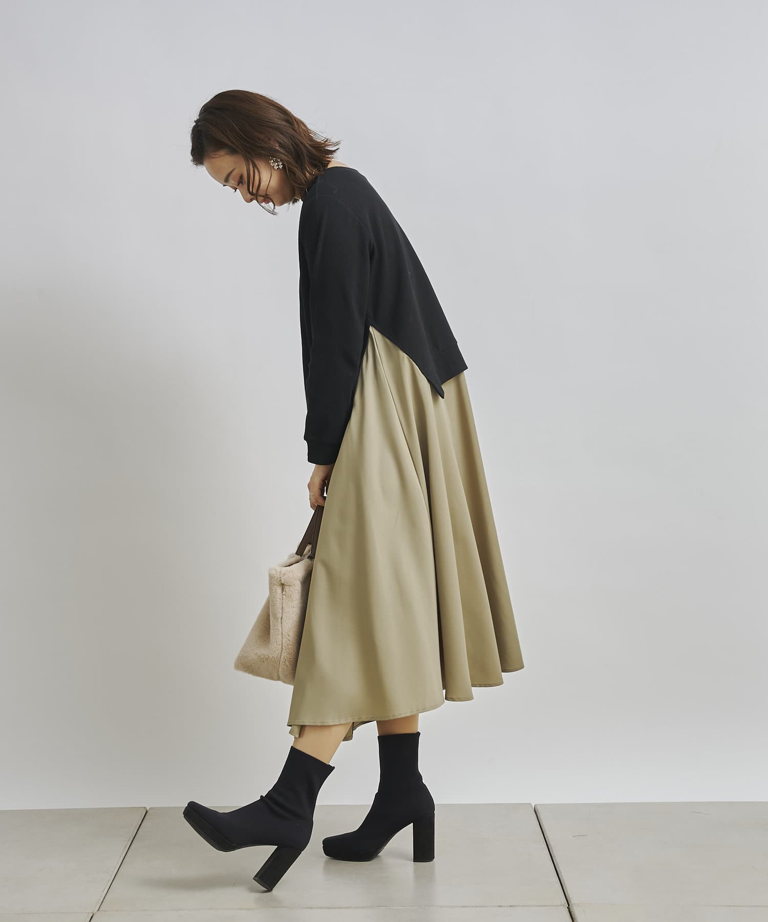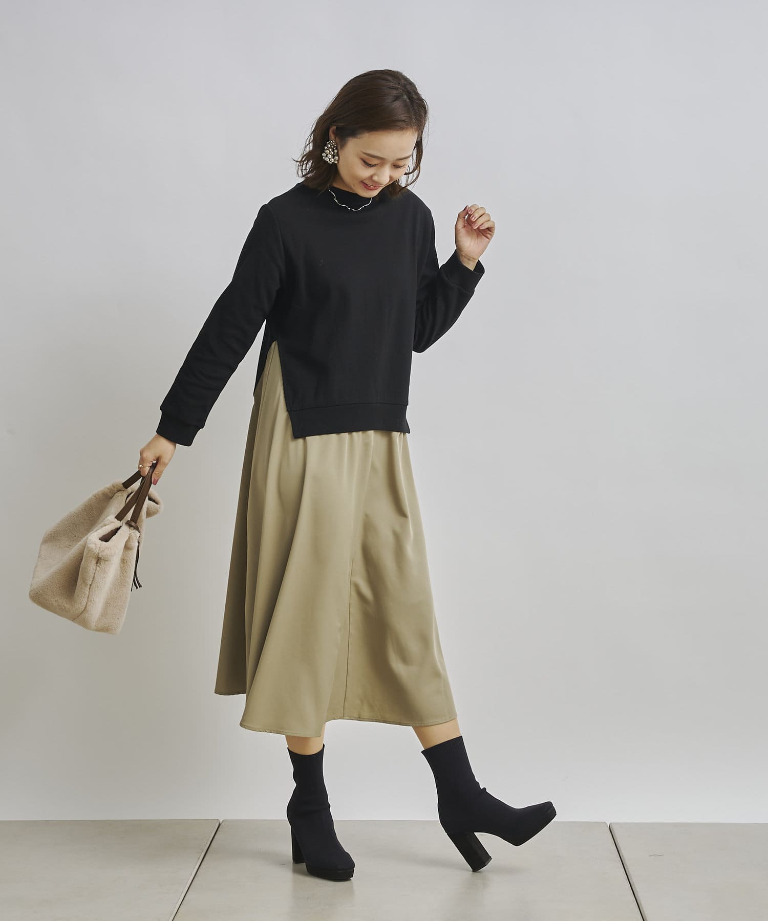 1枚でコーディネートが完成する時短アイテム!!ドッキングワンピースで楽にこなれた印象に