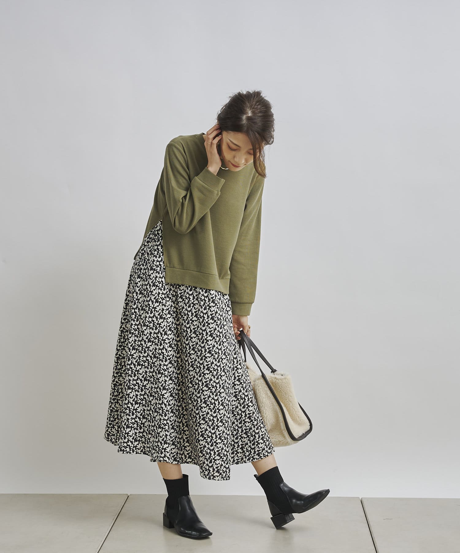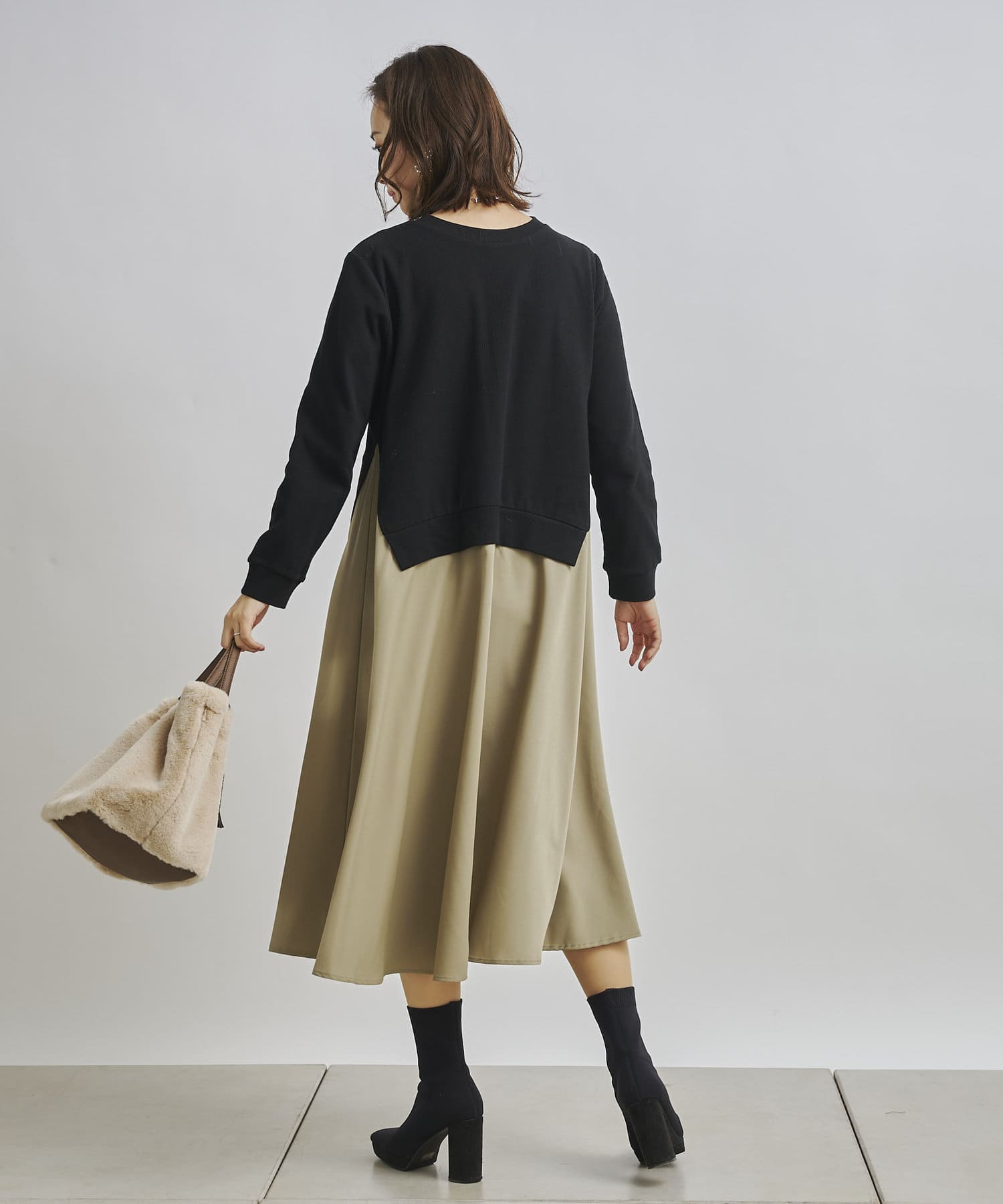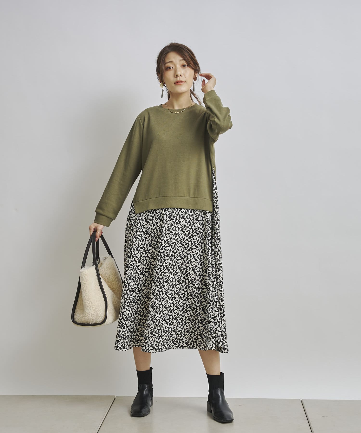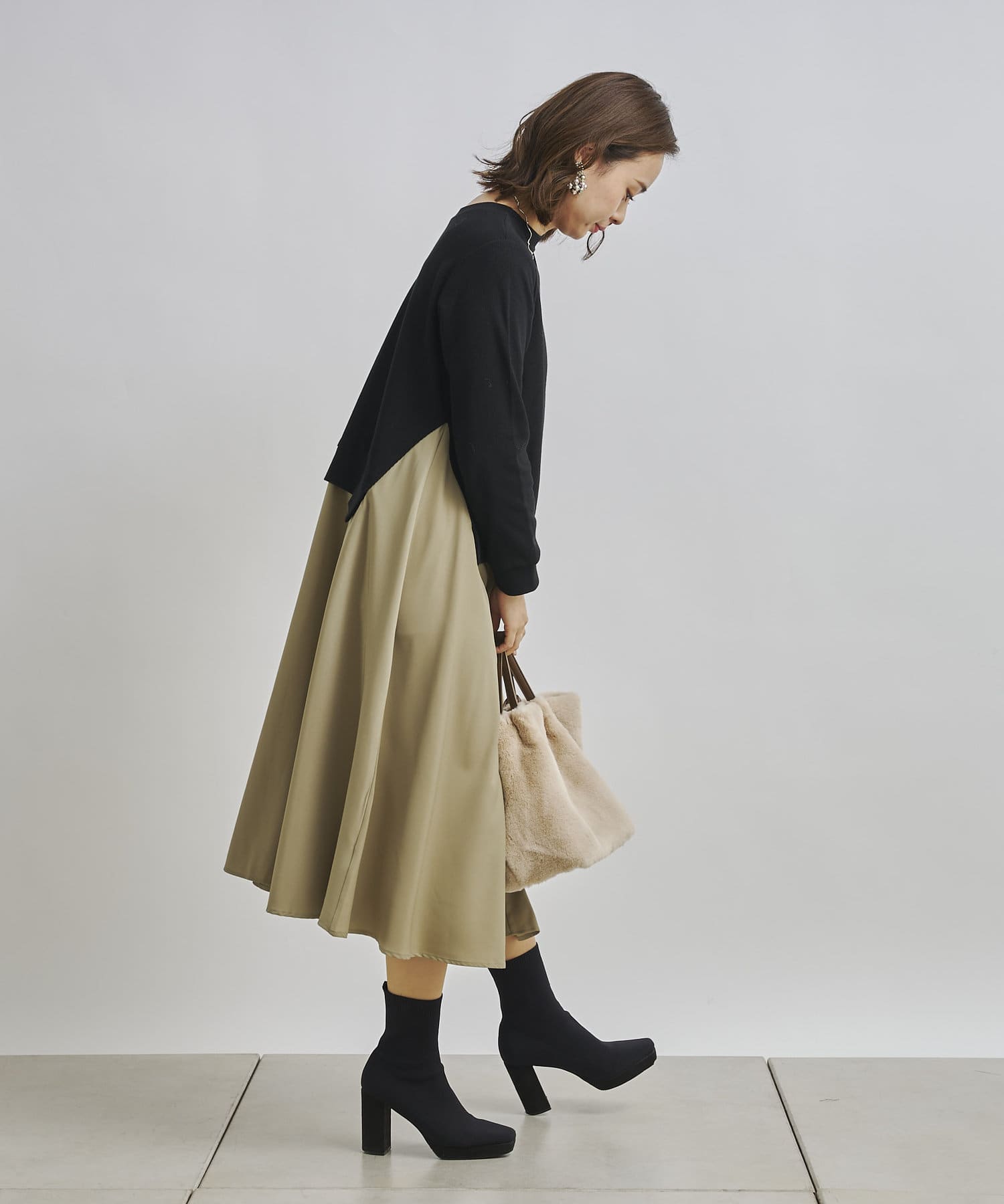1枚でコーディネートが完成する時短アイテム!!ドッキングワンピースで楽にこなれた印象に