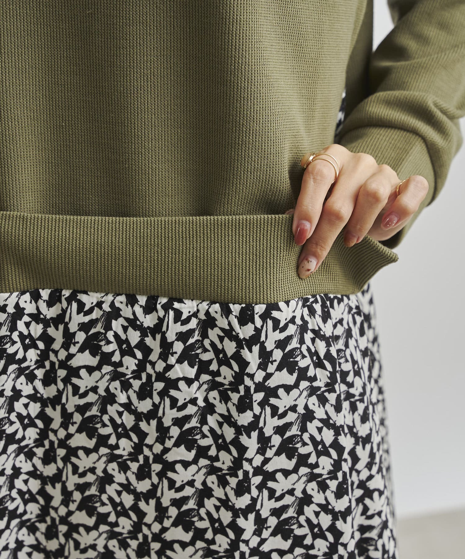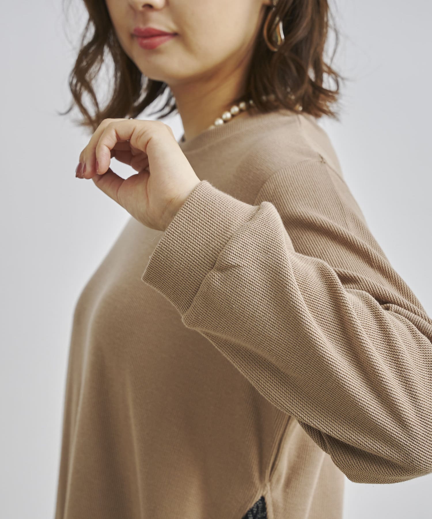 シルエットですが、異素材になっているのでメリハリもでます。
