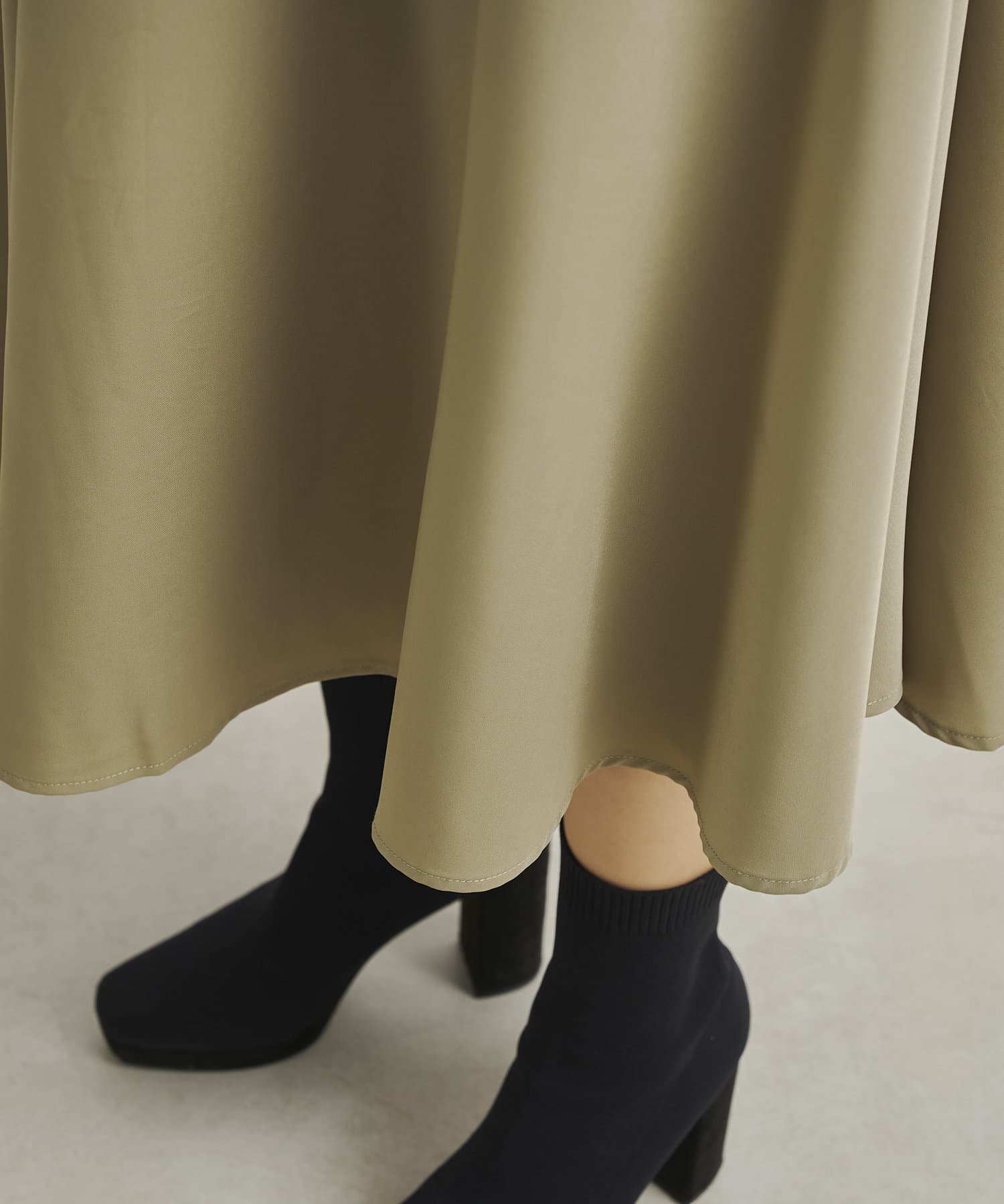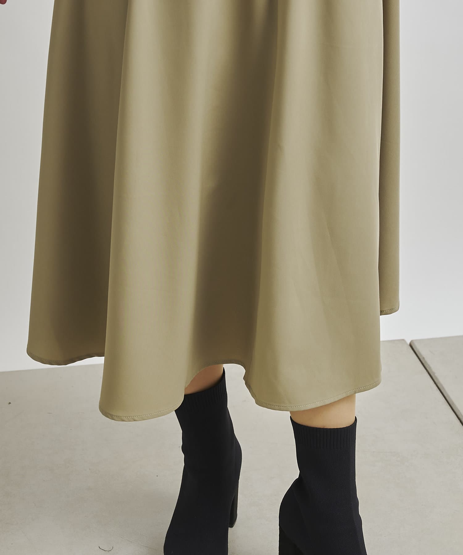 透け感:カーキの色はスカート部分が白なので透け感がでます。