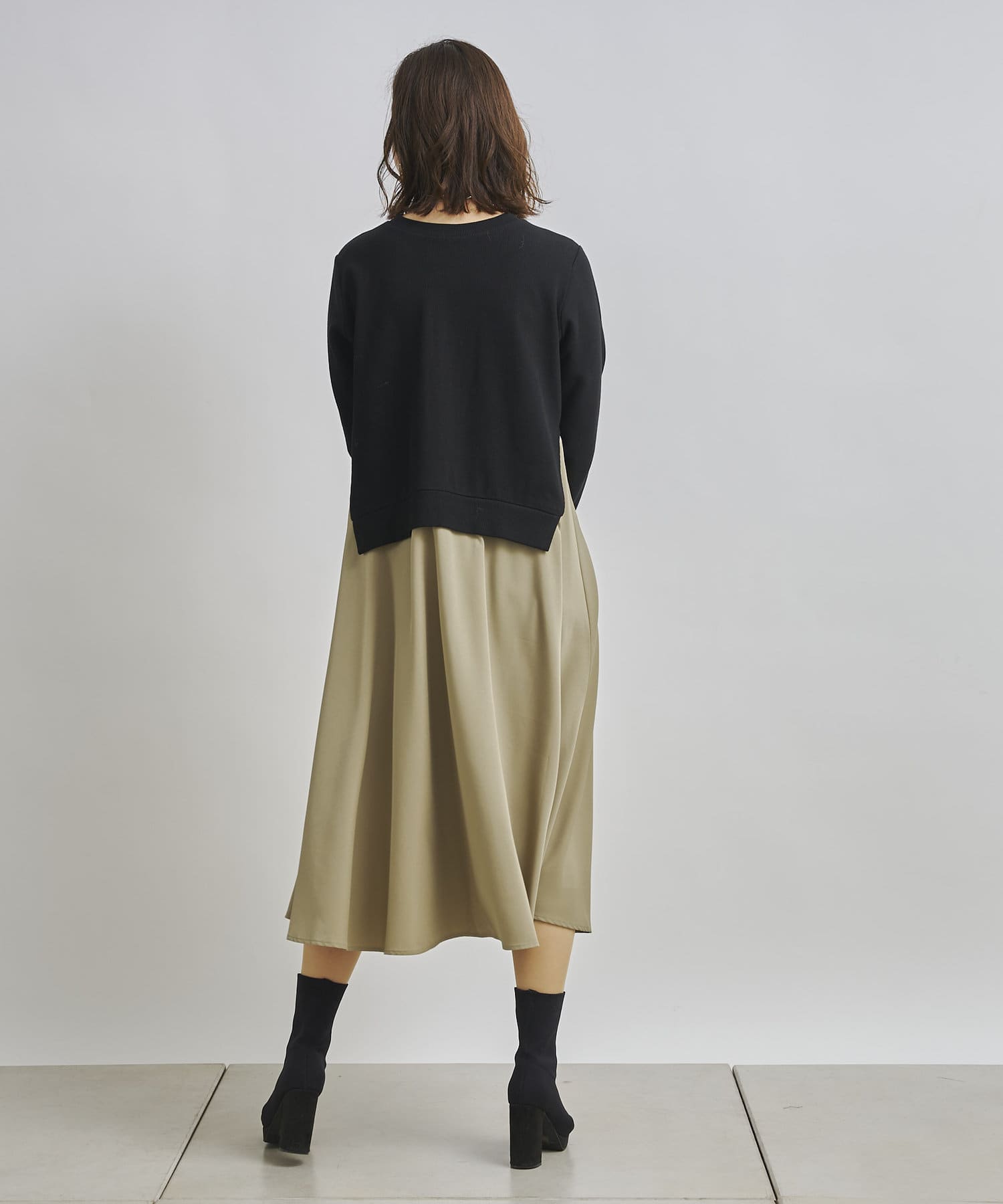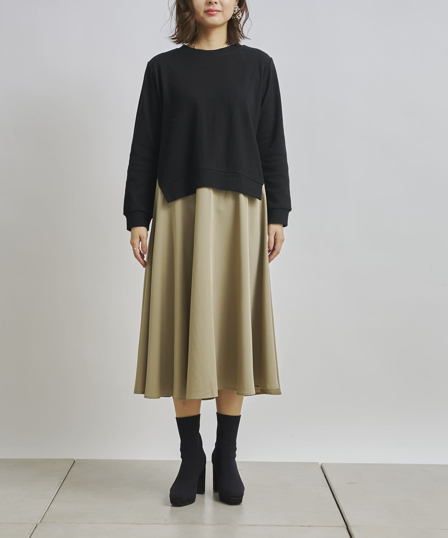 トップスとスカートを合わせてようなドッキングデザイン。 Aラインでゆったりした