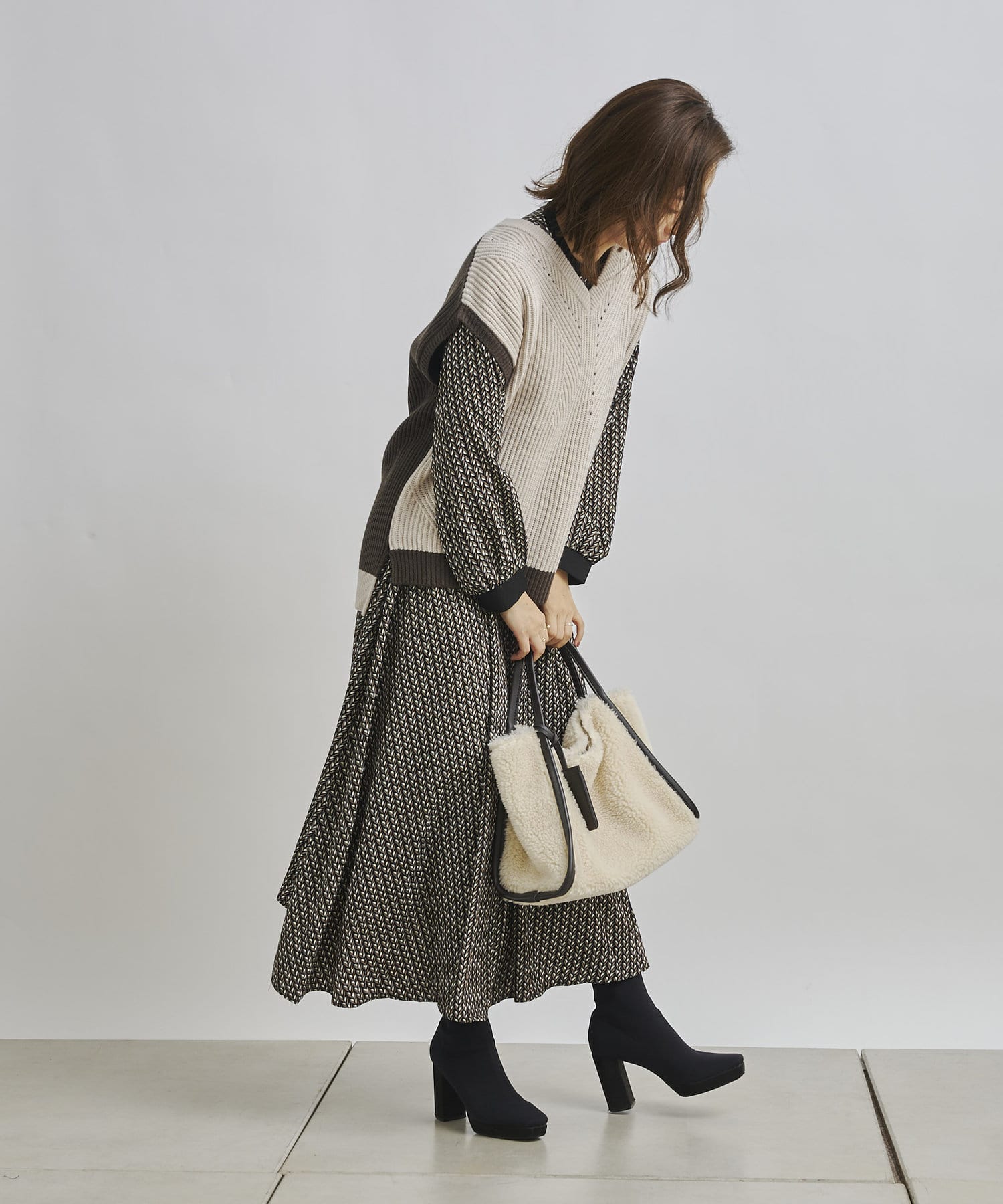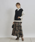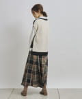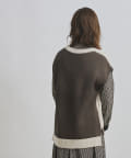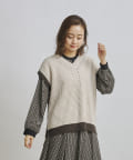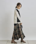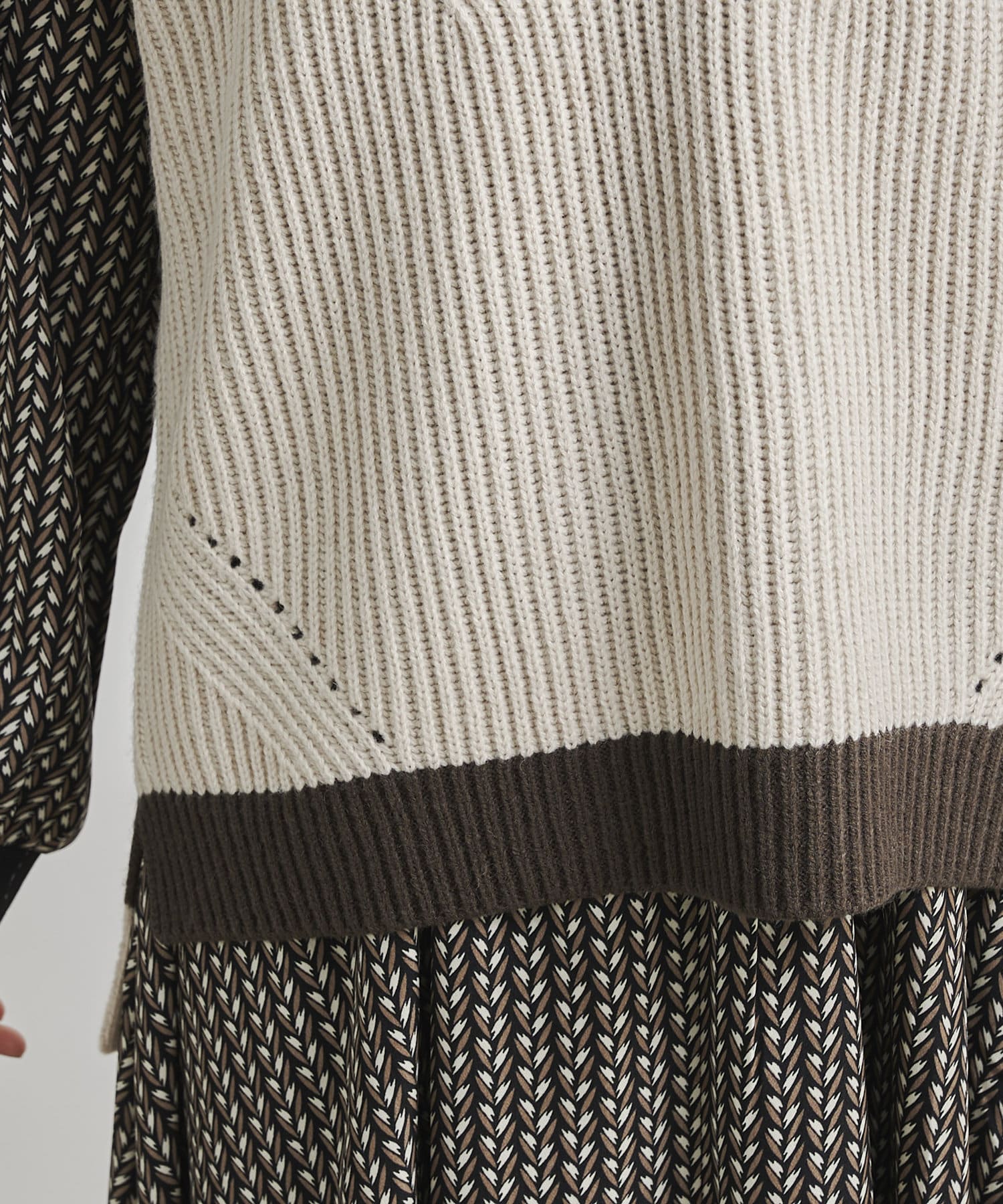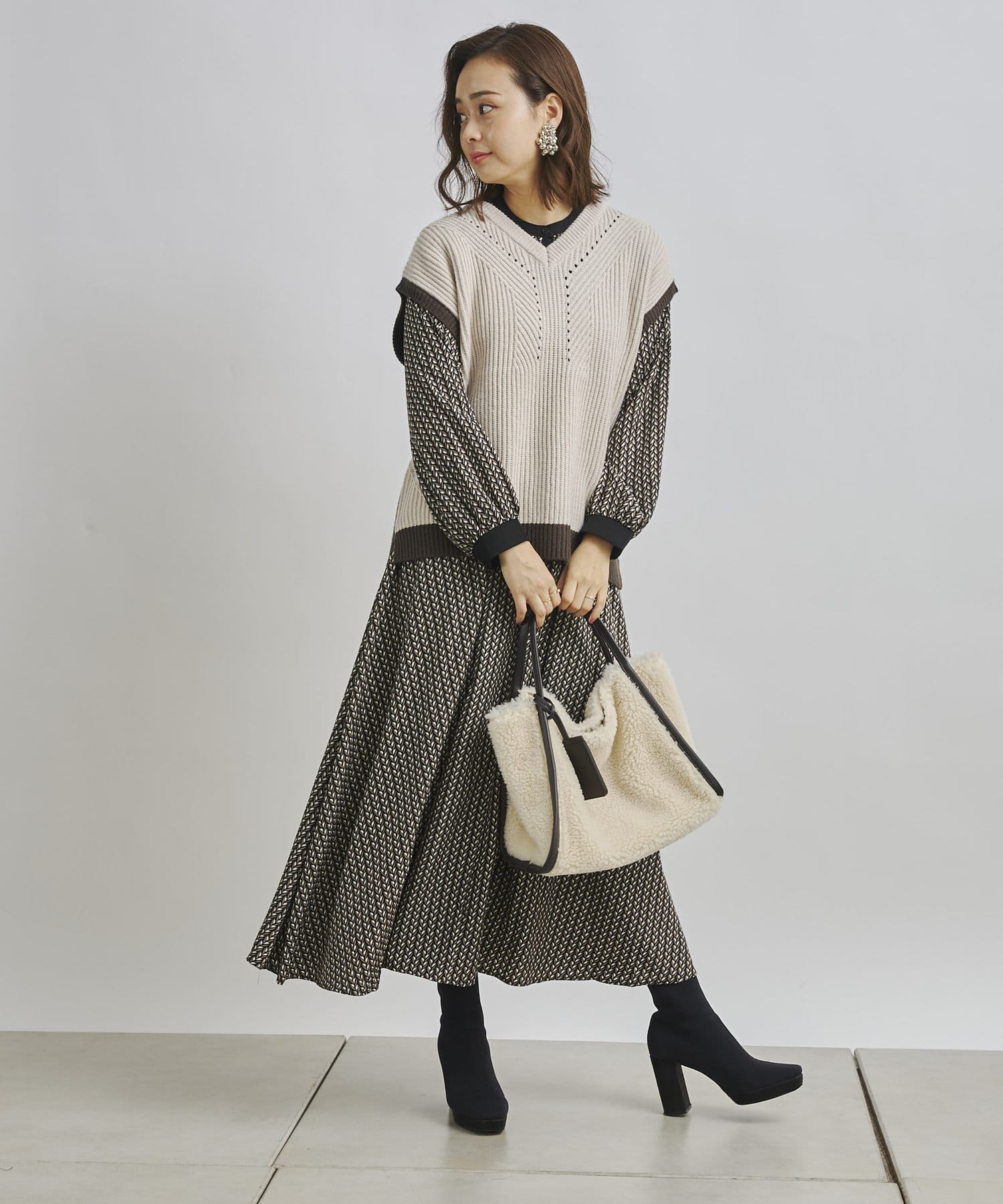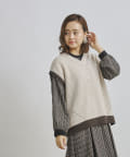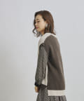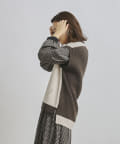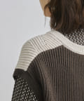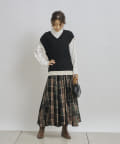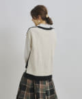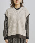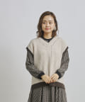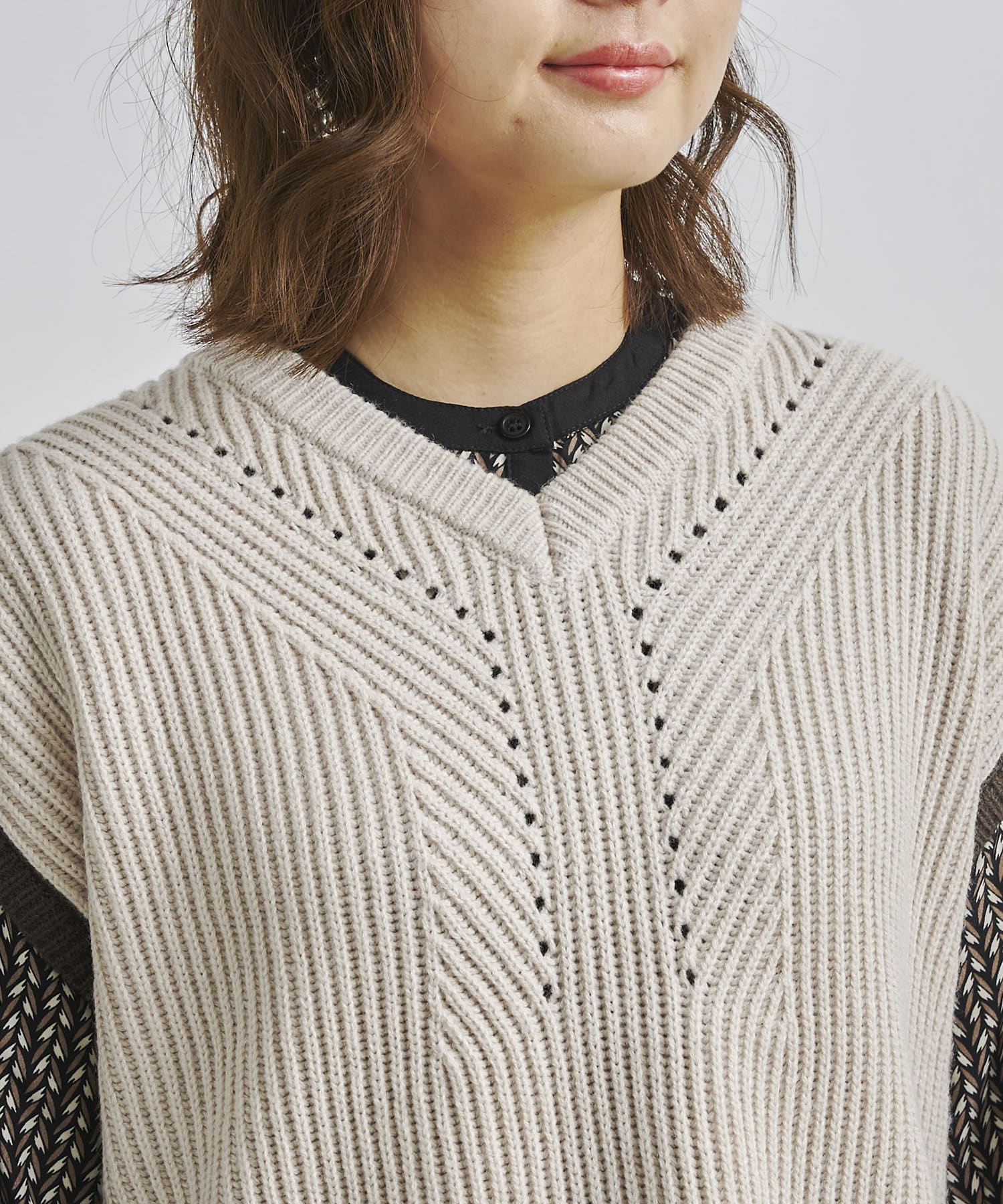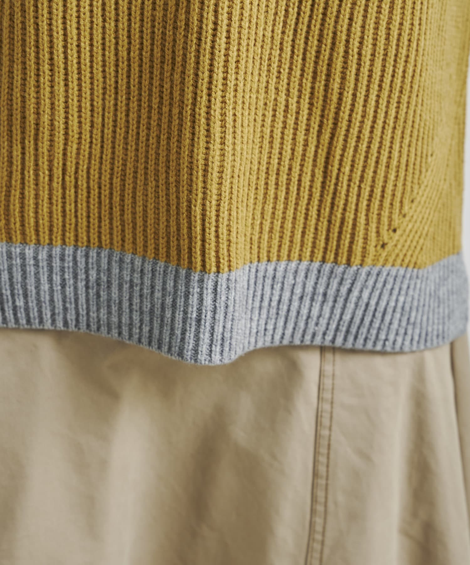 ・バイカラーになった今年らしいニットベスト。レイヤードするだけでこなれた印象に。