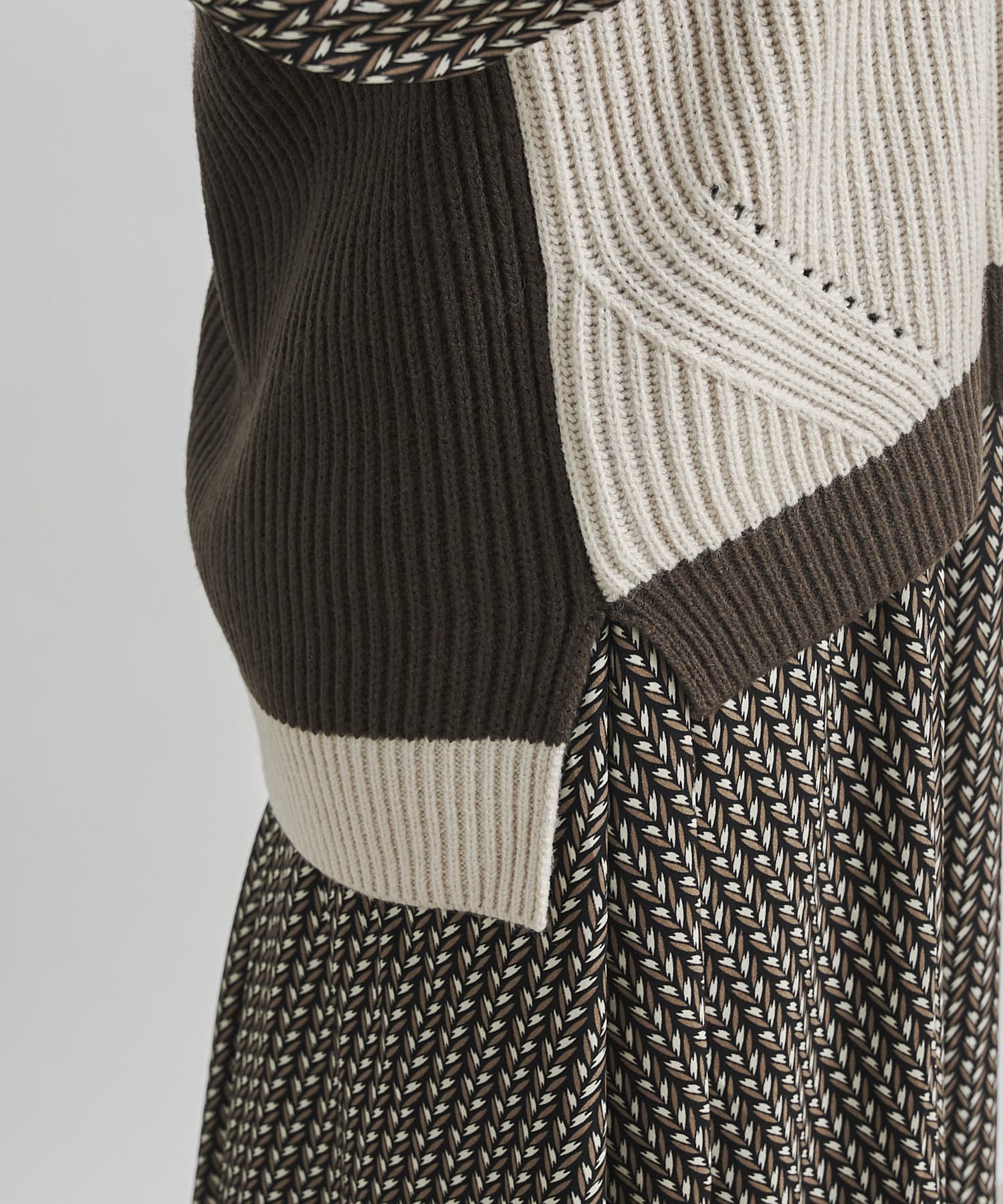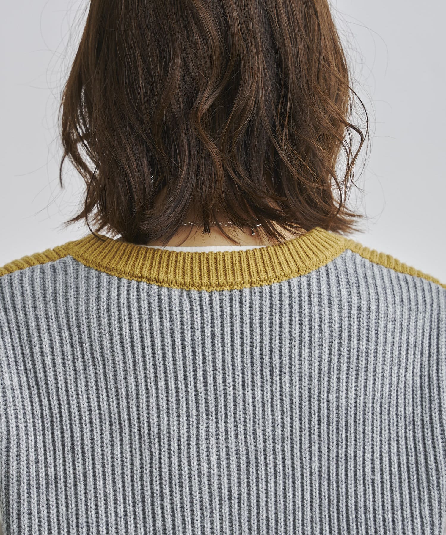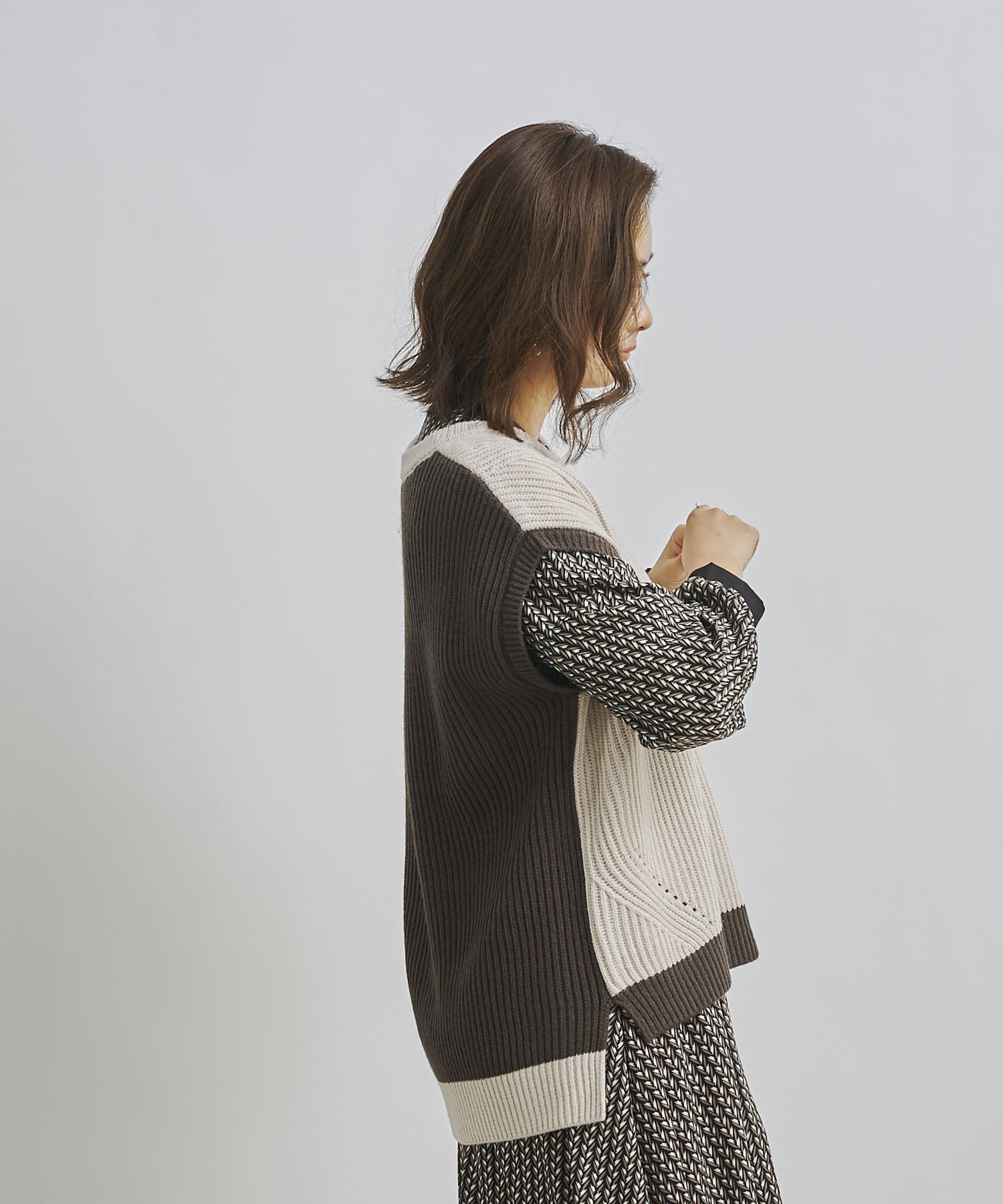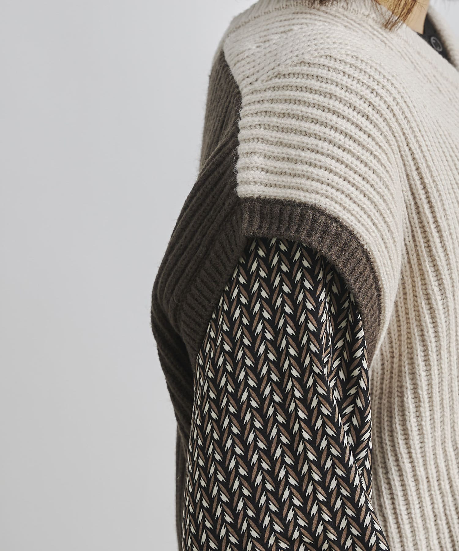 配色のバイカラーデザインのニットベスト 重ねるだけで旬な顔に