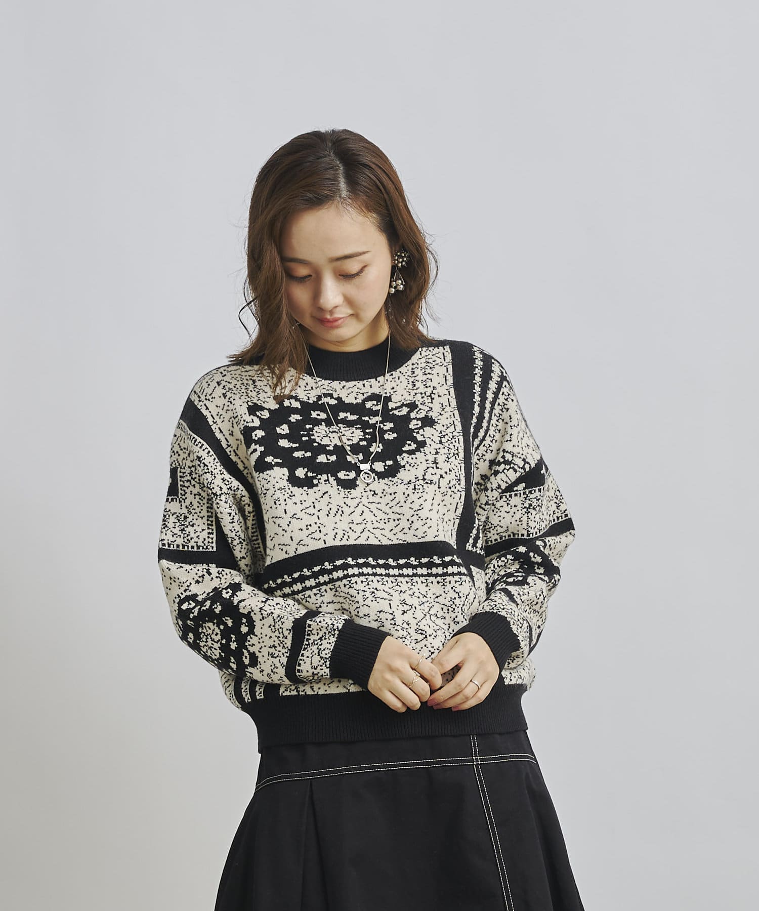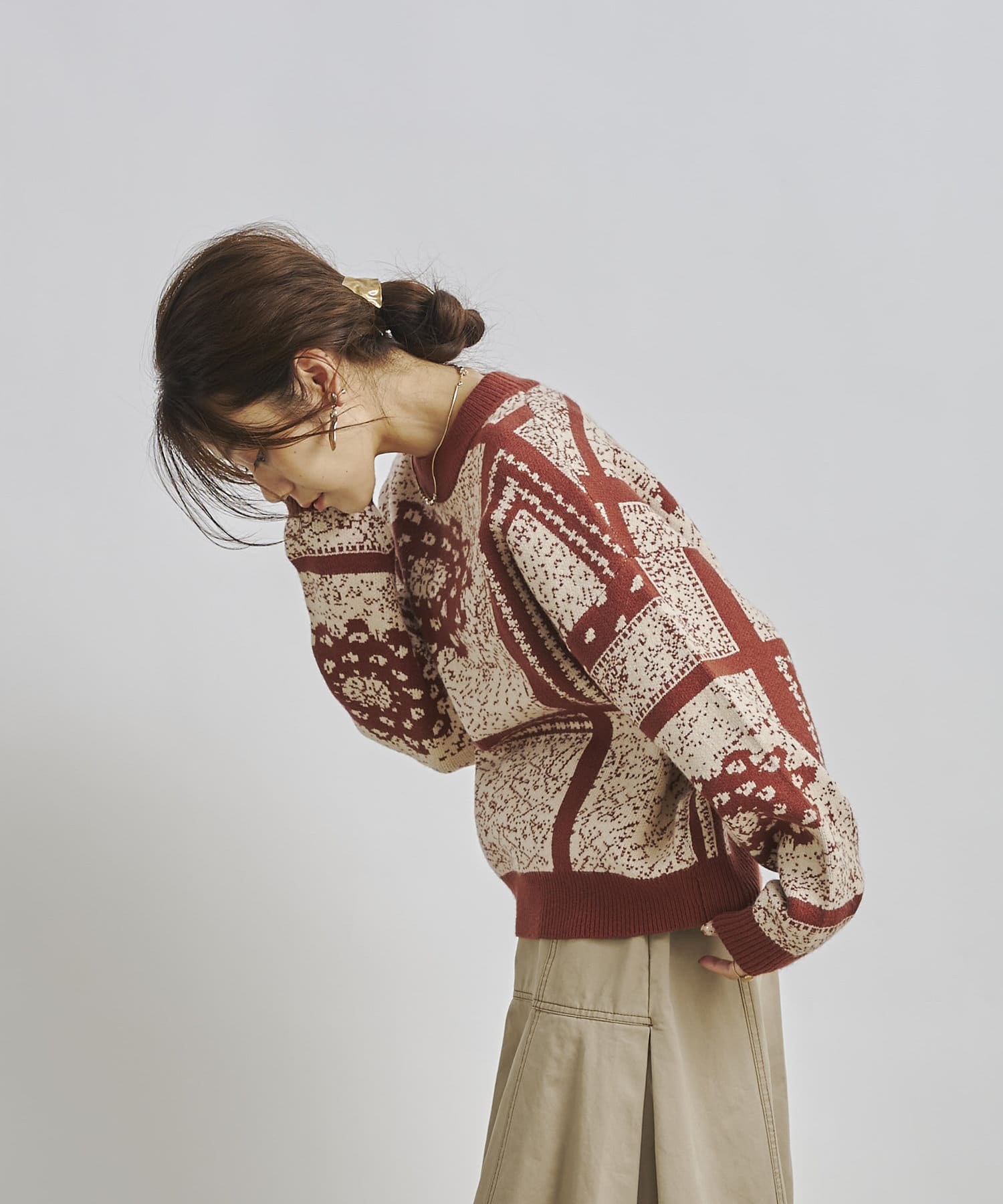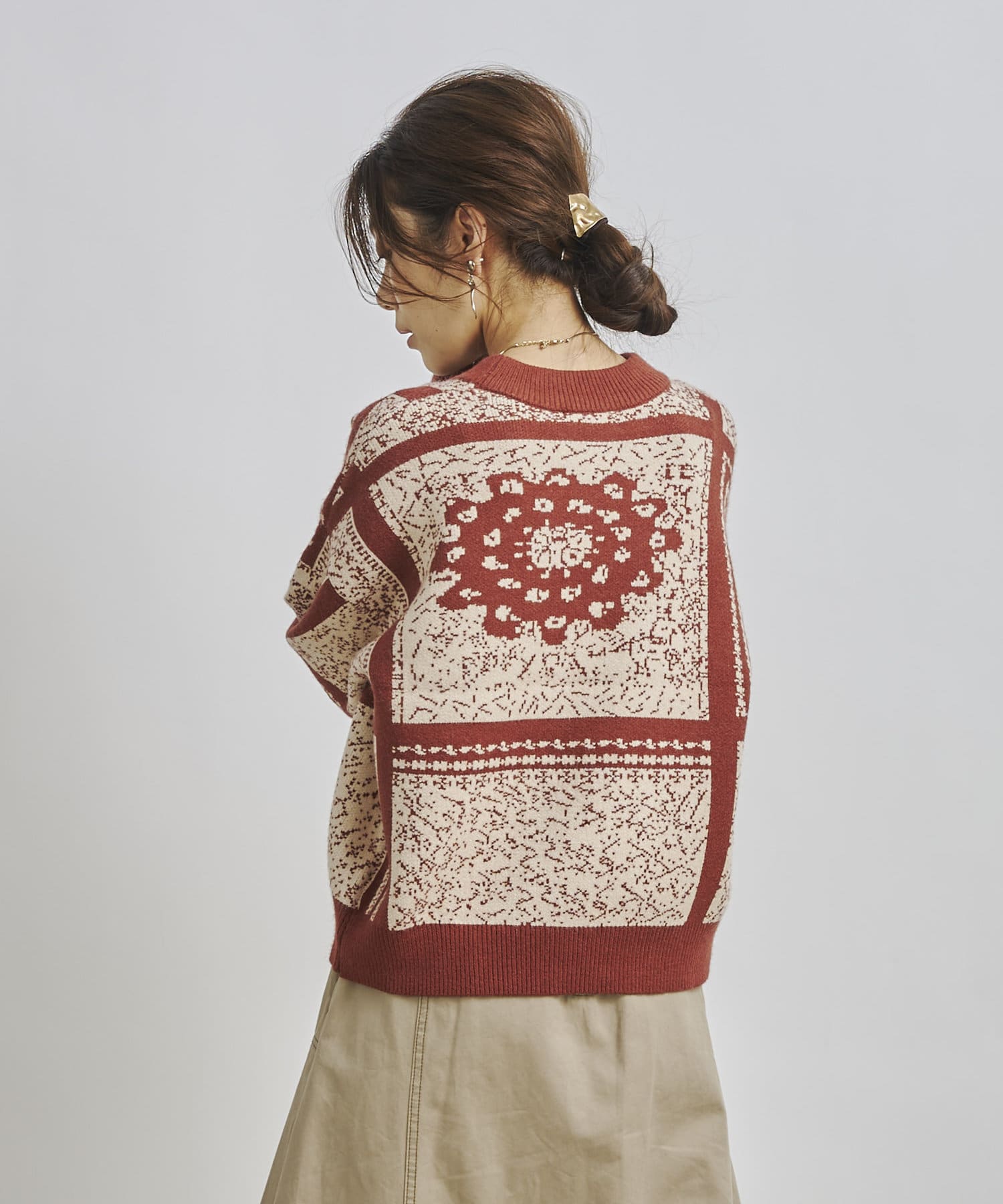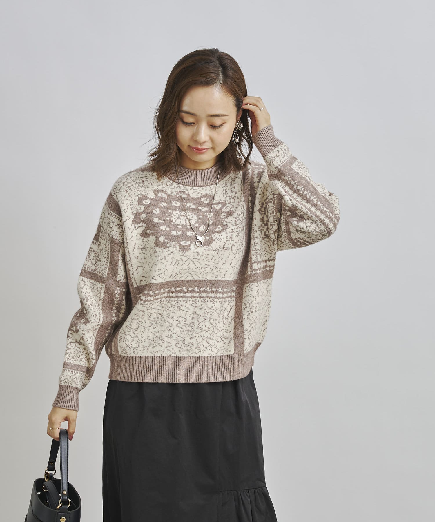 花柄のジャガード柄が着るだけで気分の上がるニットプルオーバー