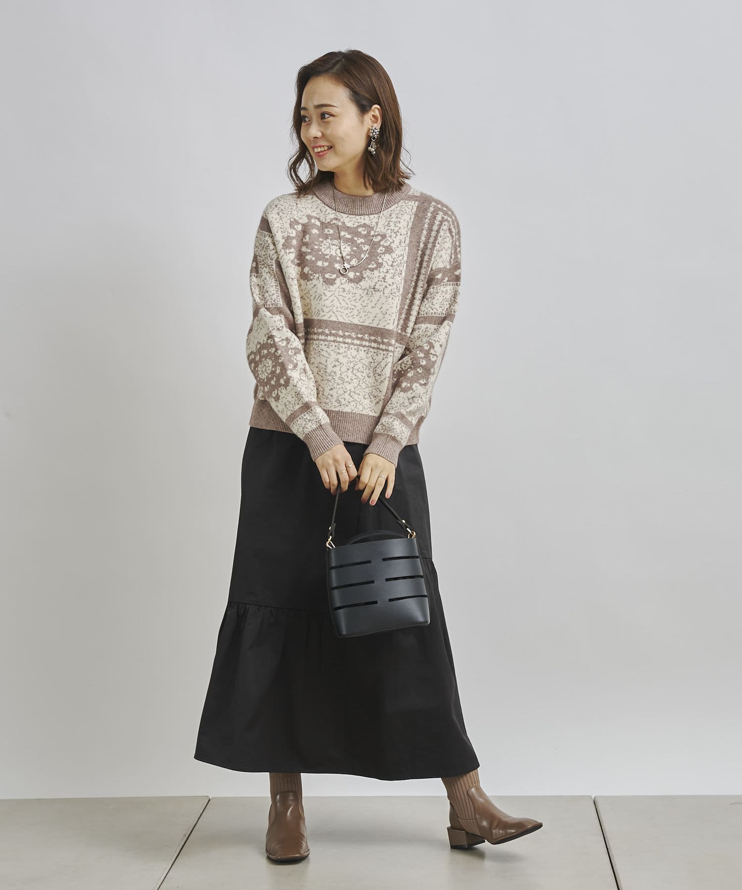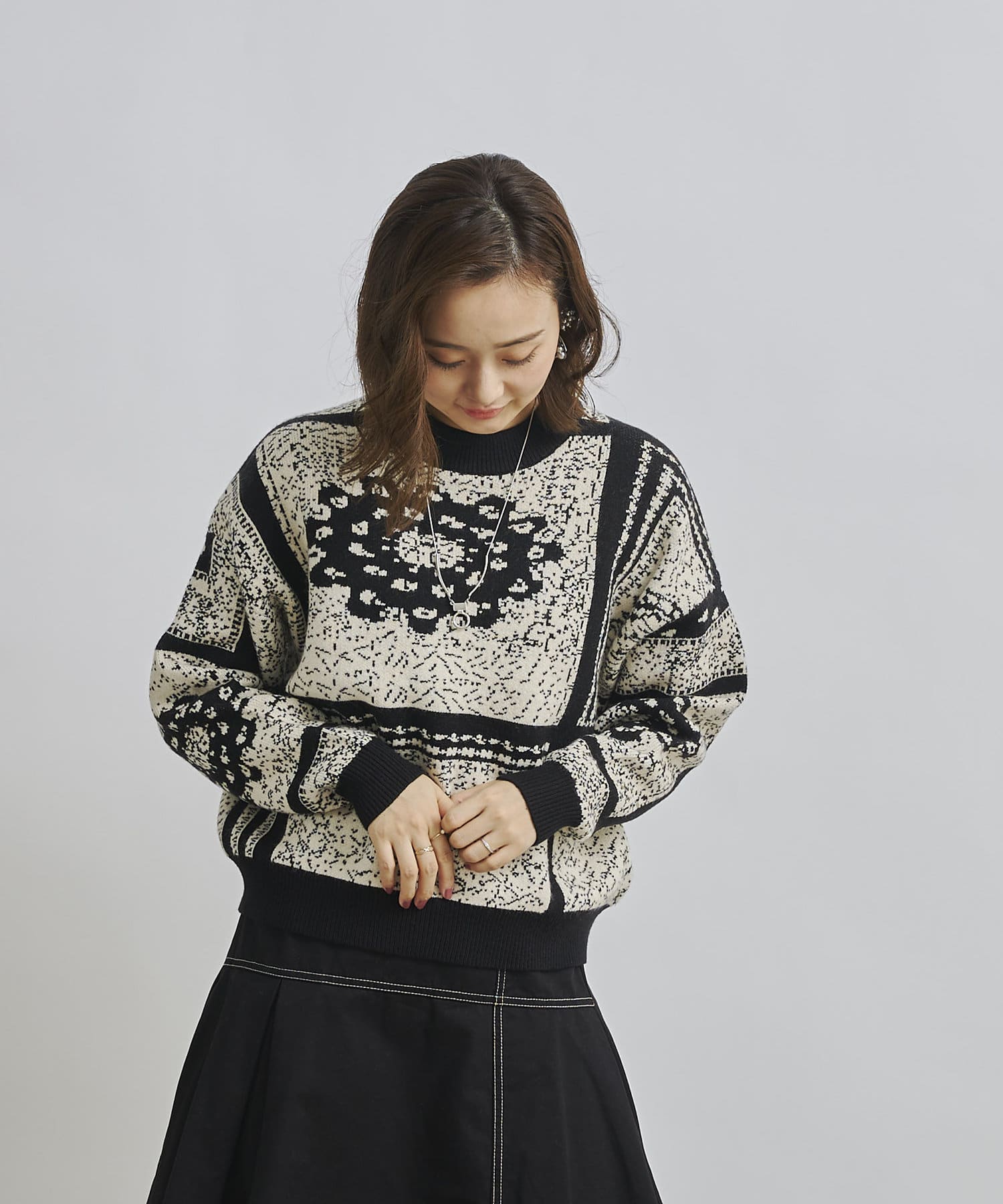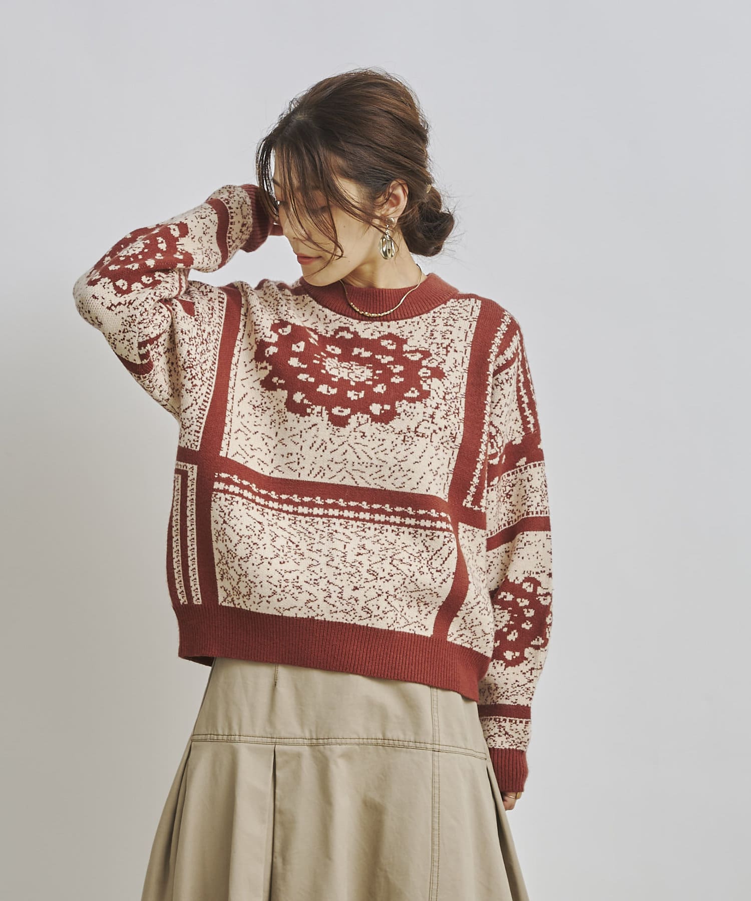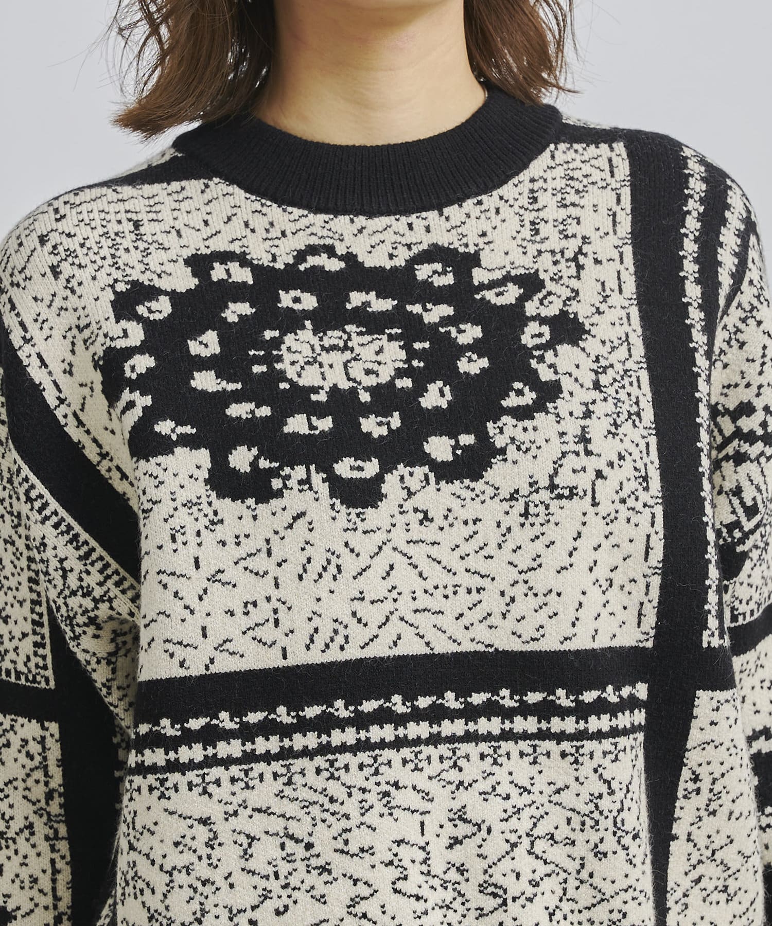 花柄のジャガード柄が着るだけで気分の上がるニットプルオーバー