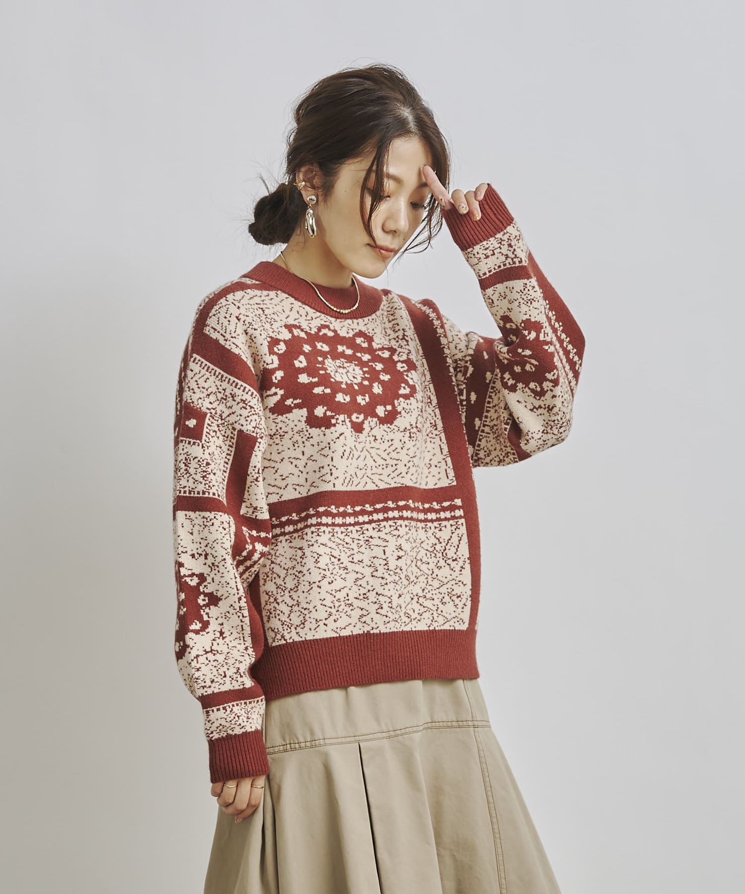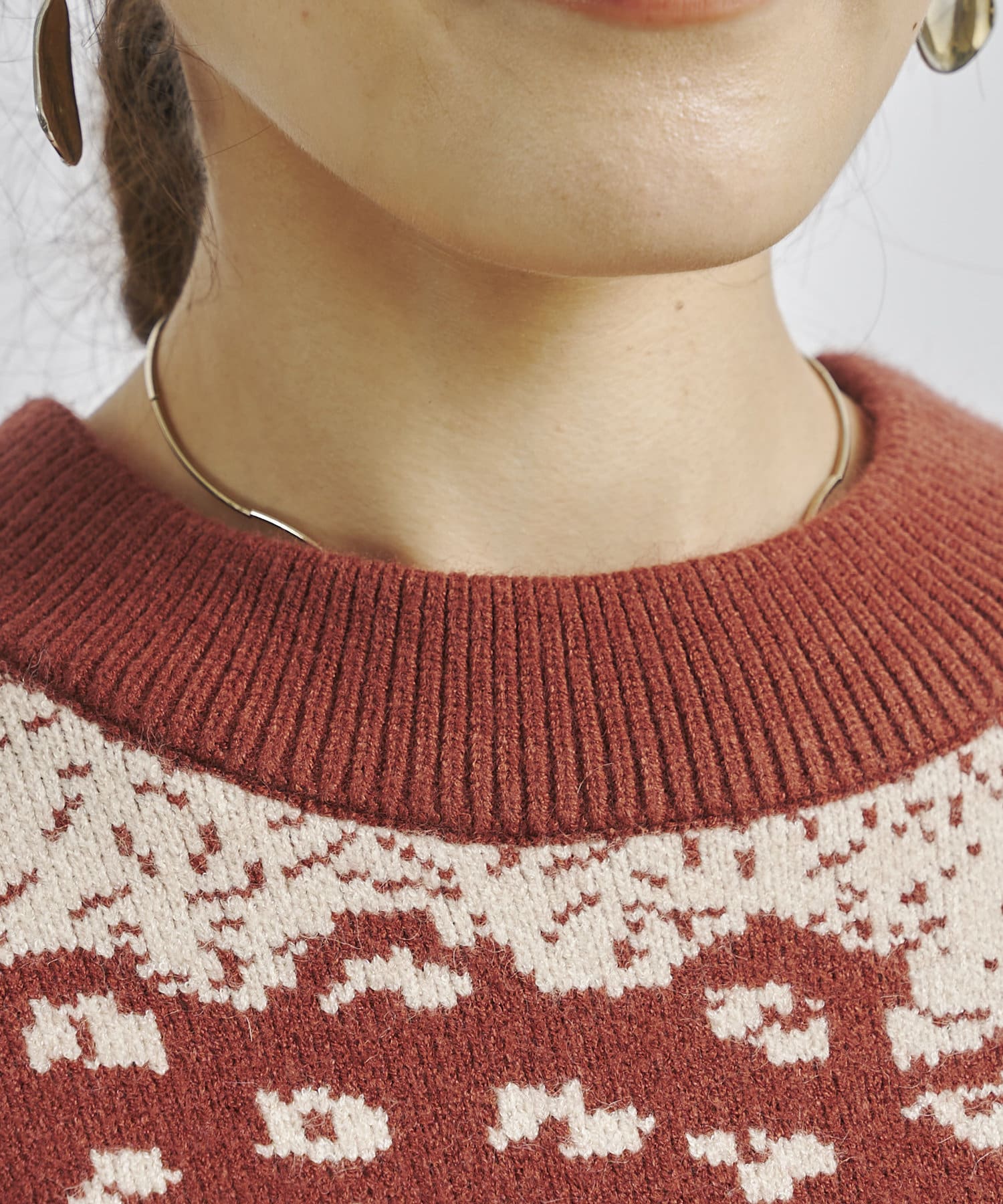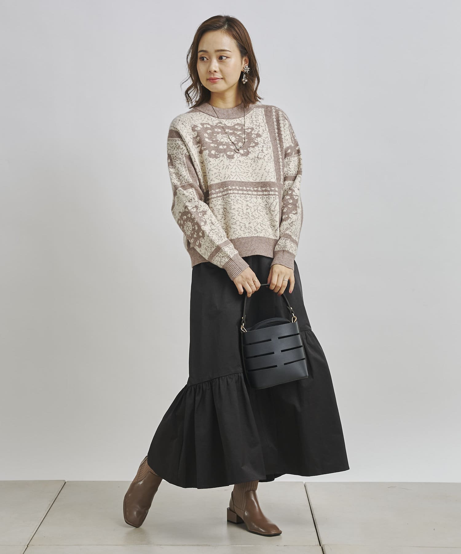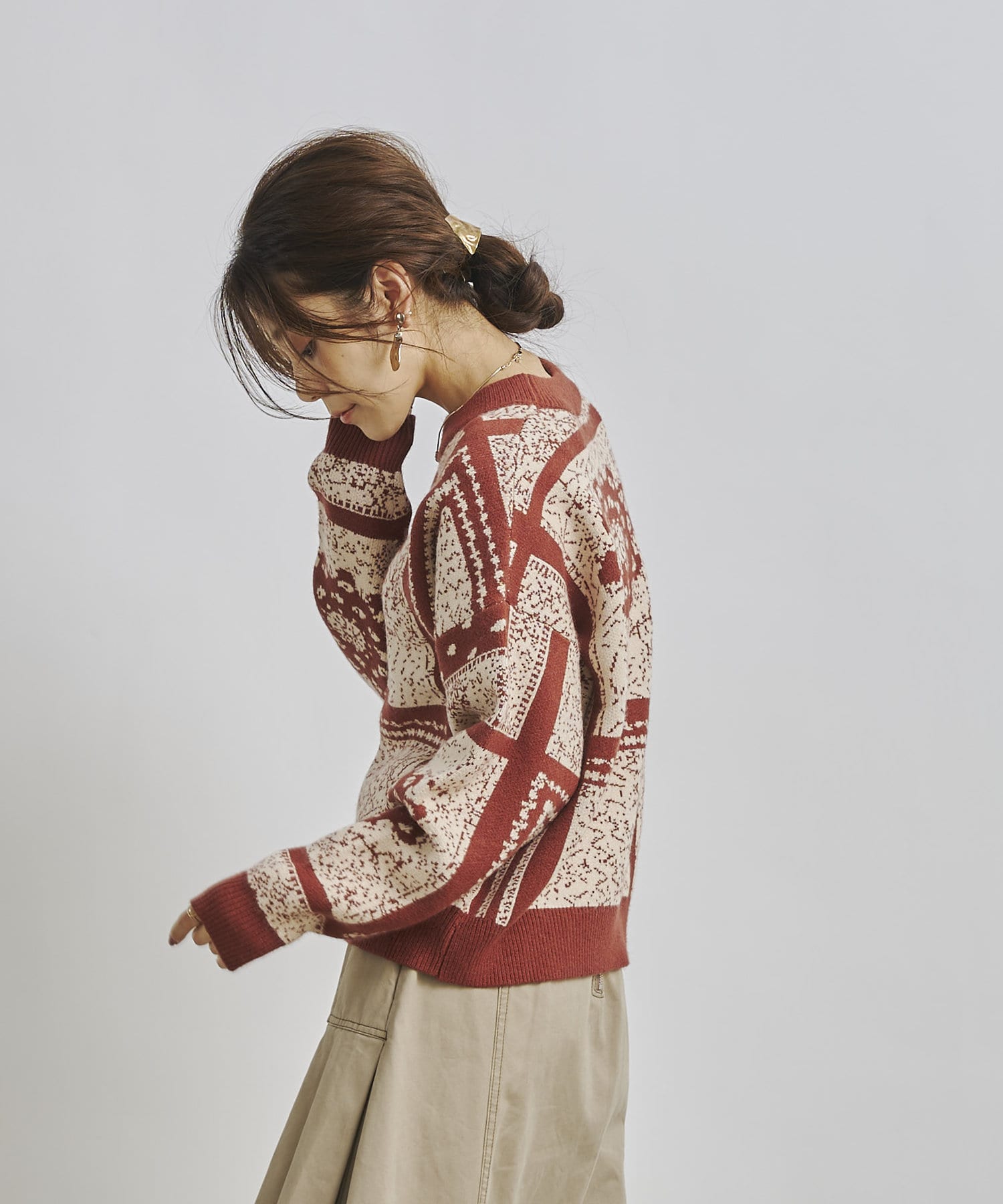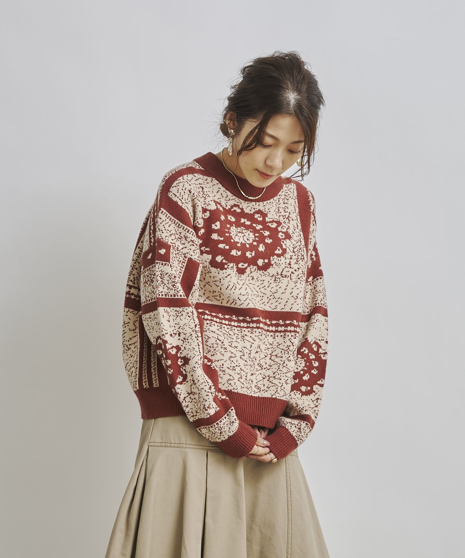 花柄のジャガード柄が着るだけで気分の上がるニットプルオーバー