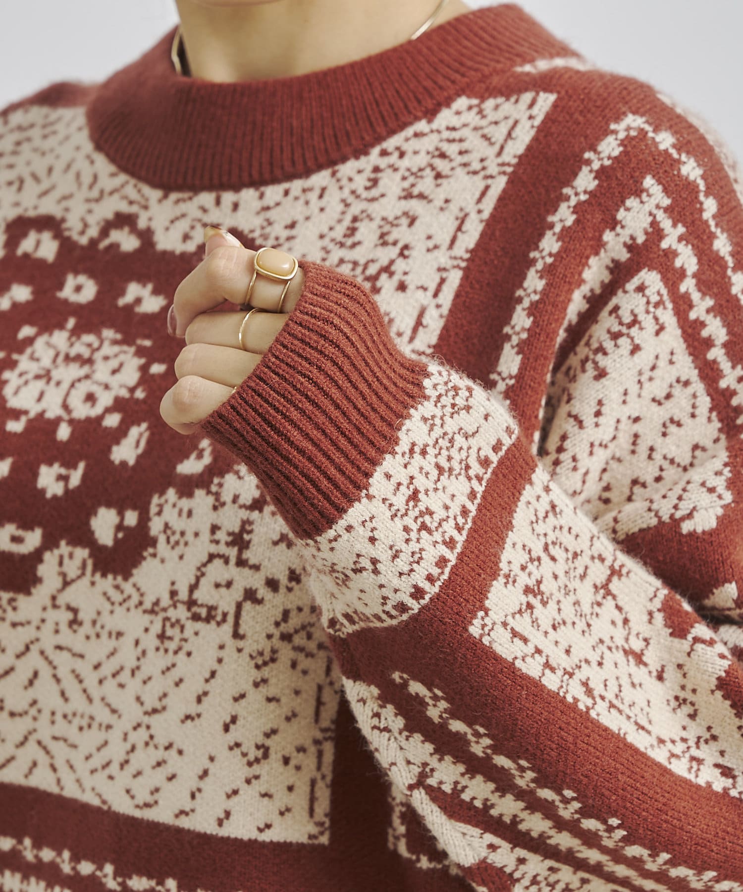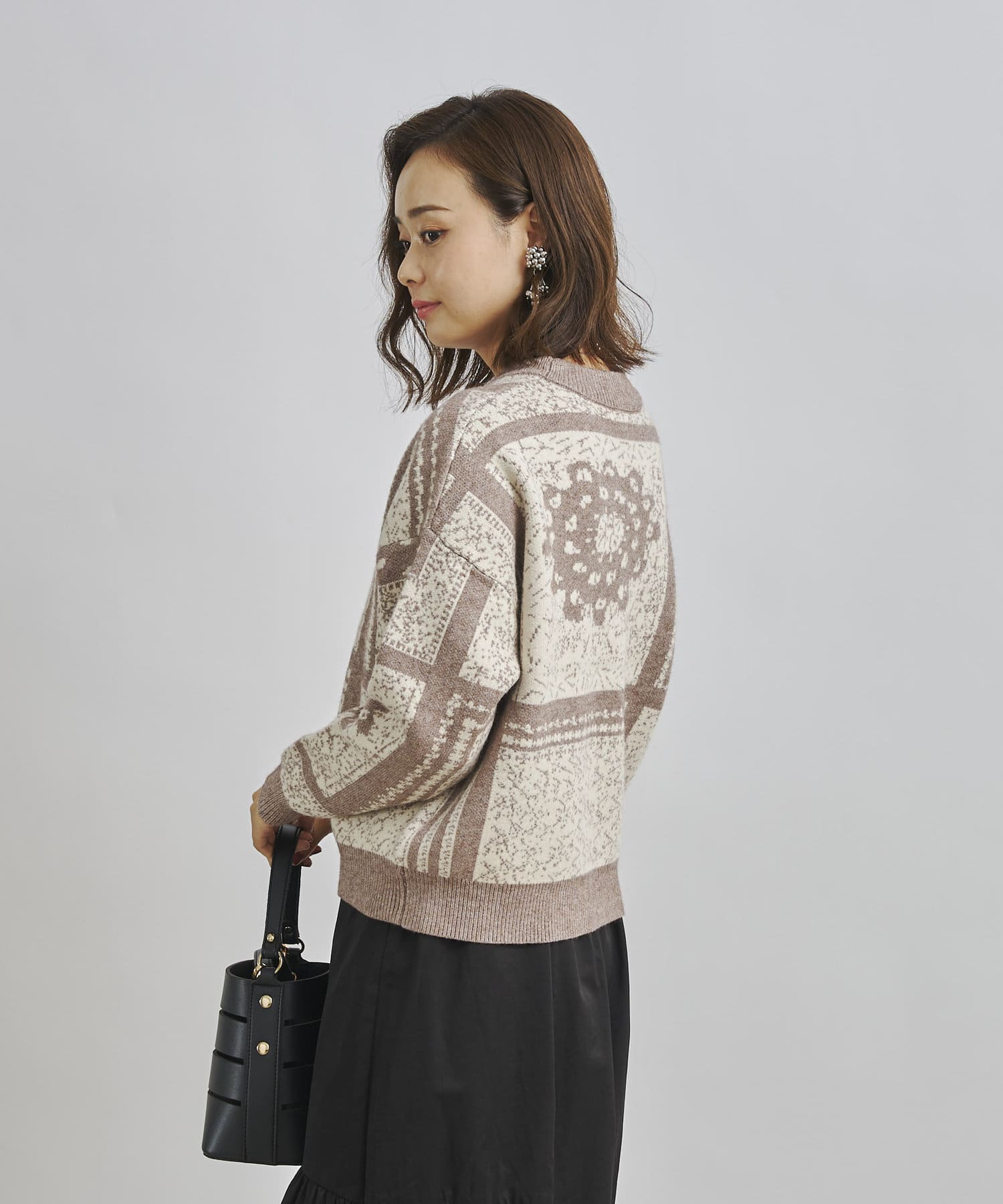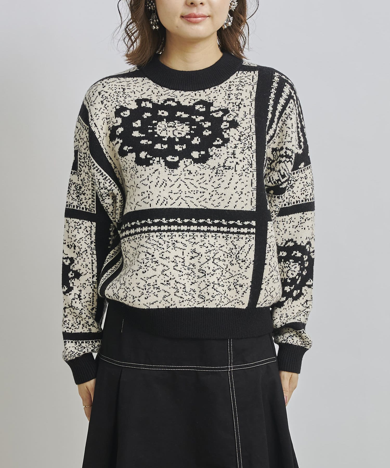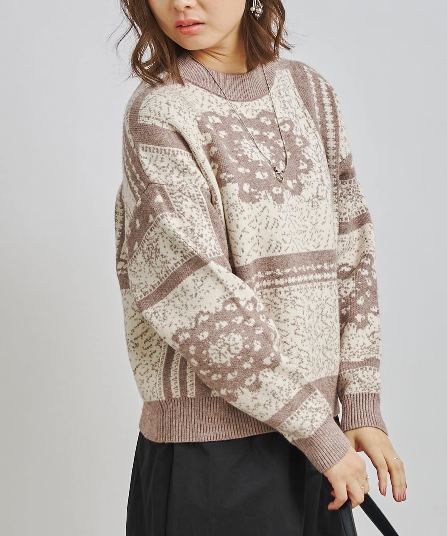 花柄のジャガード柄が着るだけで気分の上がるニットプルオーバー