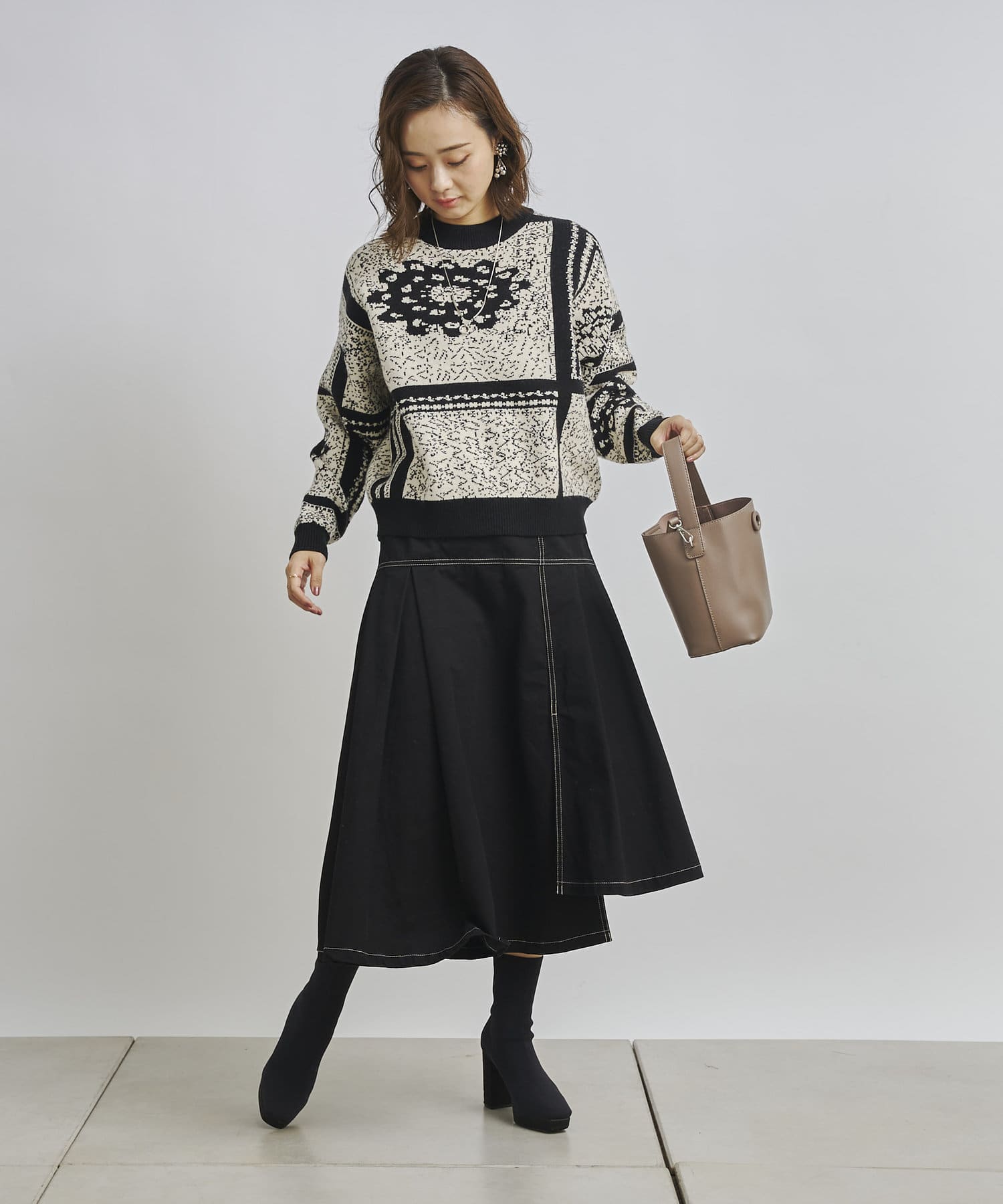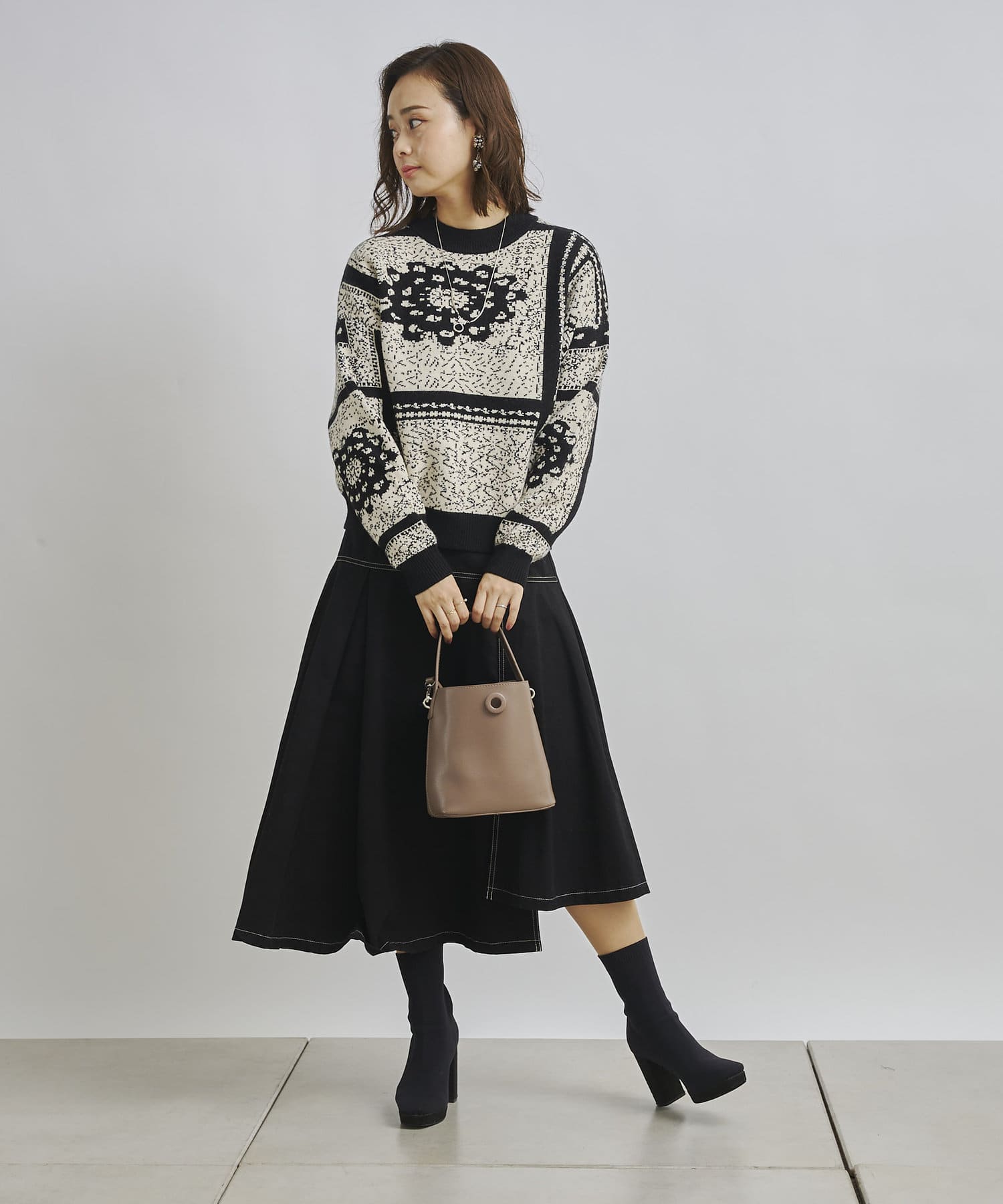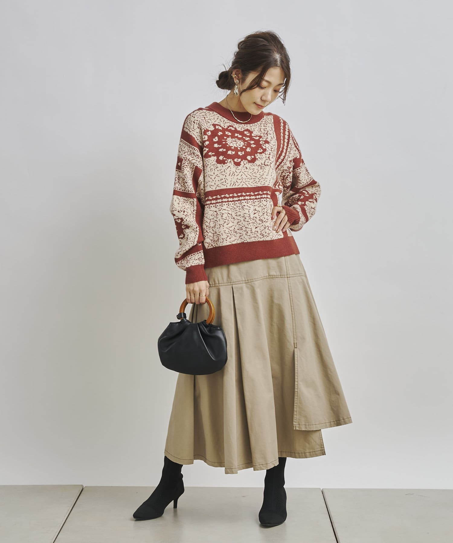 花柄ジャガードの一癖デザイン。アウターの中にも映える1着です。