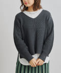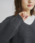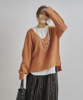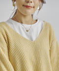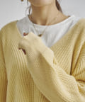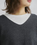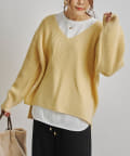 深Vニットのデザイン。ゆったりしてシルエット着心地よくオトナの抜け感がでるニットです。