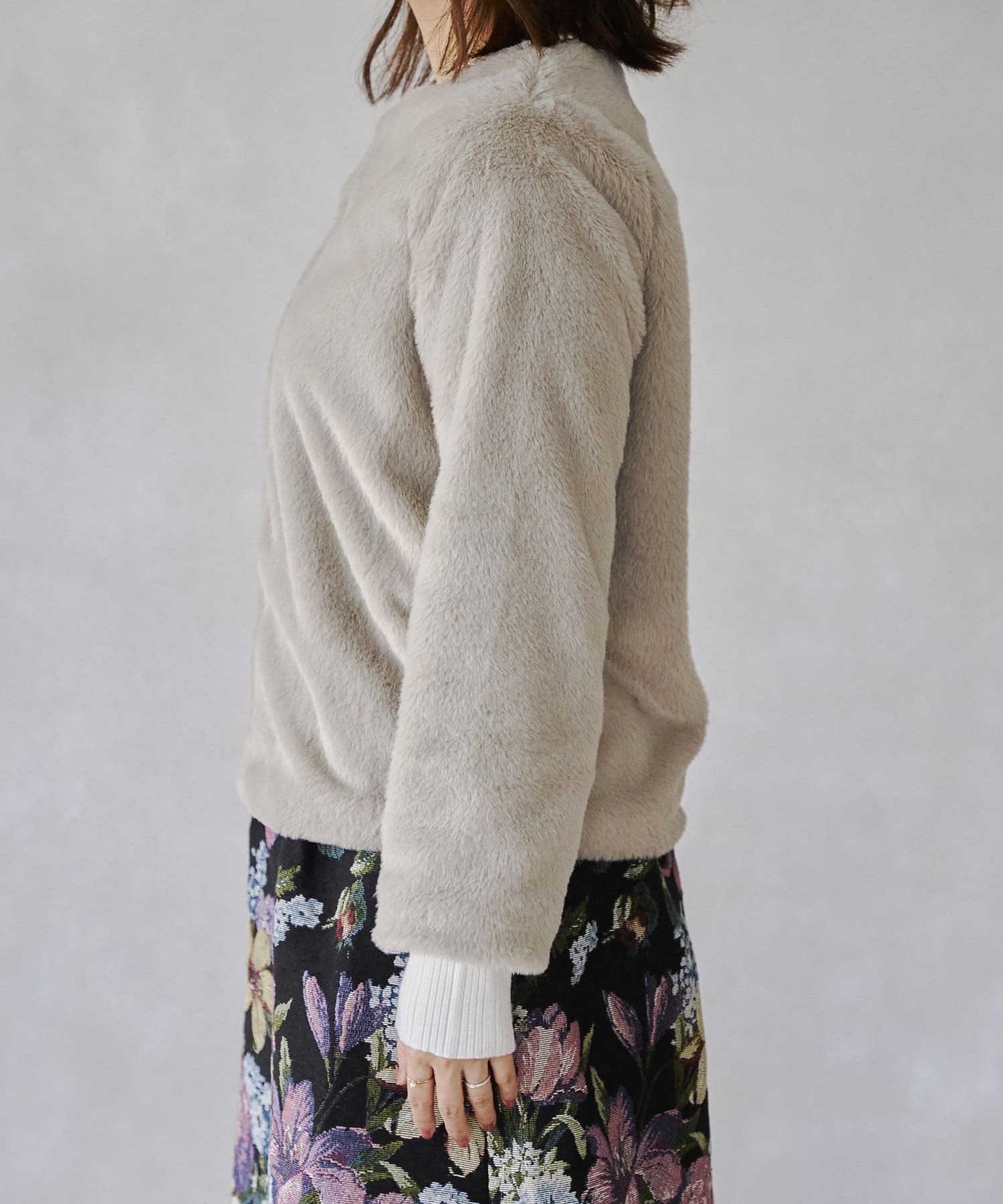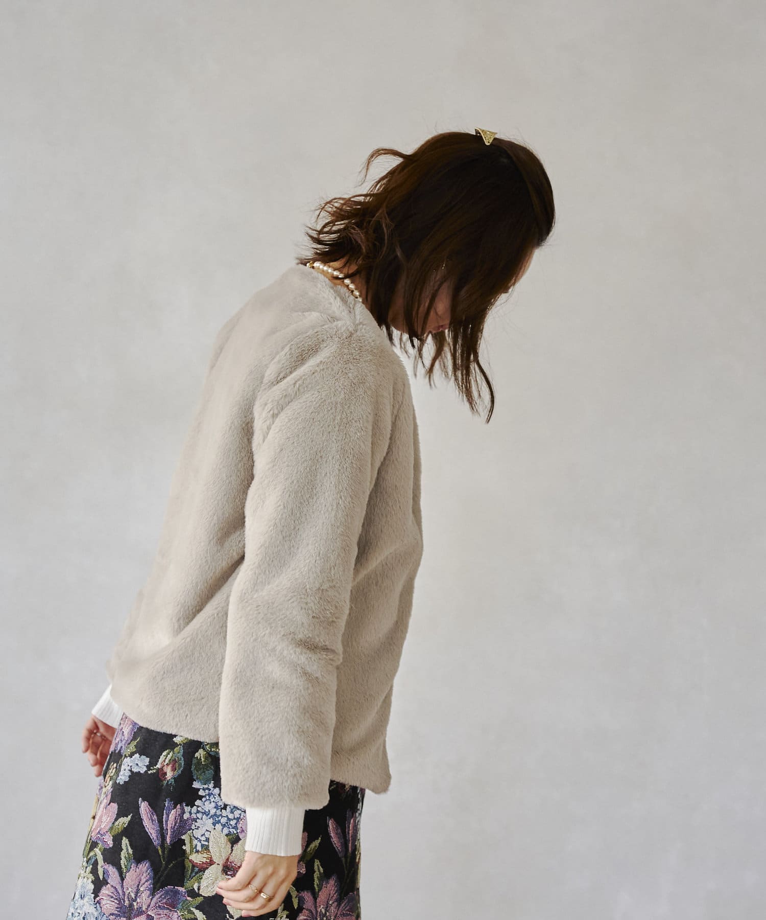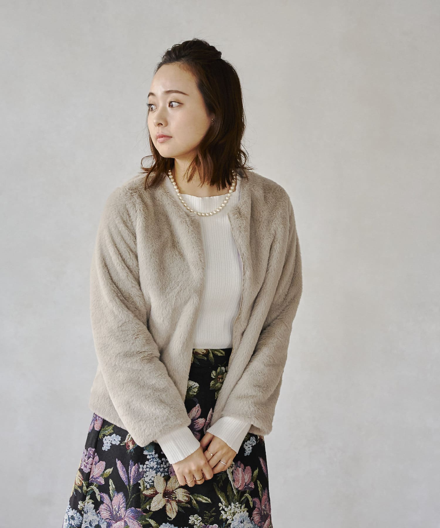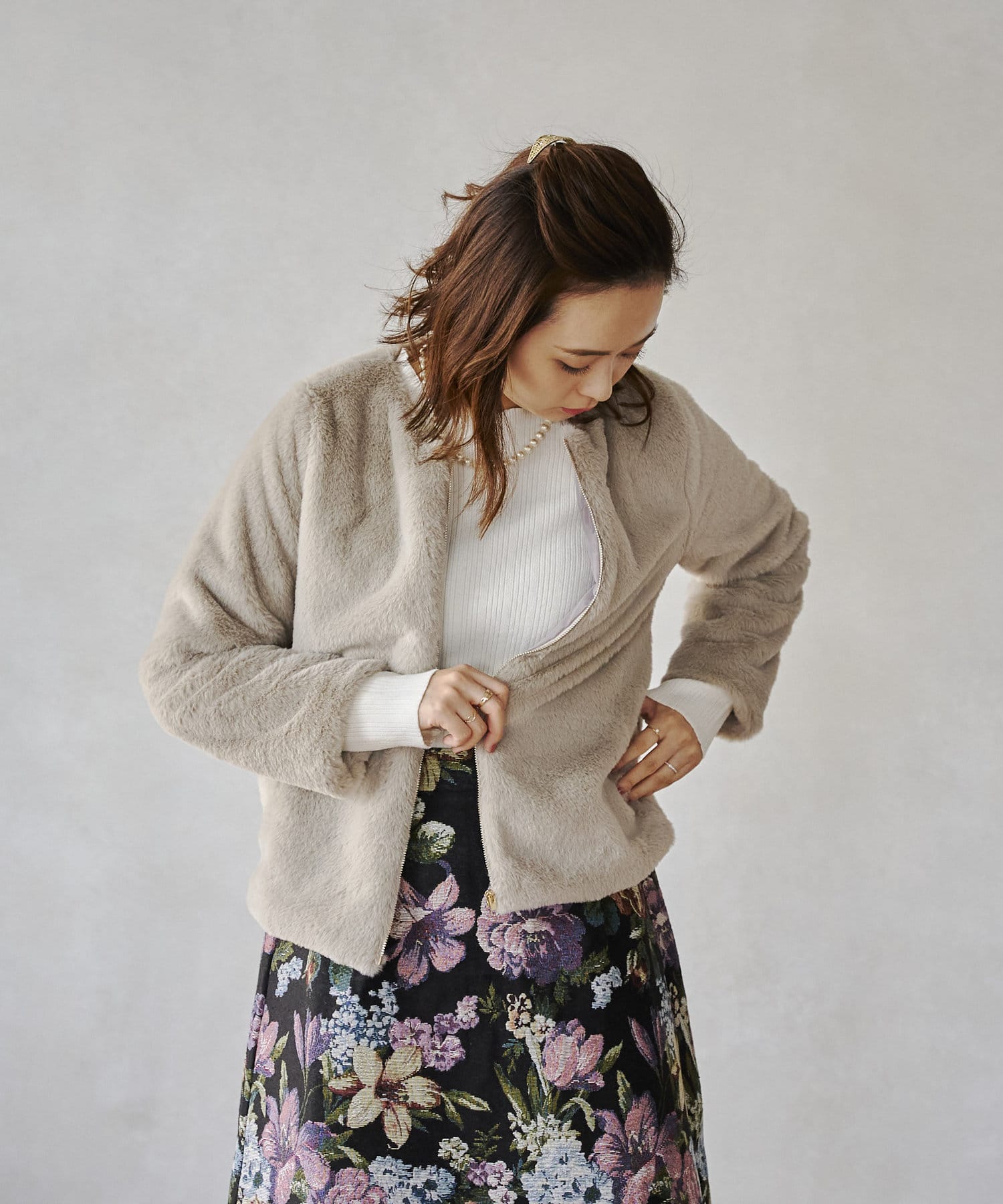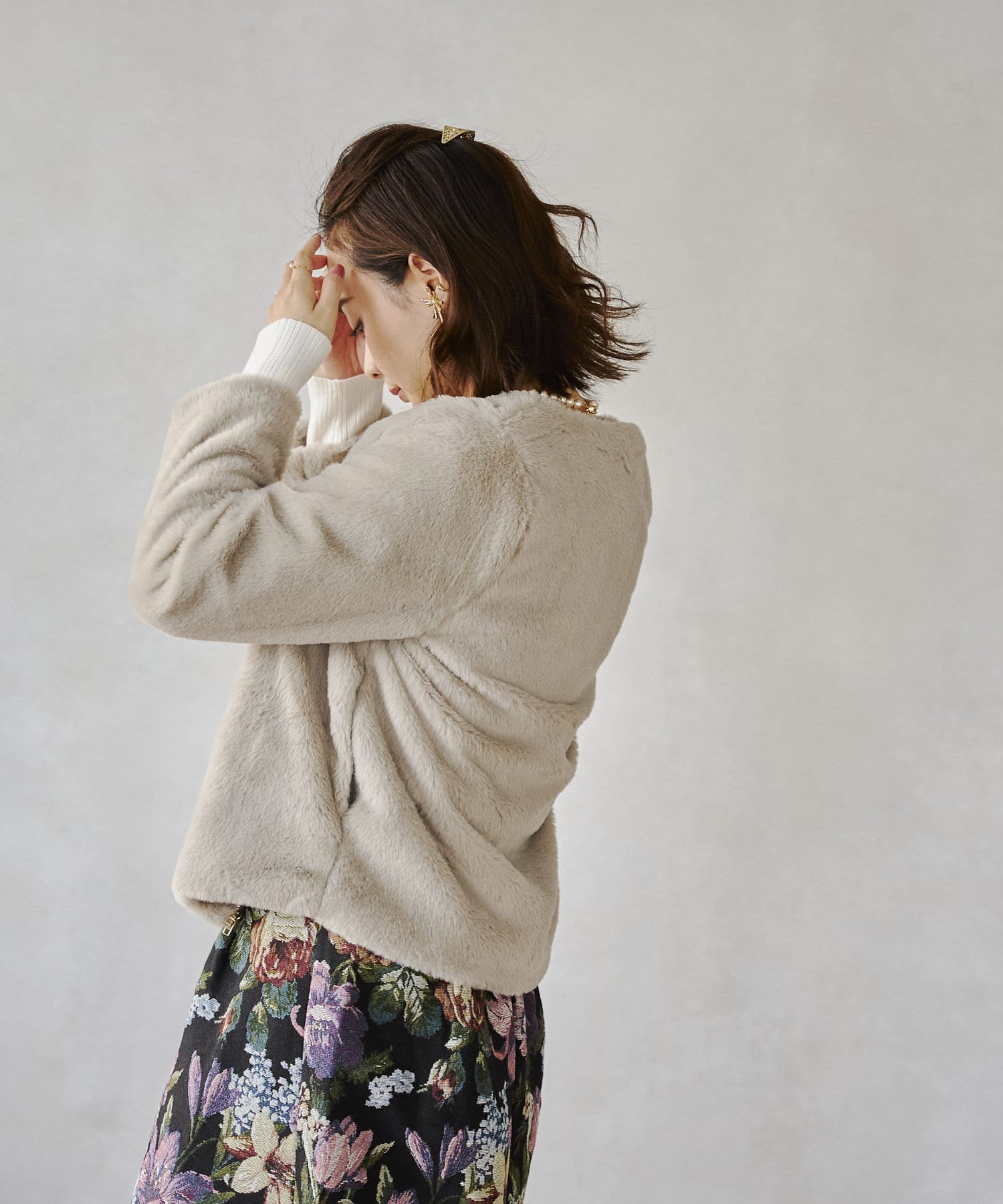 羽織るだけで華やかな印象に。滑らかなフェイクファーが着心地も抜群!!