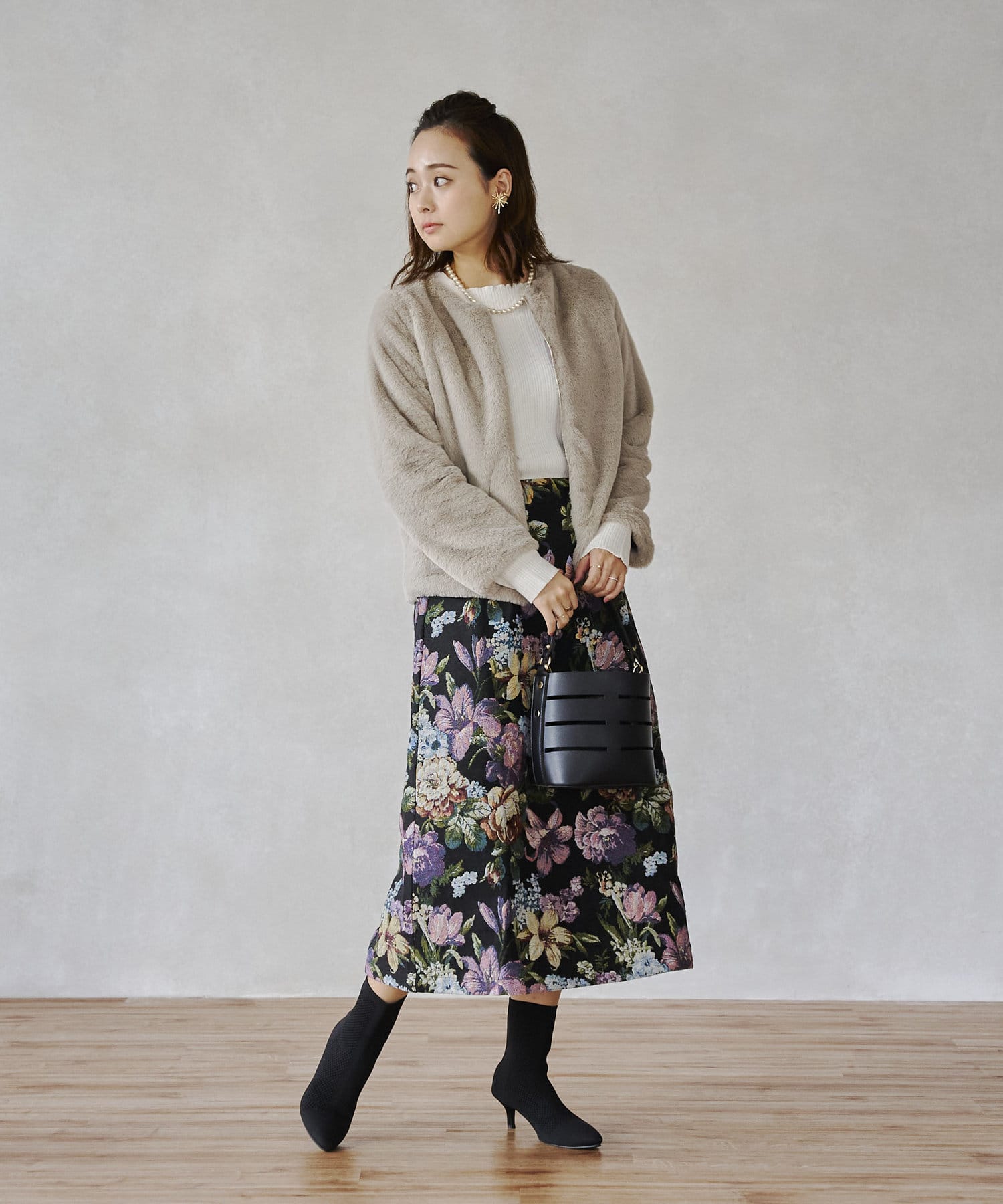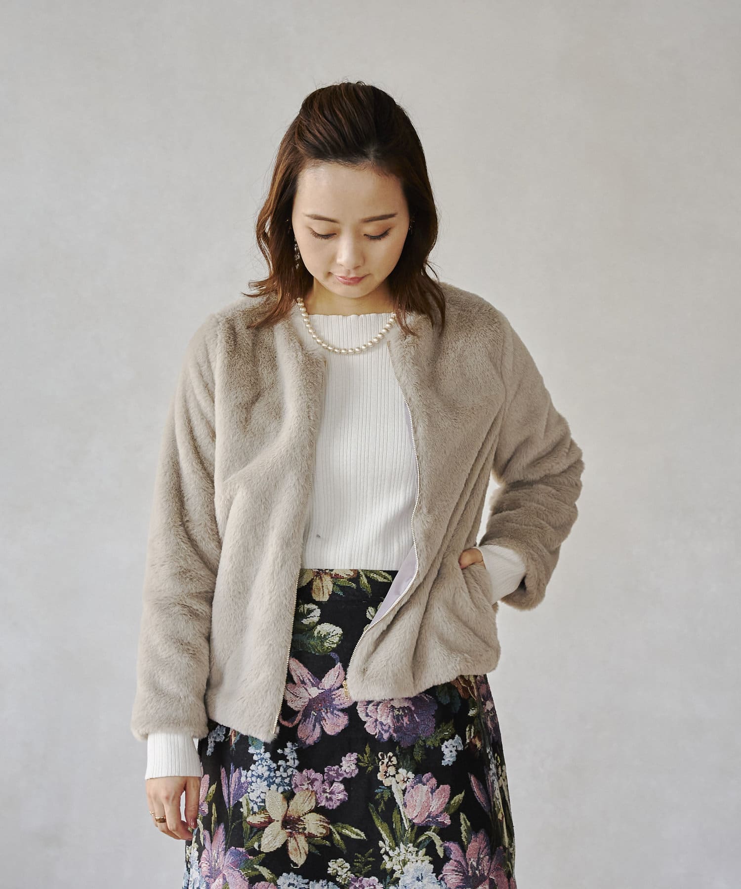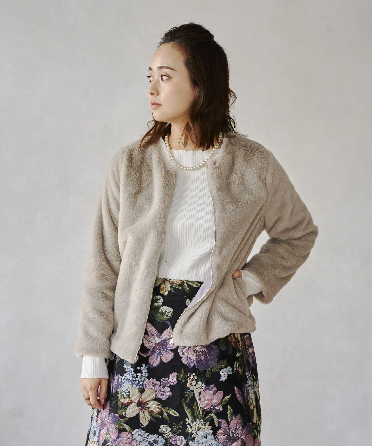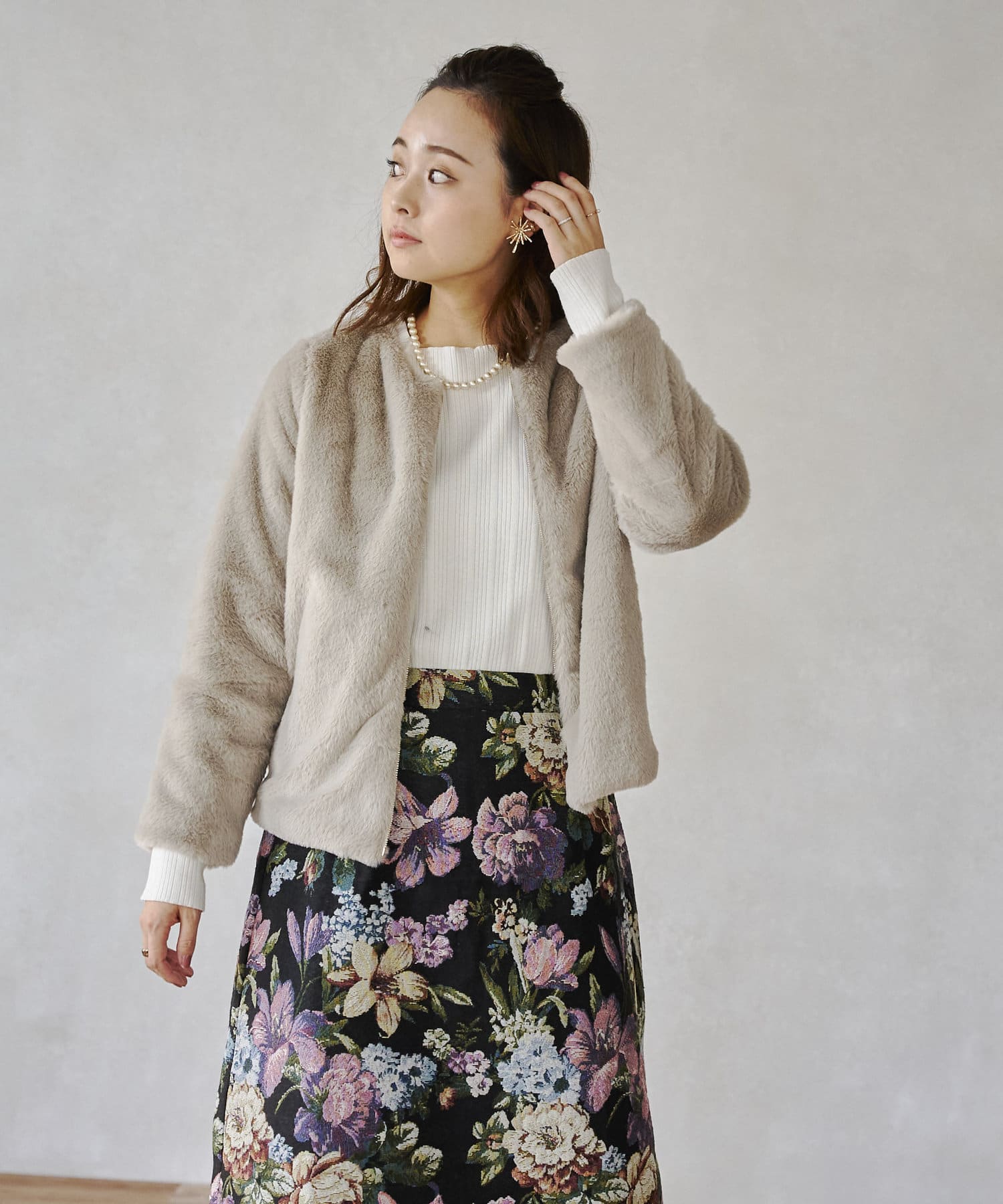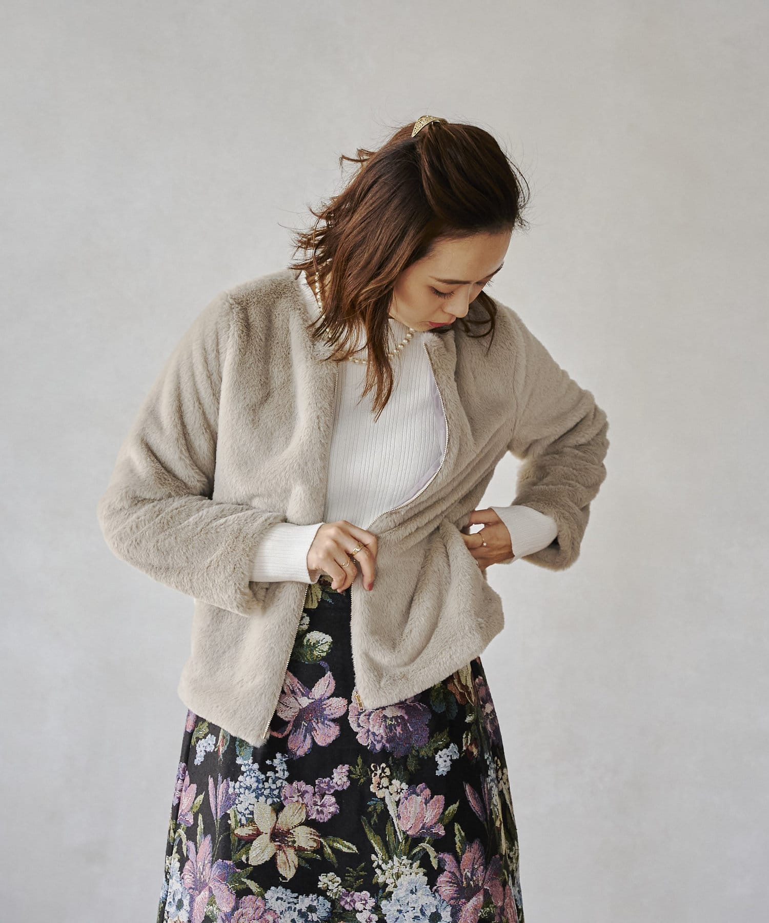 羽織るだけで華やかな印象に。滑らかなフェイクファーが着心地も抜群!!