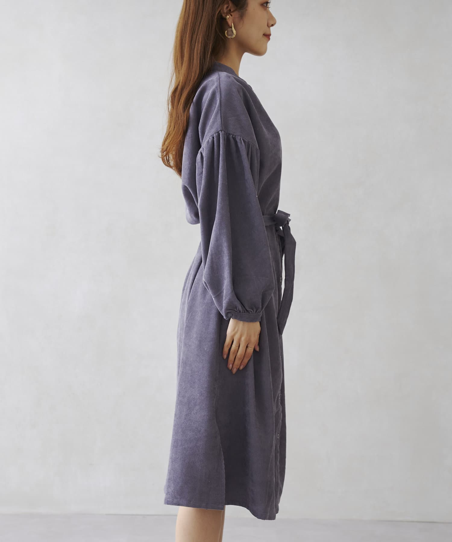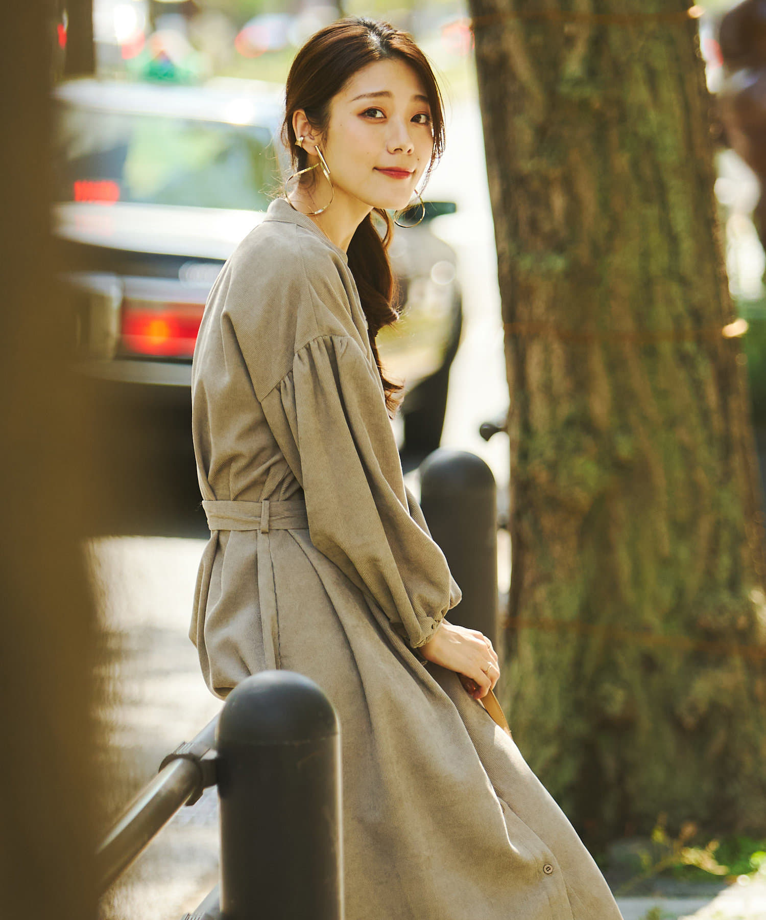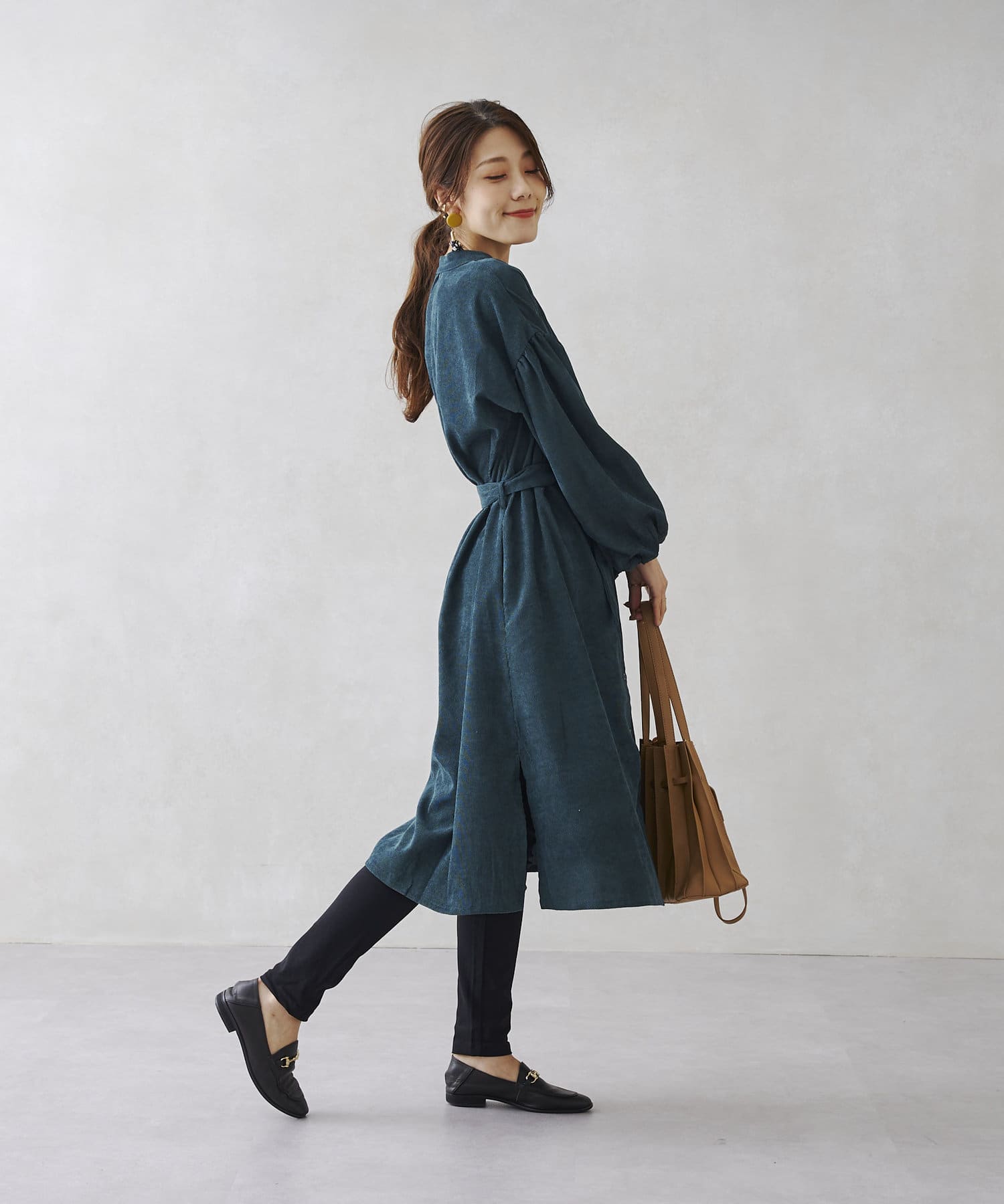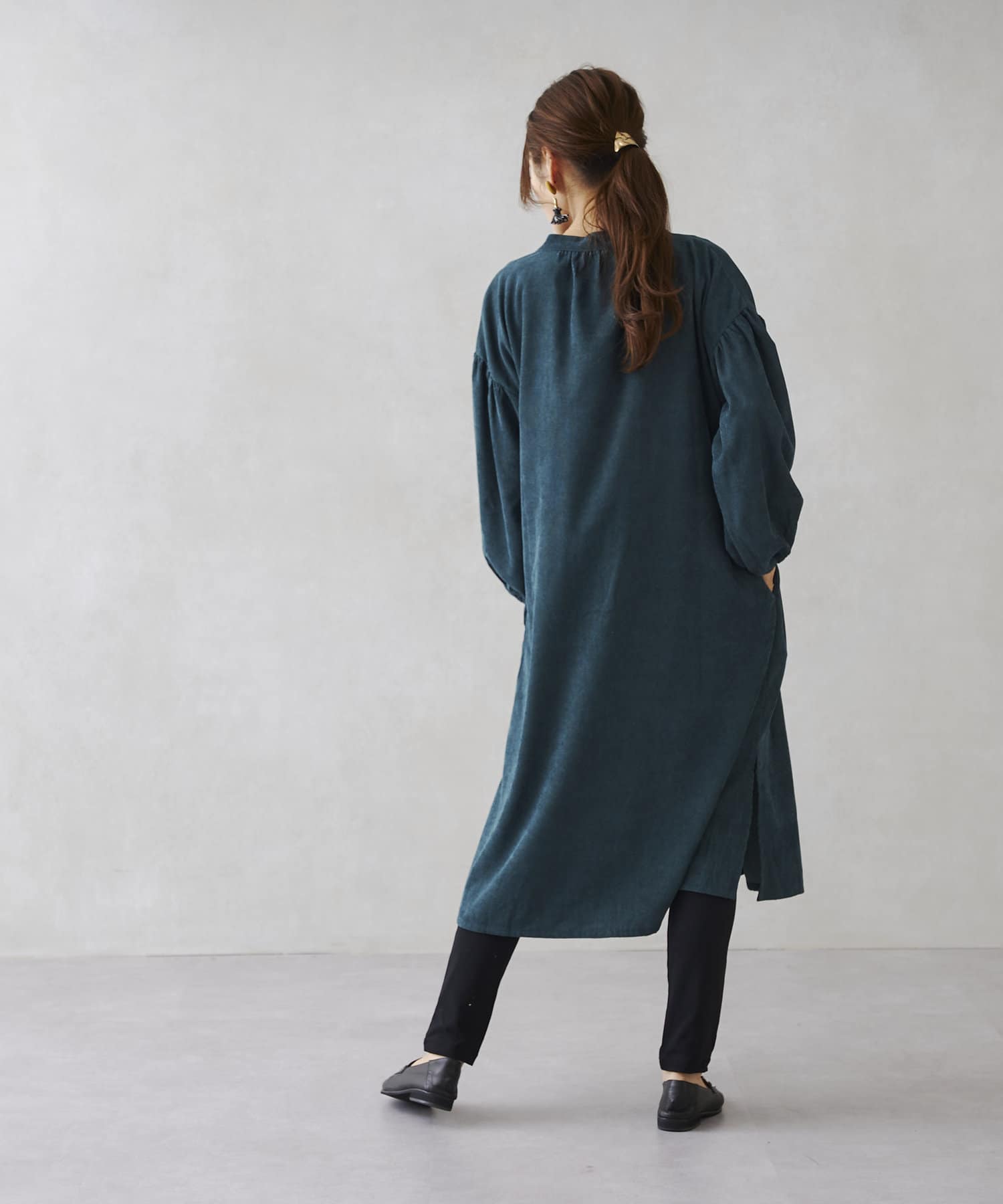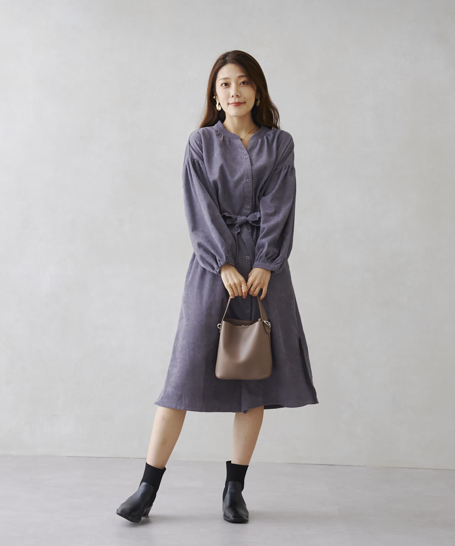 ・細コーデュロイのカジュアルになりすぎないコーデュロイシャツワンピー―ス