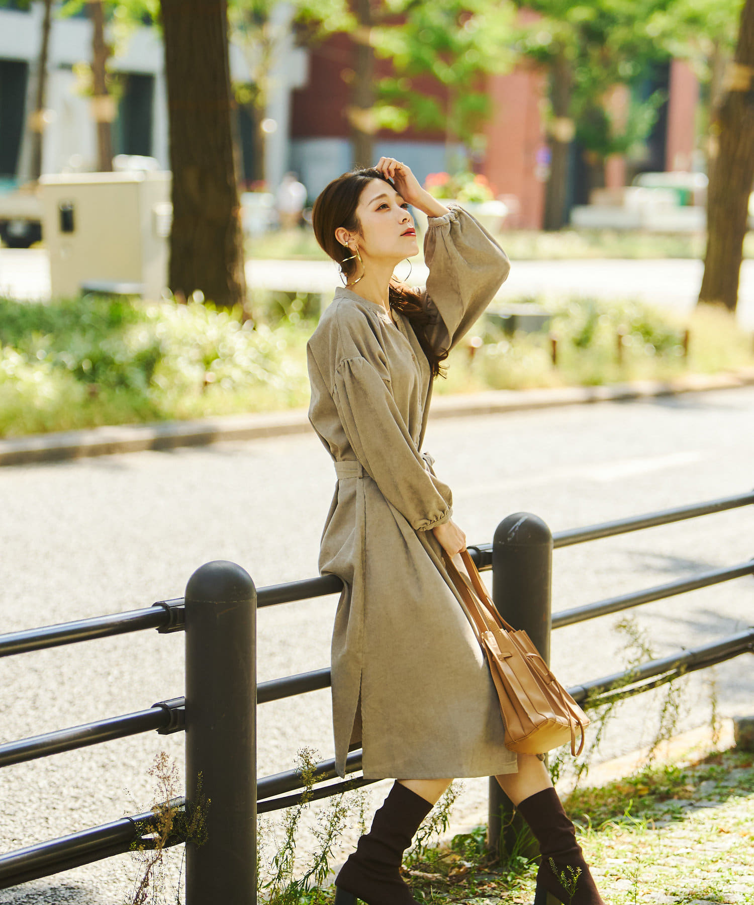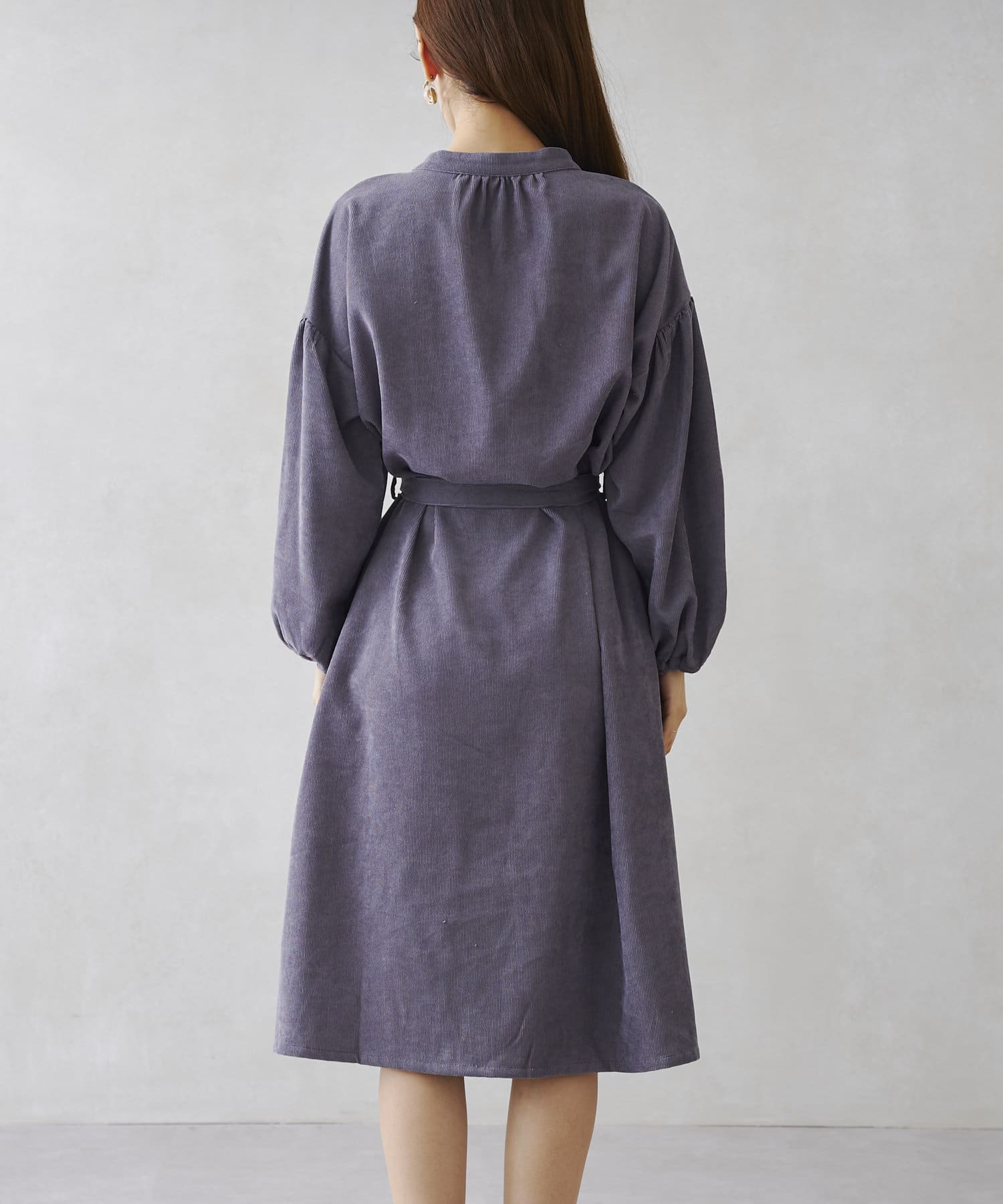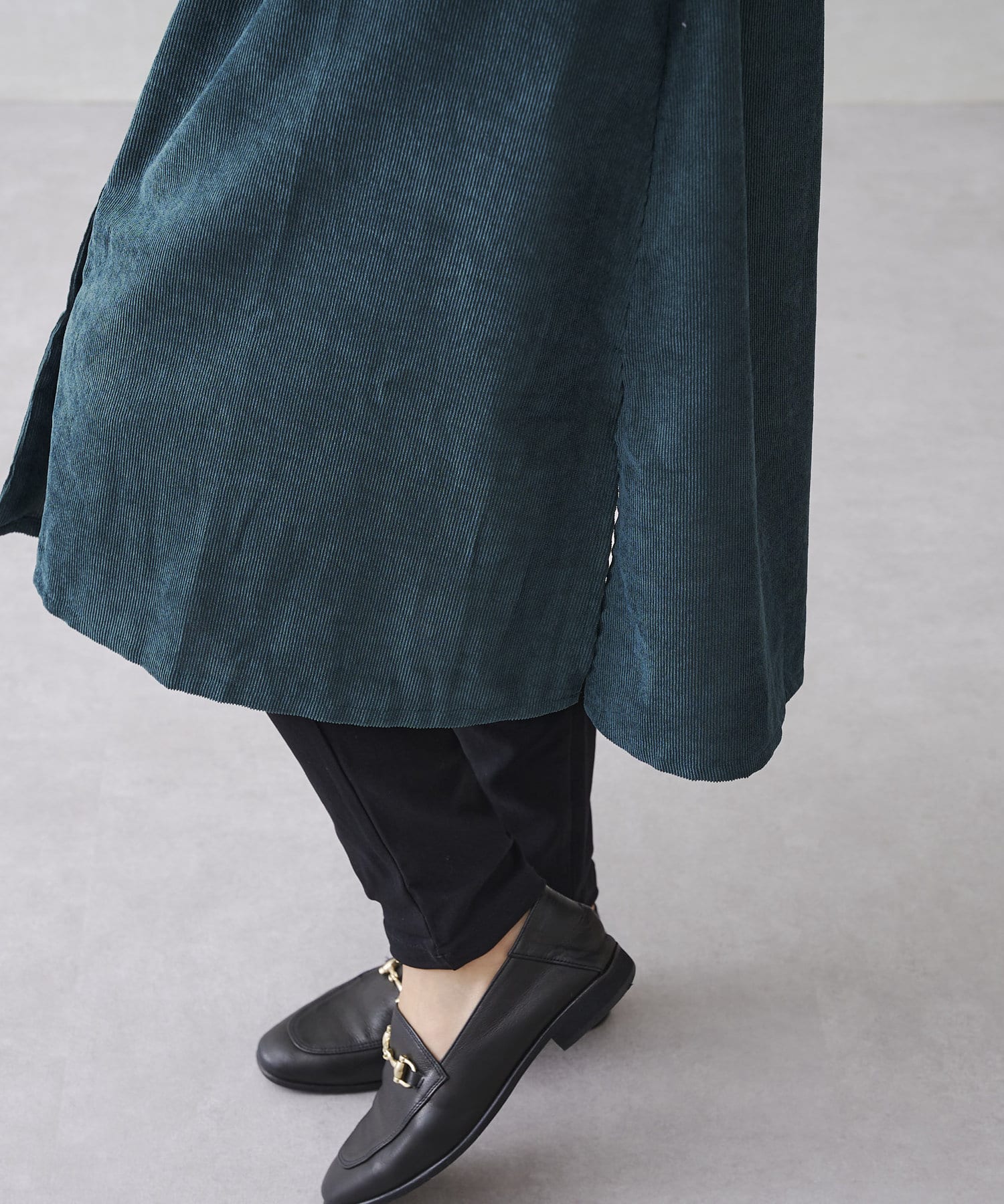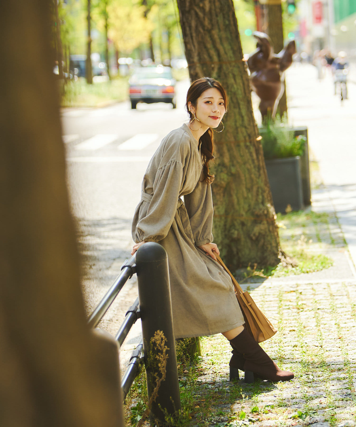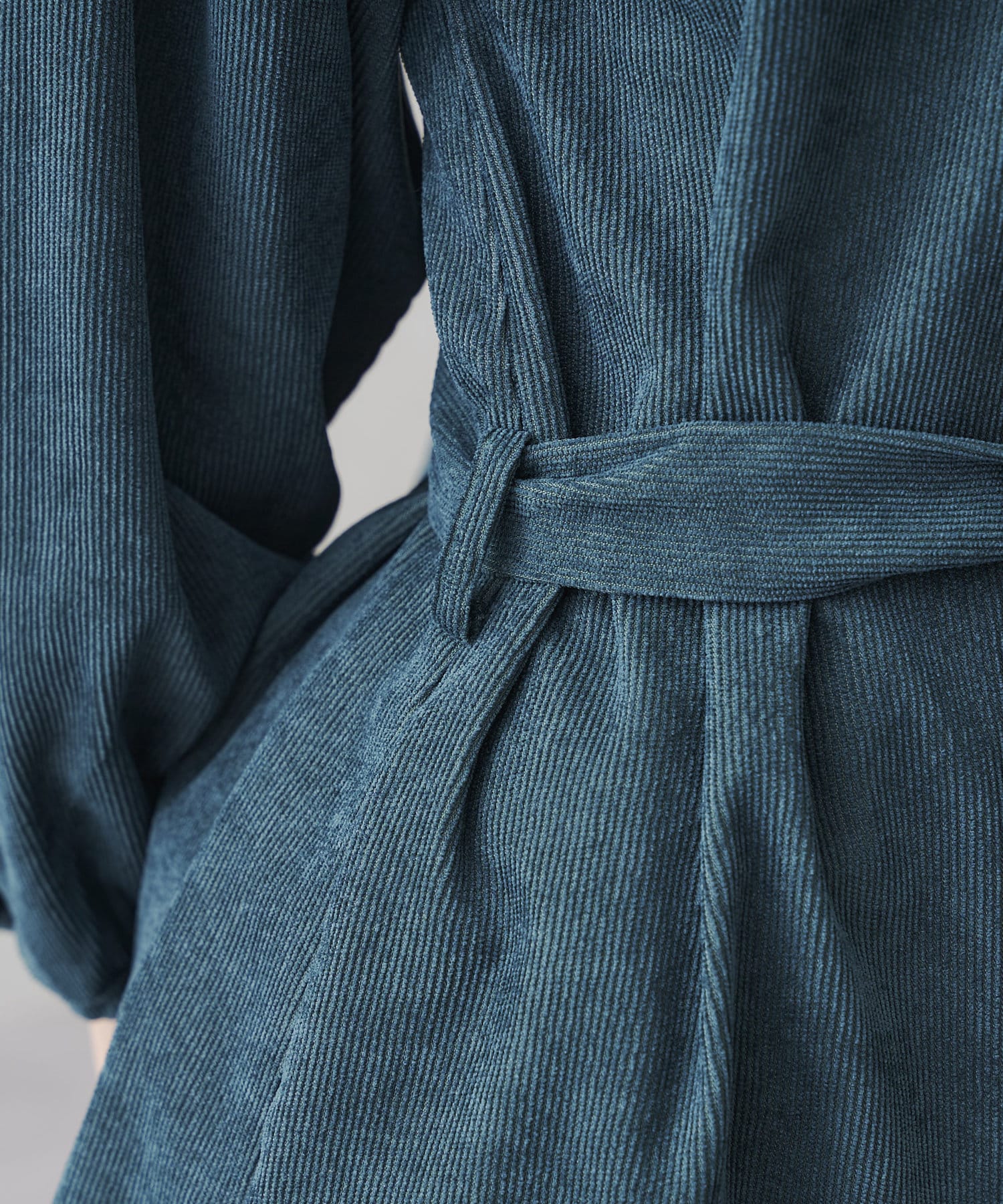 ・細コーデュロイのカジュアルになりすぎないコーデュロイシャツワンピー―ス