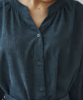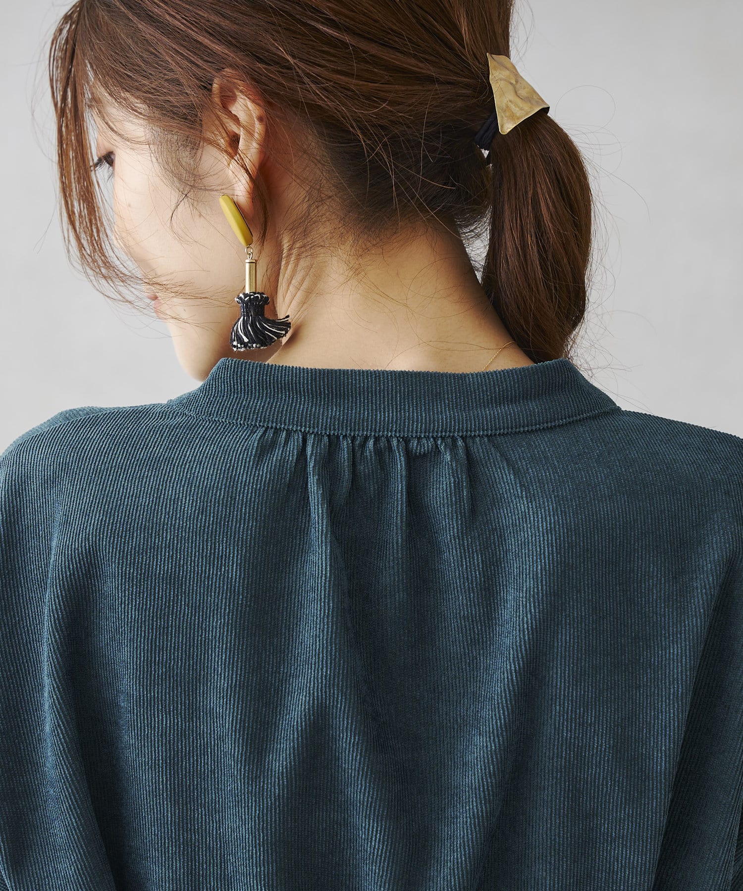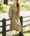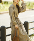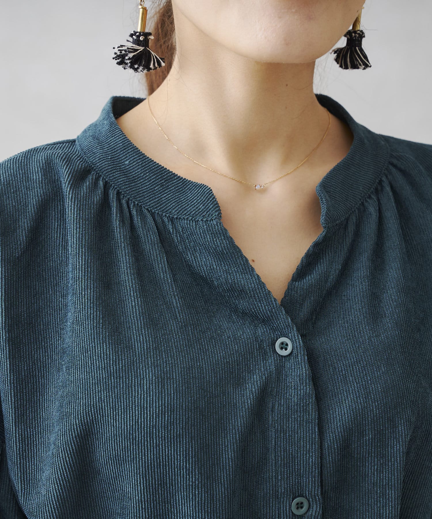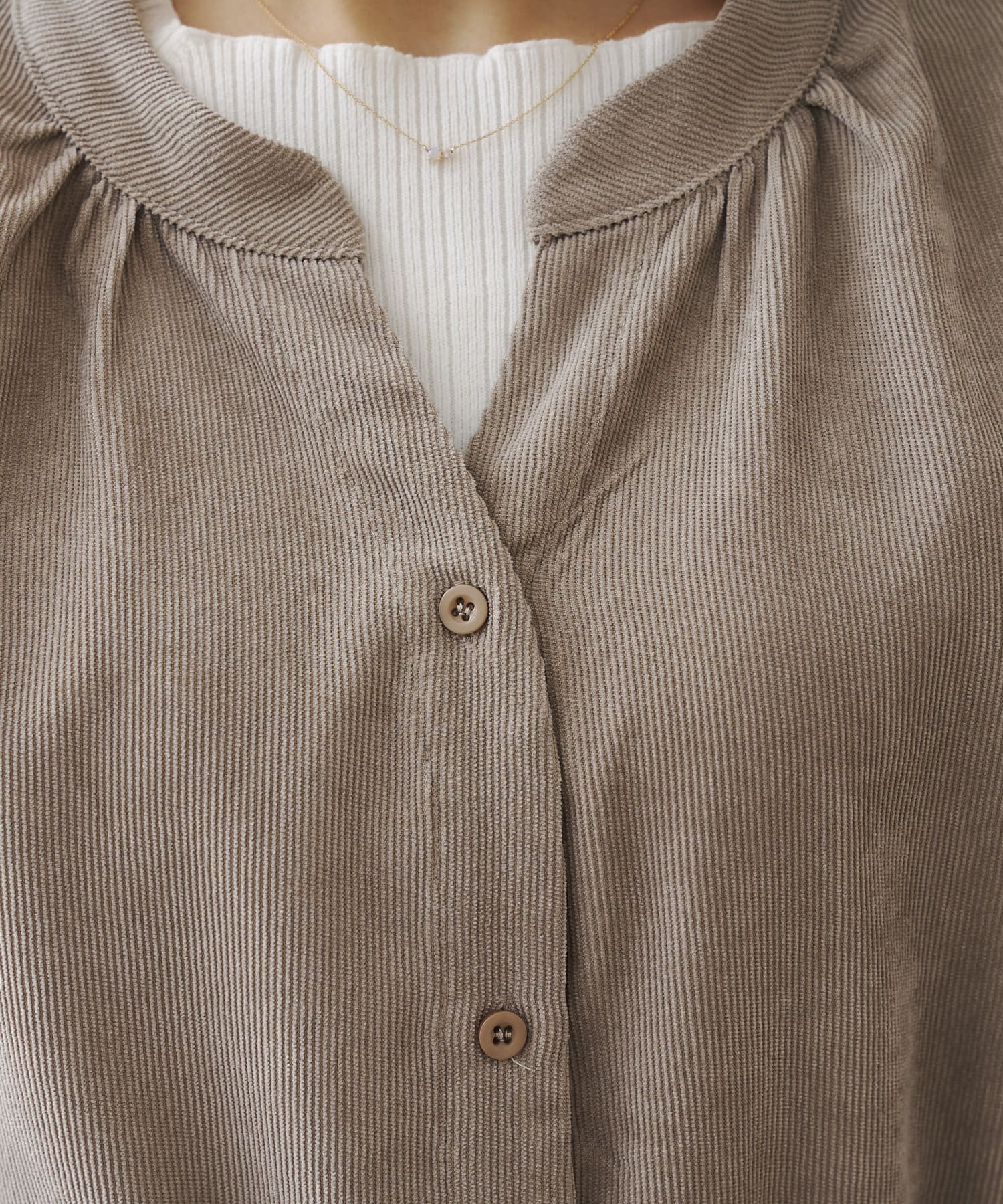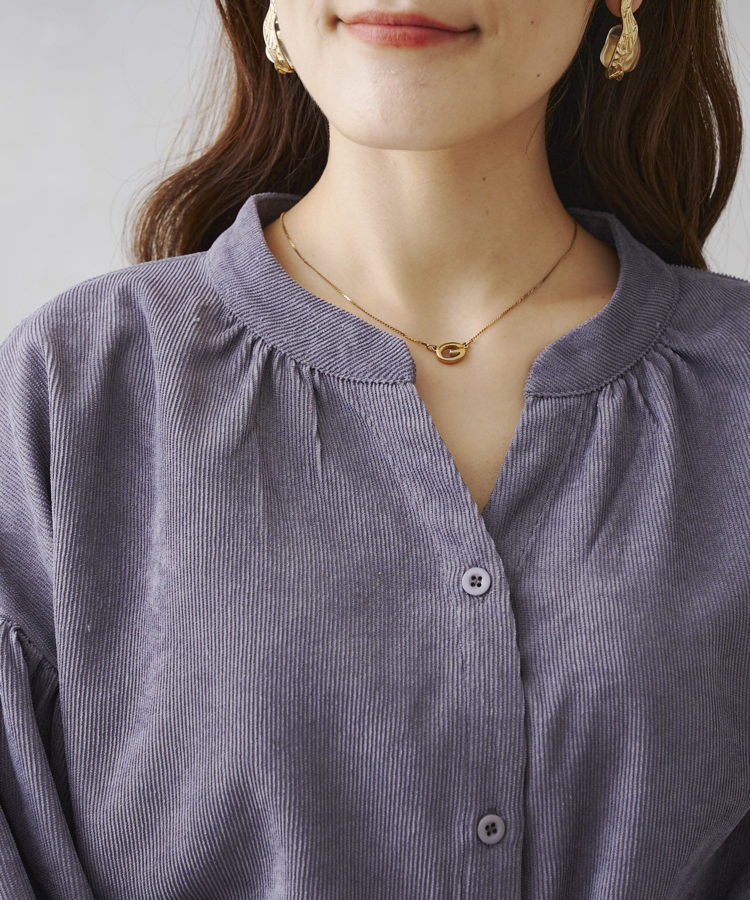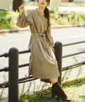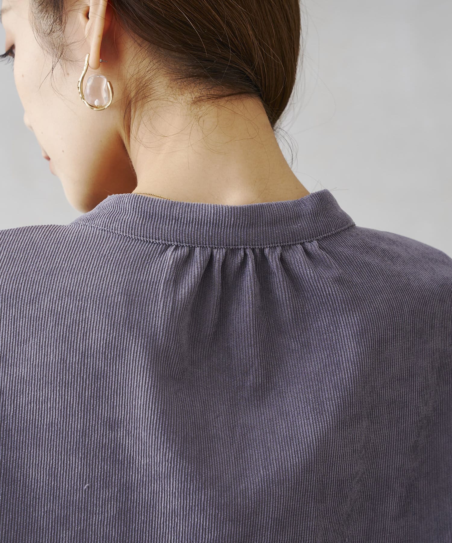 ・細コーデュロイのカジュアルになりすぎないコーデュロイシャツワンピー―ス