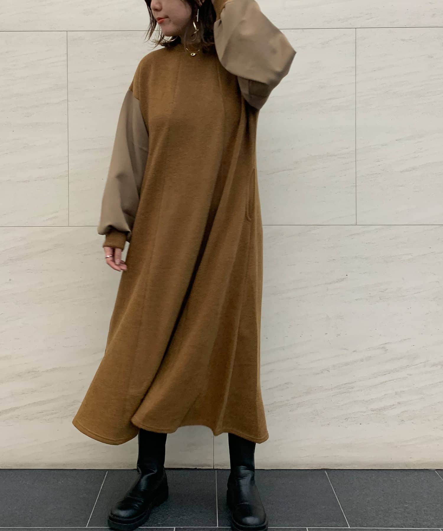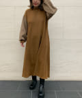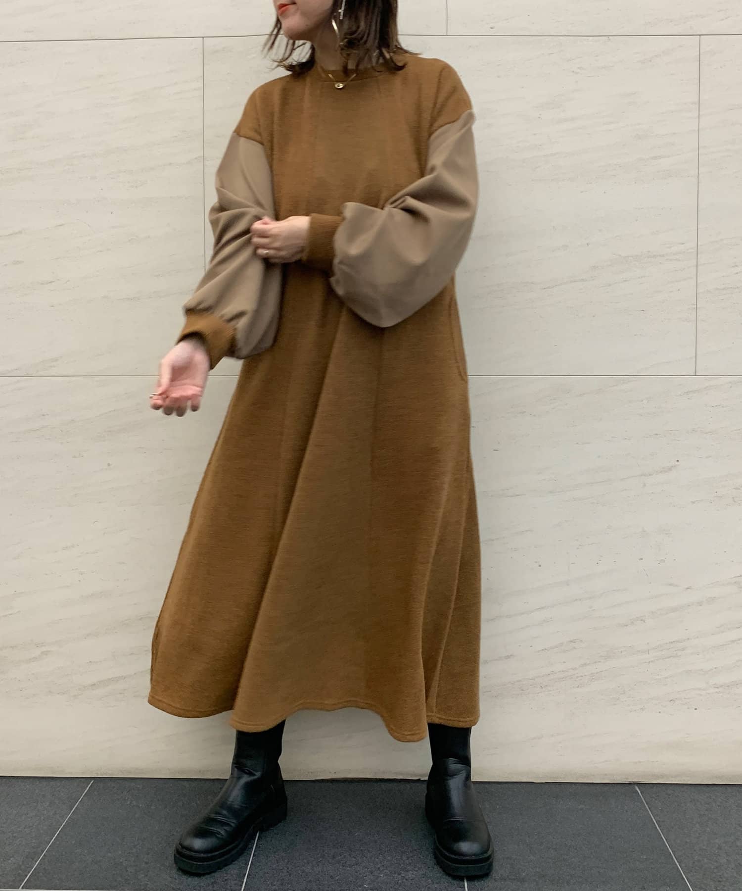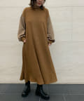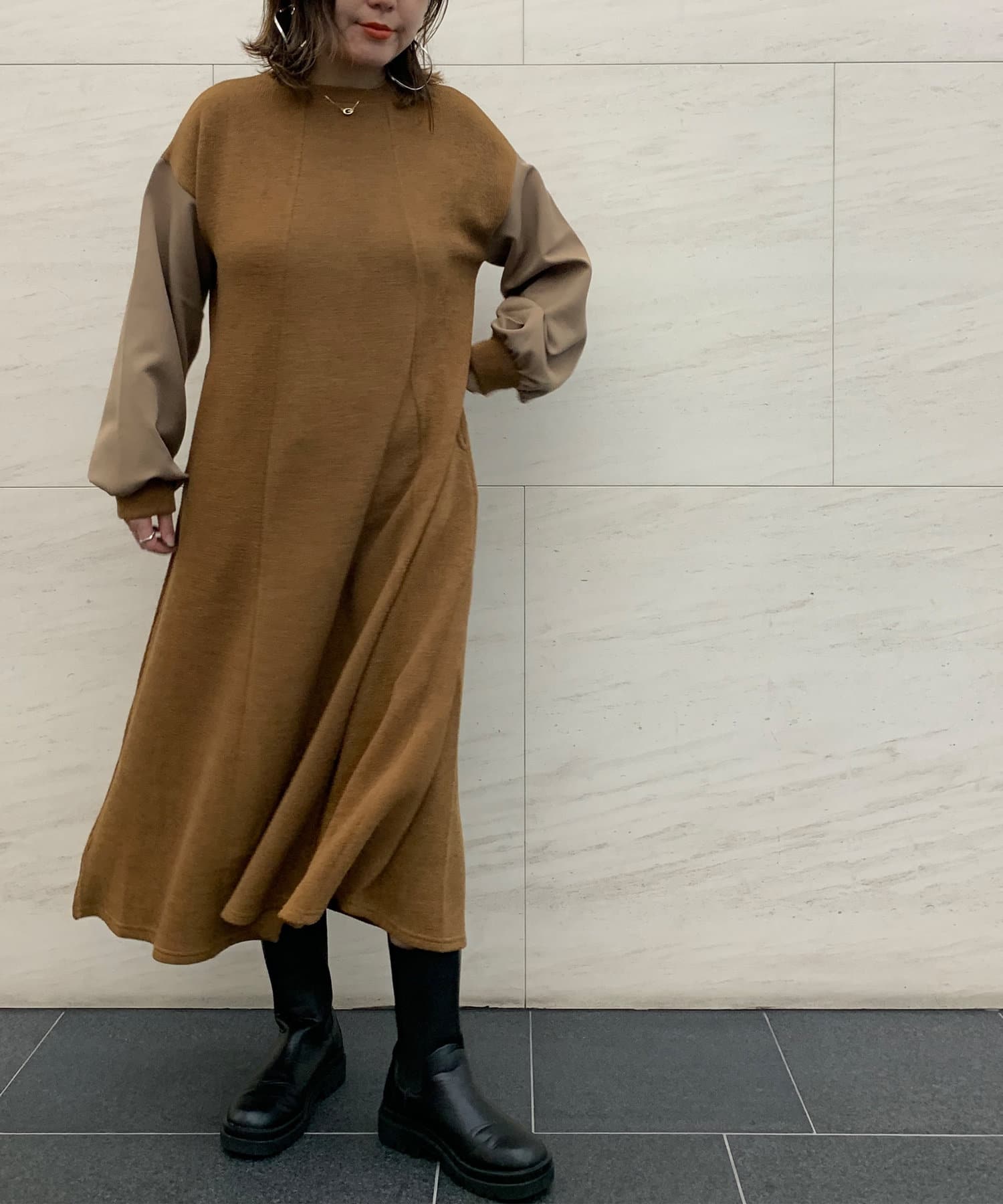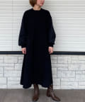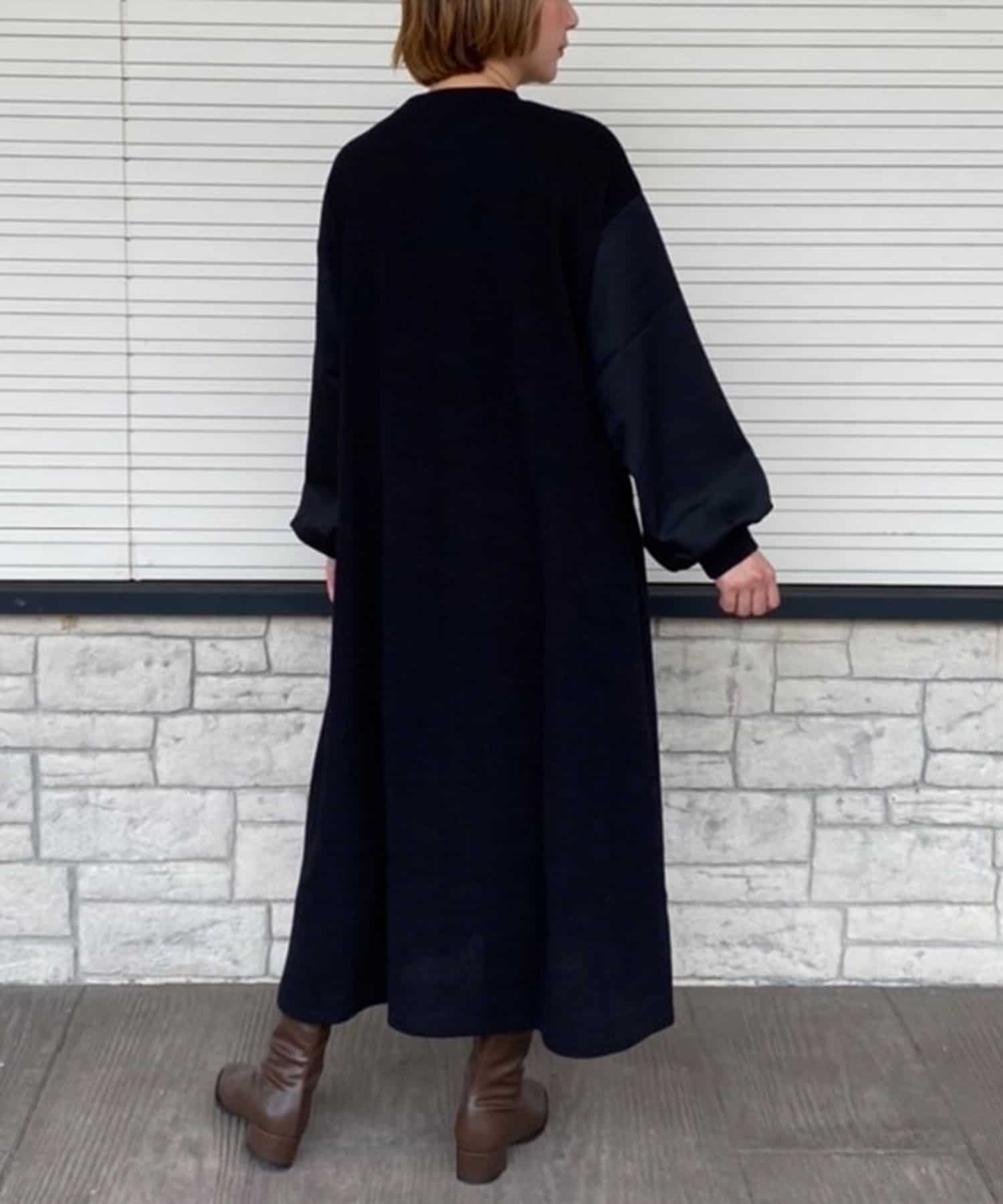 ・袖は布帛になっているのでアウターを羽織る季節にもレイヤードしやすいワンピース。