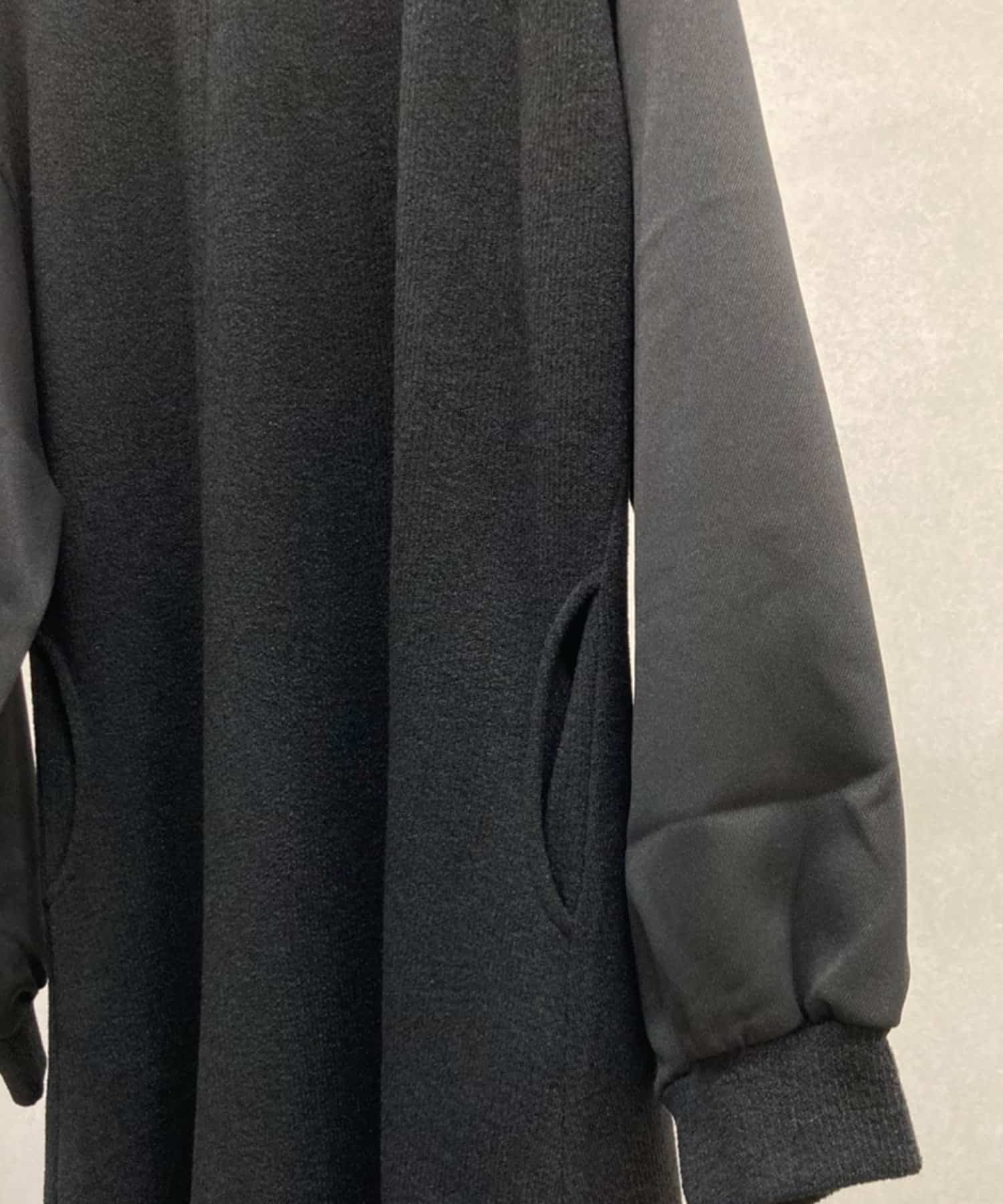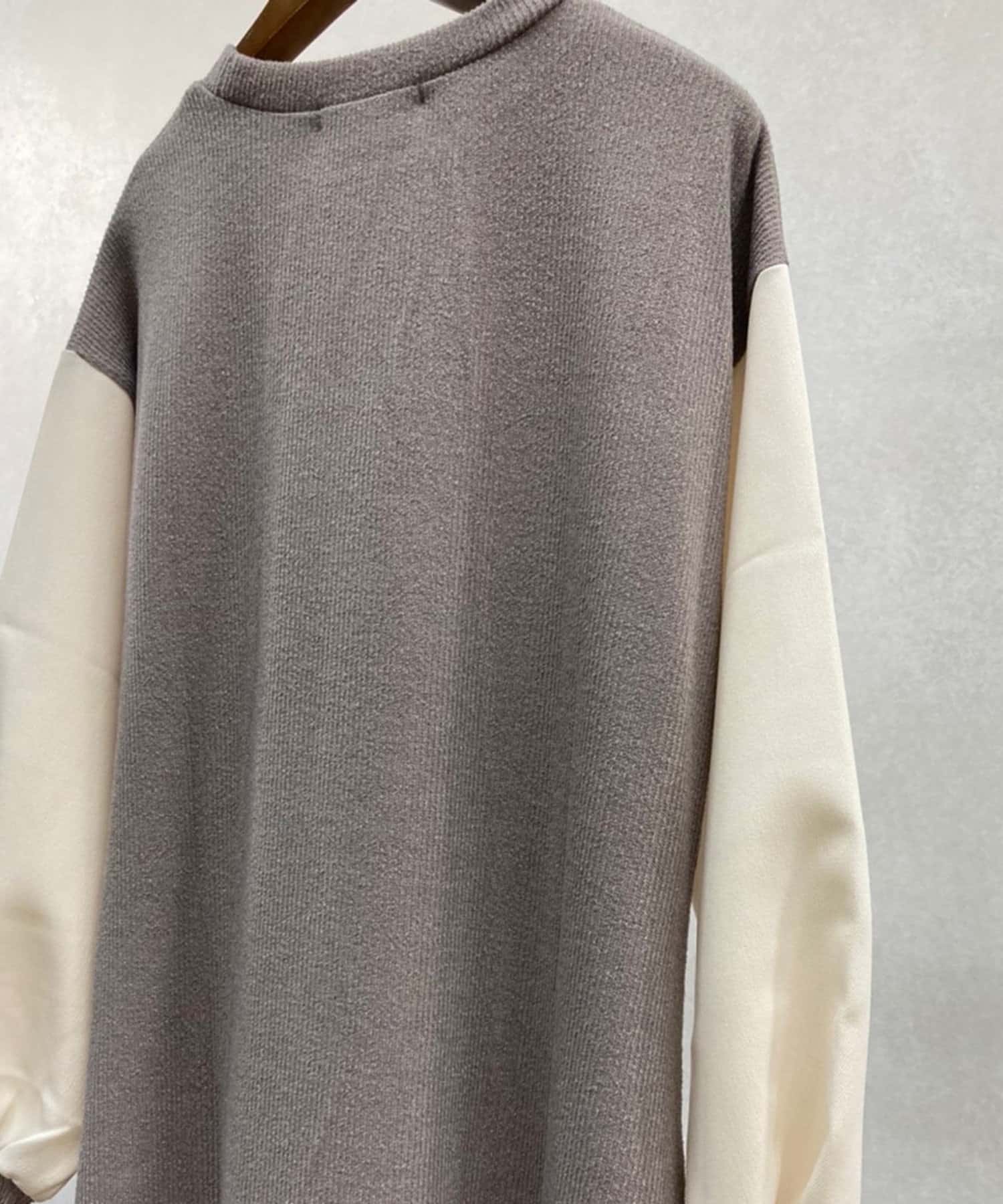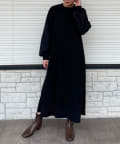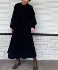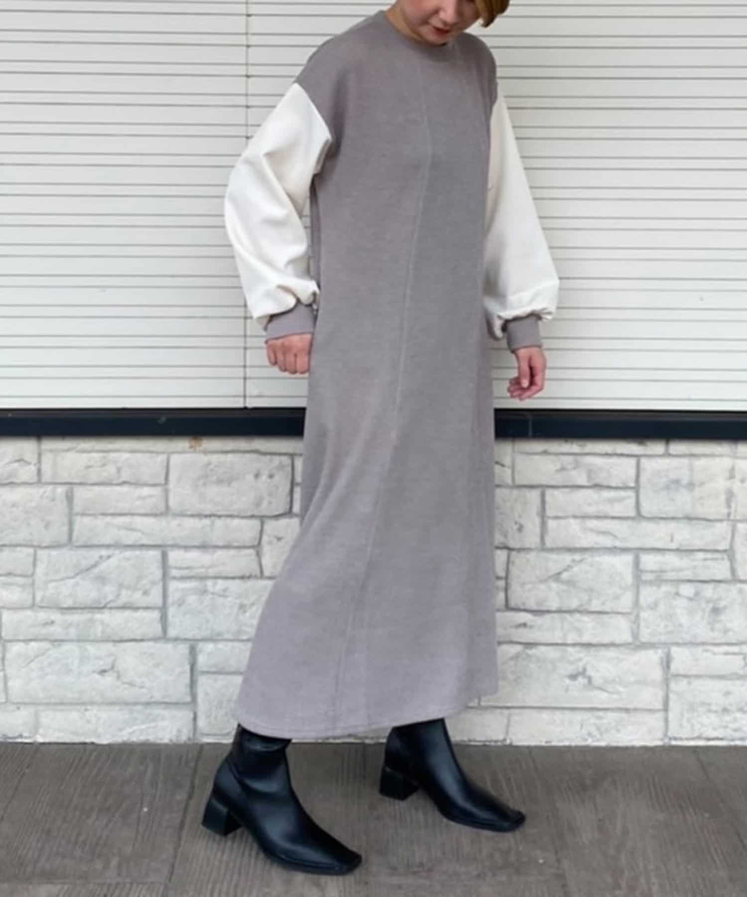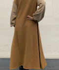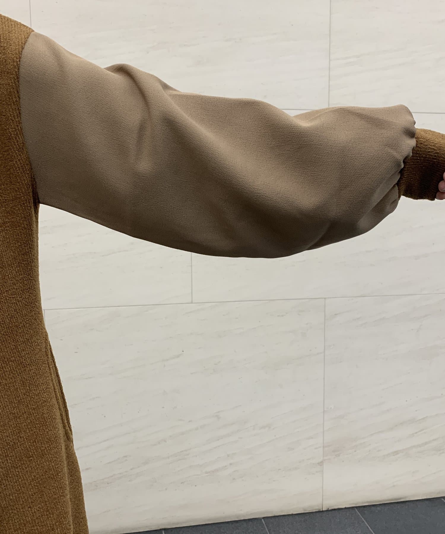 ・袖は布帛になっているのでアウターを羽織る季節にもレイヤードしやすいワンピース。