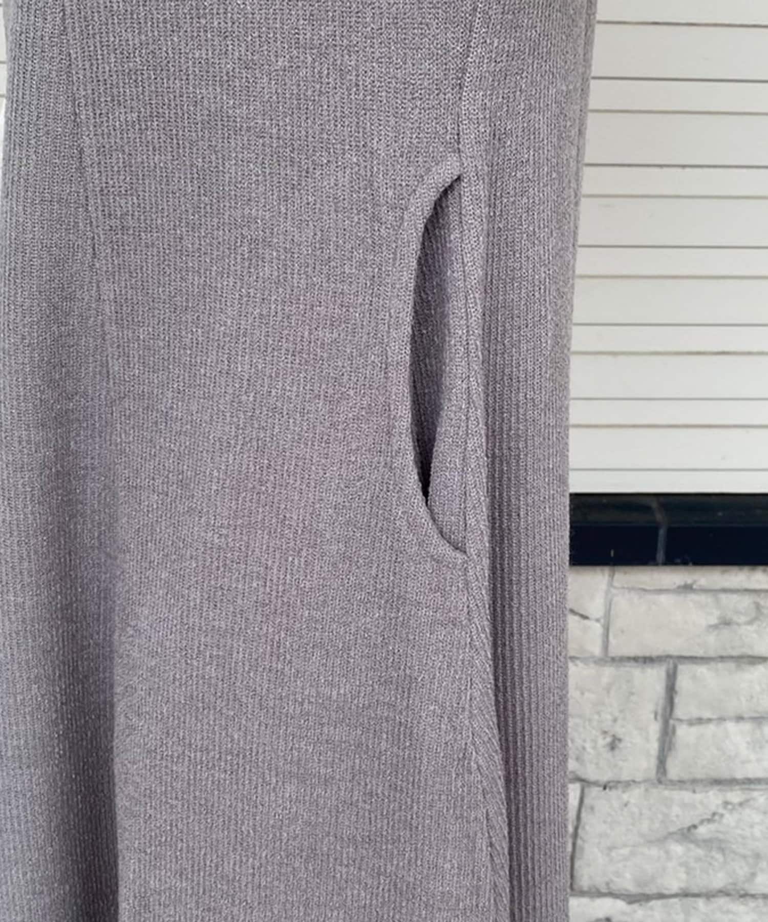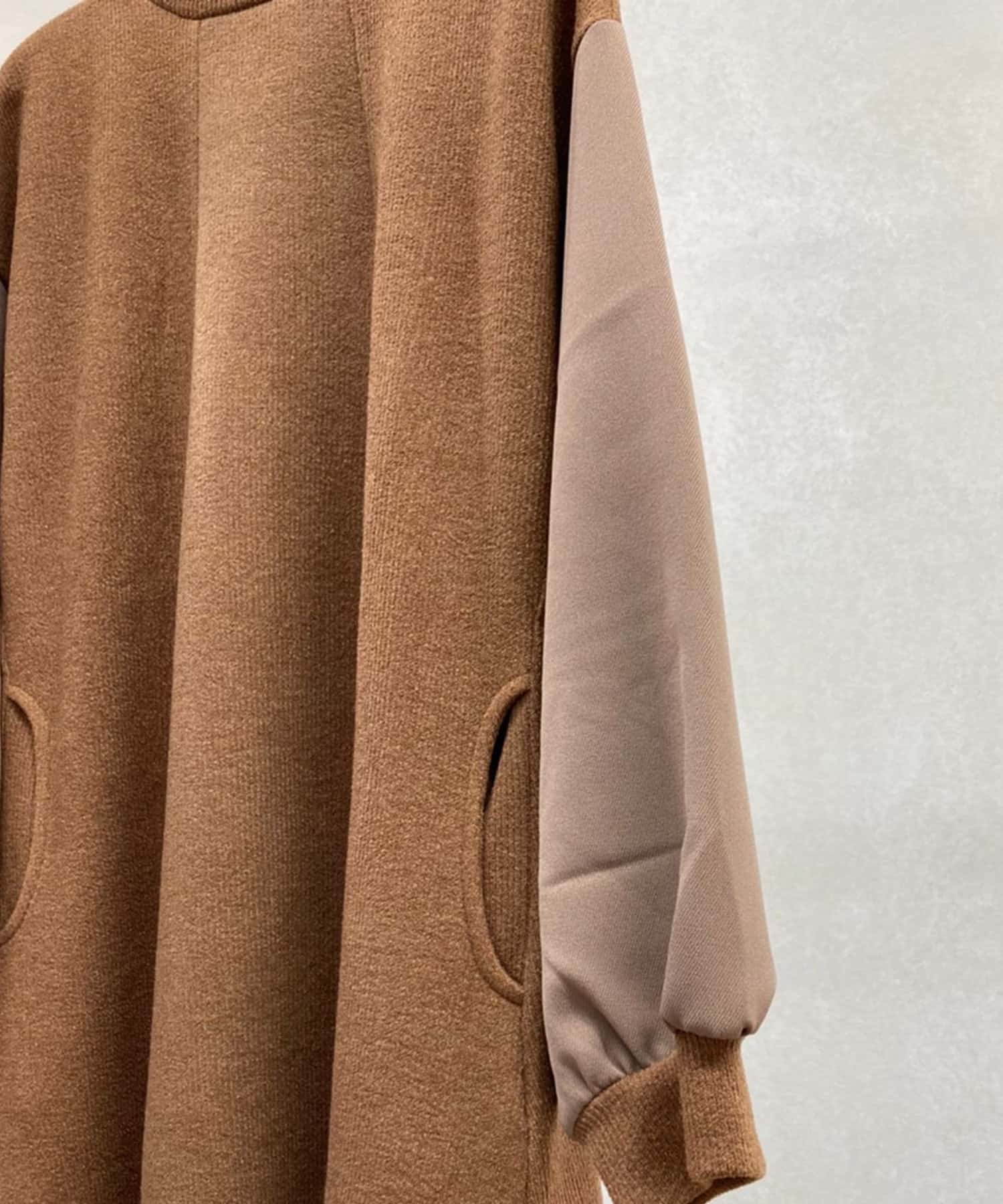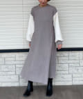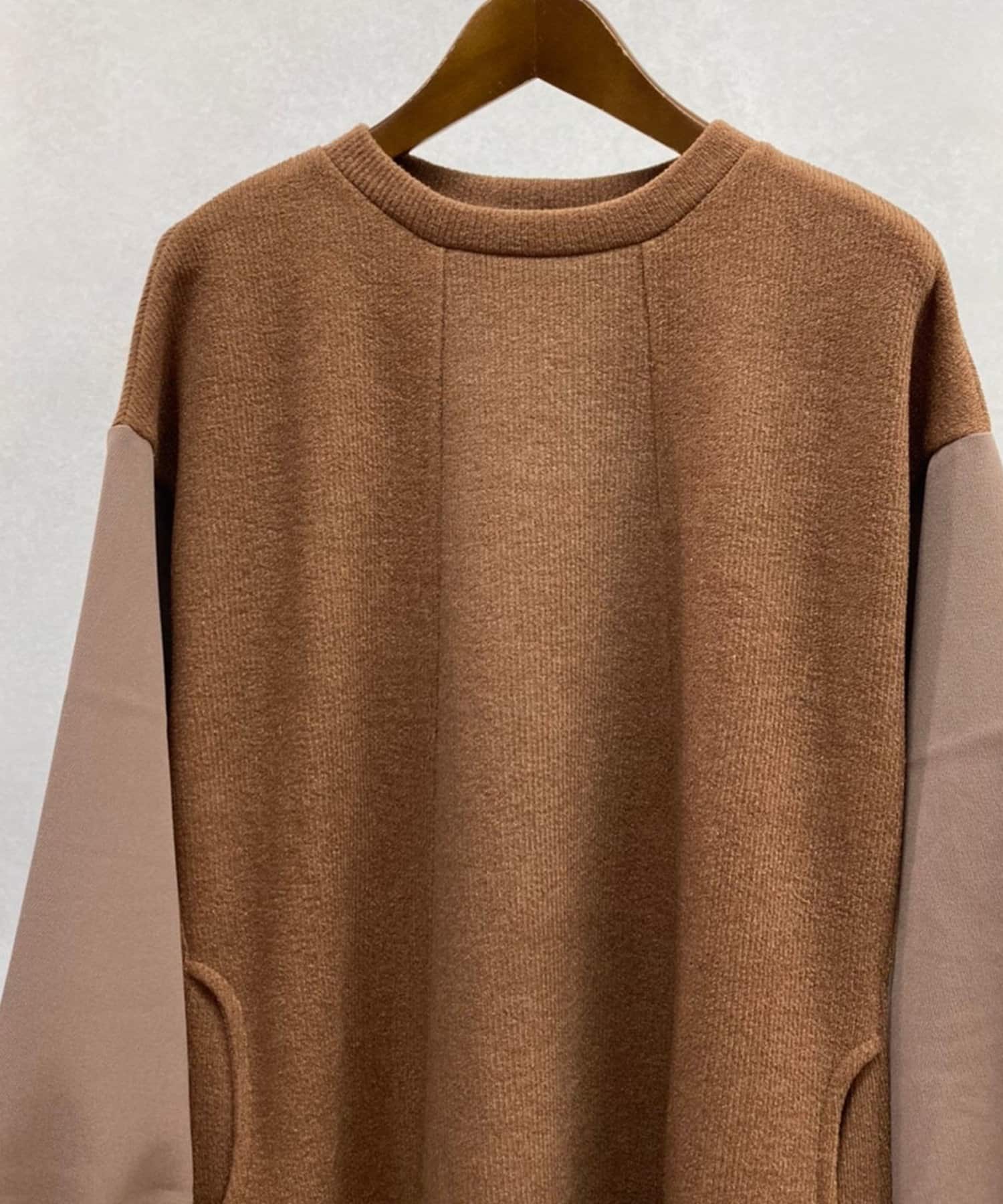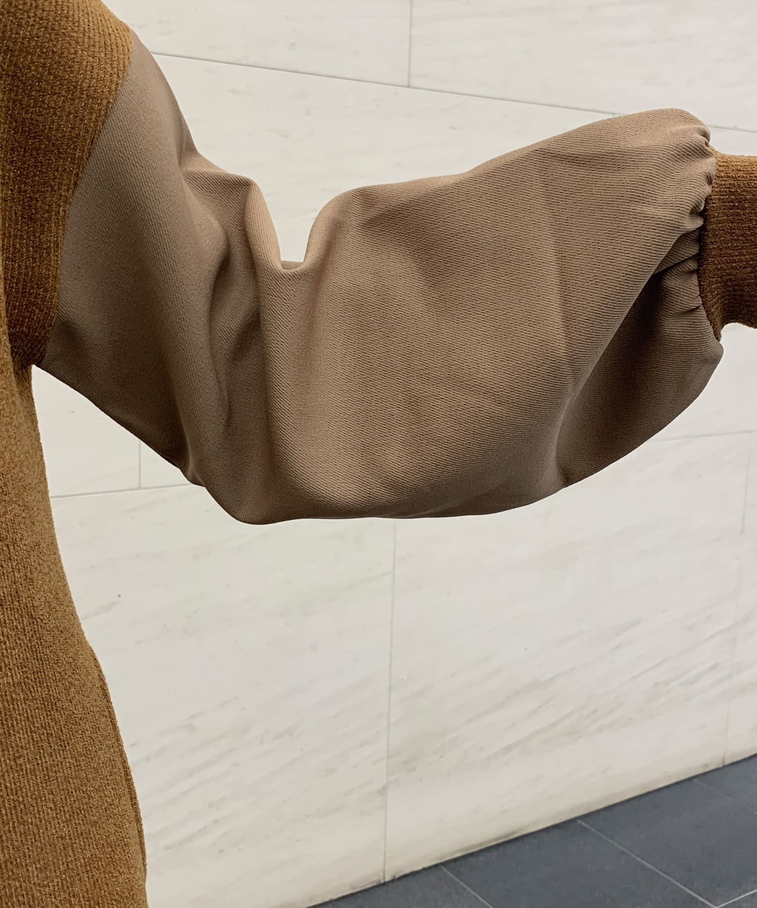 ・袖は布帛になっているのでアウターを羽織る季節にもレイヤードしやすいワンピース。