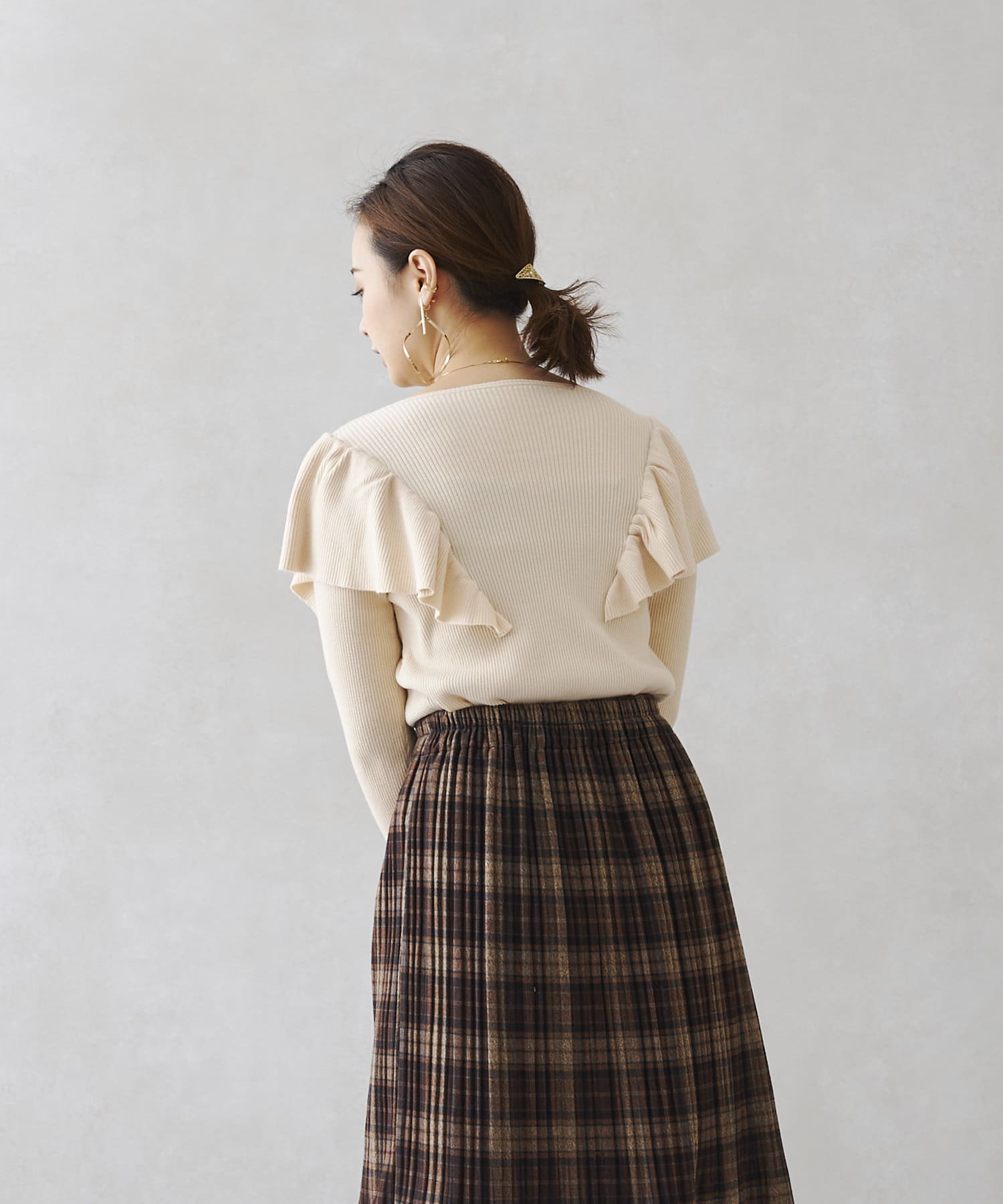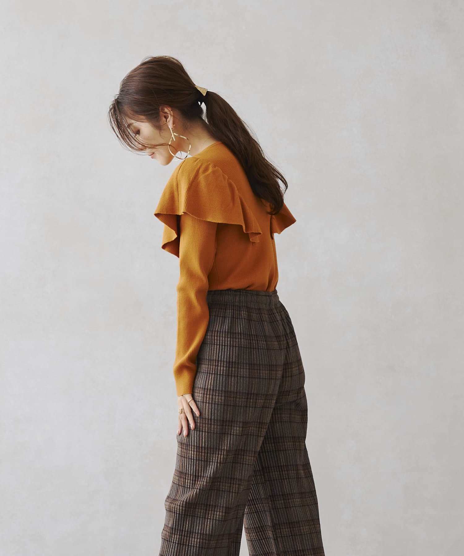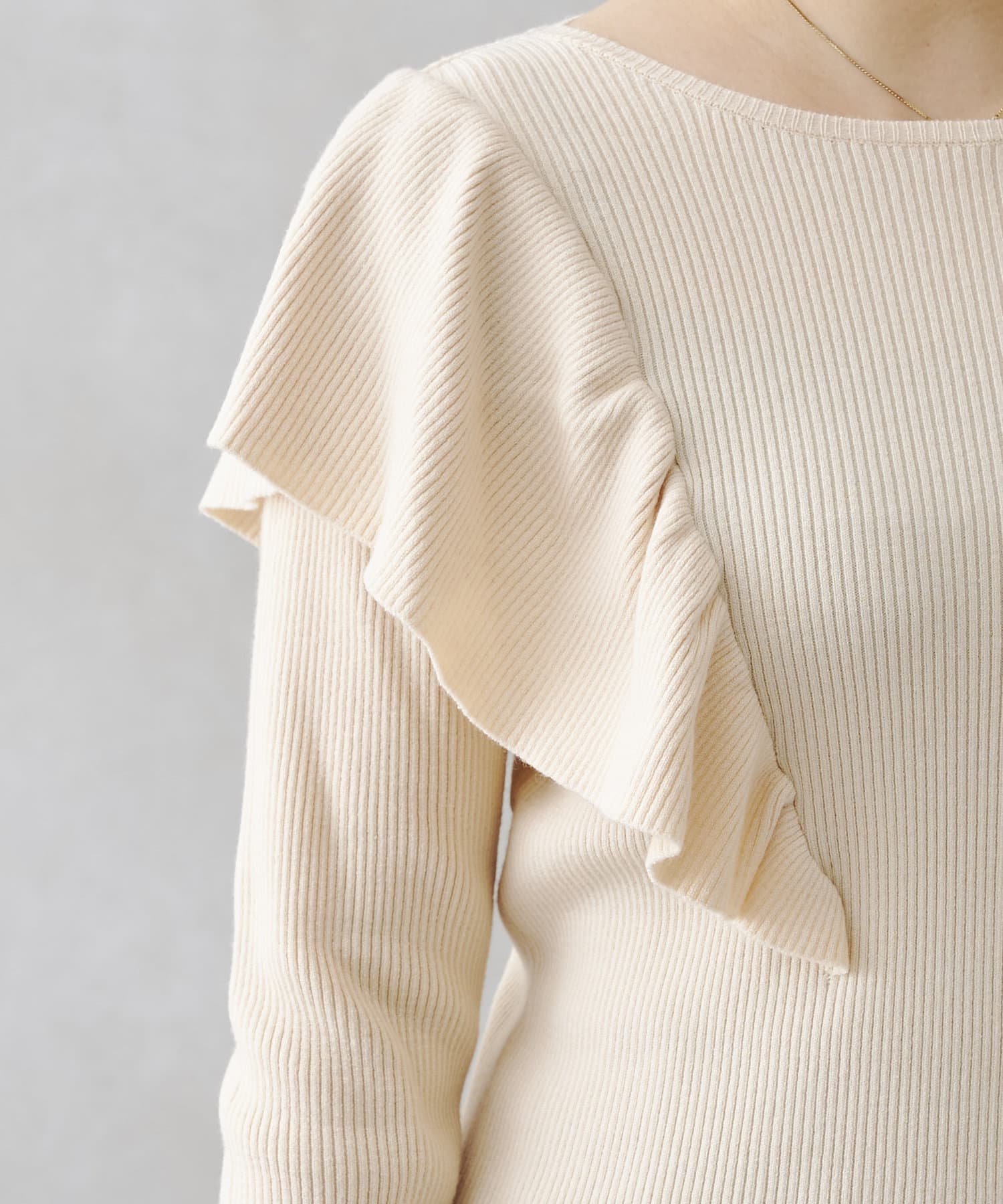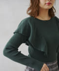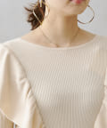 フリルショルダーリブニットプルオーバー