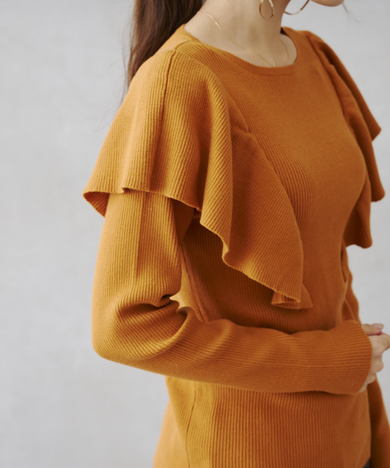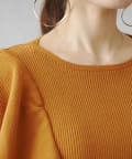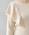 ・肩にフリルを施したリブニットセーター。