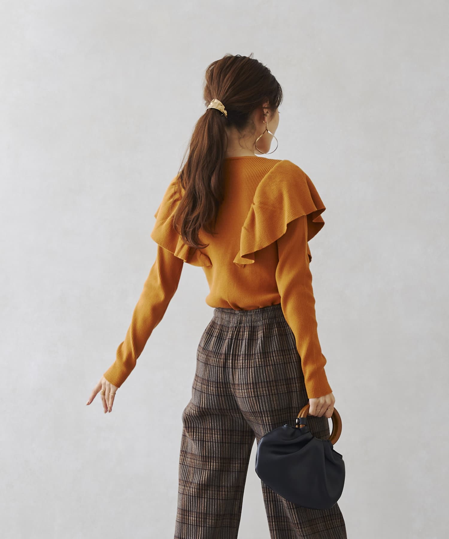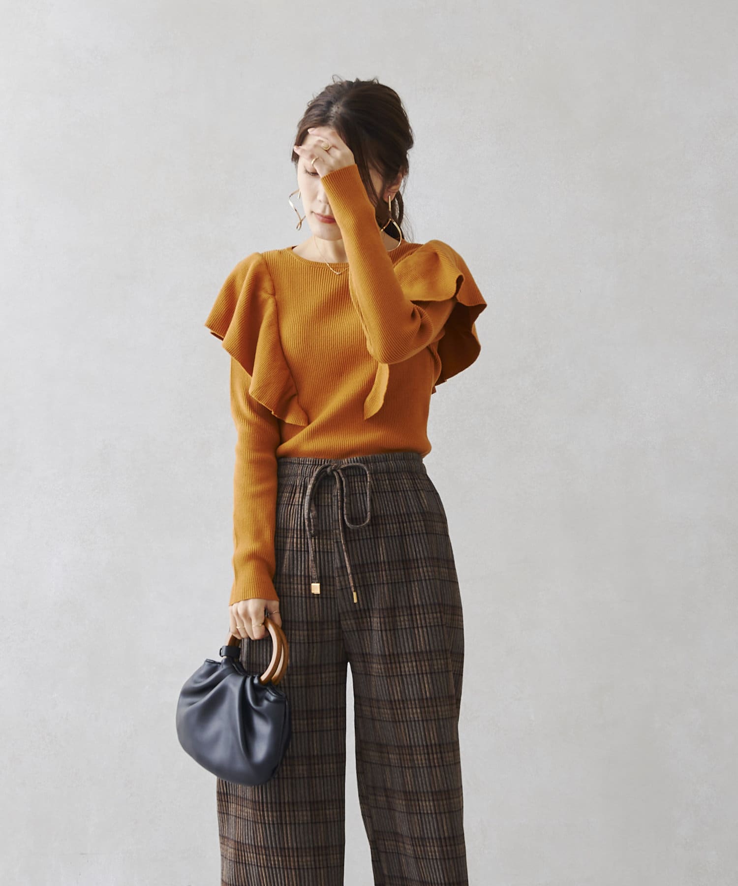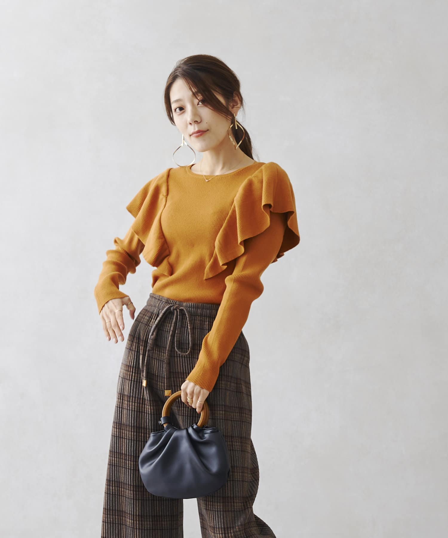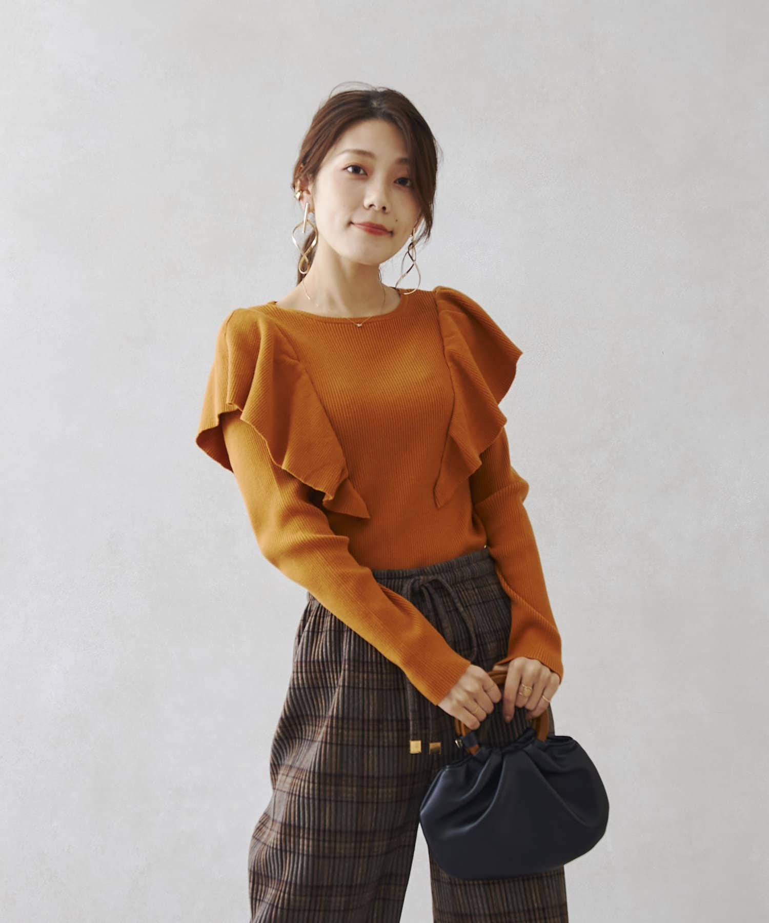 肩にフリルを施した今季注目のオトナフェミニンなニット