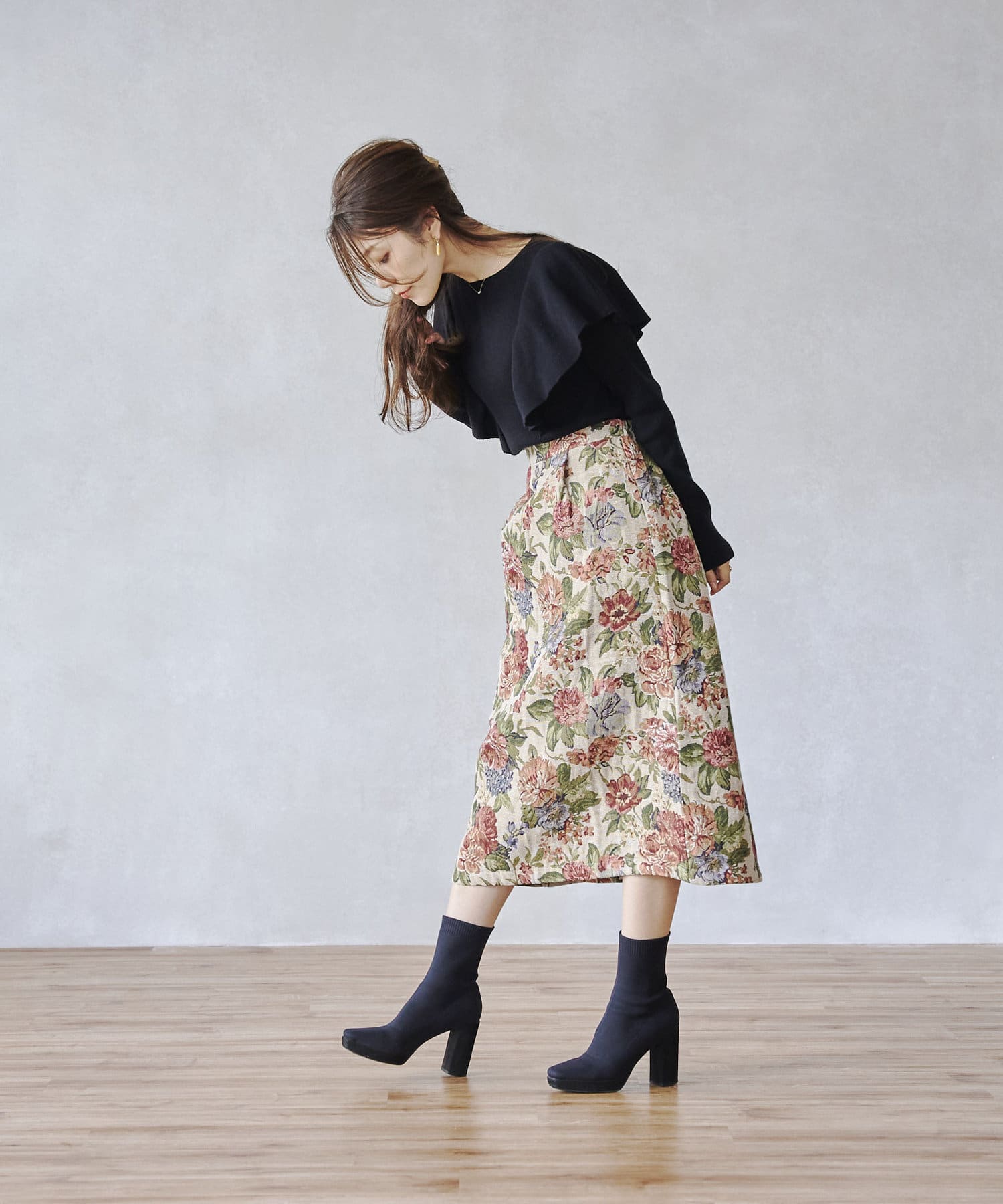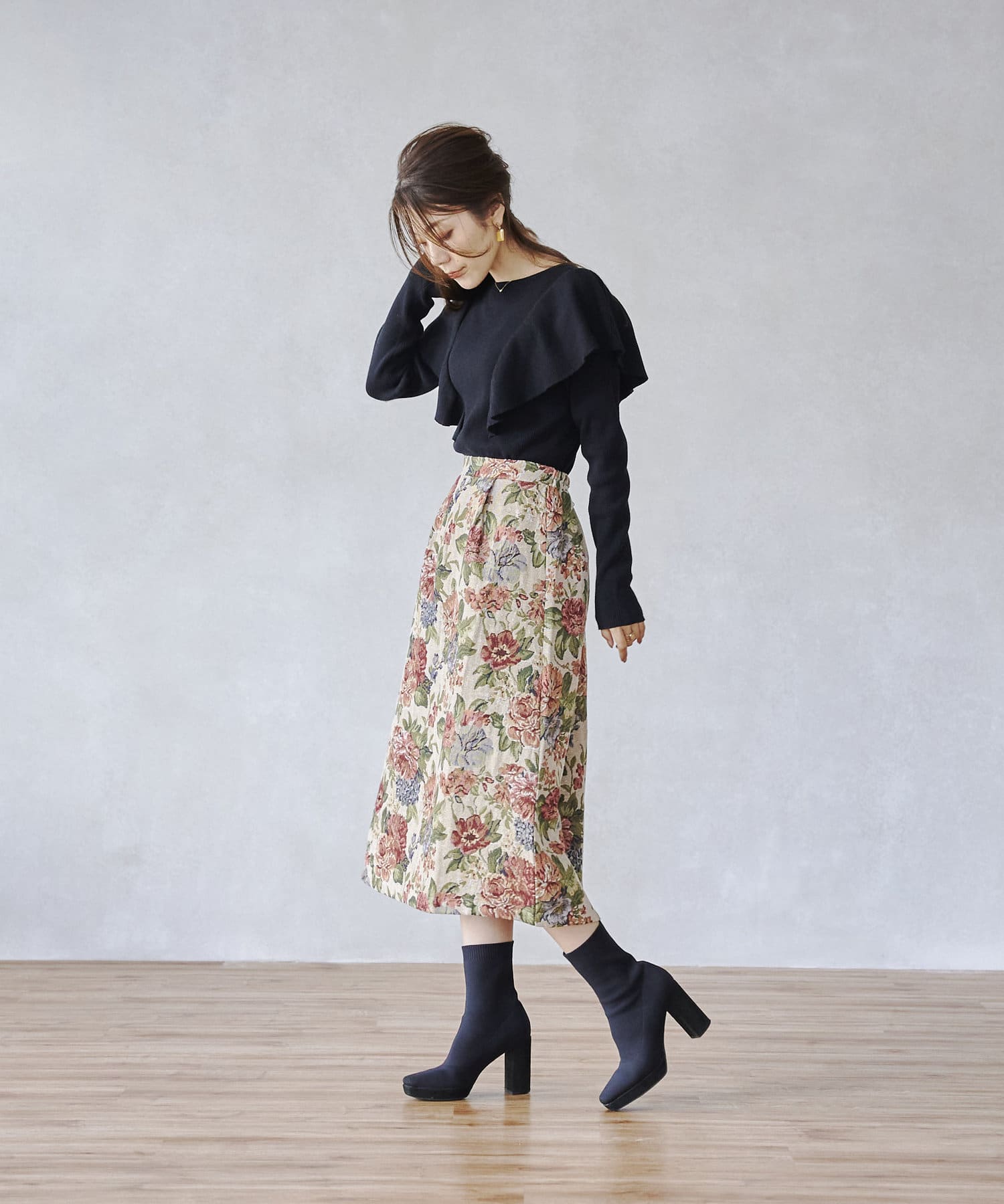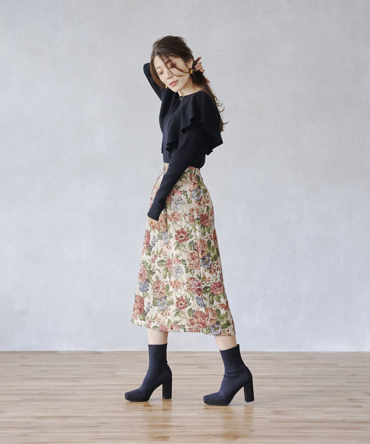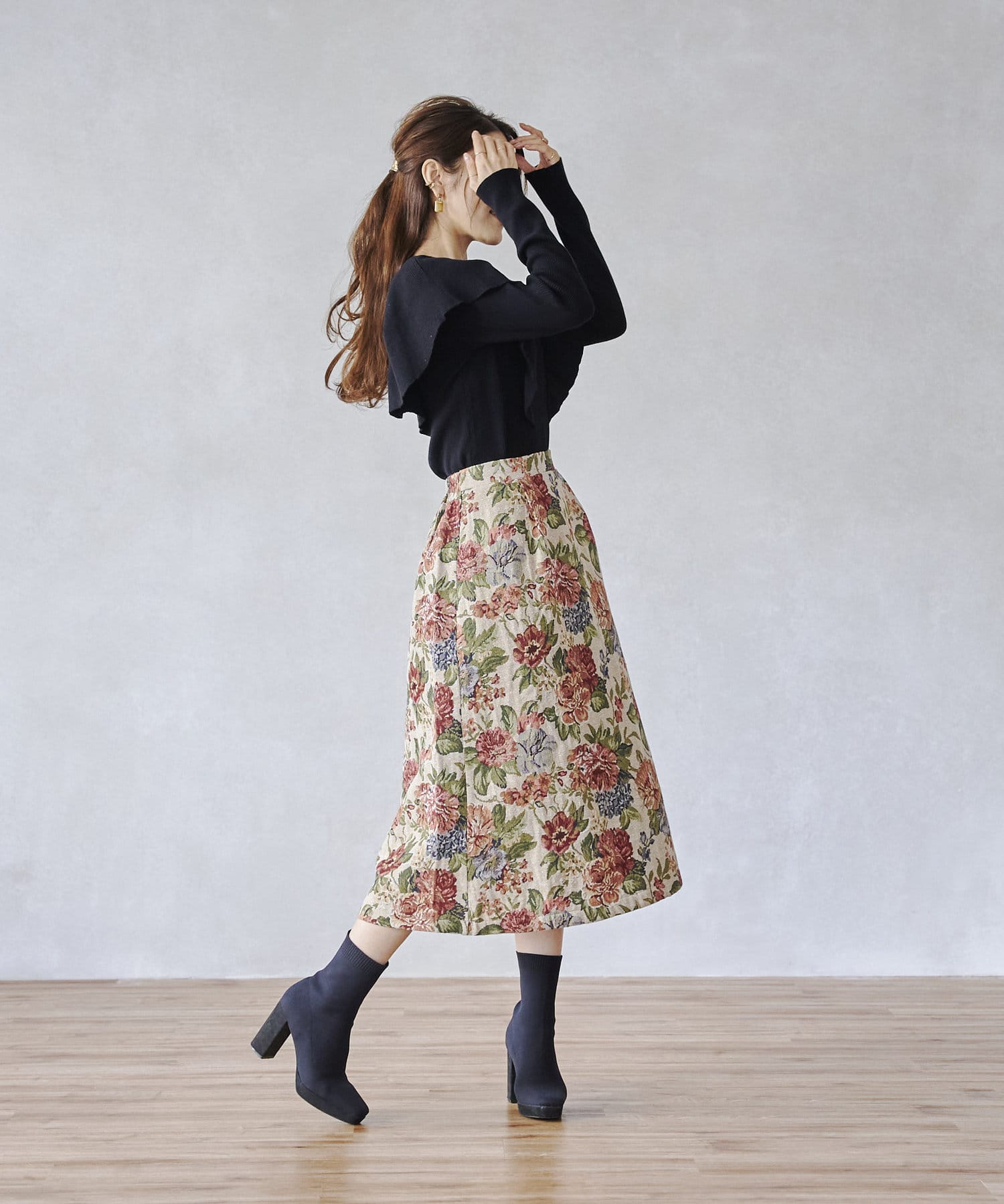 ピッタリ。スカートスタイルとも相性よくお使いできます。