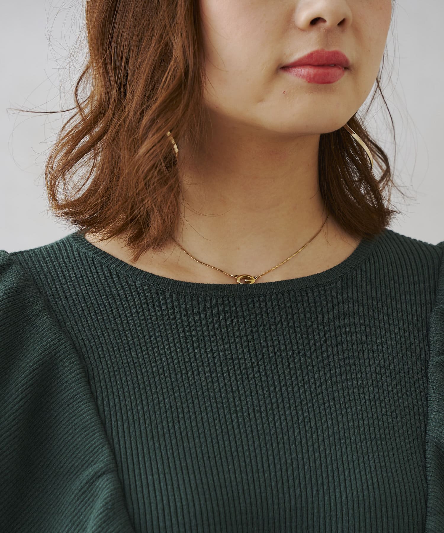 ・インナーにも1枚着でも合わせやすいニットです。