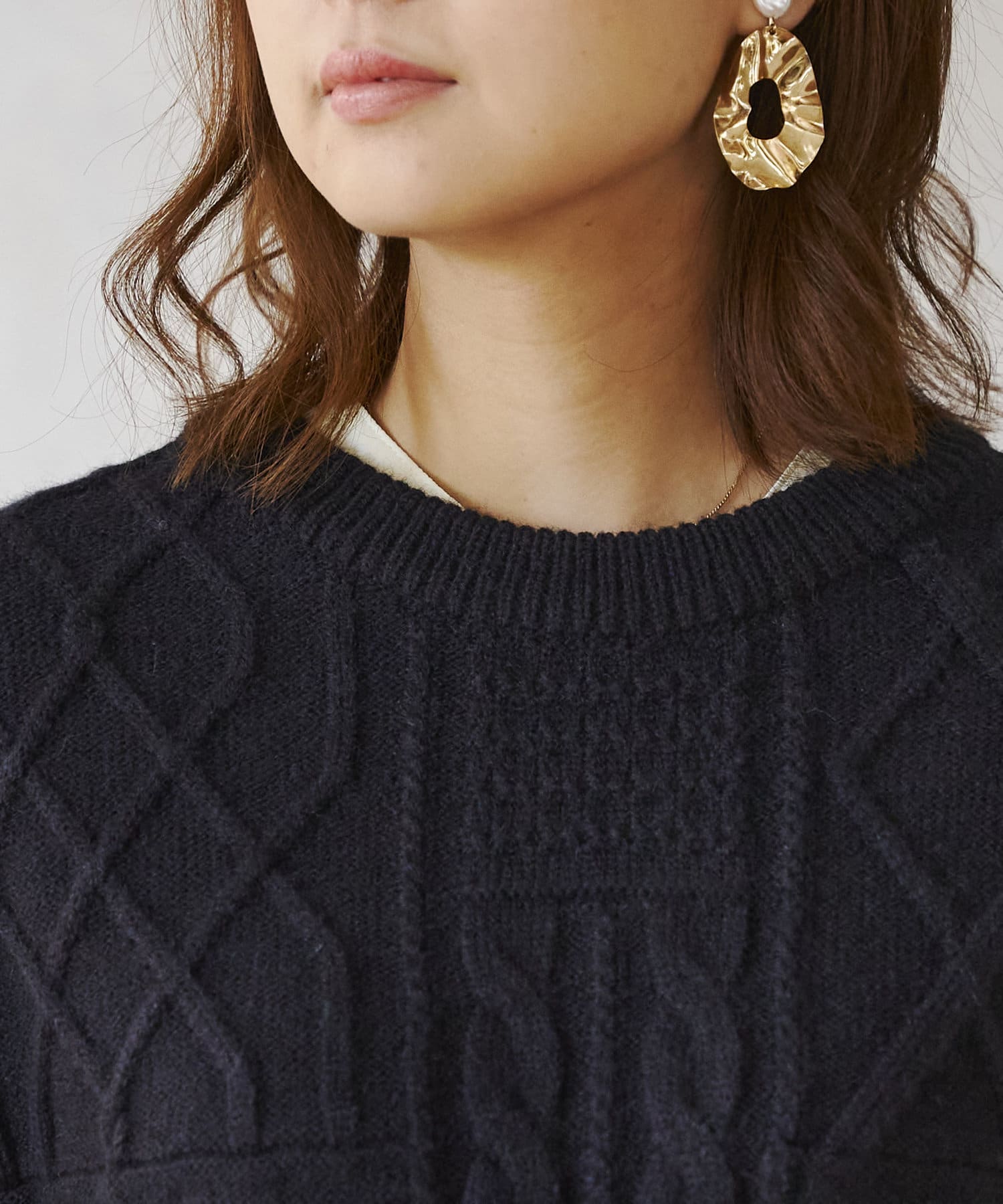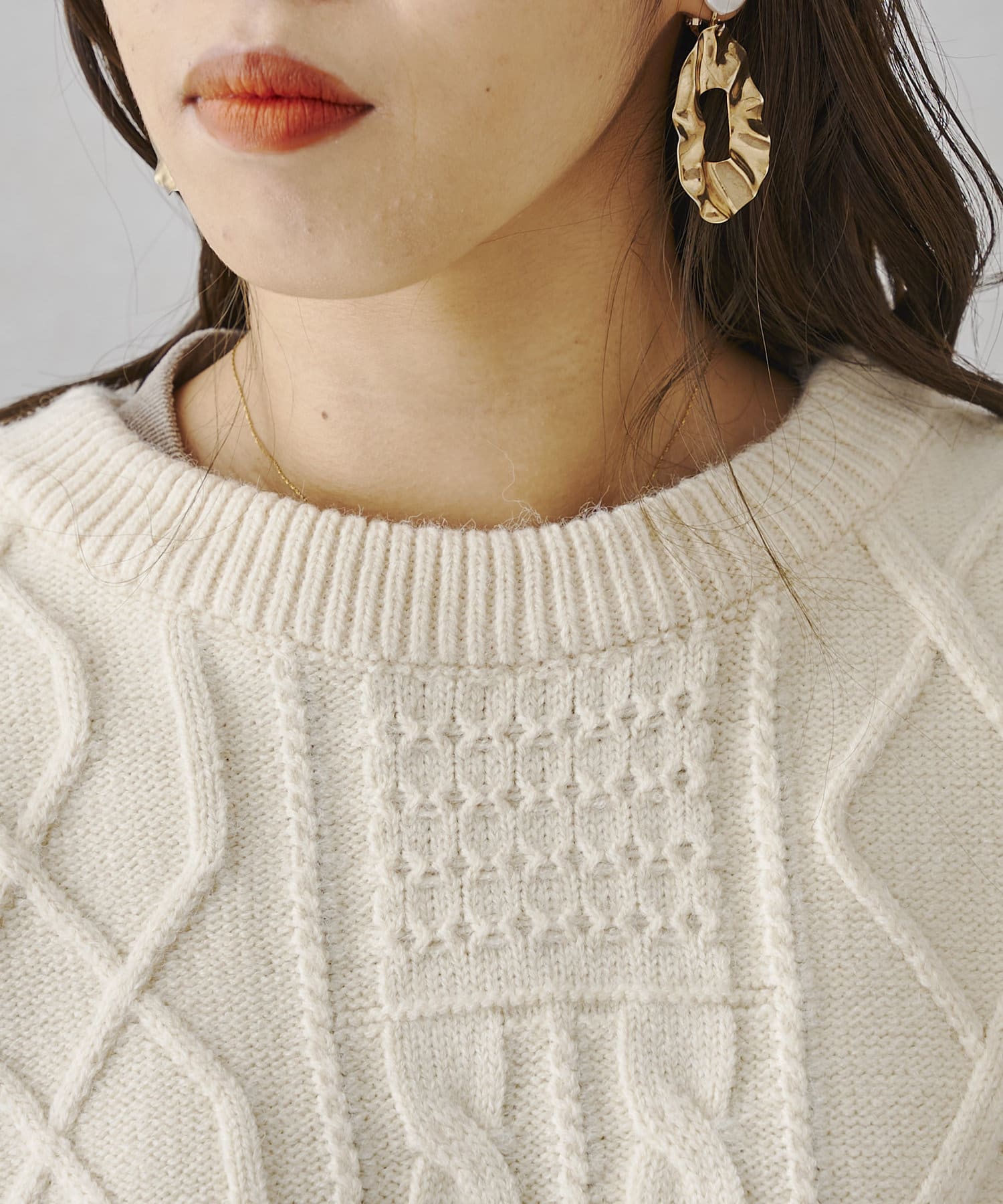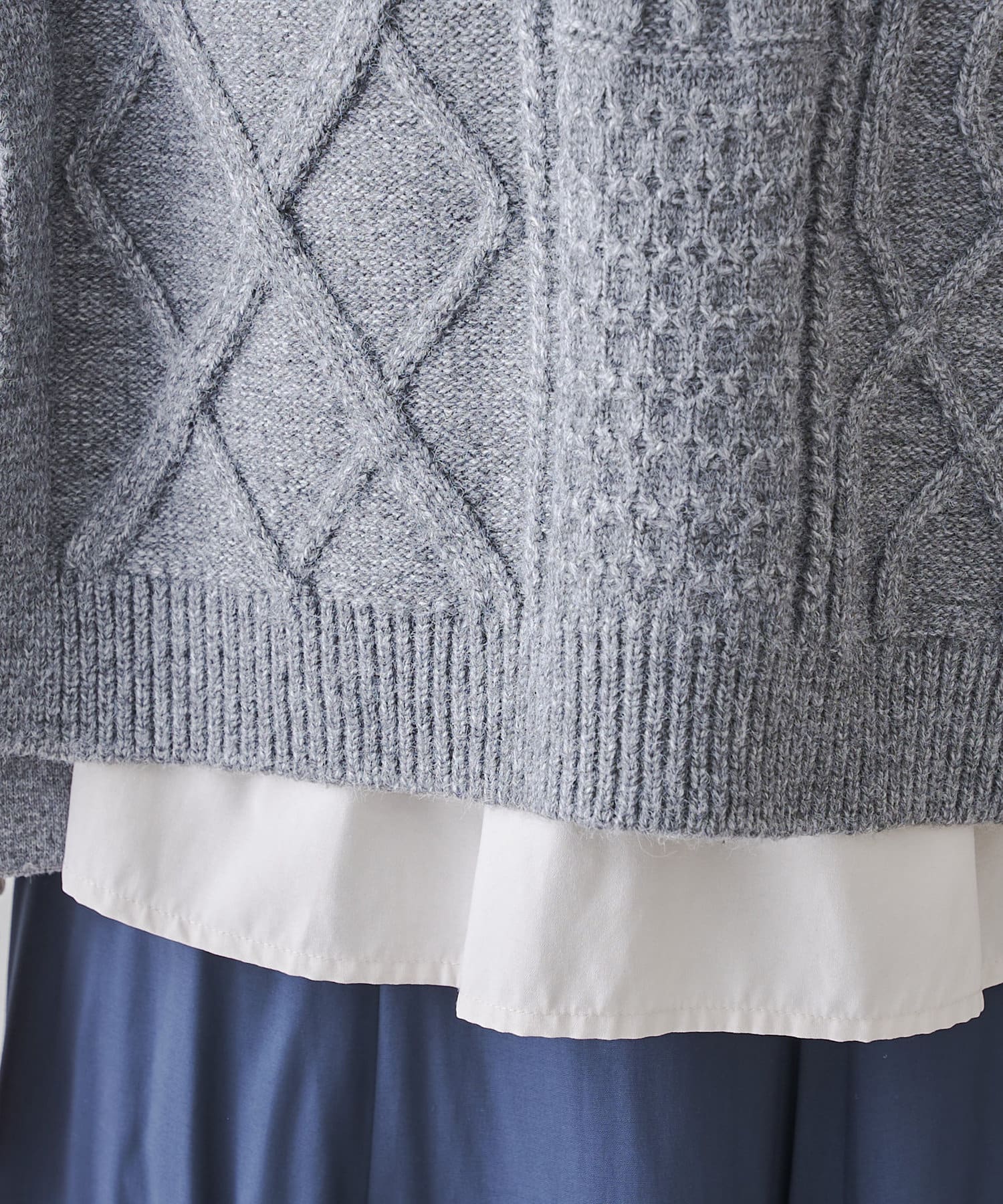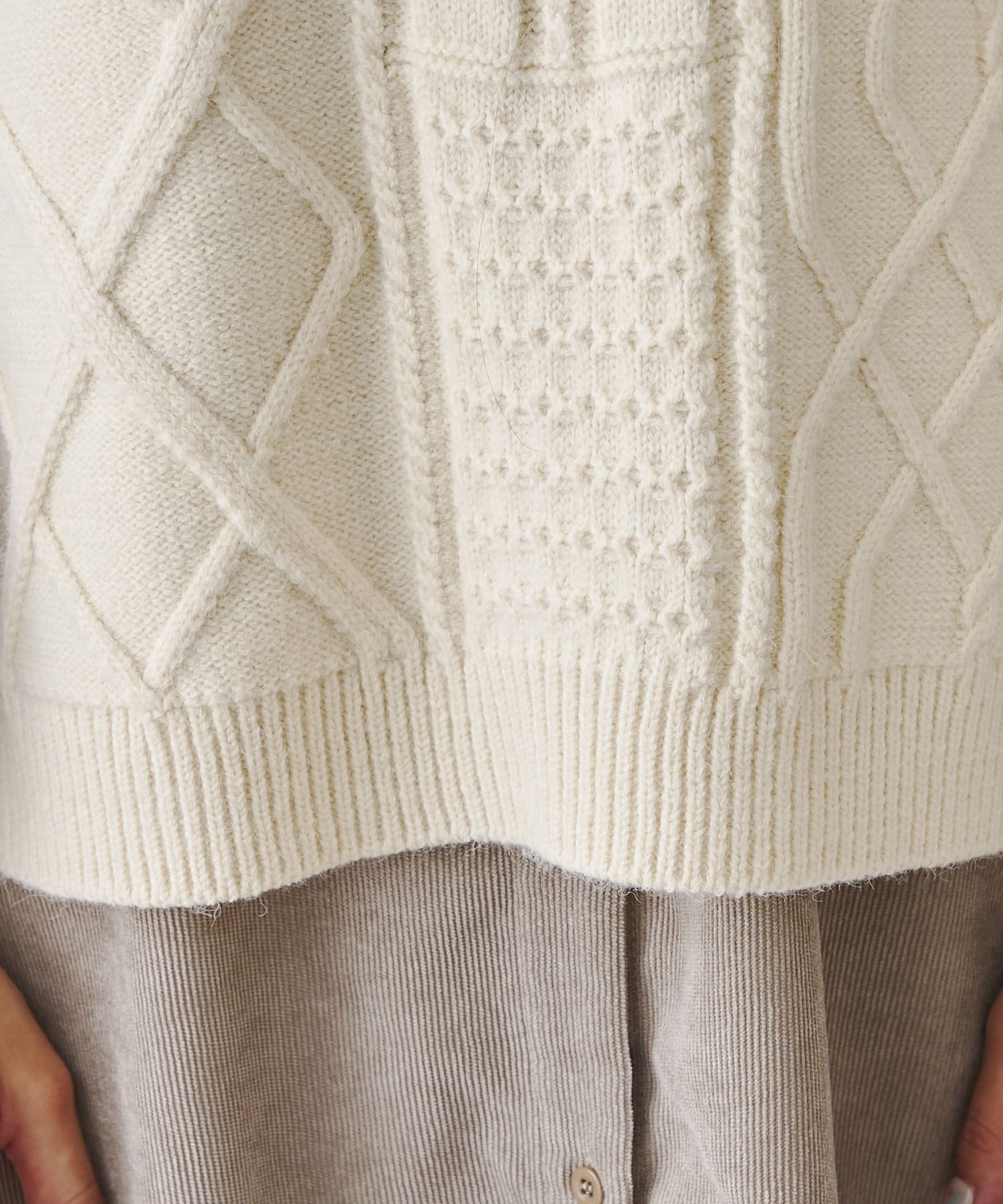 ・編み地切替でメリハリが出て、合わせるだけでこなれた印象に。