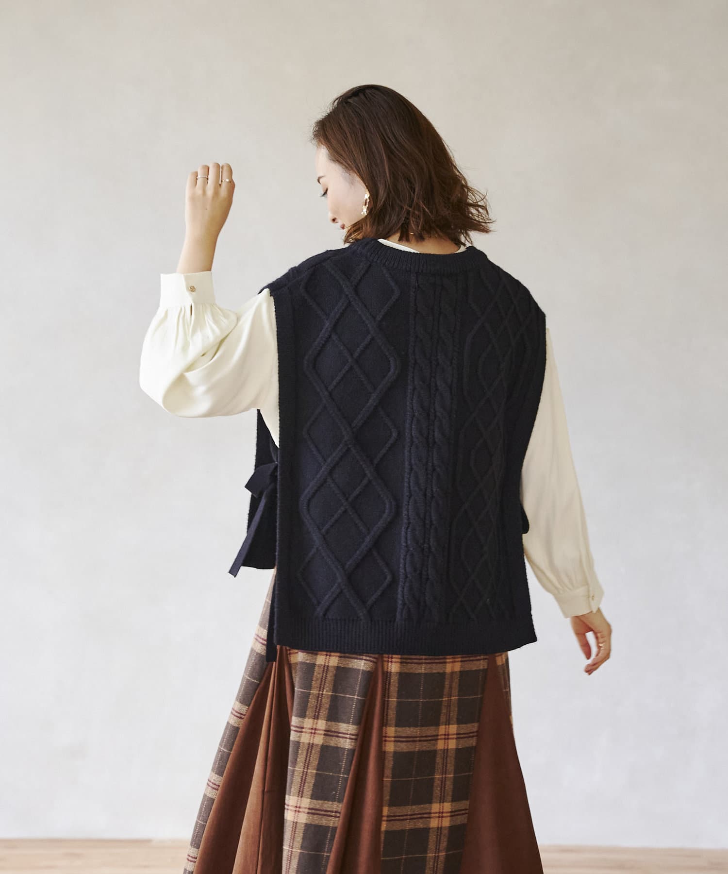 サイドリボンがポイントになった今季1着は手に入れたいニットベスト