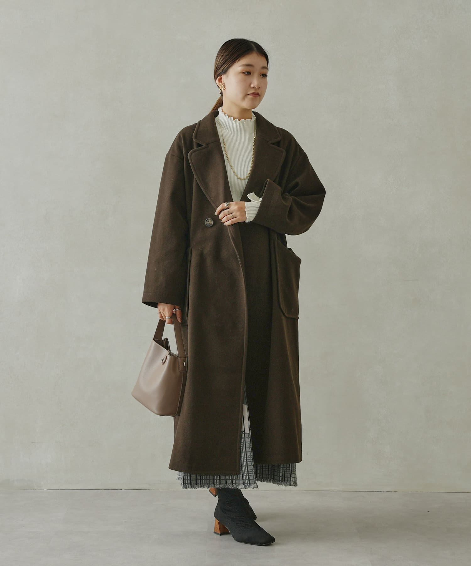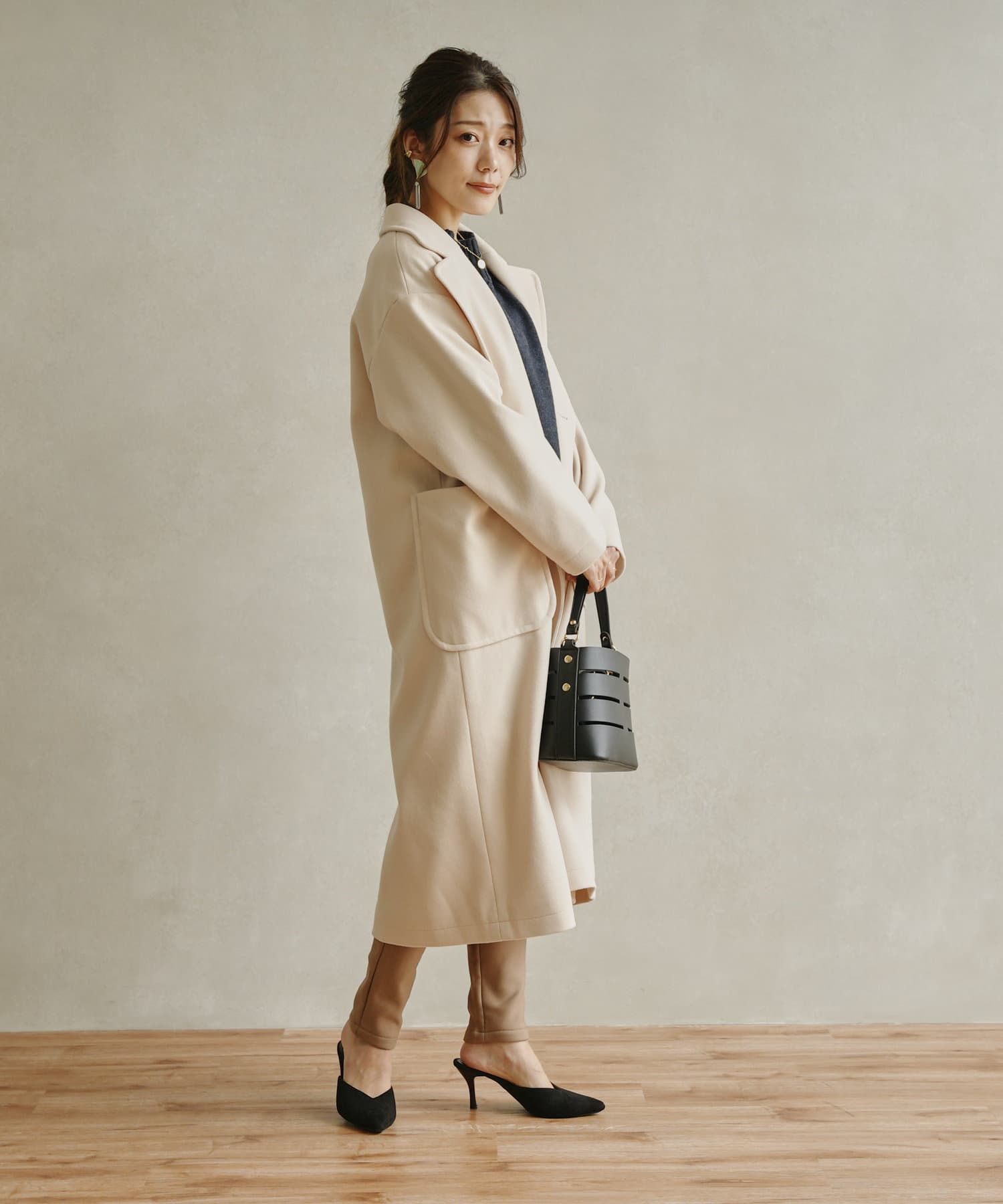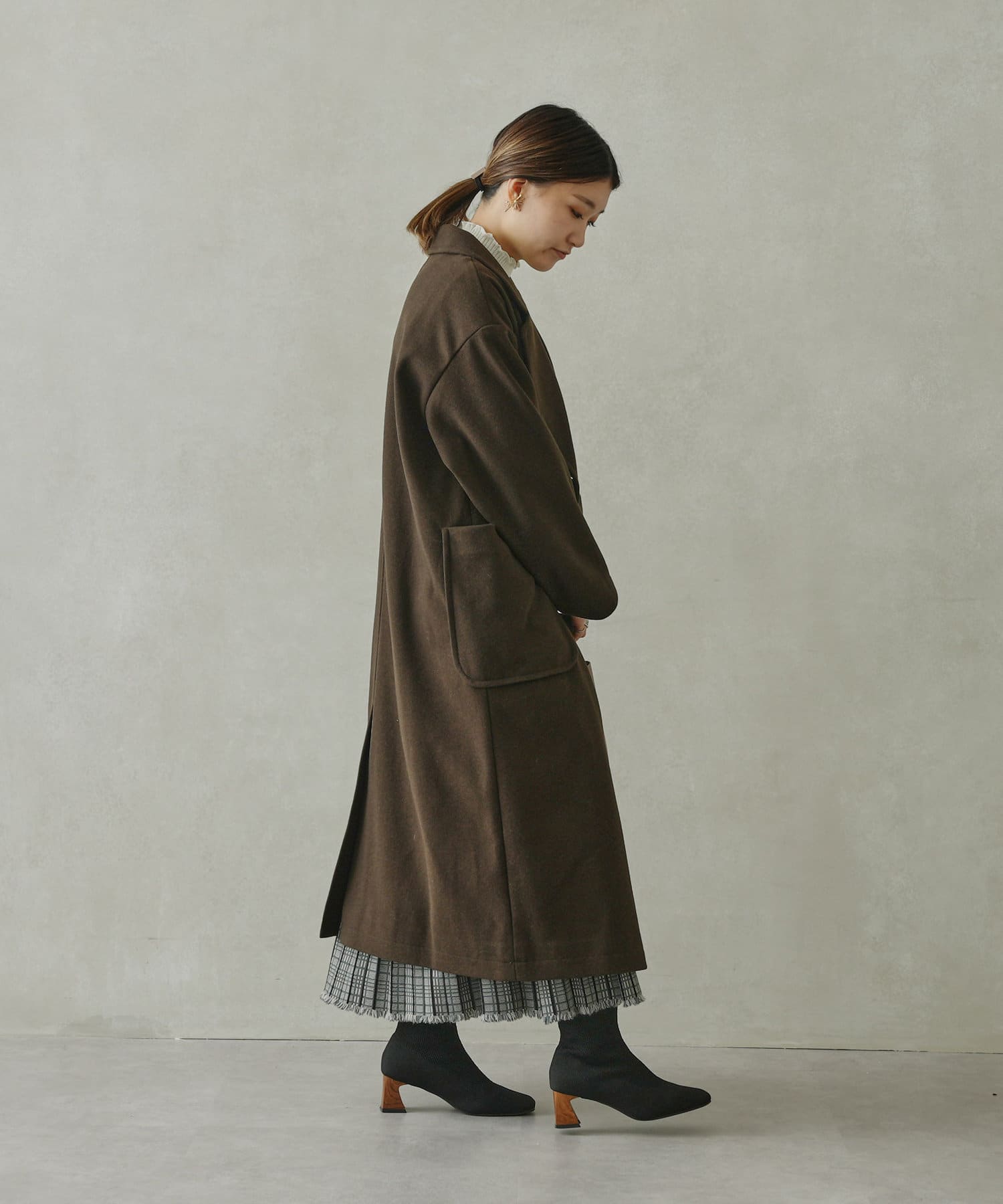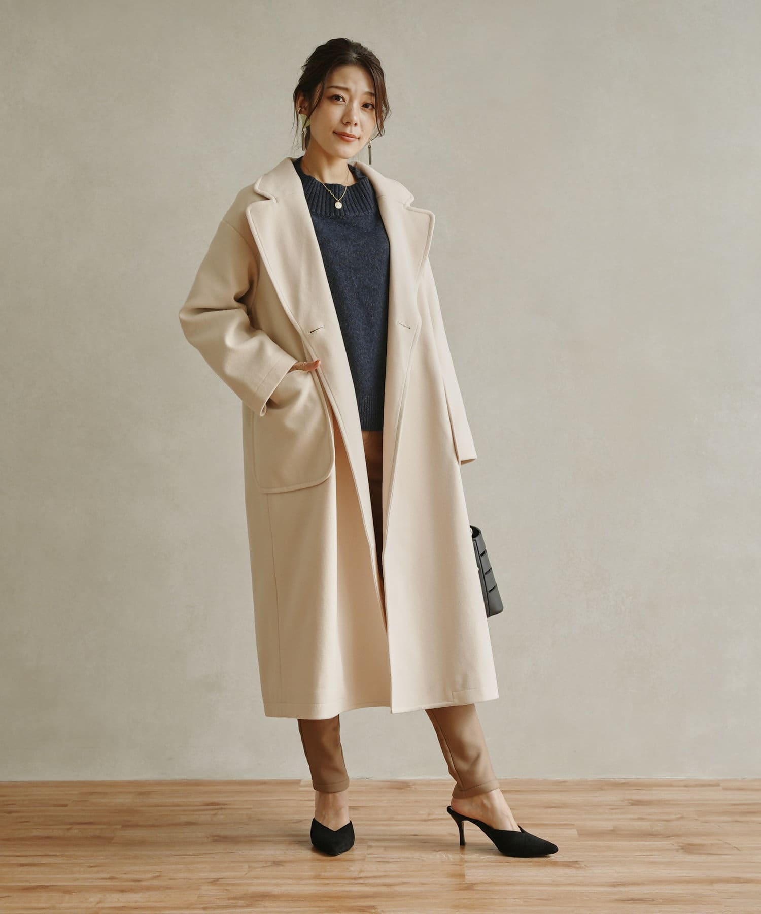 きれいめなコーディネート合わせで通勤スタイルにも活躍するコートです。