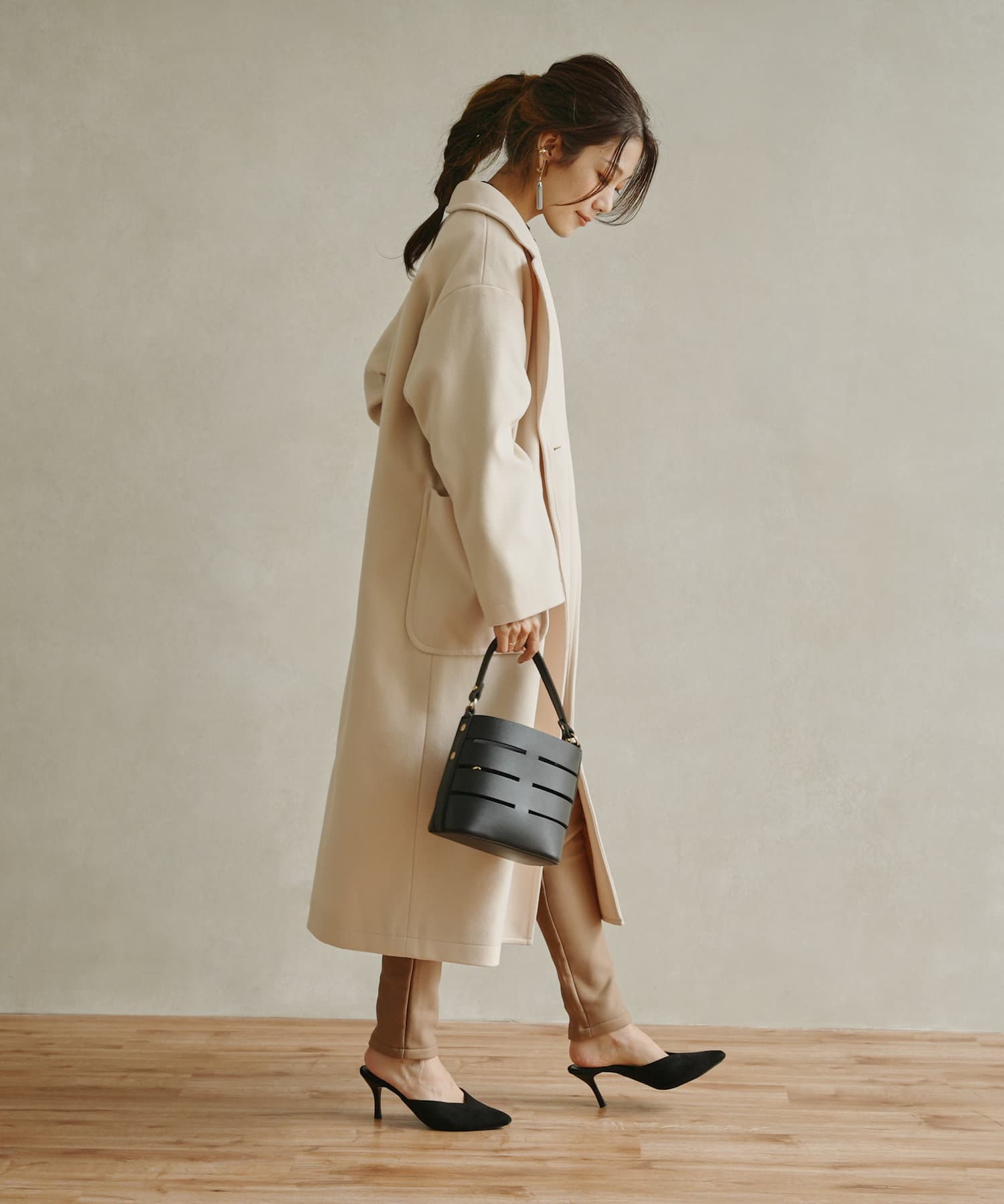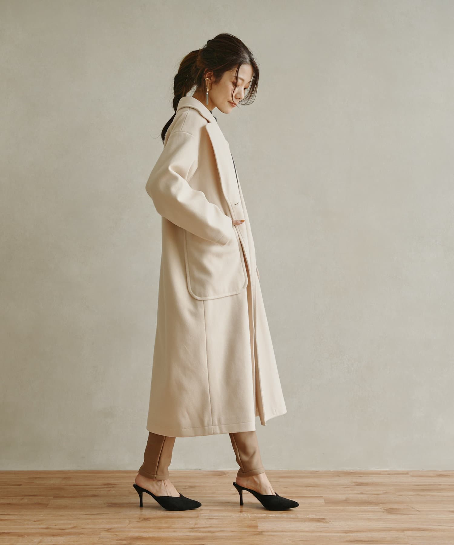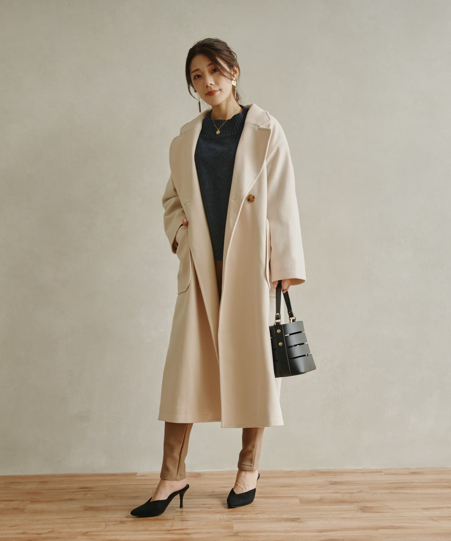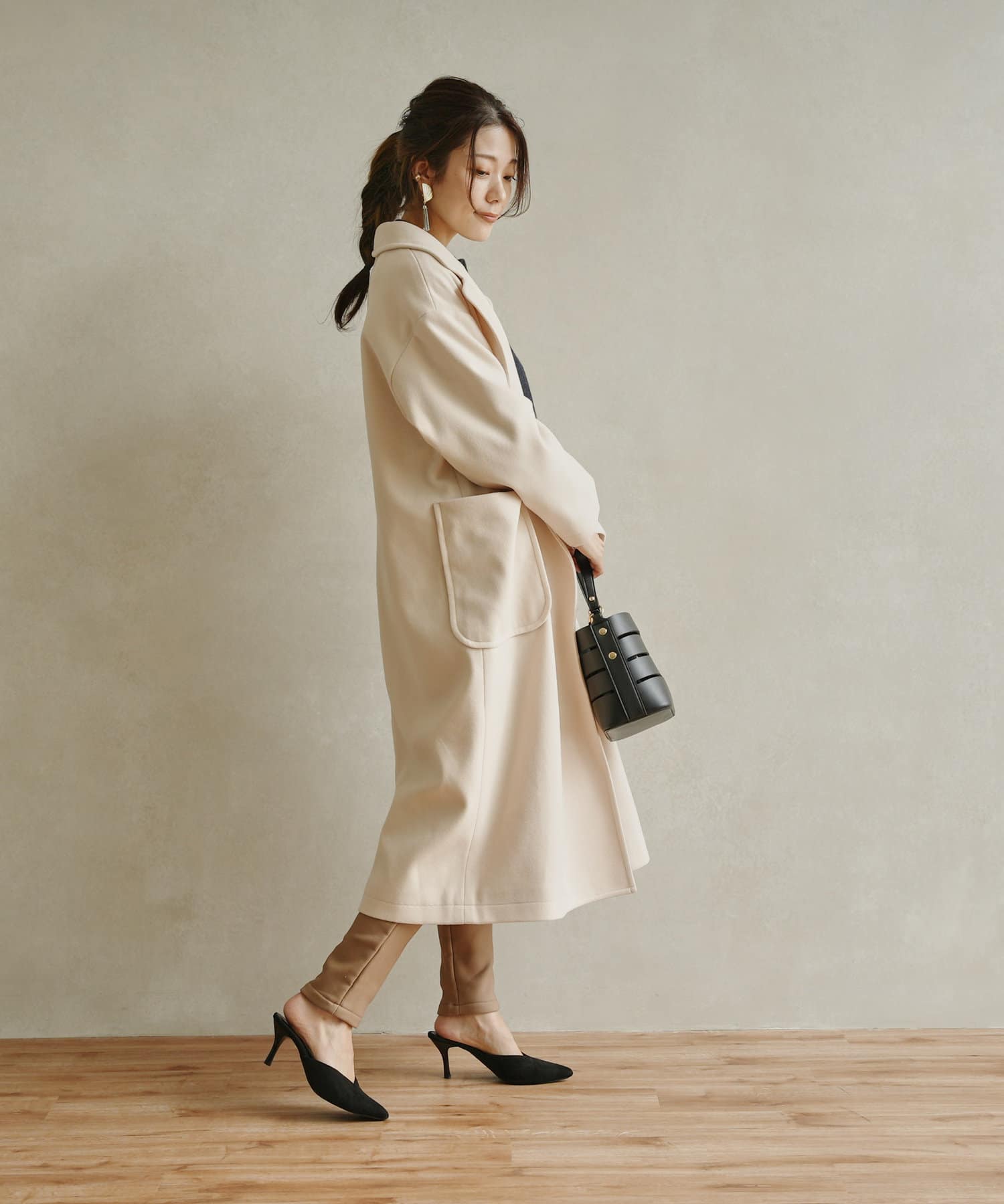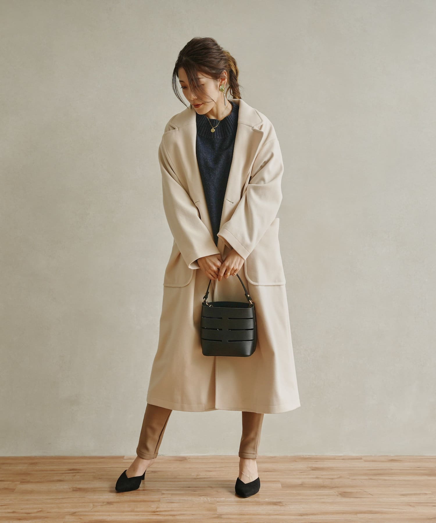 きれいめなコーディネート合わせで通勤スタイルにも活躍するコートです。
