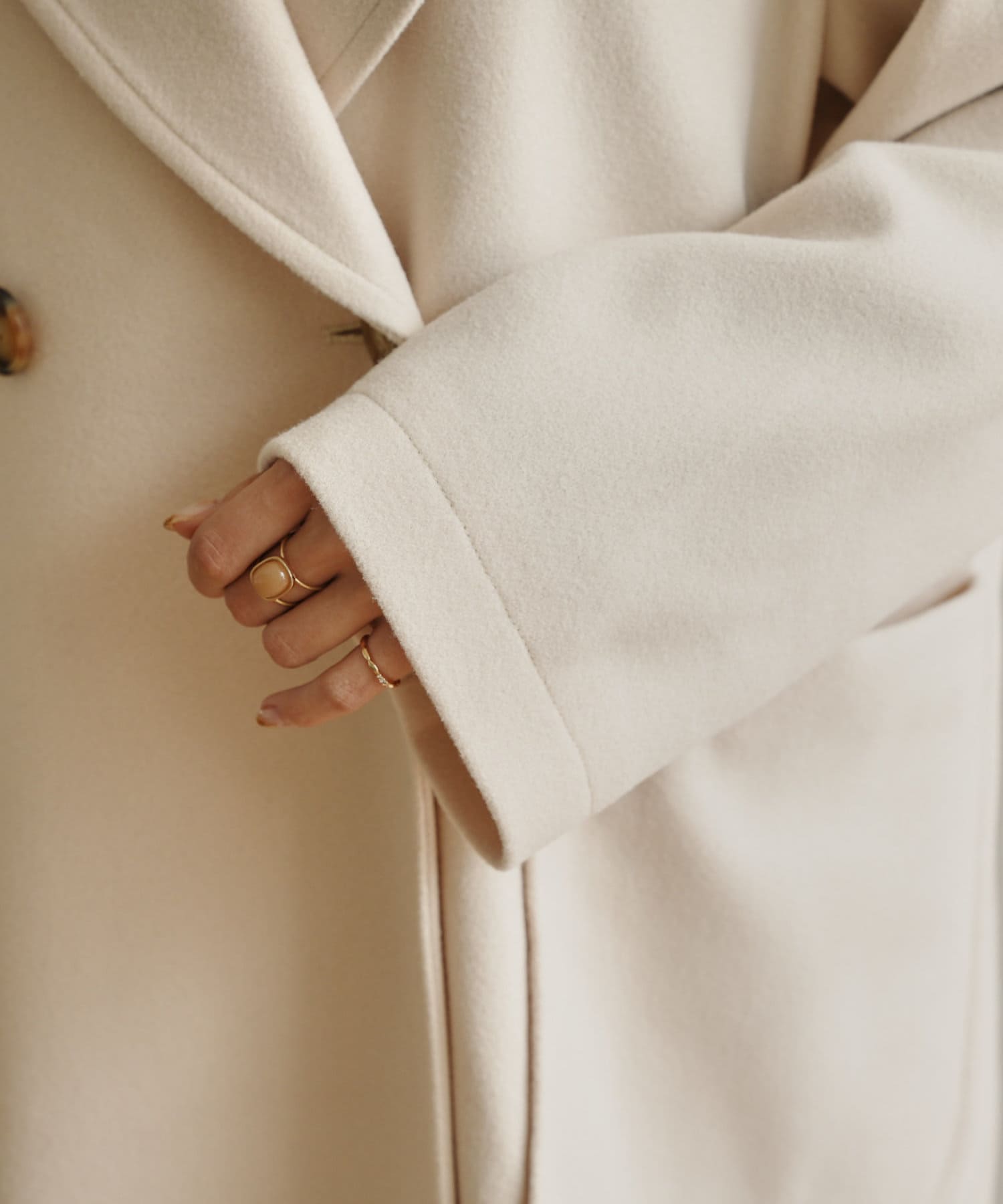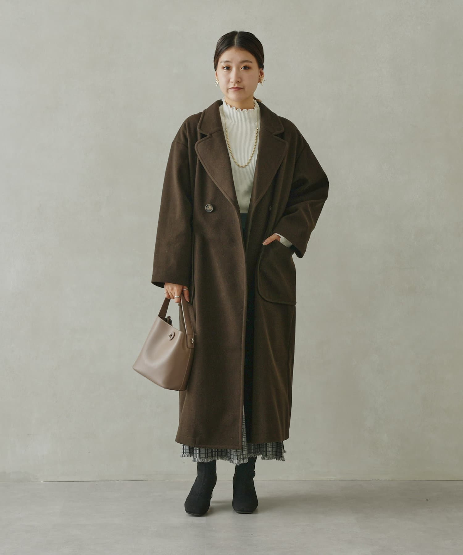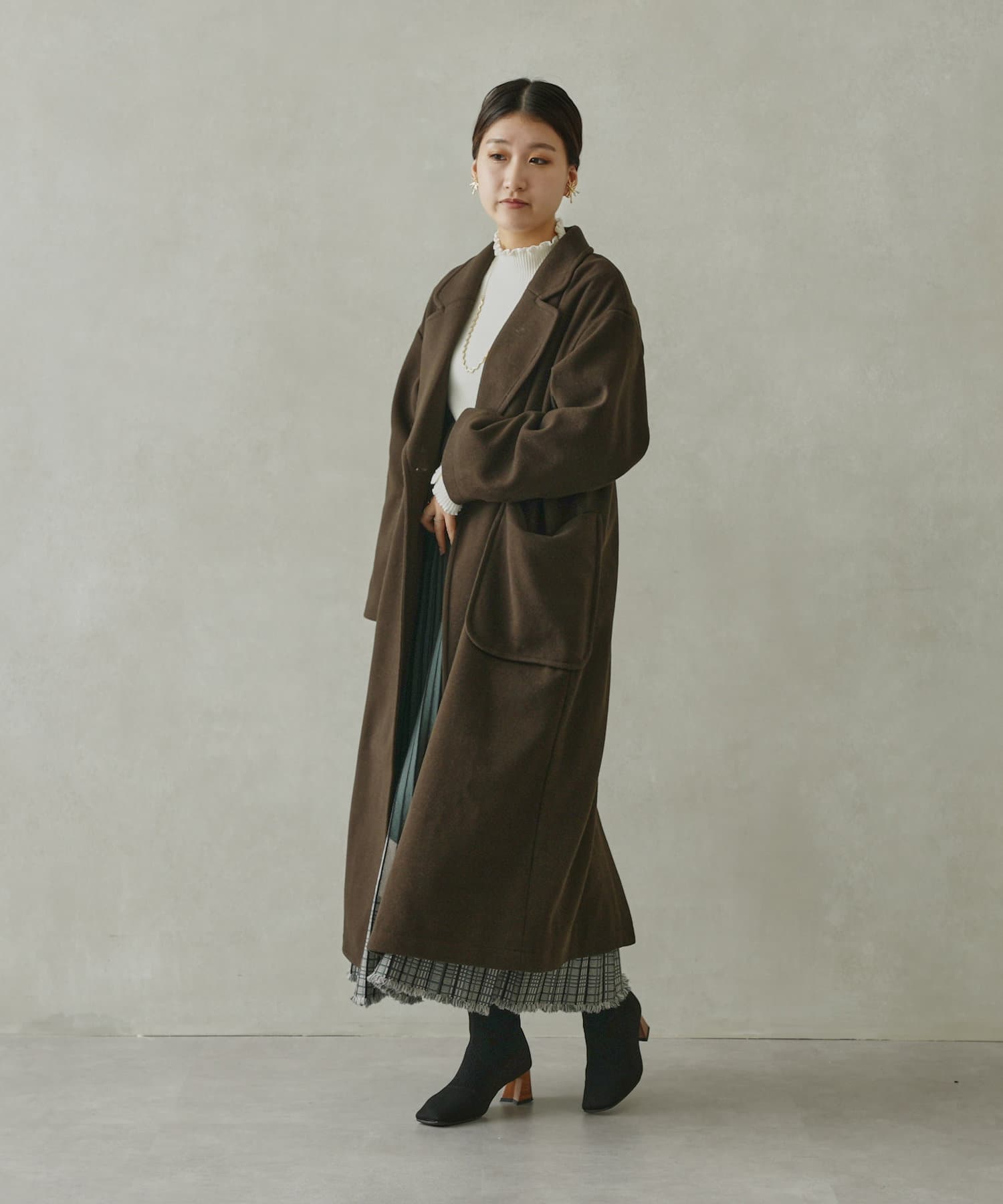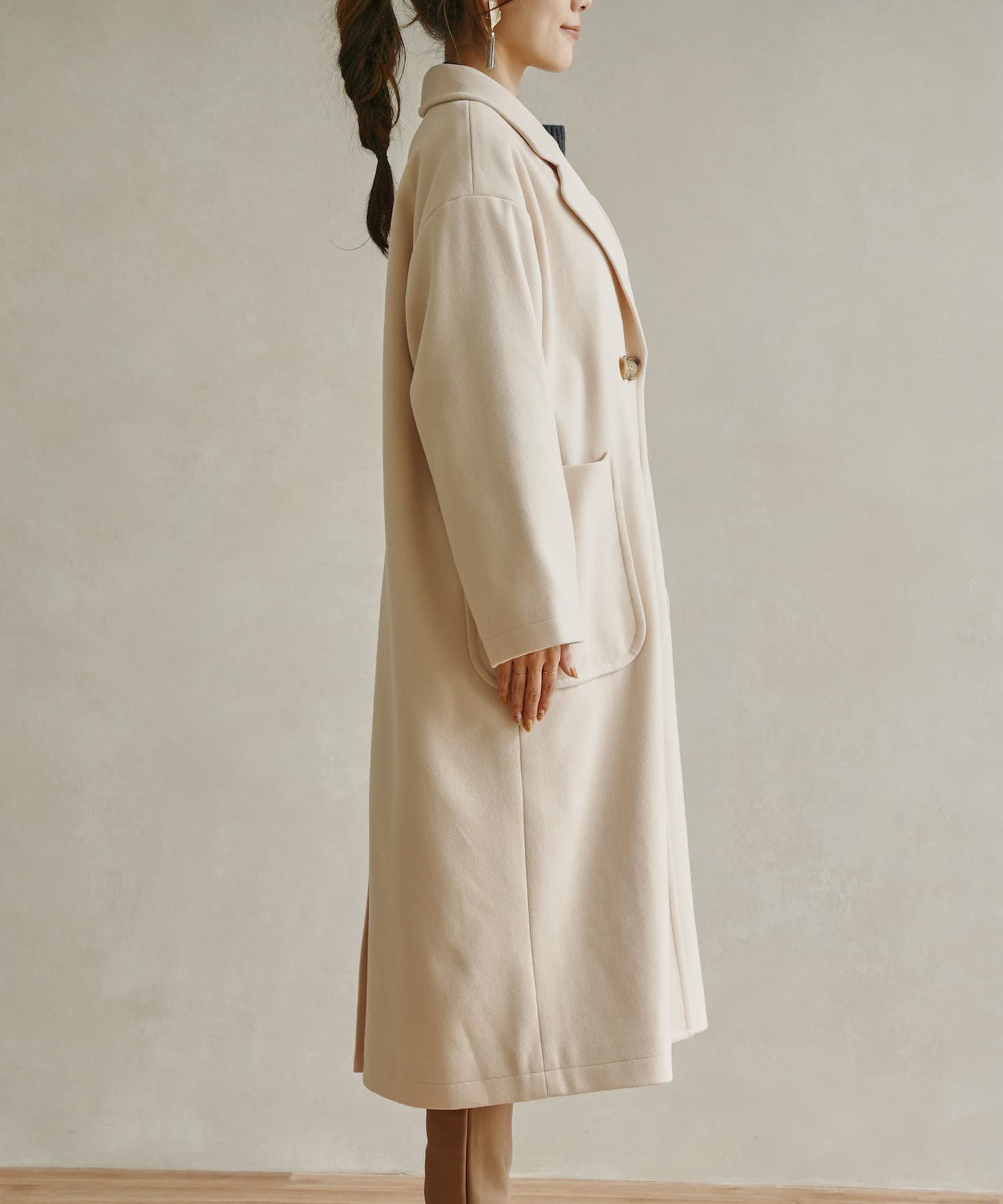 ・丸めの衿が柔らかな雰囲気のチェスターコート