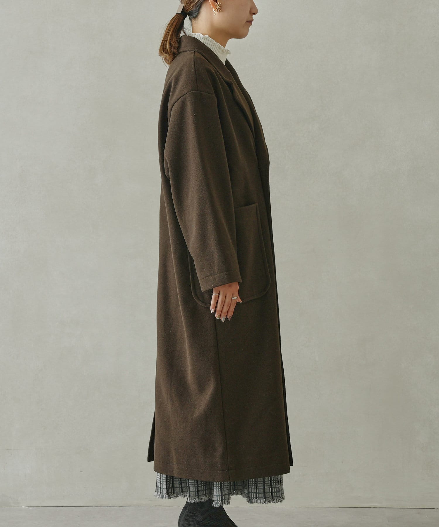 ・非ウールにのコートで軽量。季節も長くお使いできます。