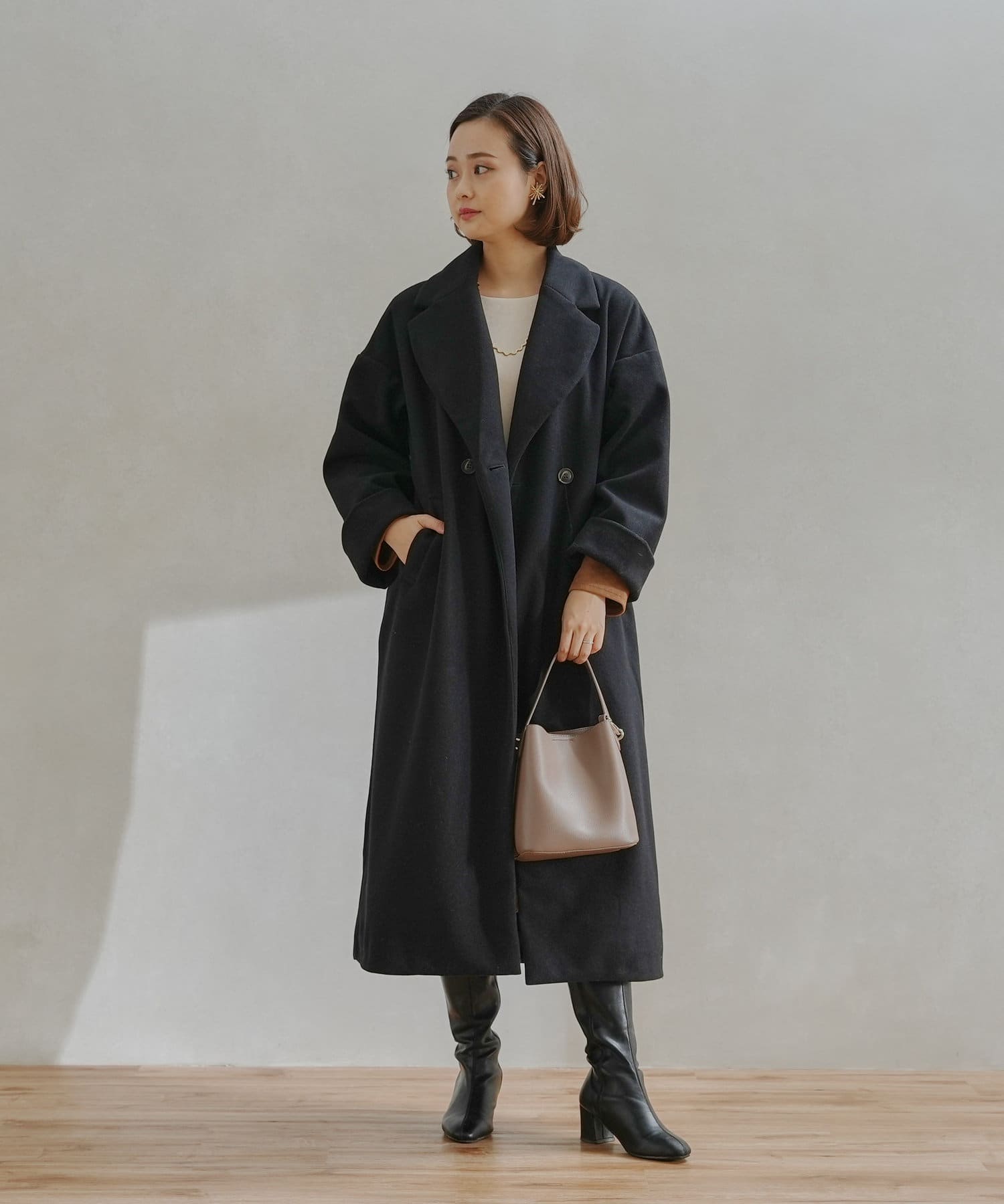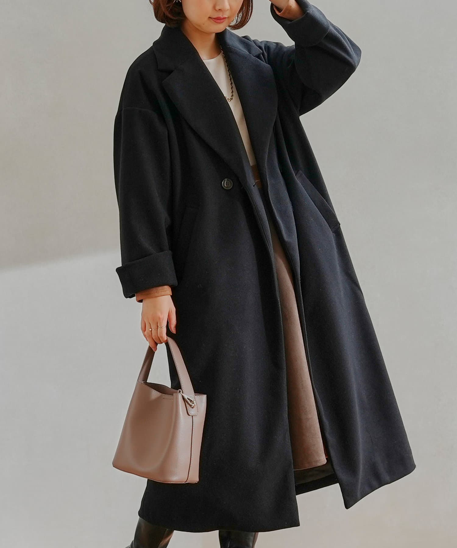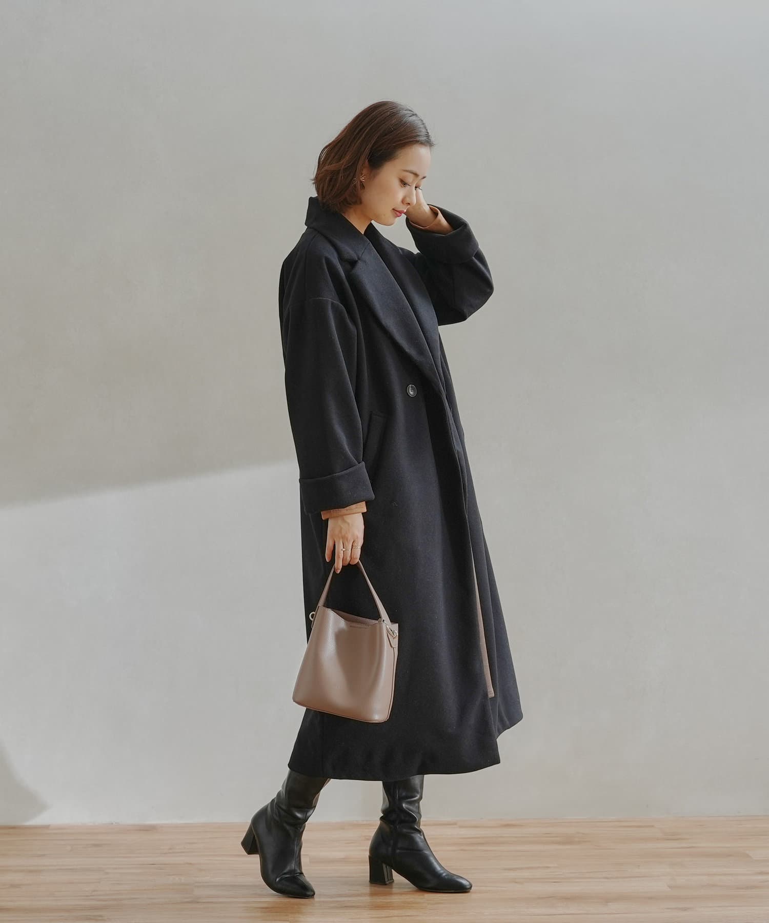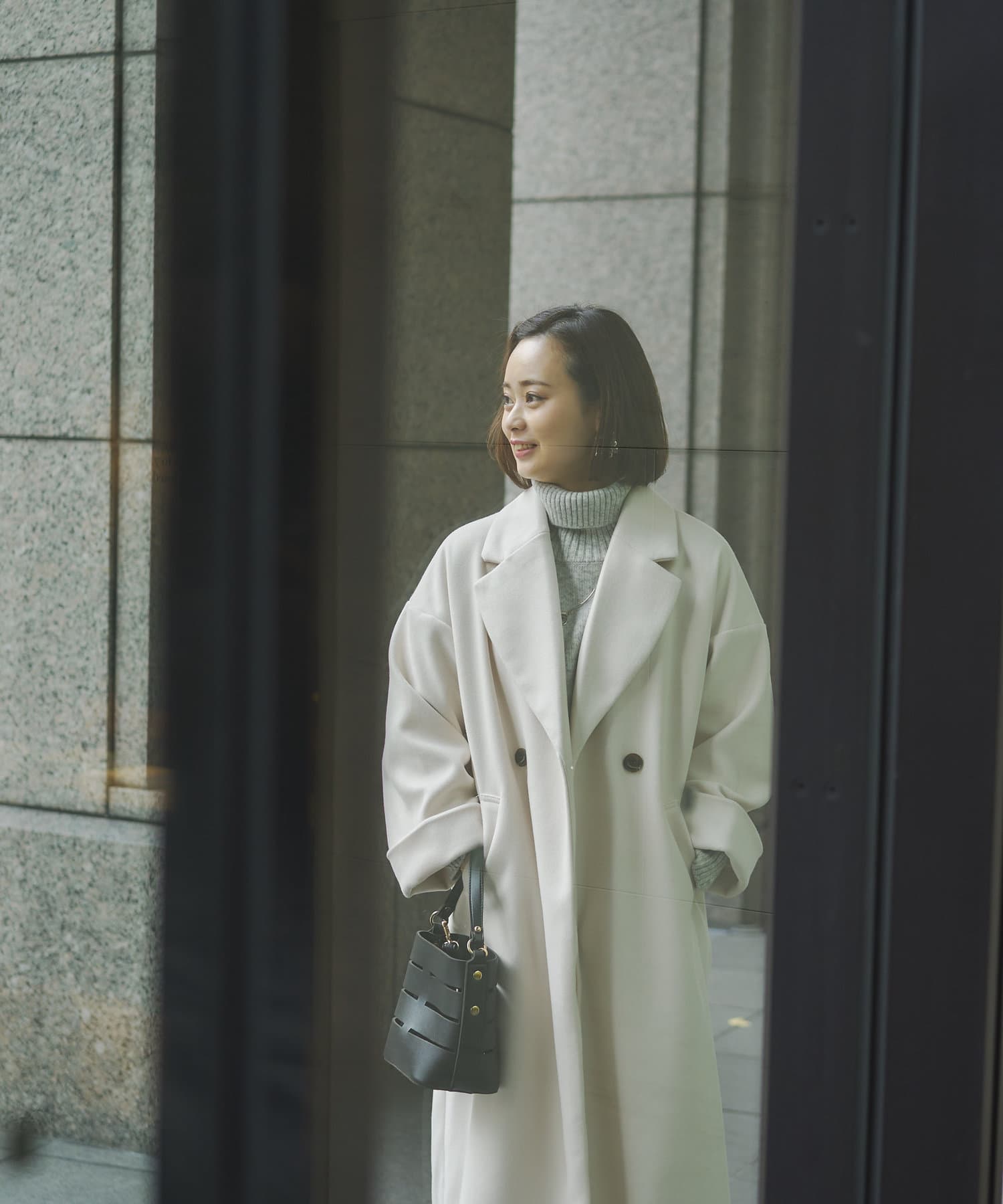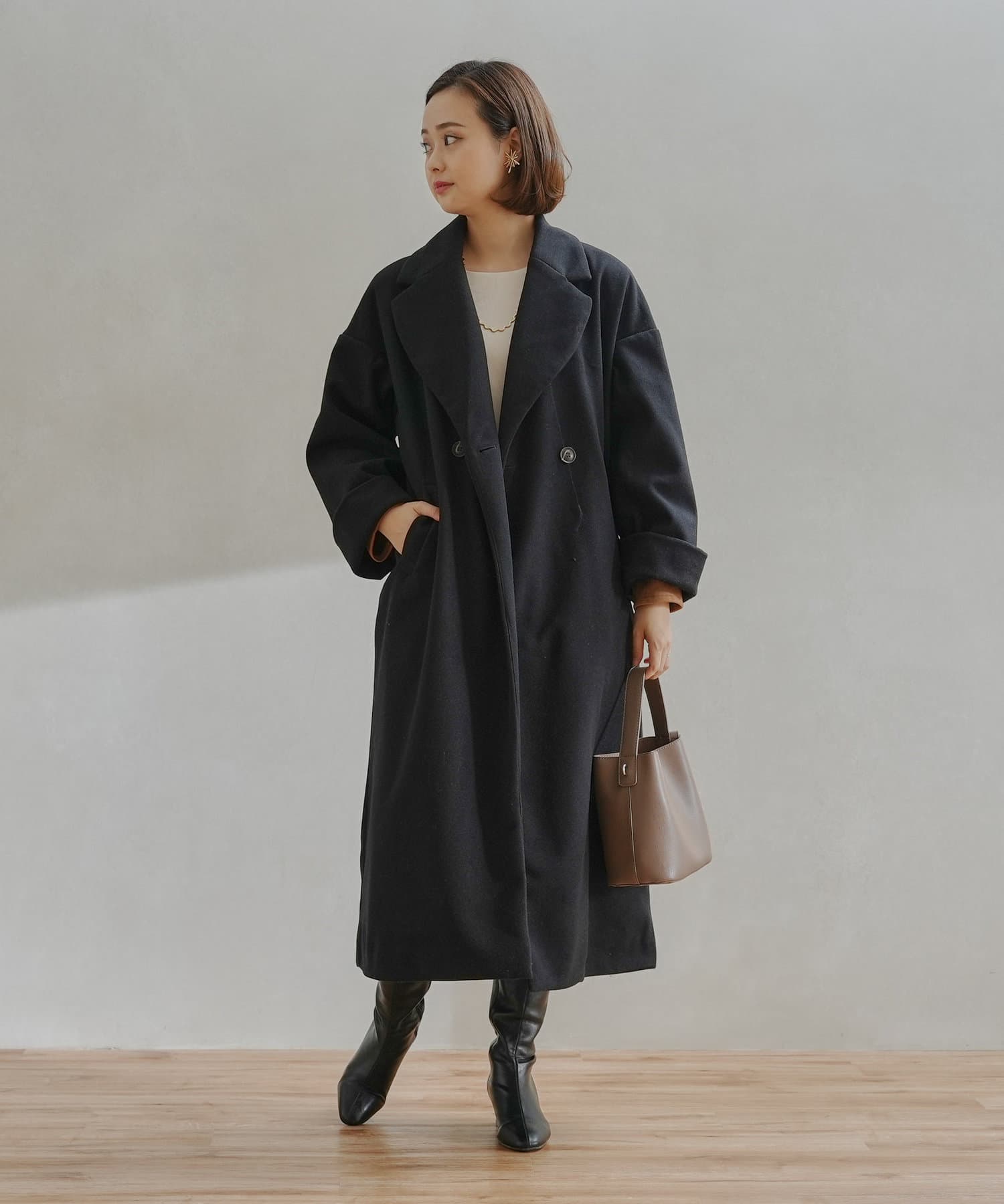 シンプルなデザインがお仕事にも休日にも頼れるフェイクウールコート