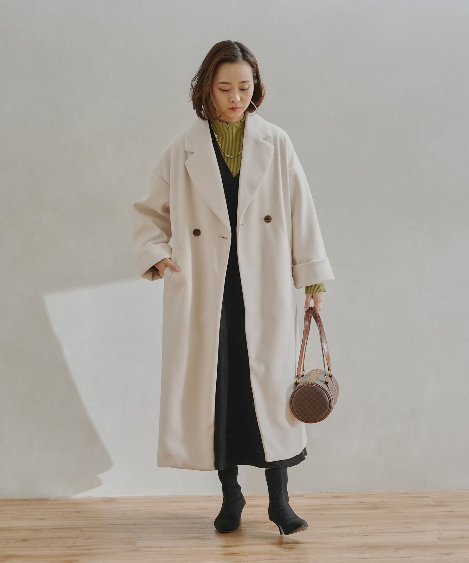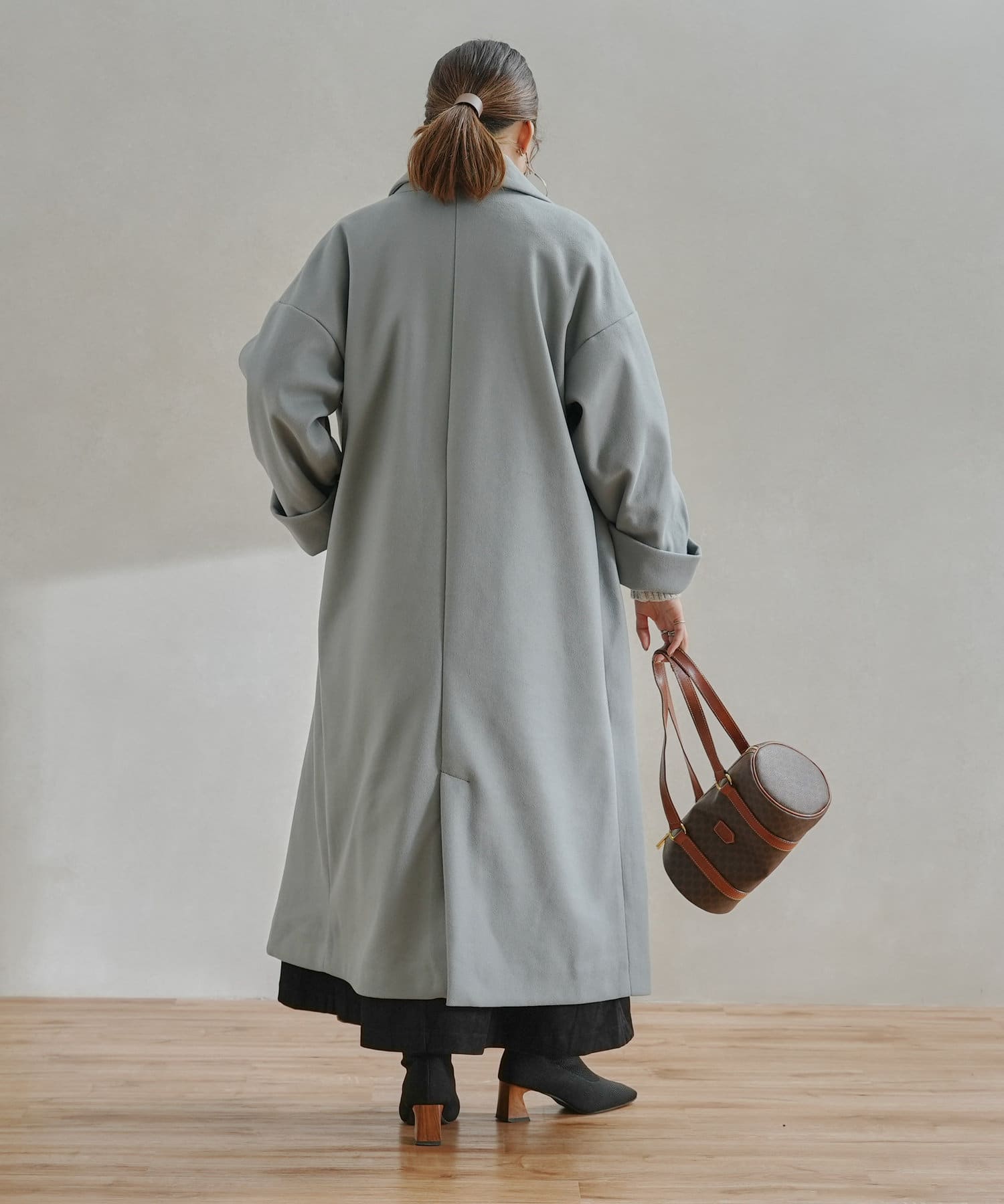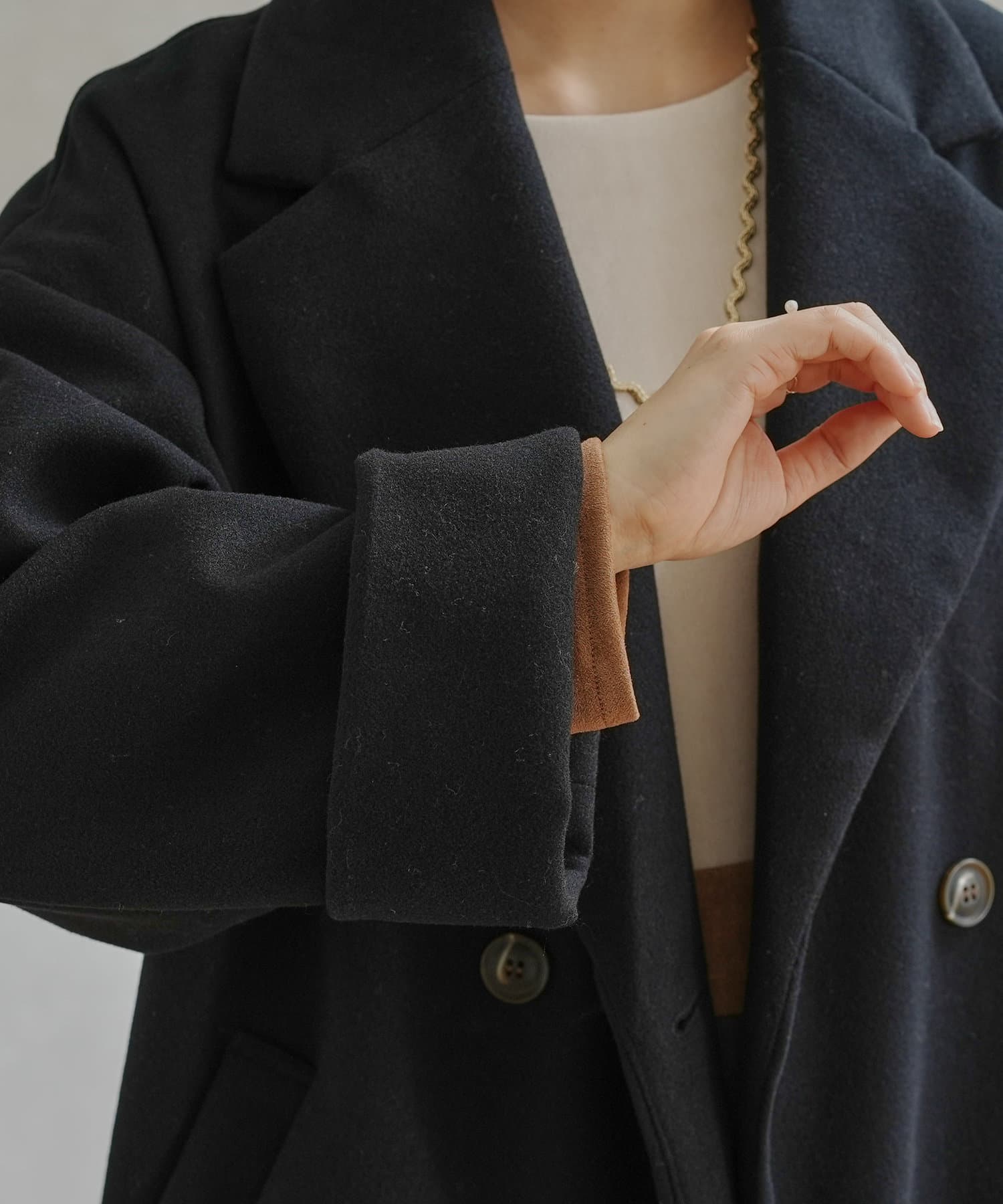 ・オリジナルの軽量フェイクウールを使用したコート。