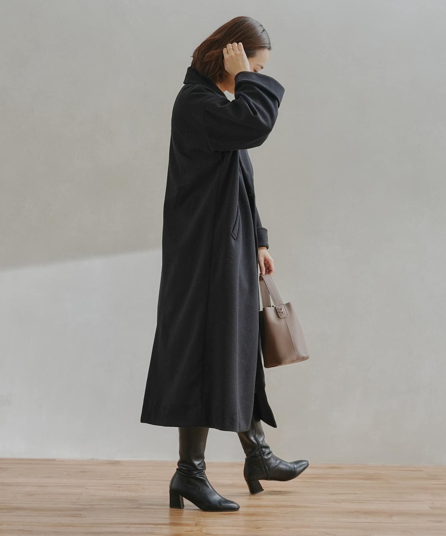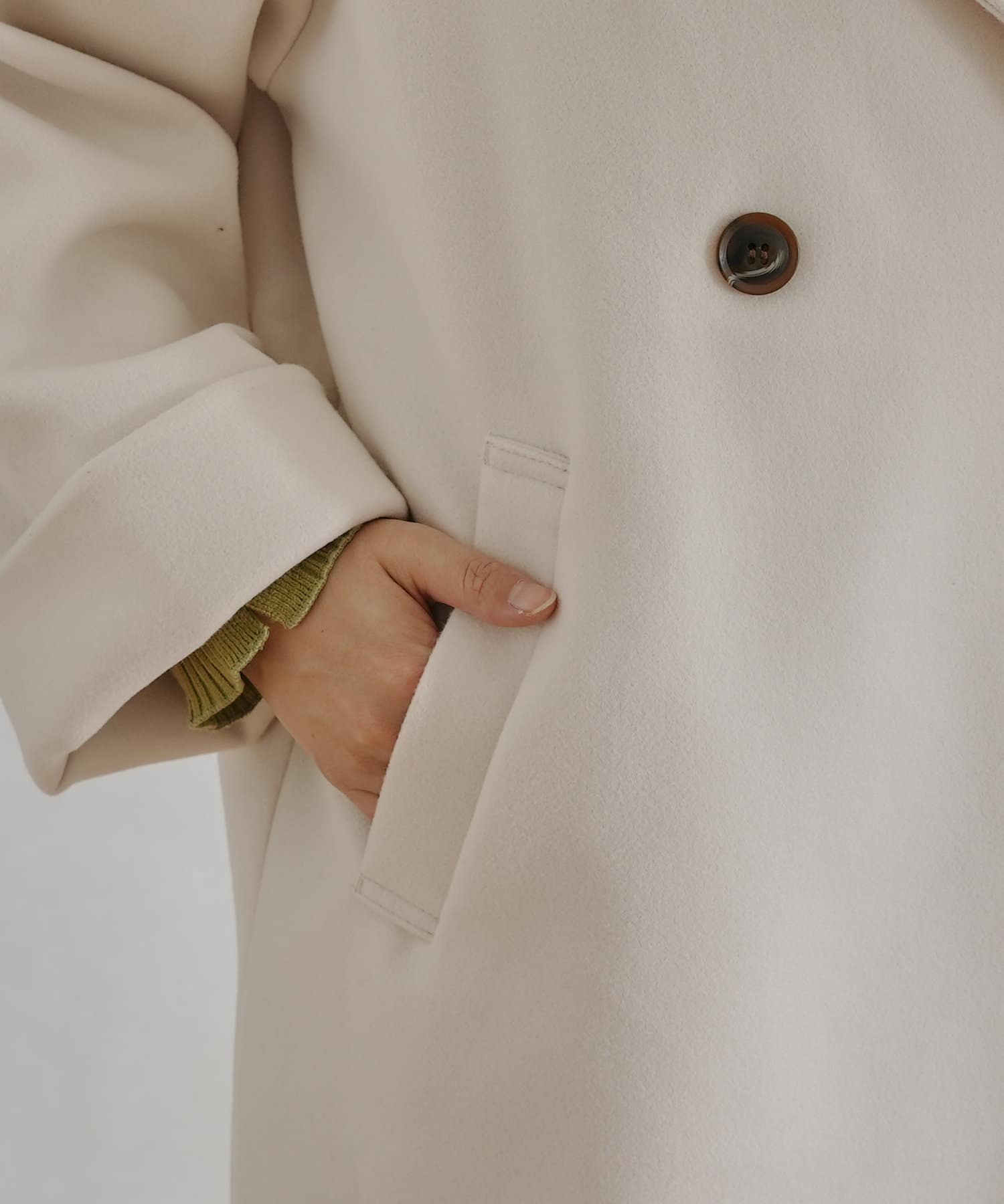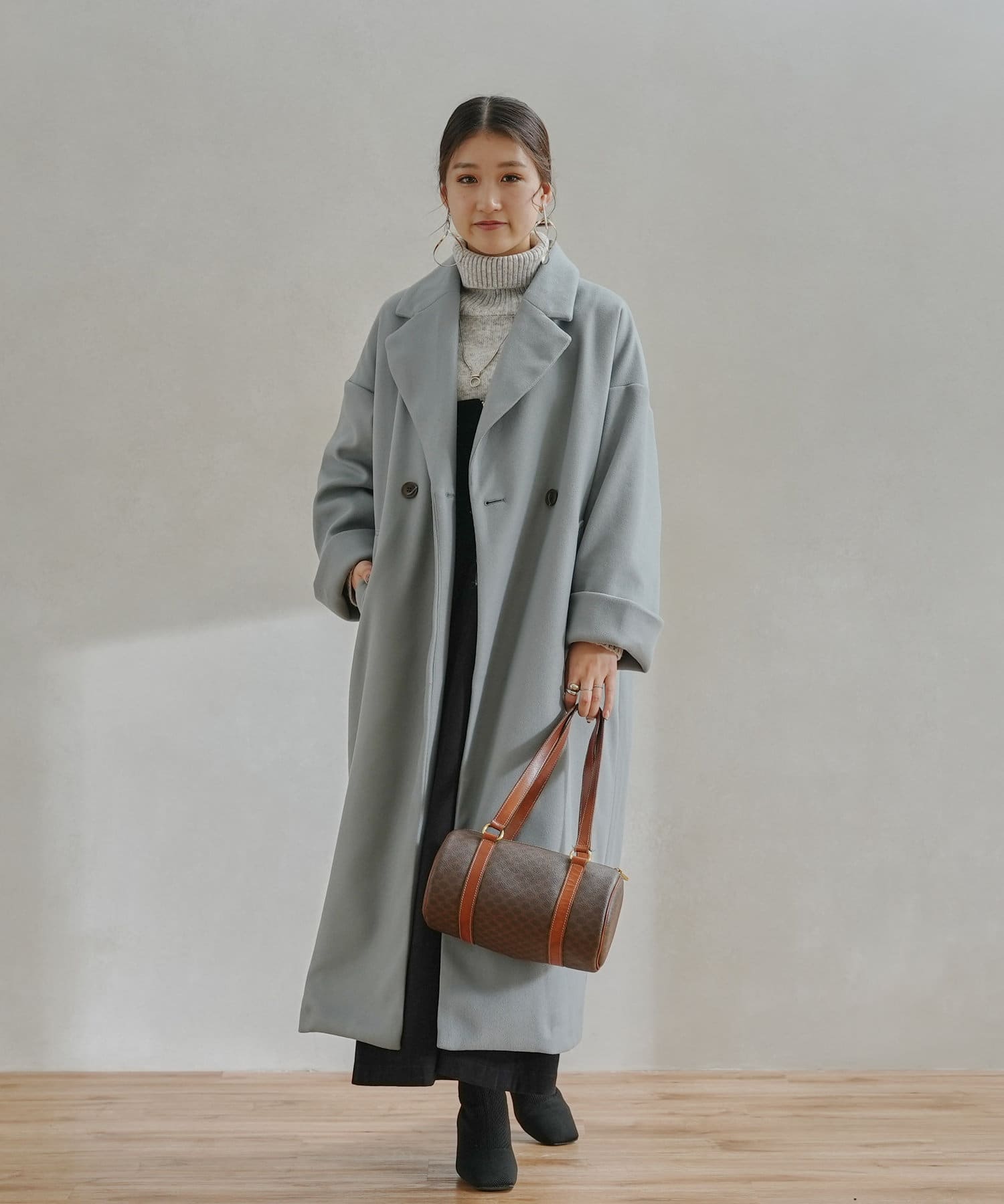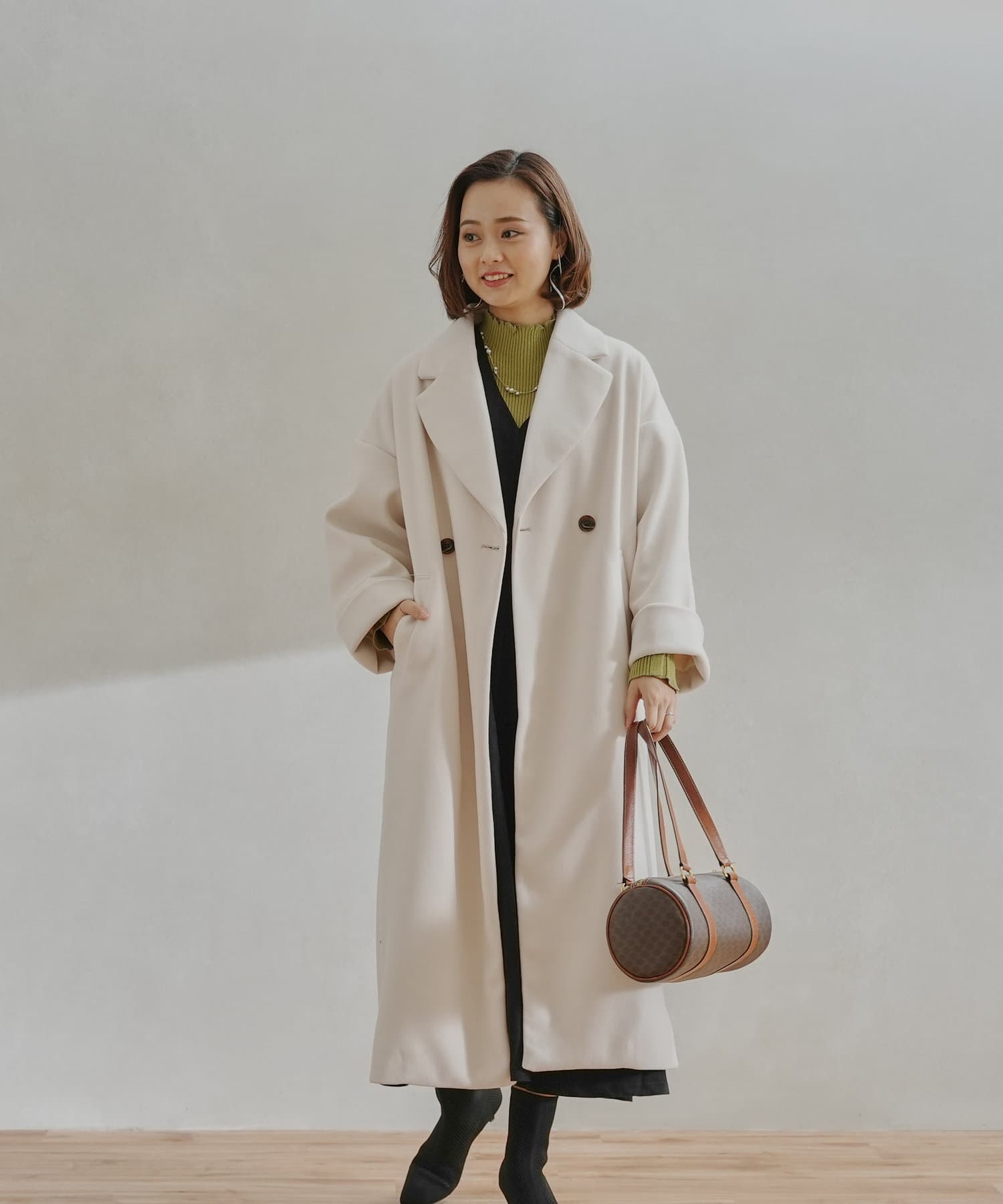 ・オリジナルの軽量フェイクウールを使用したコート。