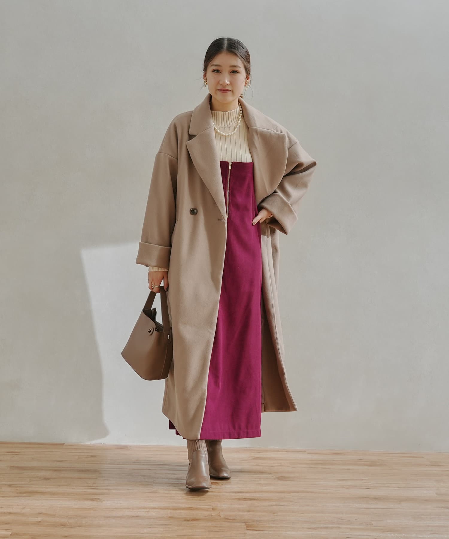・ゆったりしたデザインなので厚手ニットなどレイヤードしやすい。