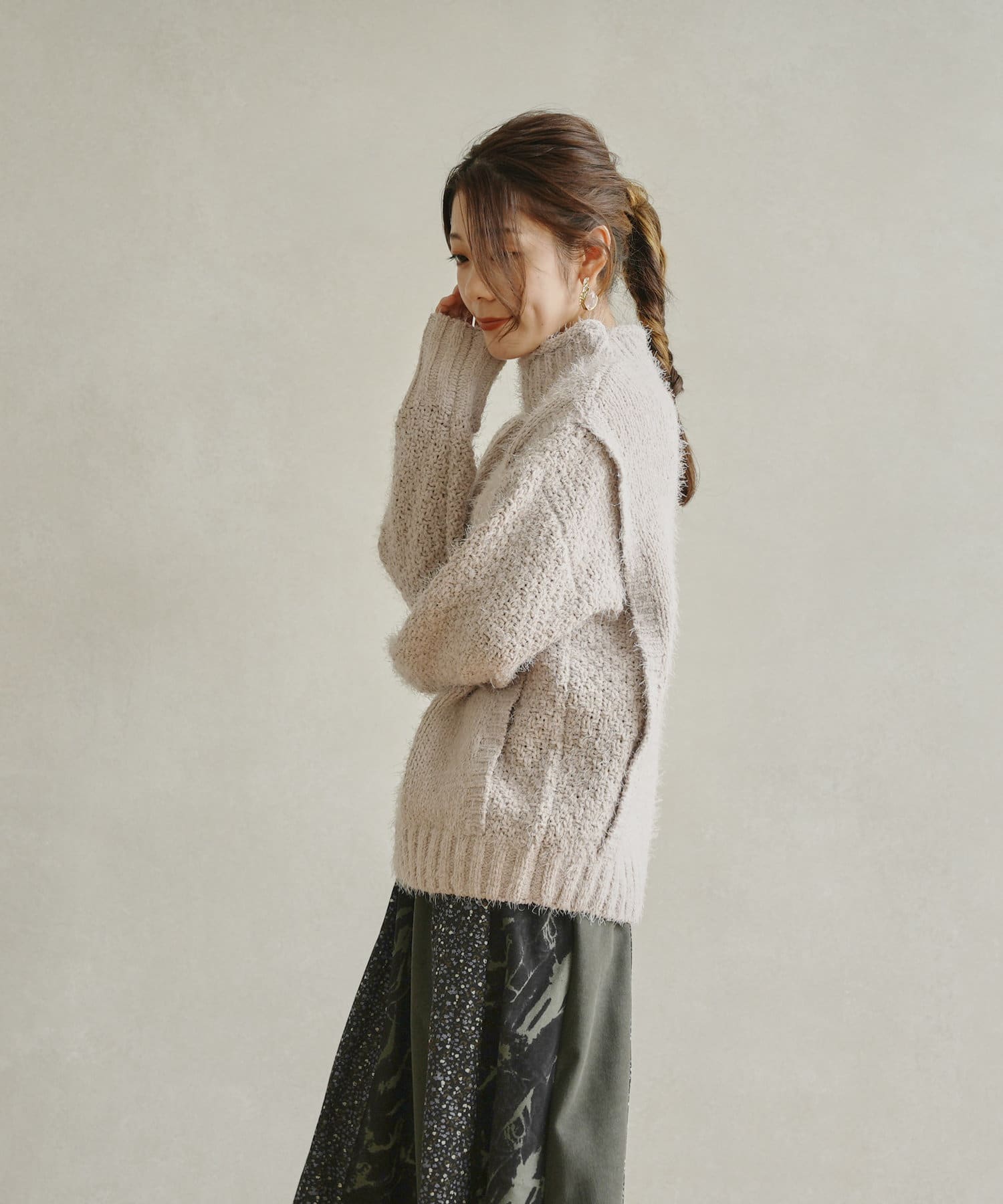バスケット編みベスト切替ハイネックプルオーバー