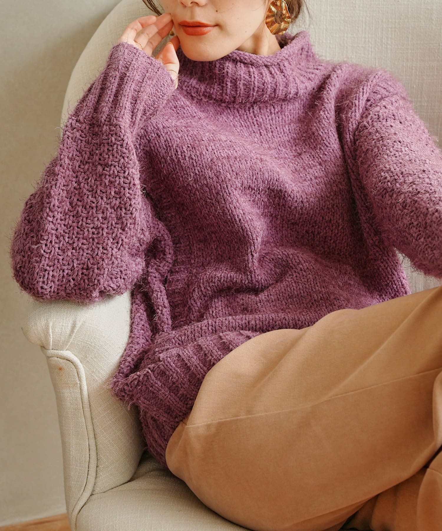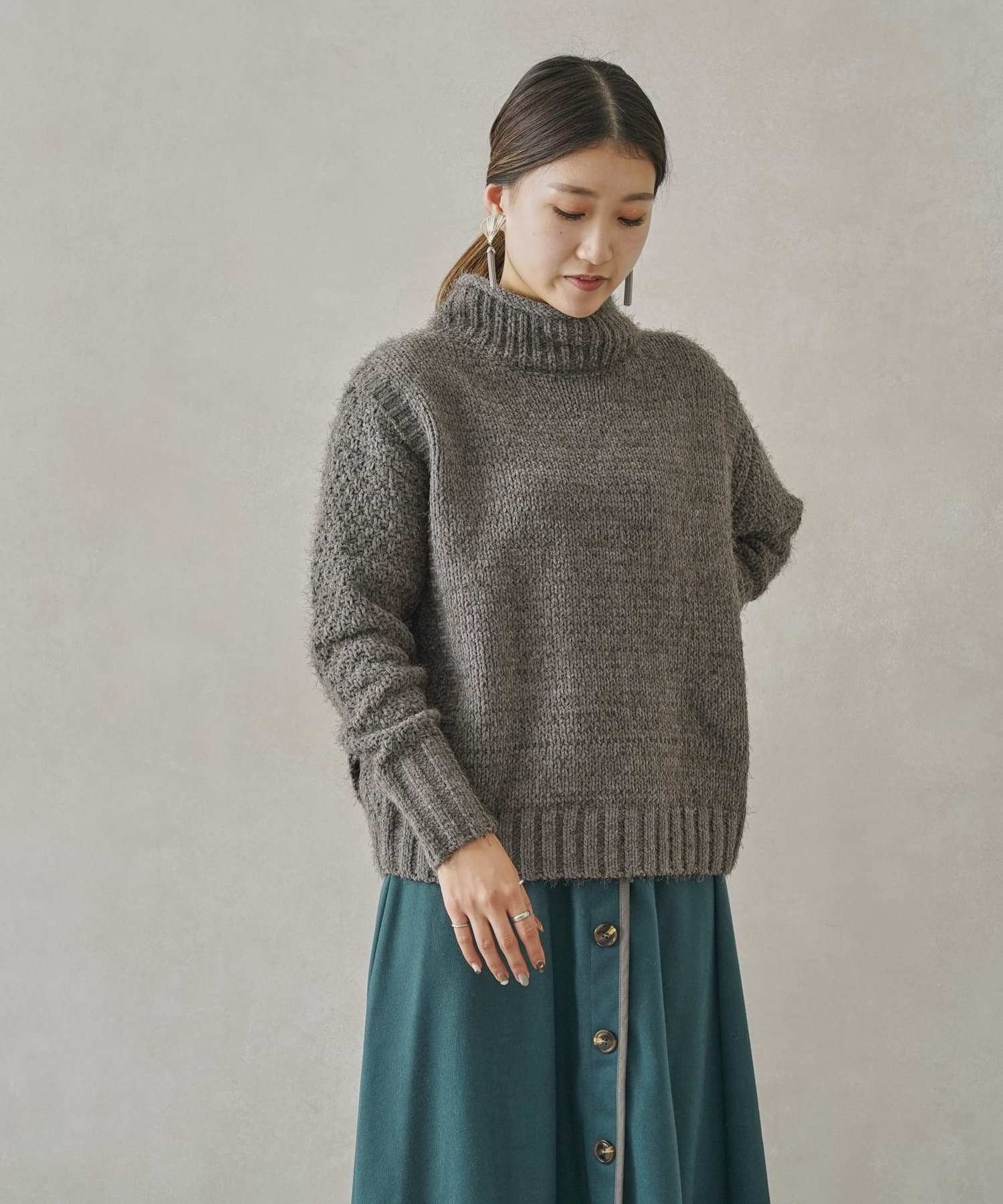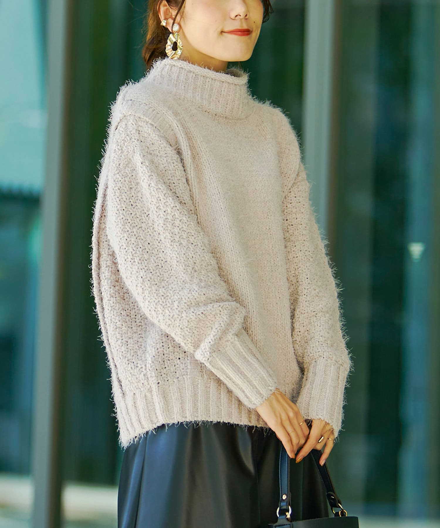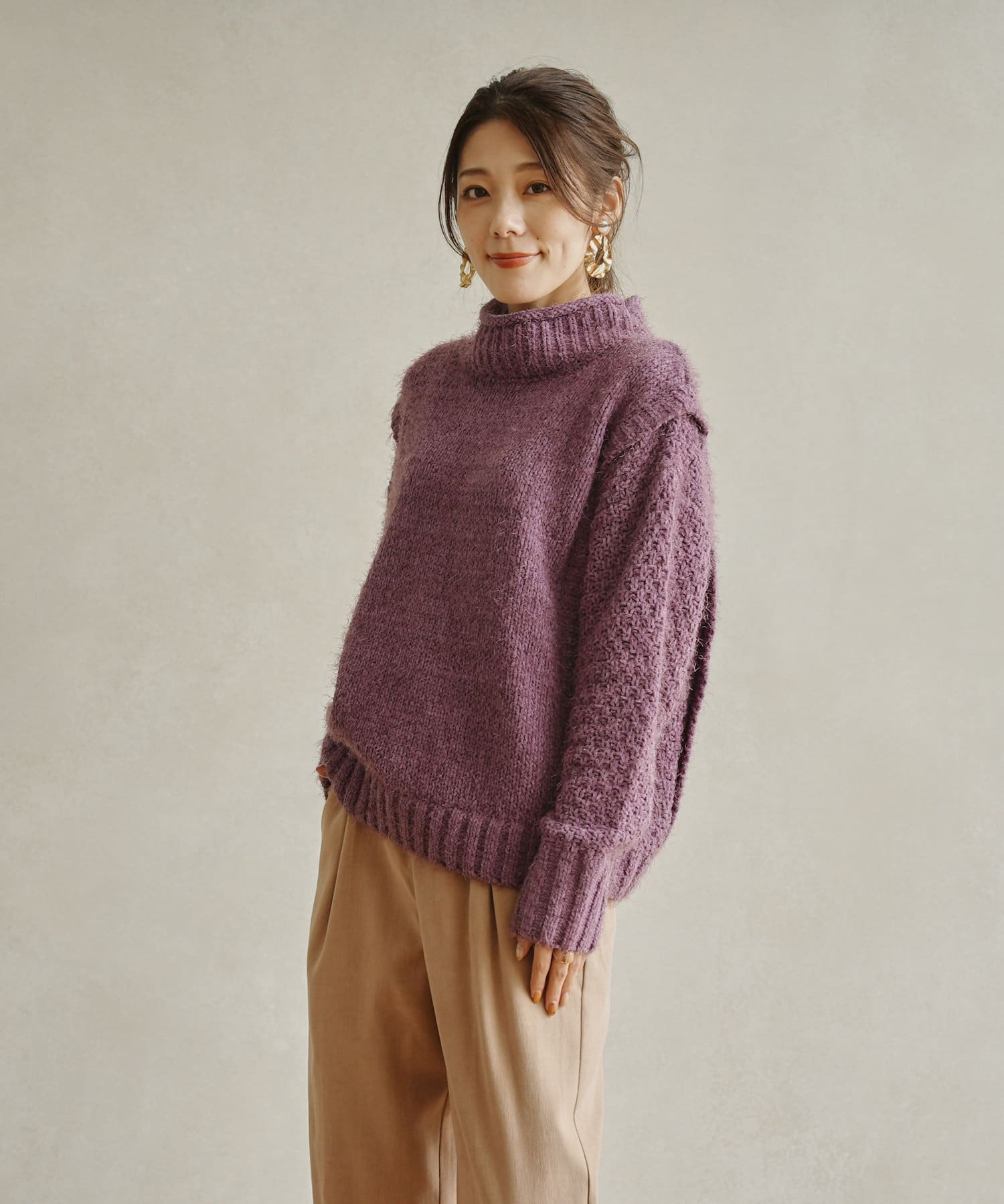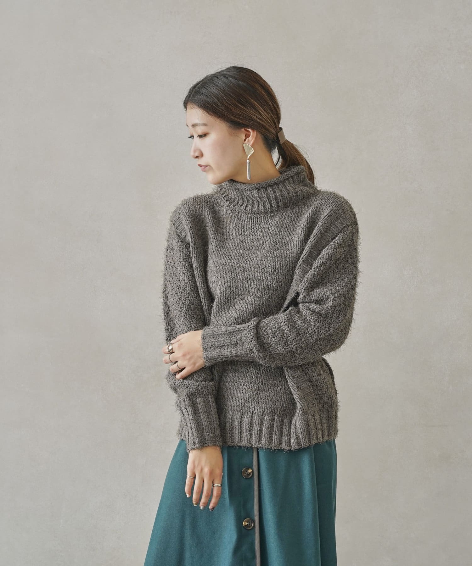 ・ボトルネックのニットで首元も詰まりすぎないのでタートルネックが苦手な方も