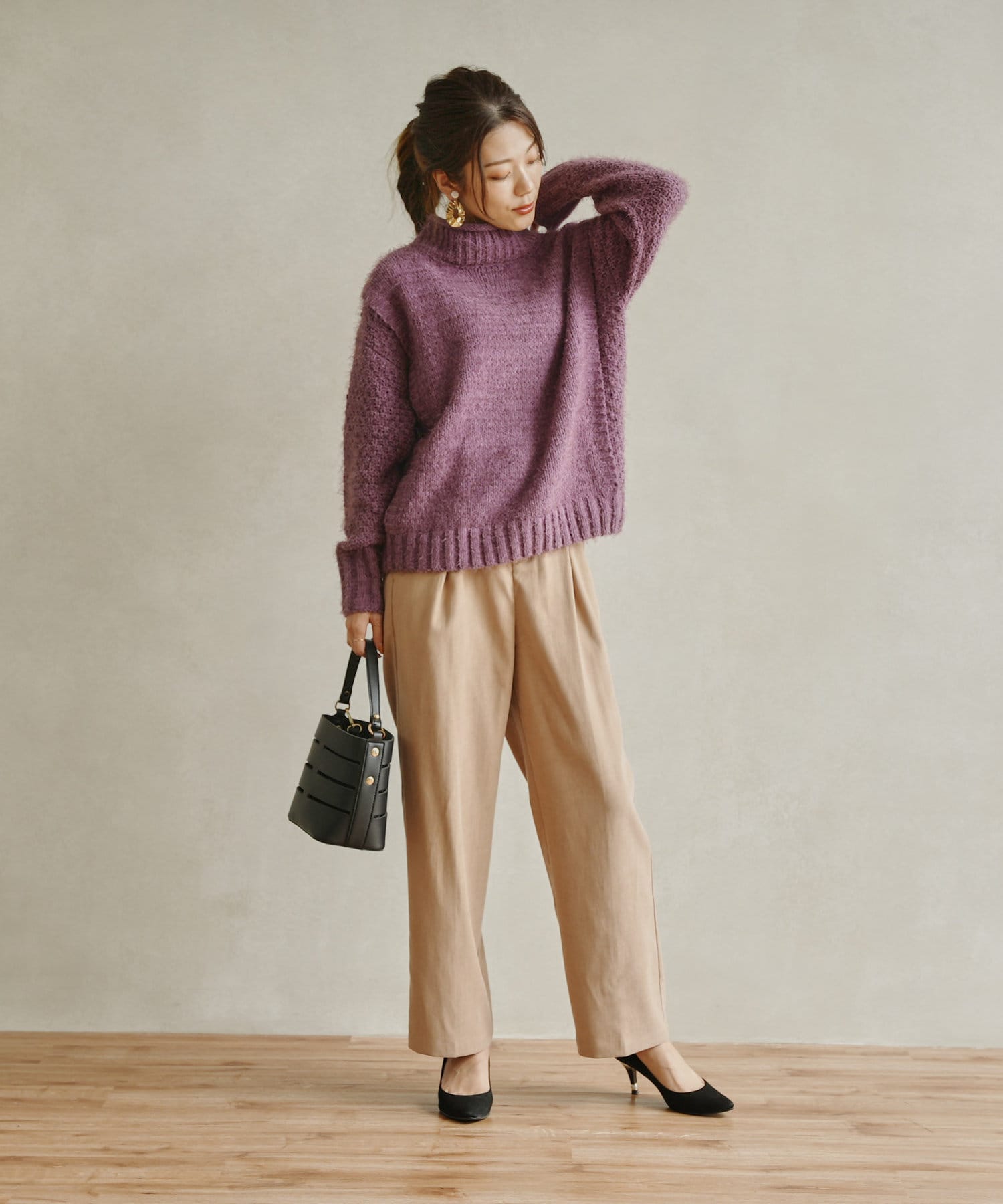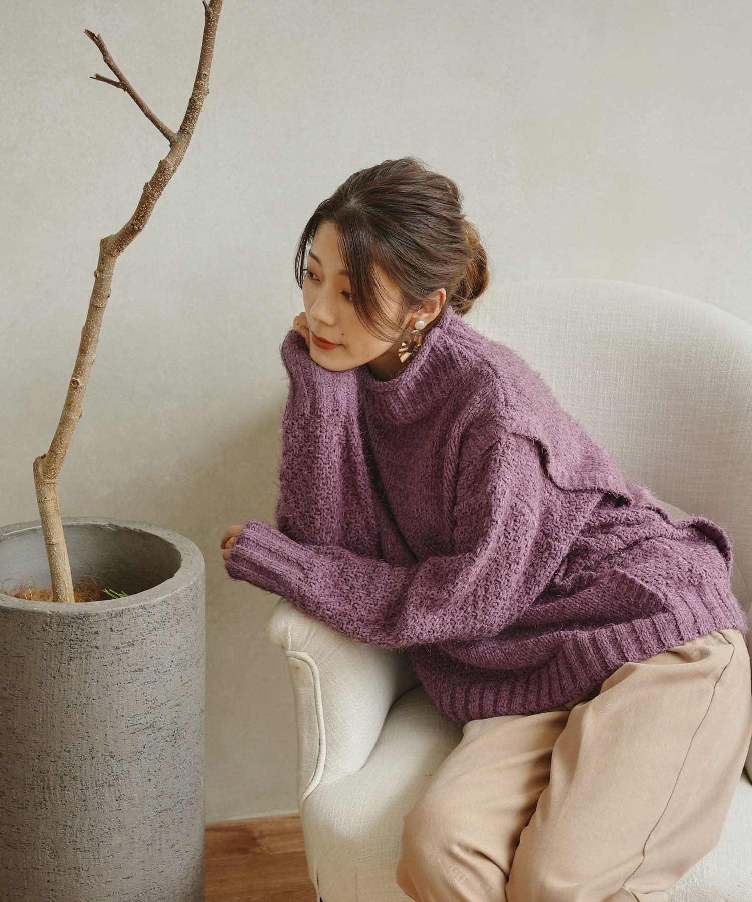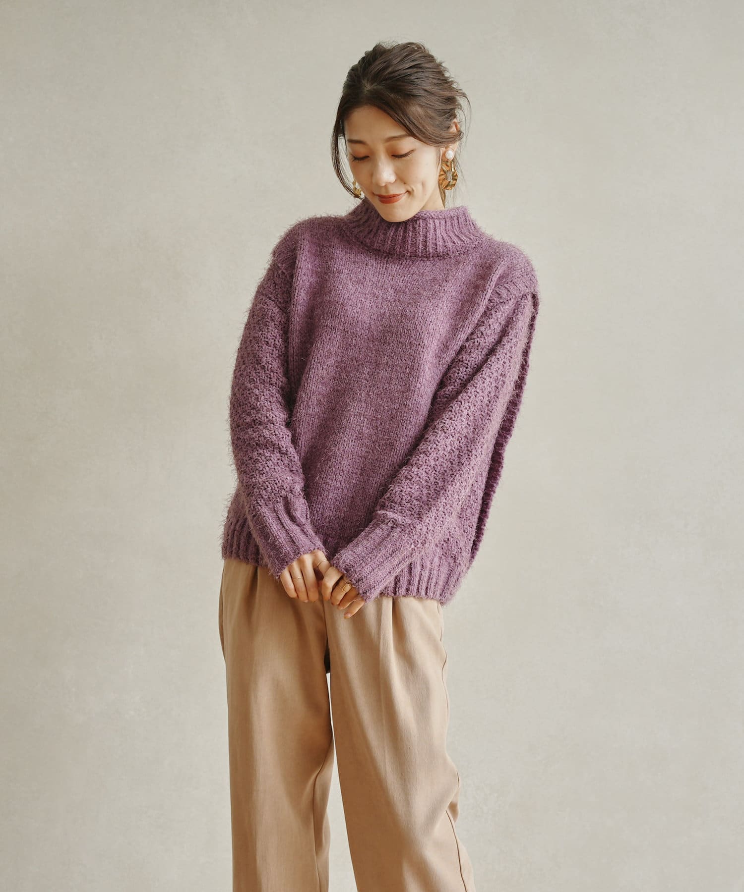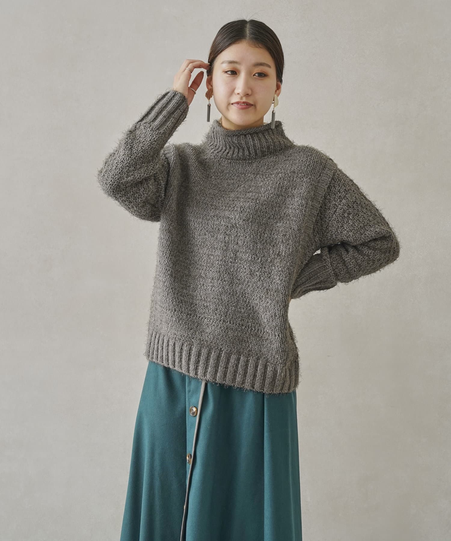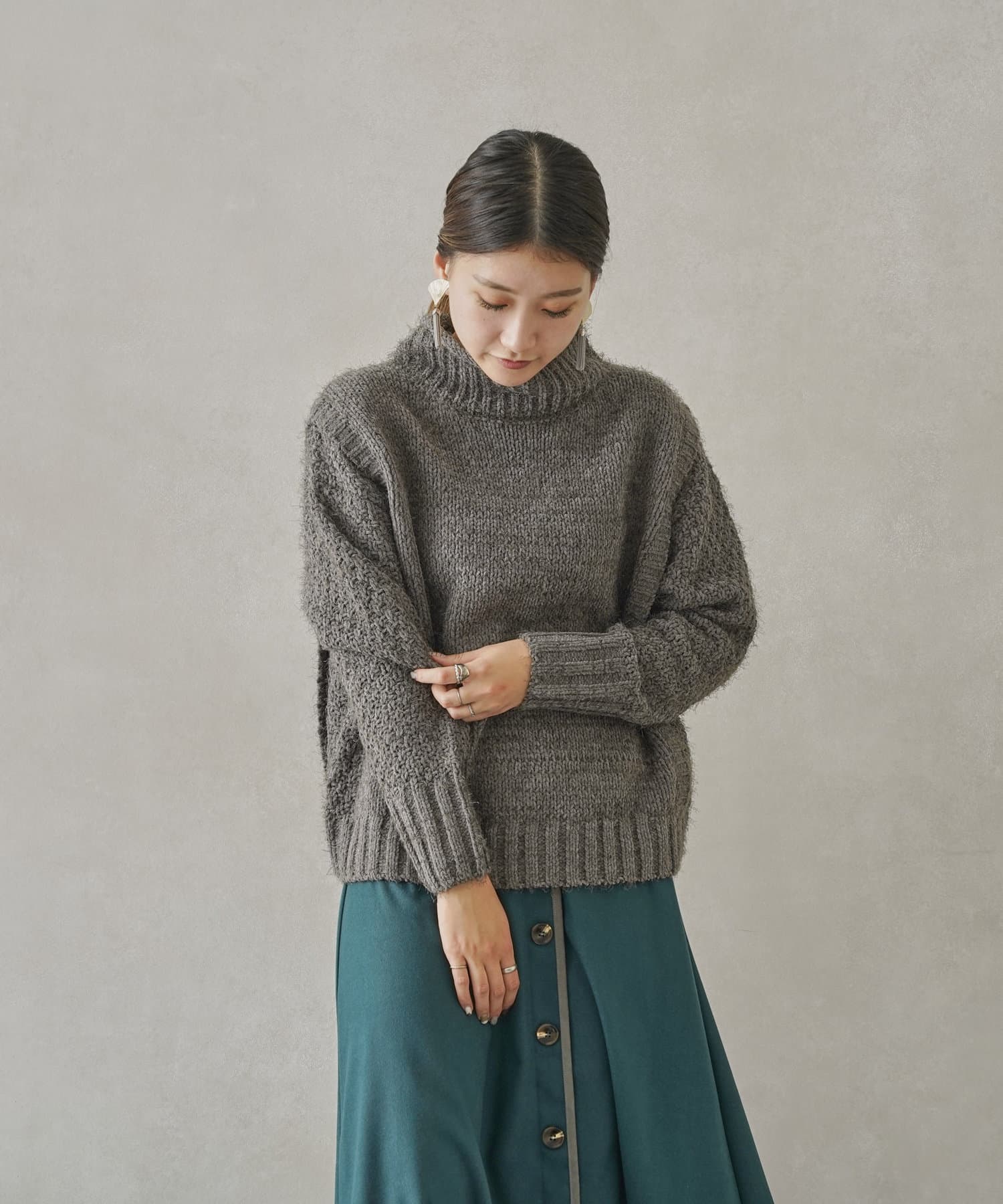 ・ボトルネックのニットで首元も詰まりすぎないのでタートルネックが苦手な方も