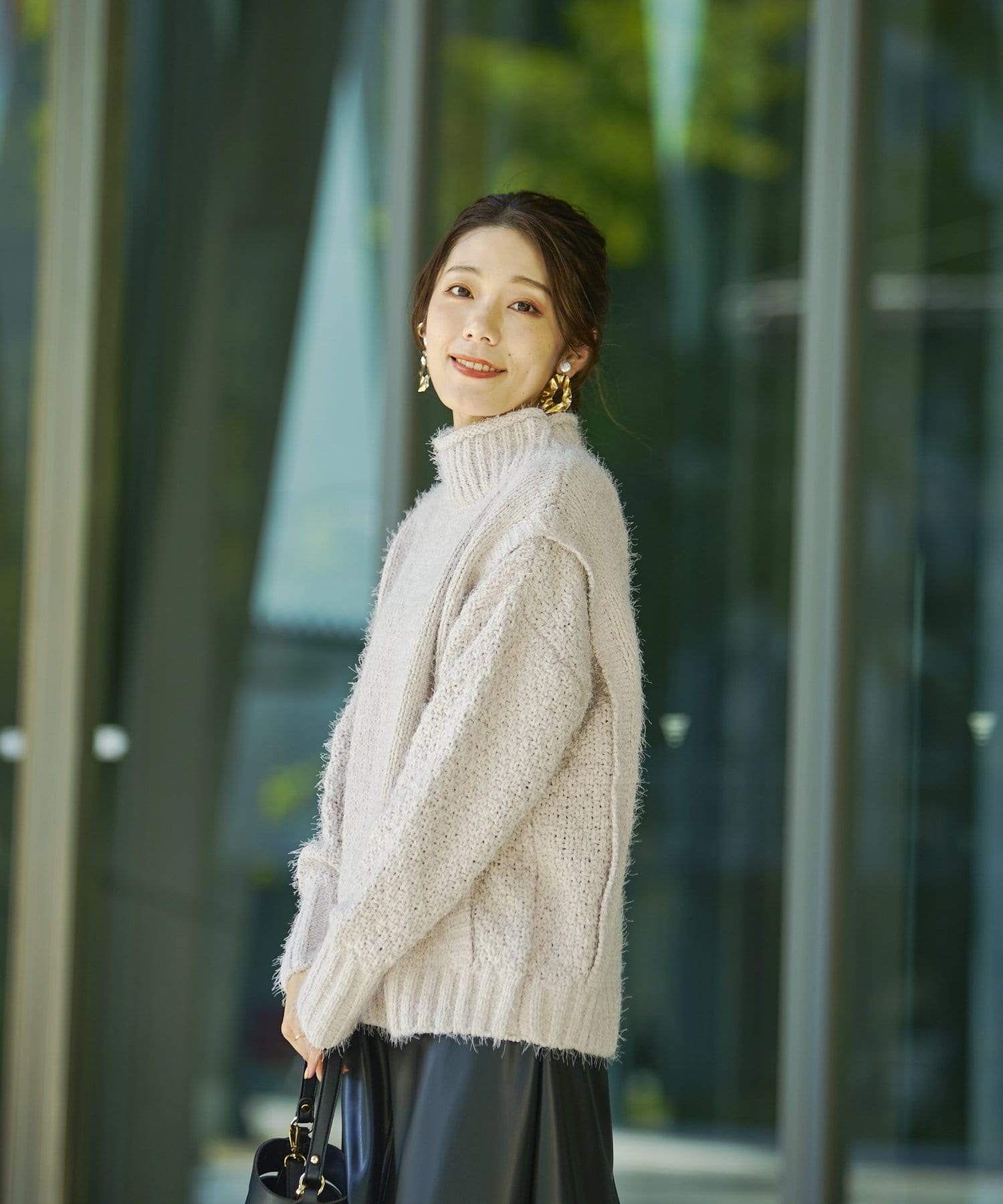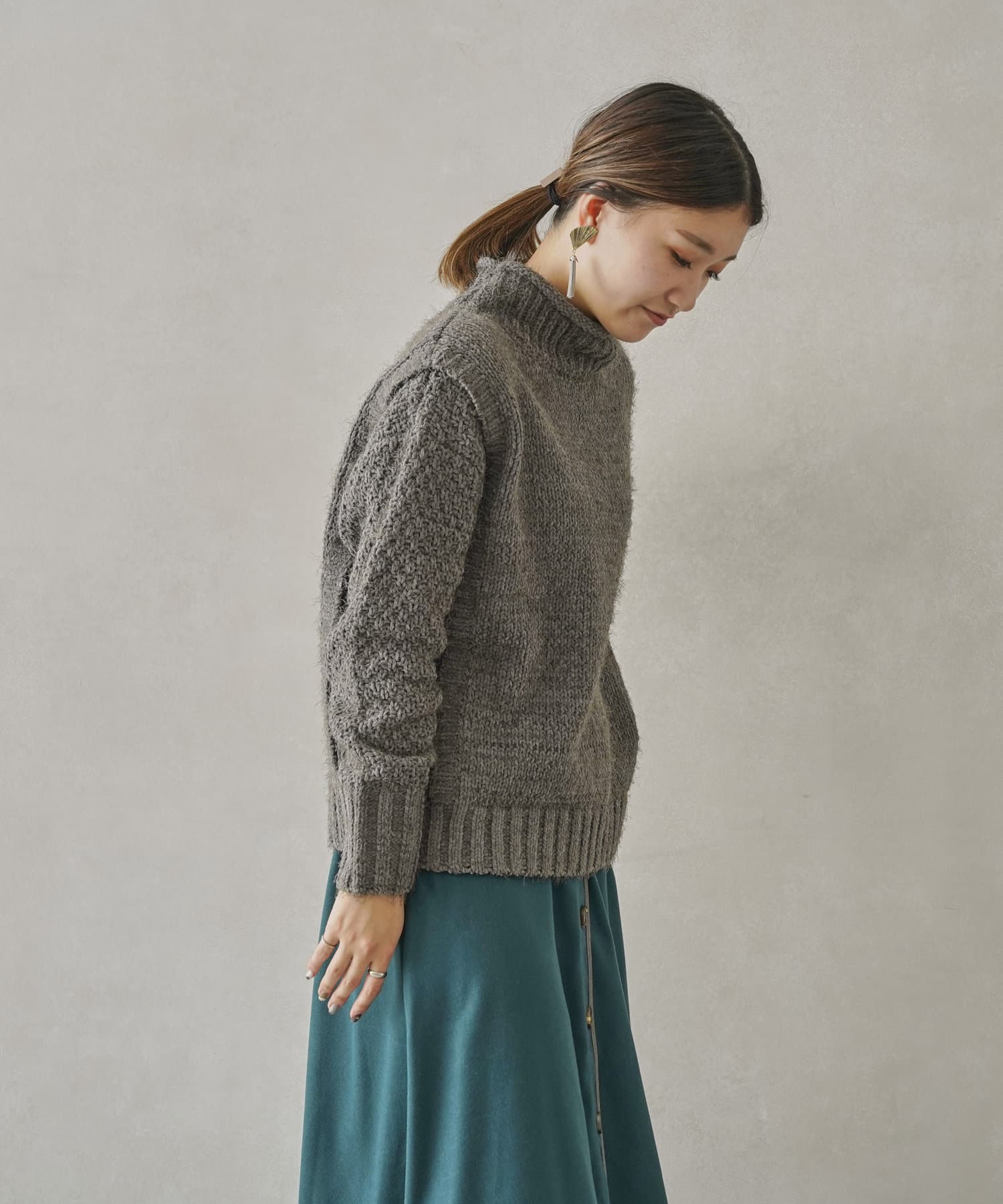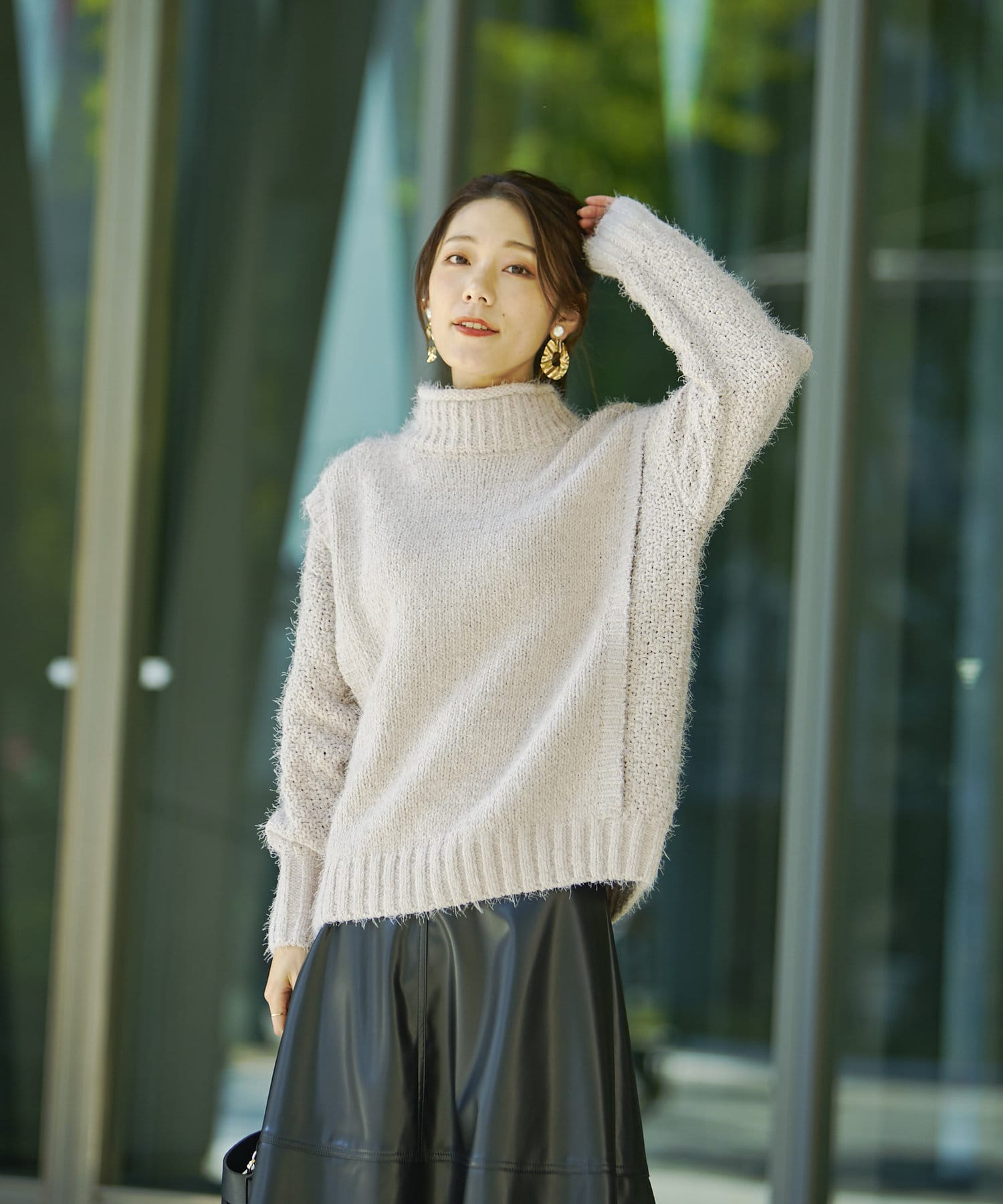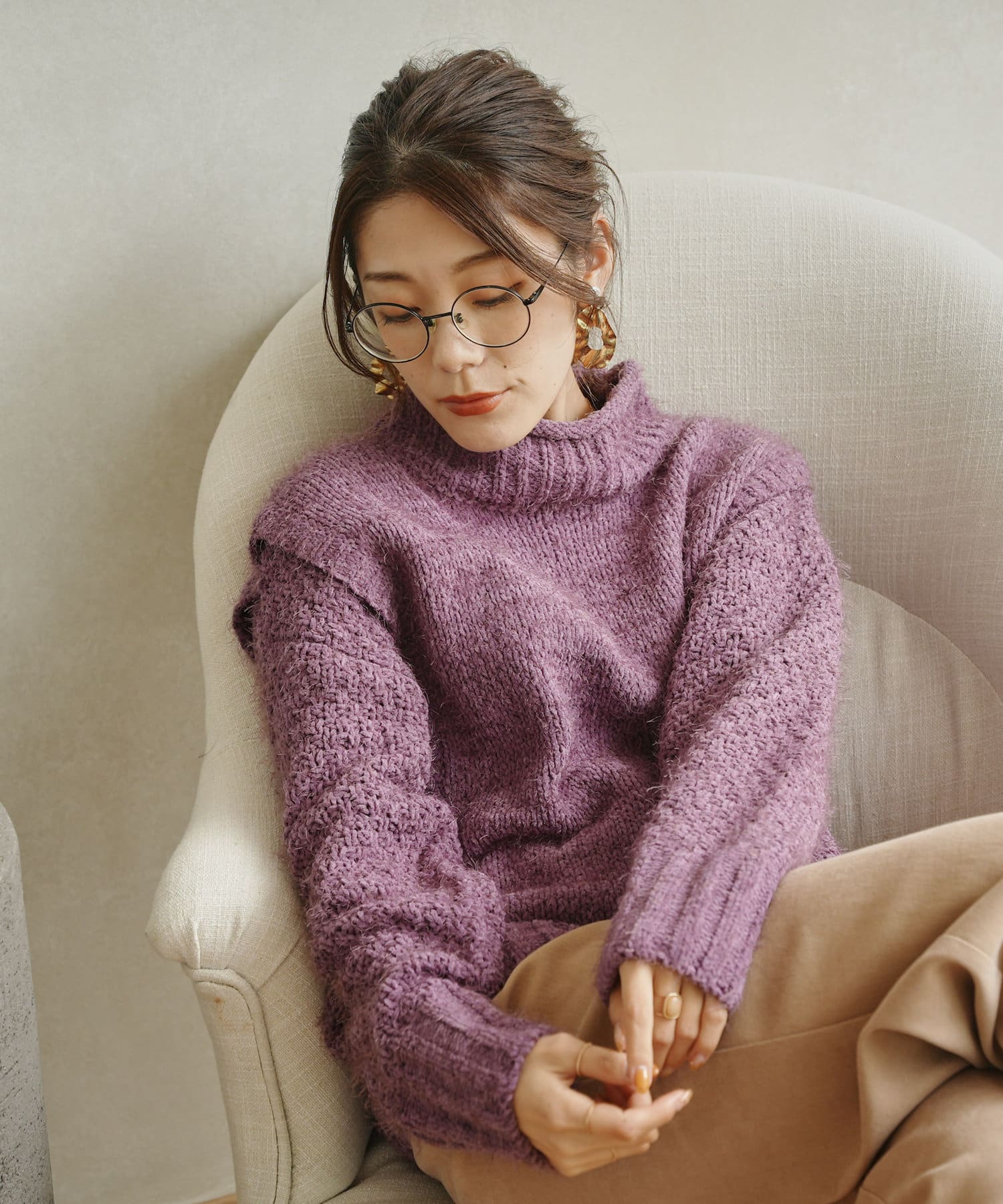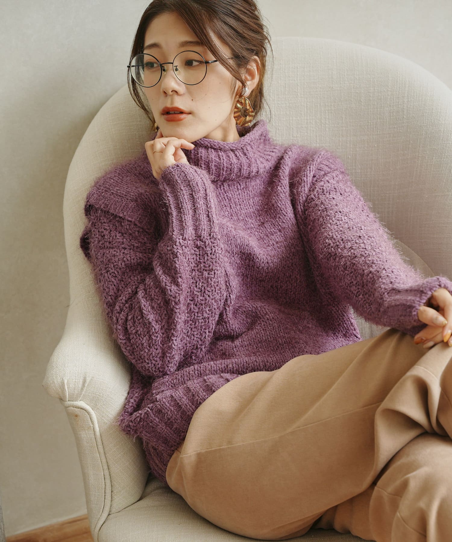 ・ボトルネックのニットで首元も詰まりすぎないのでタートルネックが苦手な方も