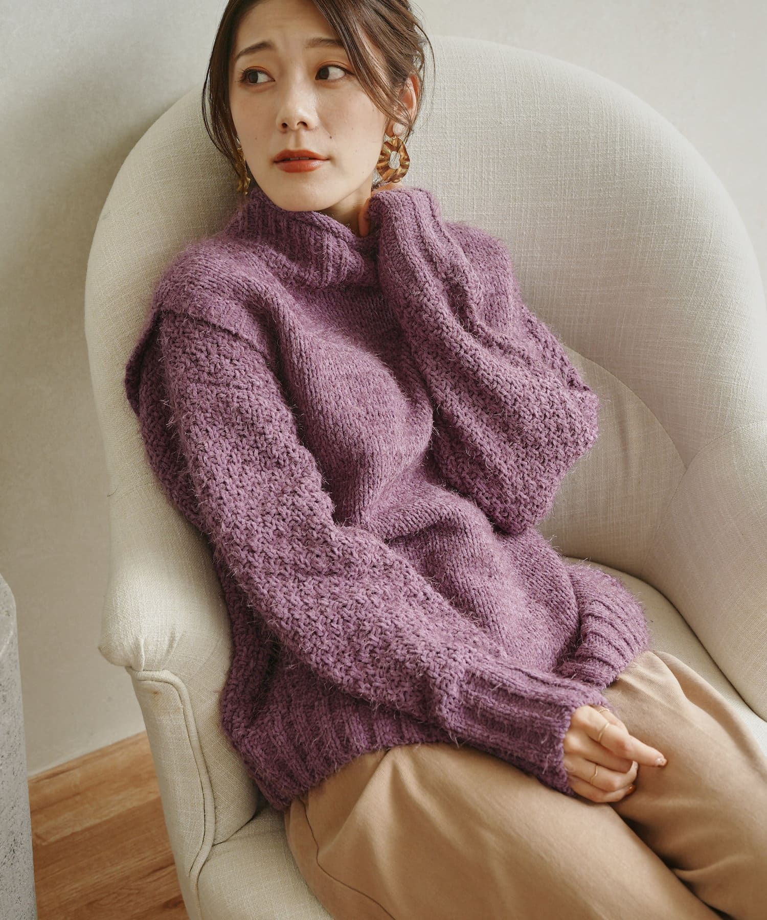 バスケット編みが秋冬の気分を高めてくれるデザインニット