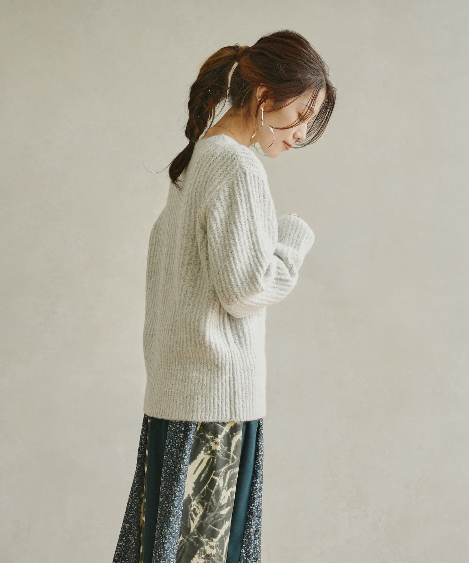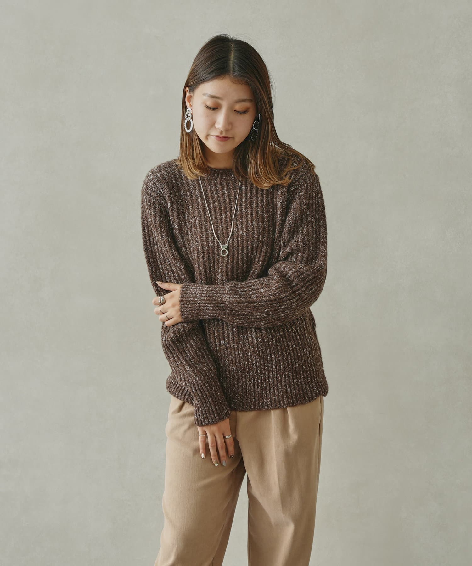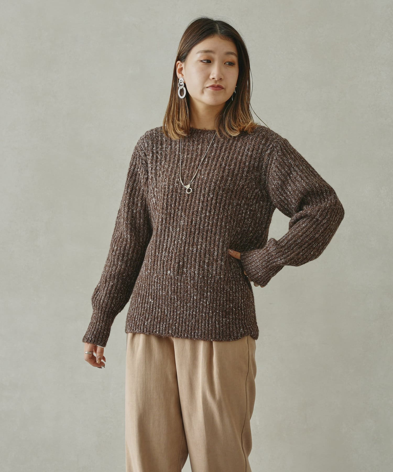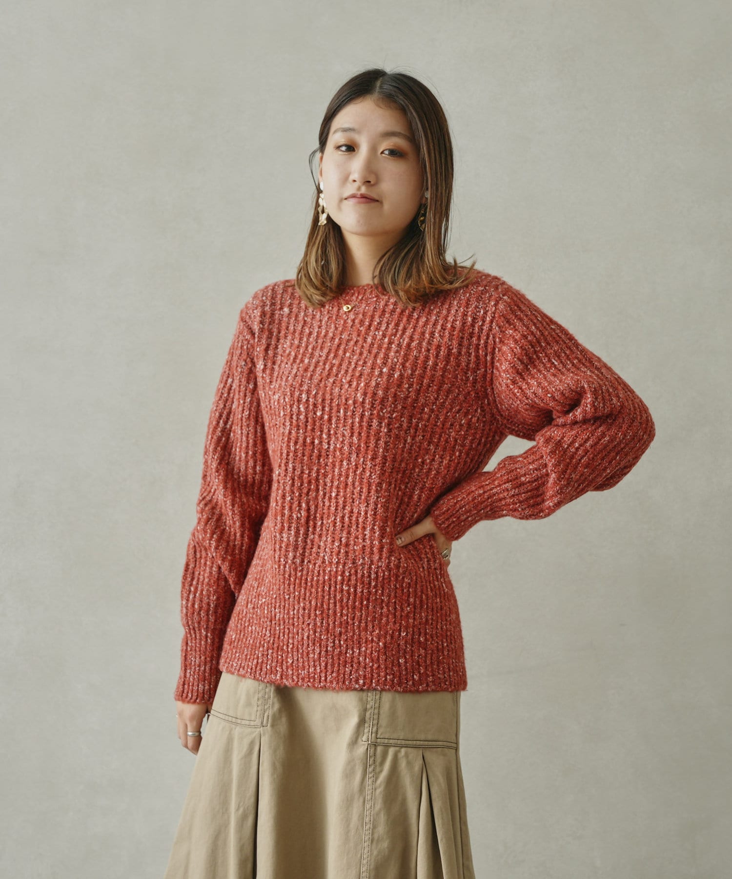 ブークレの糸を仕様した秋冬らしい暖か見えするニットプルオーバー