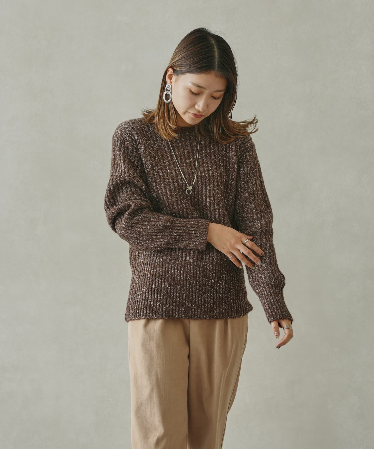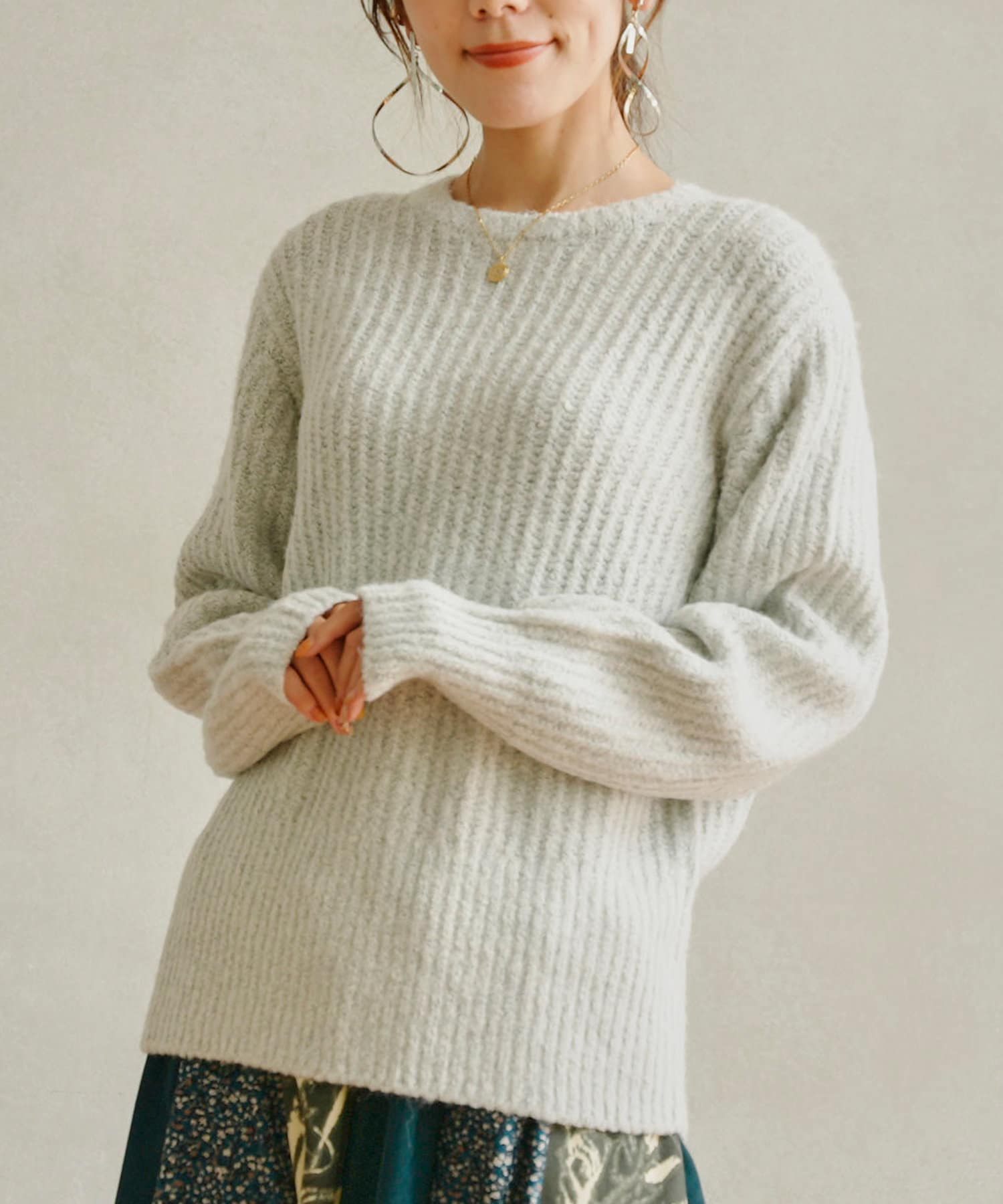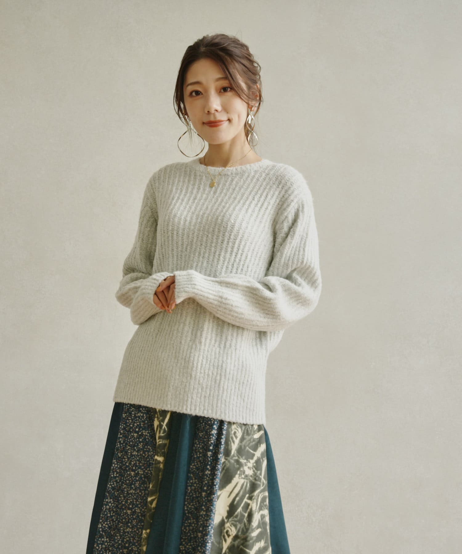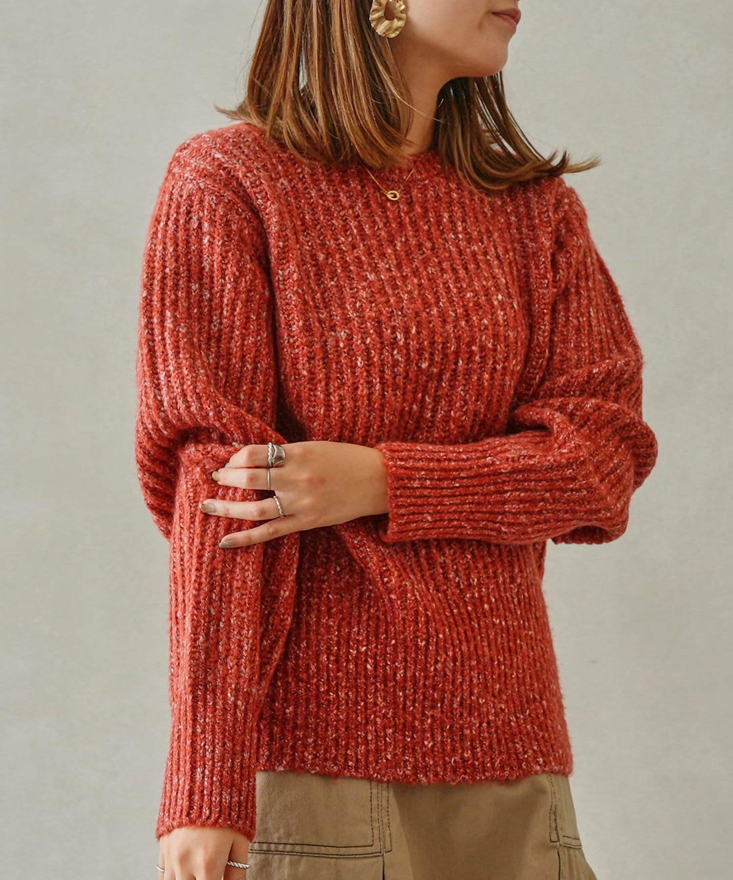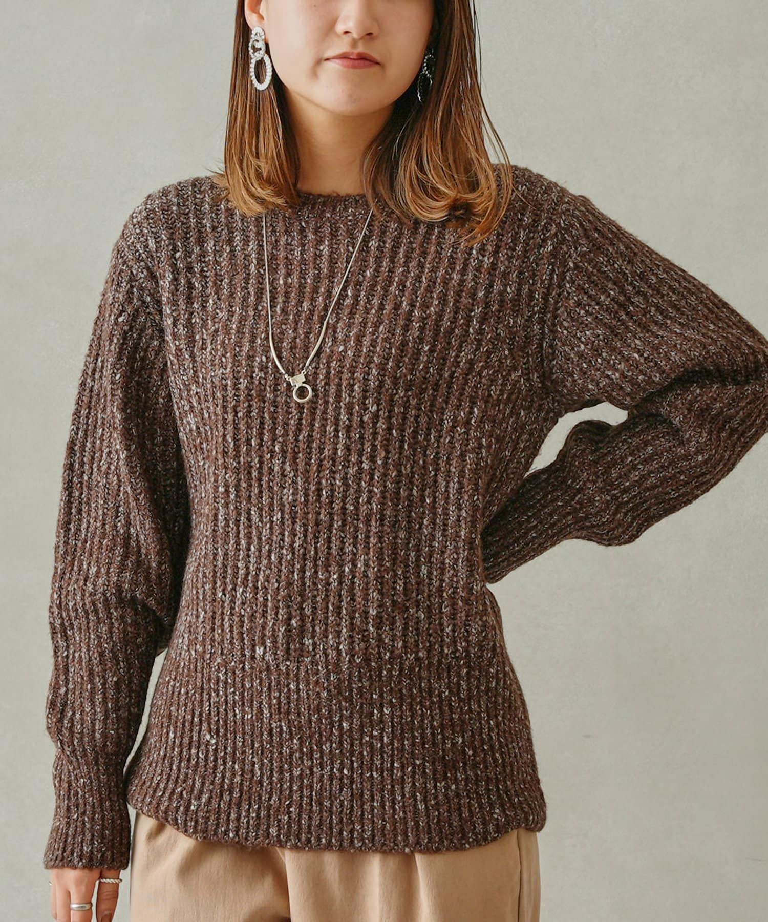 ブークレの糸を仕様した秋冬らしい暖か見えするニットプルオーバー