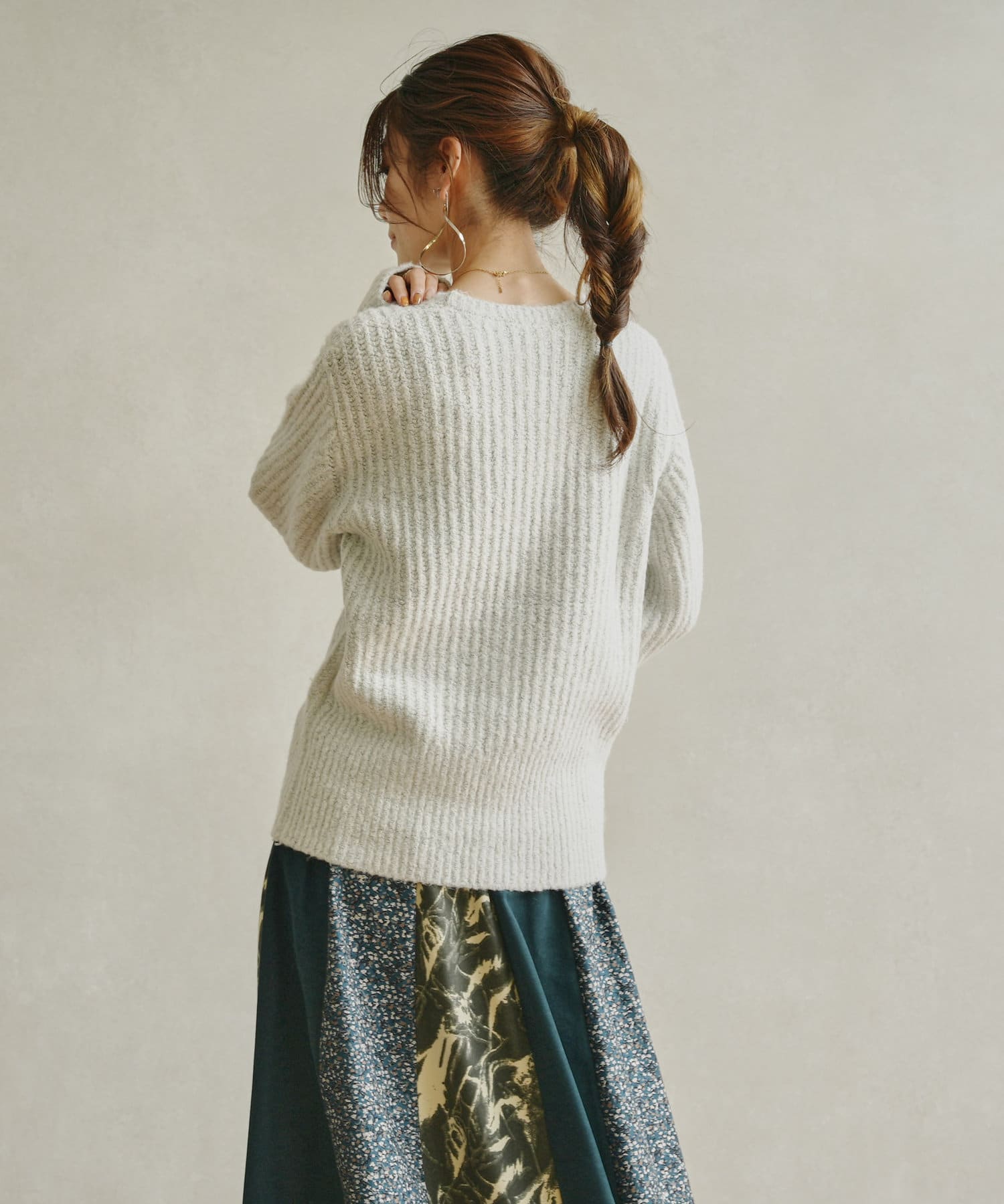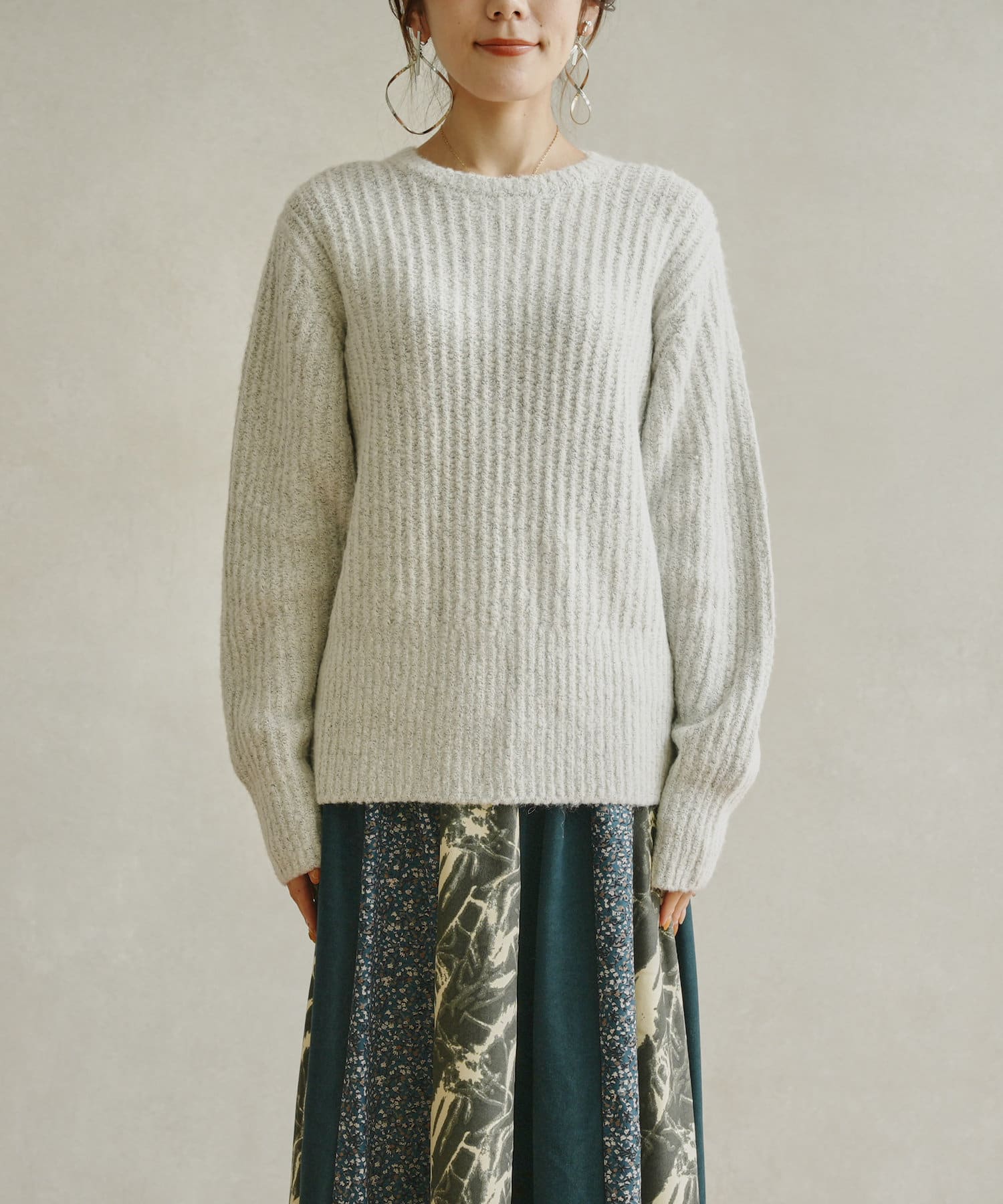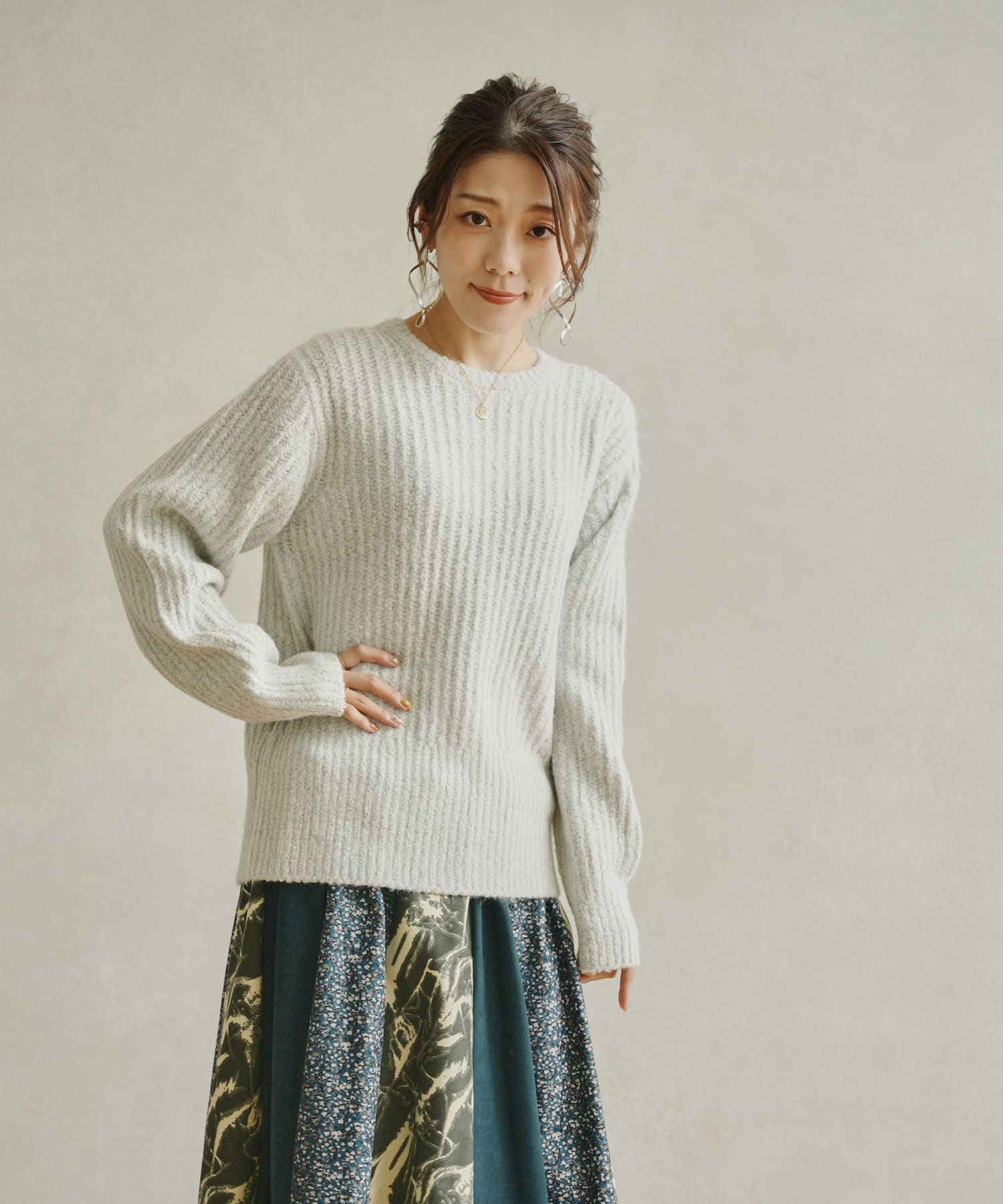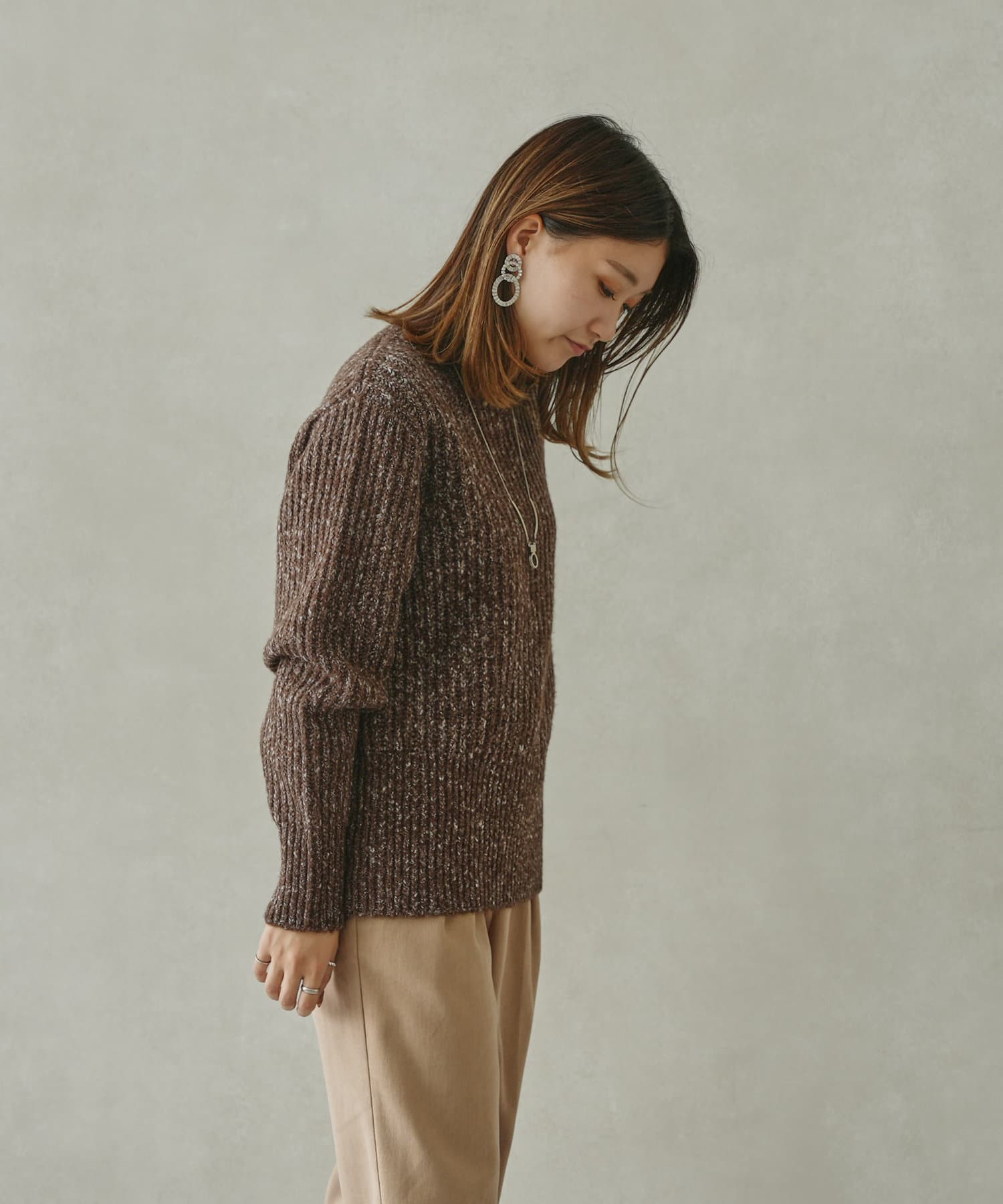 ブークレの糸を仕様した秋冬らしい暖か見えするニットプルオーバー