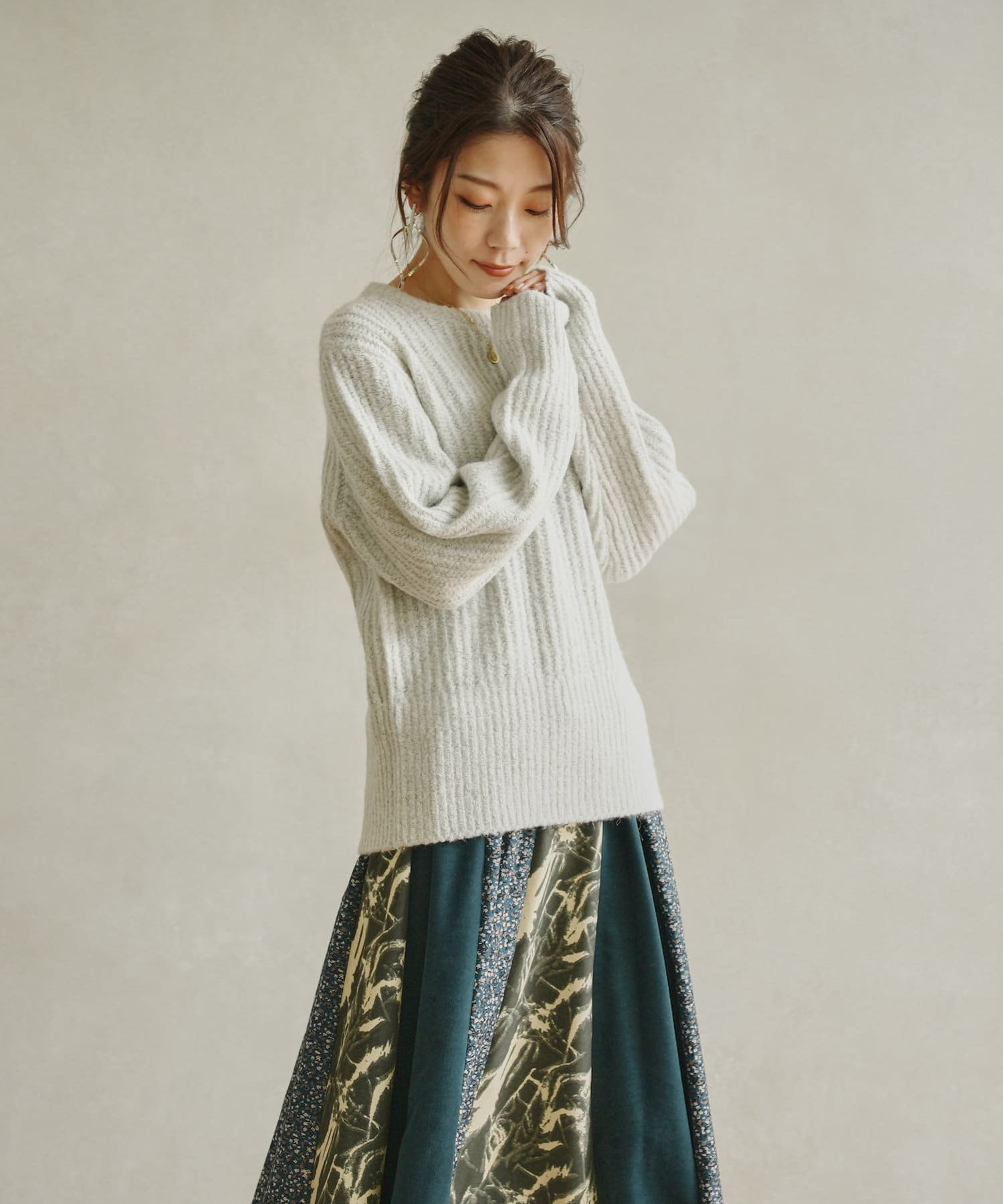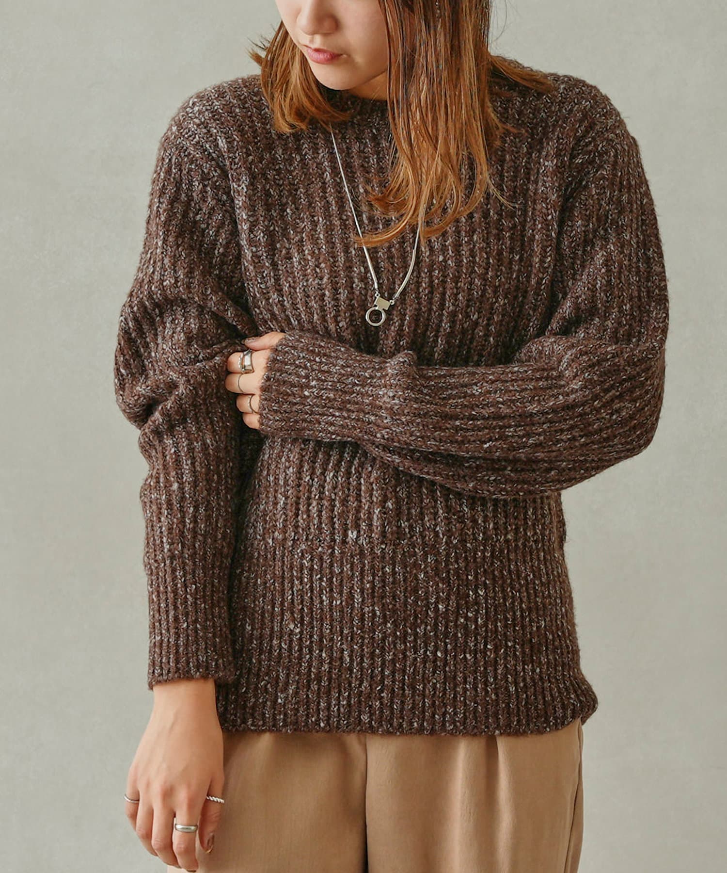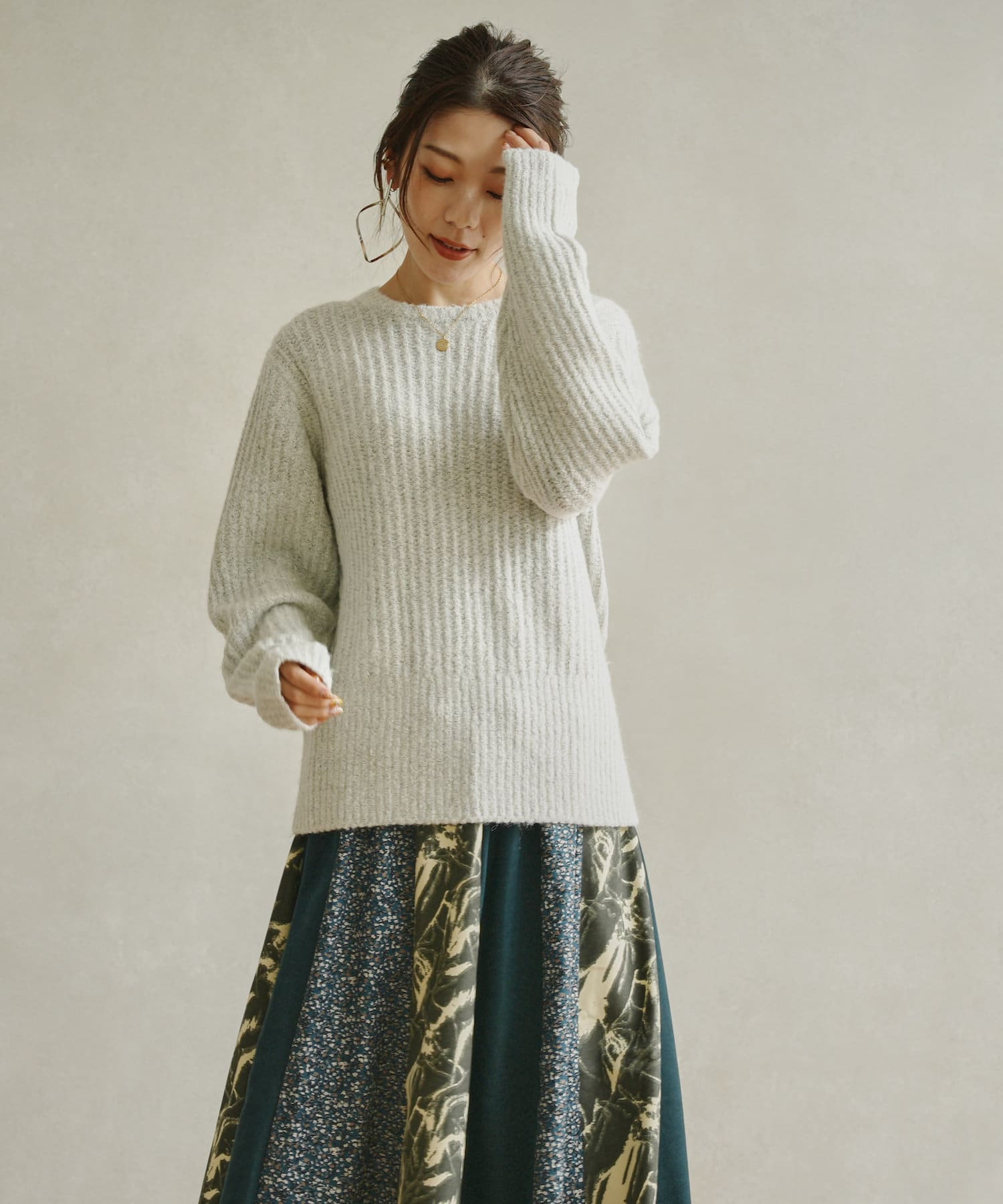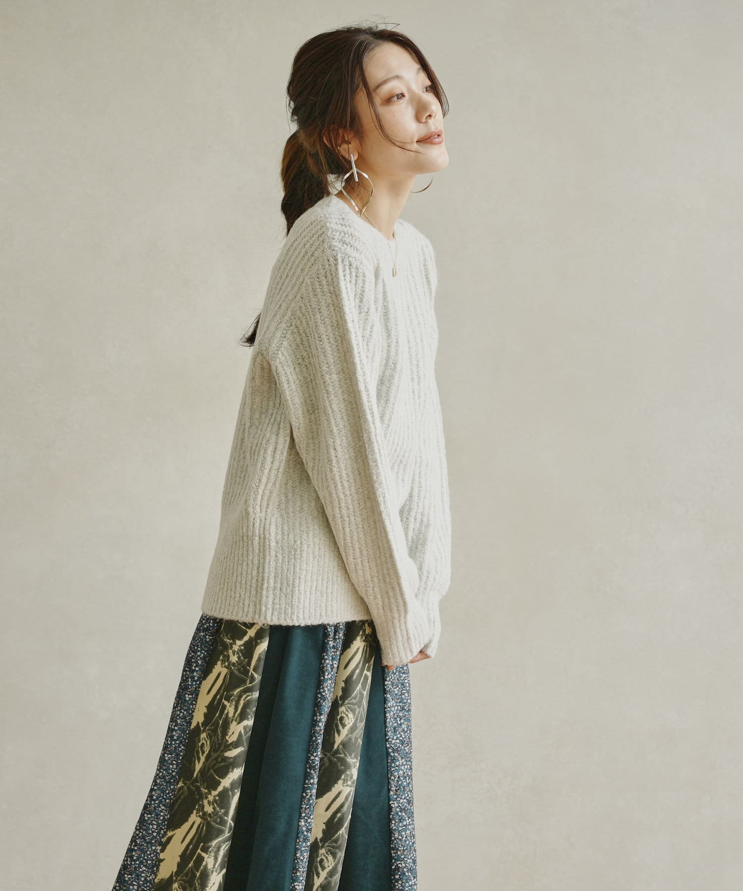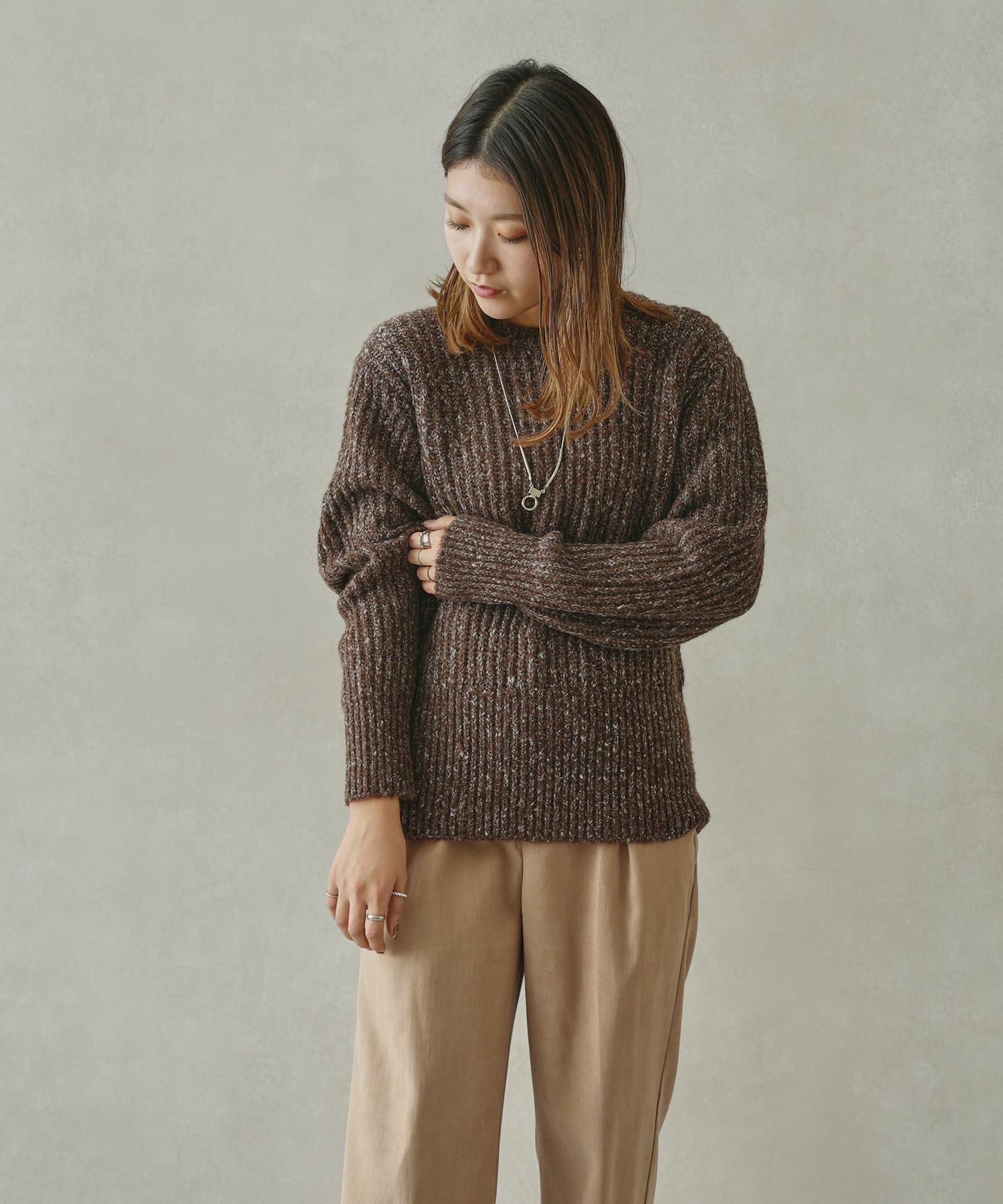 ブークレの糸を仕様した秋冬らしい暖か見えするニットプルオーバー