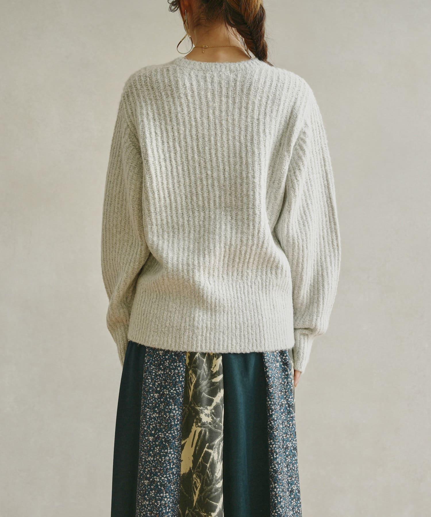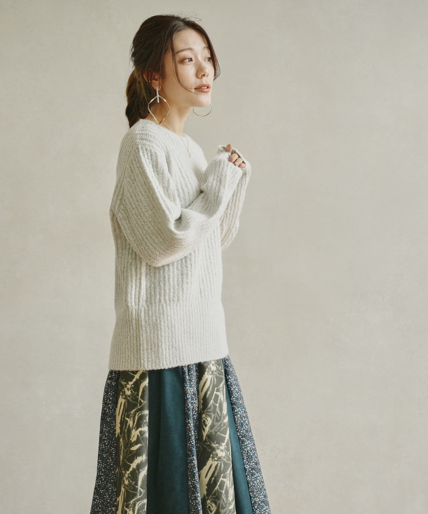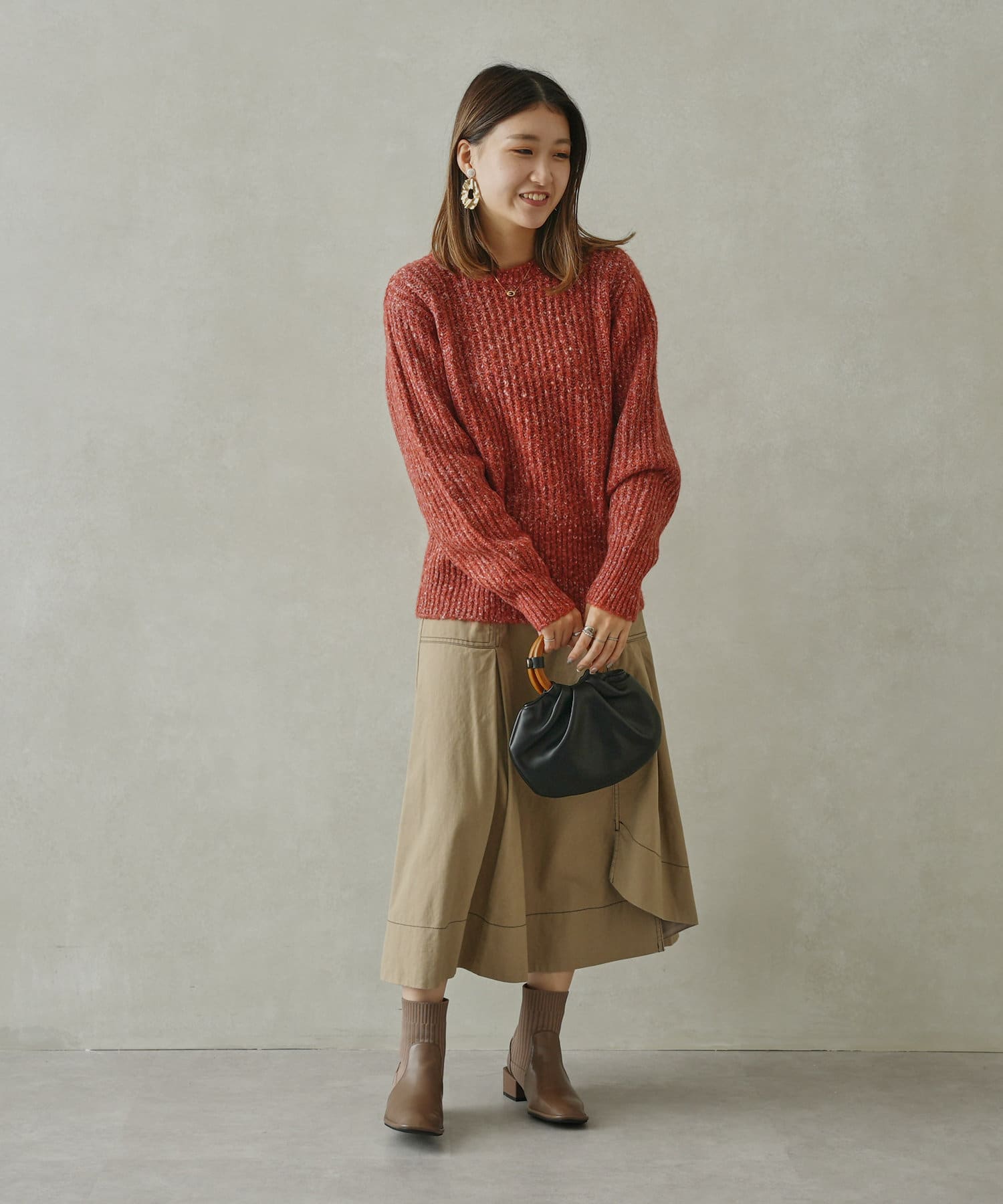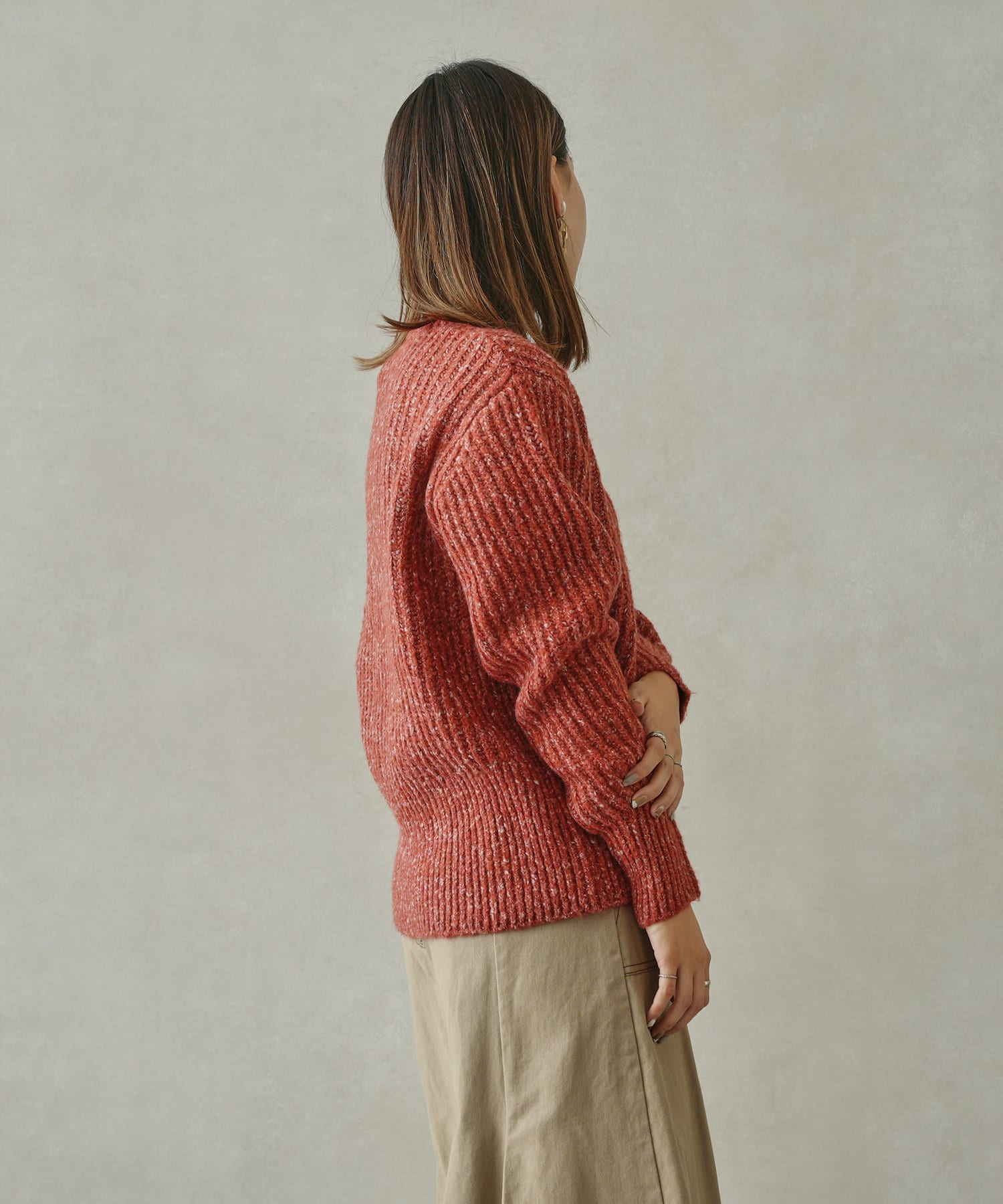 ブークレの糸を仕様した秋冬らしい暖か見えするニットプルオーバー