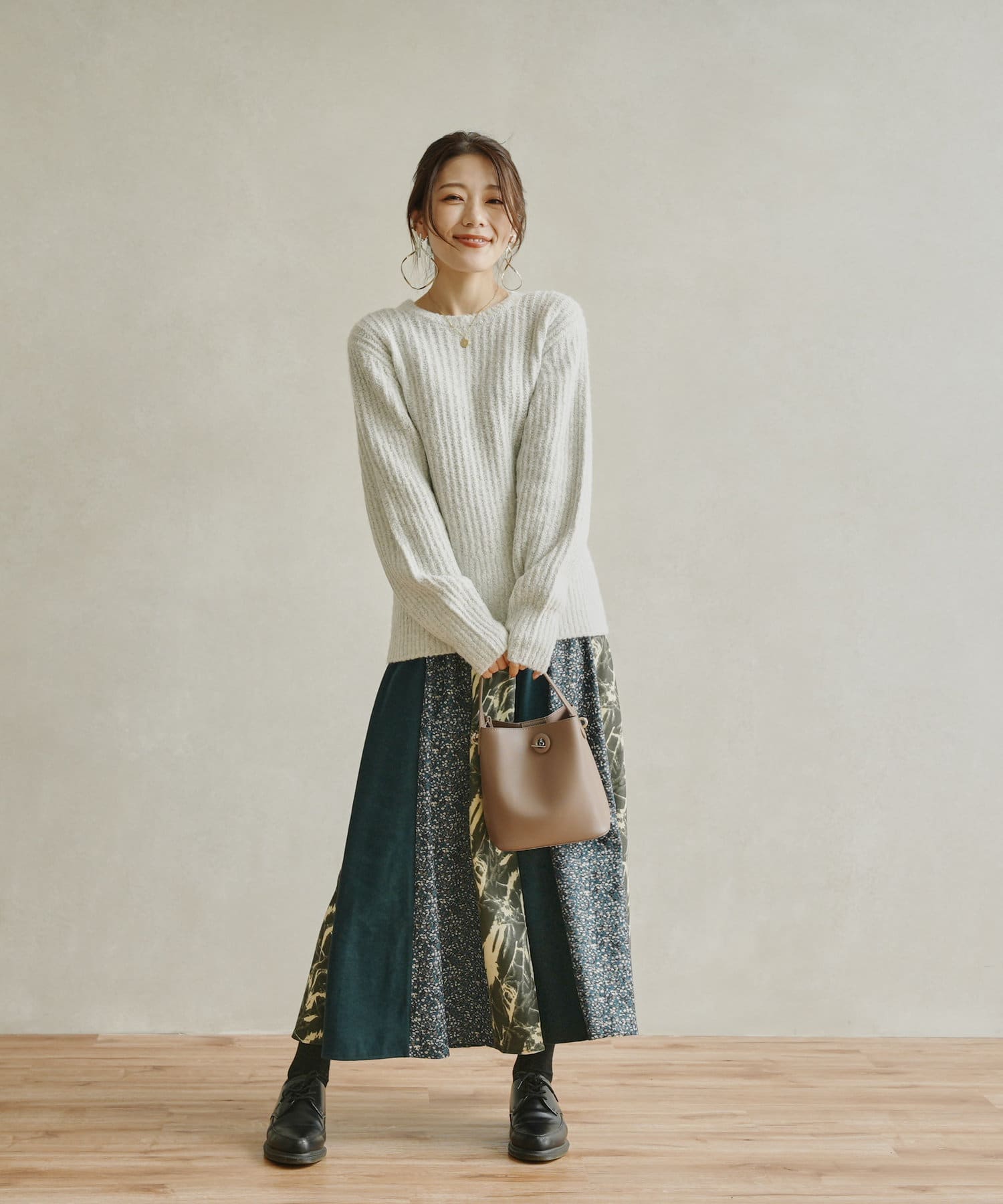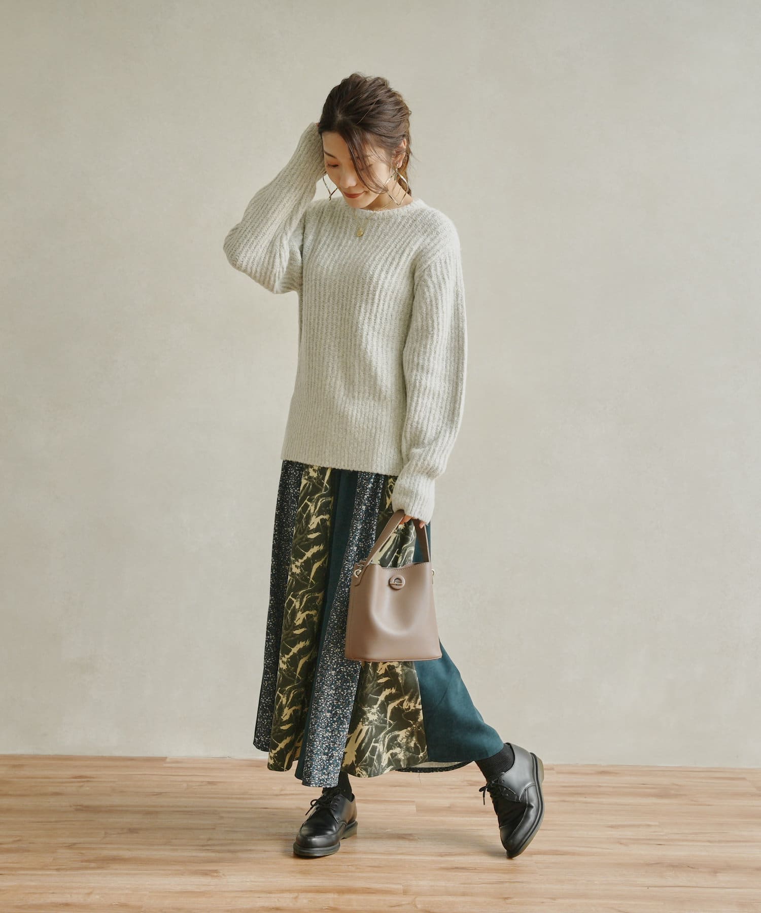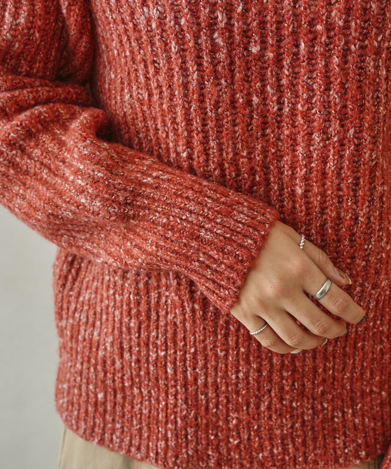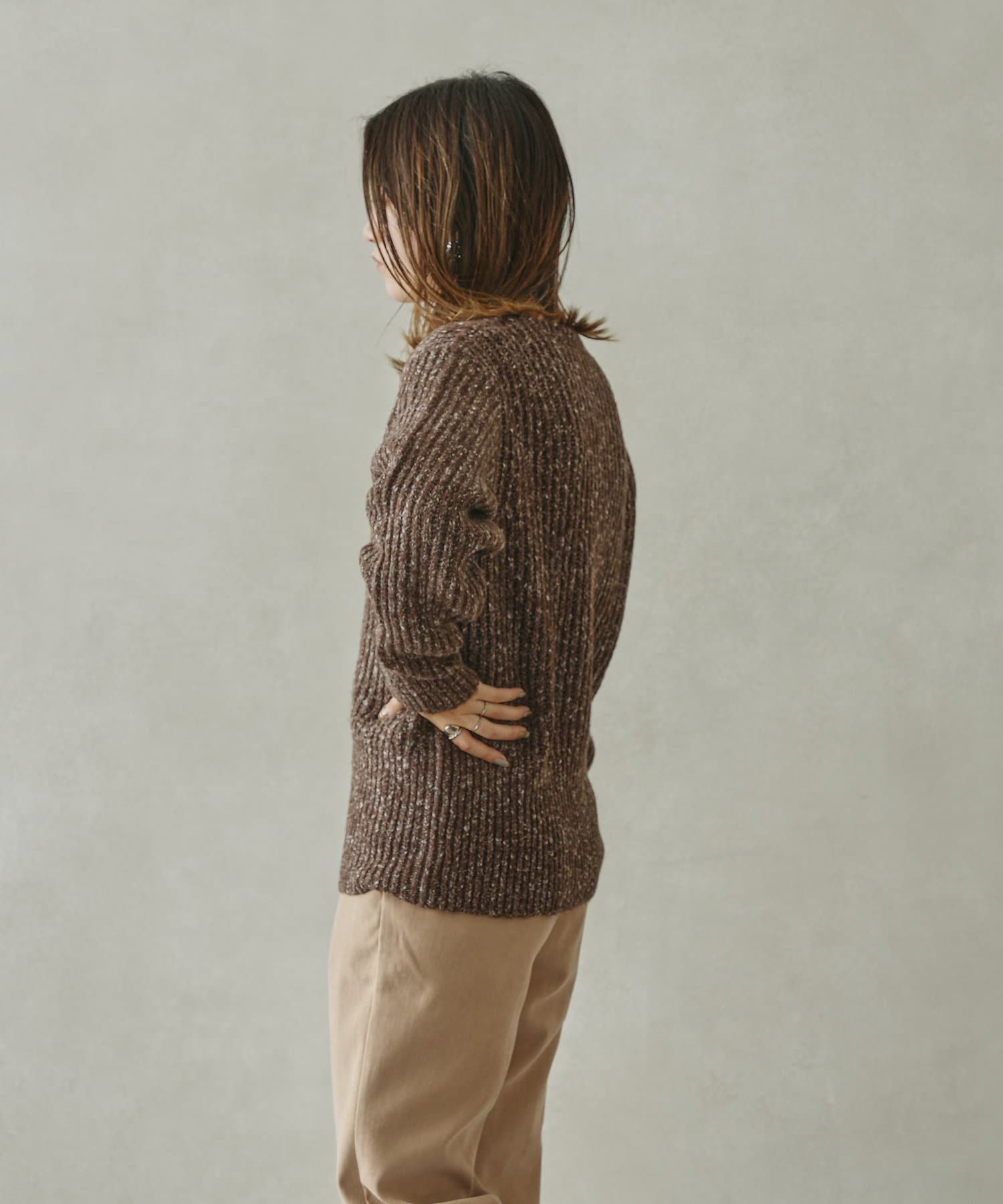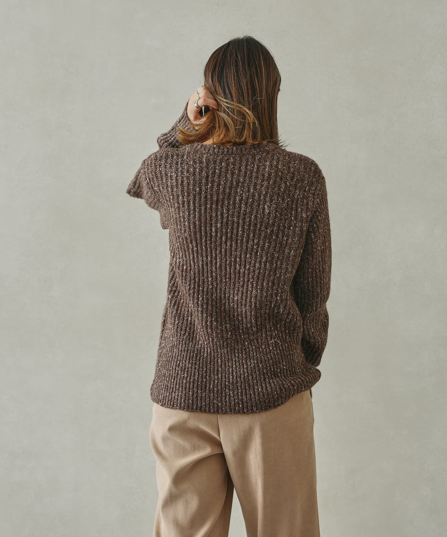 ブークレの糸を仕様した秋冬らしい暖か見えするニットプルオーバー