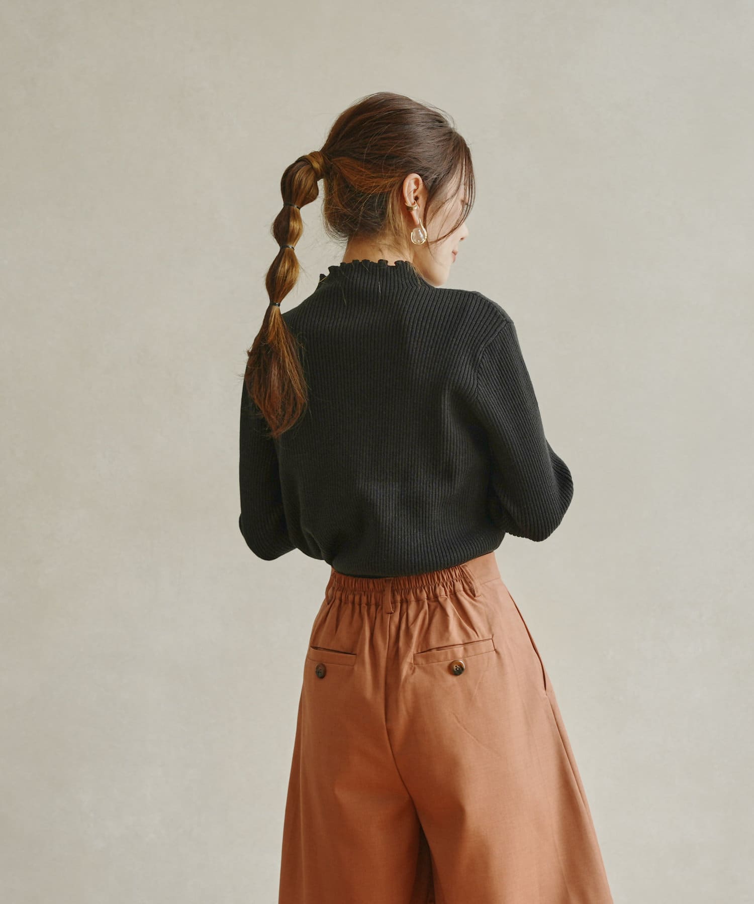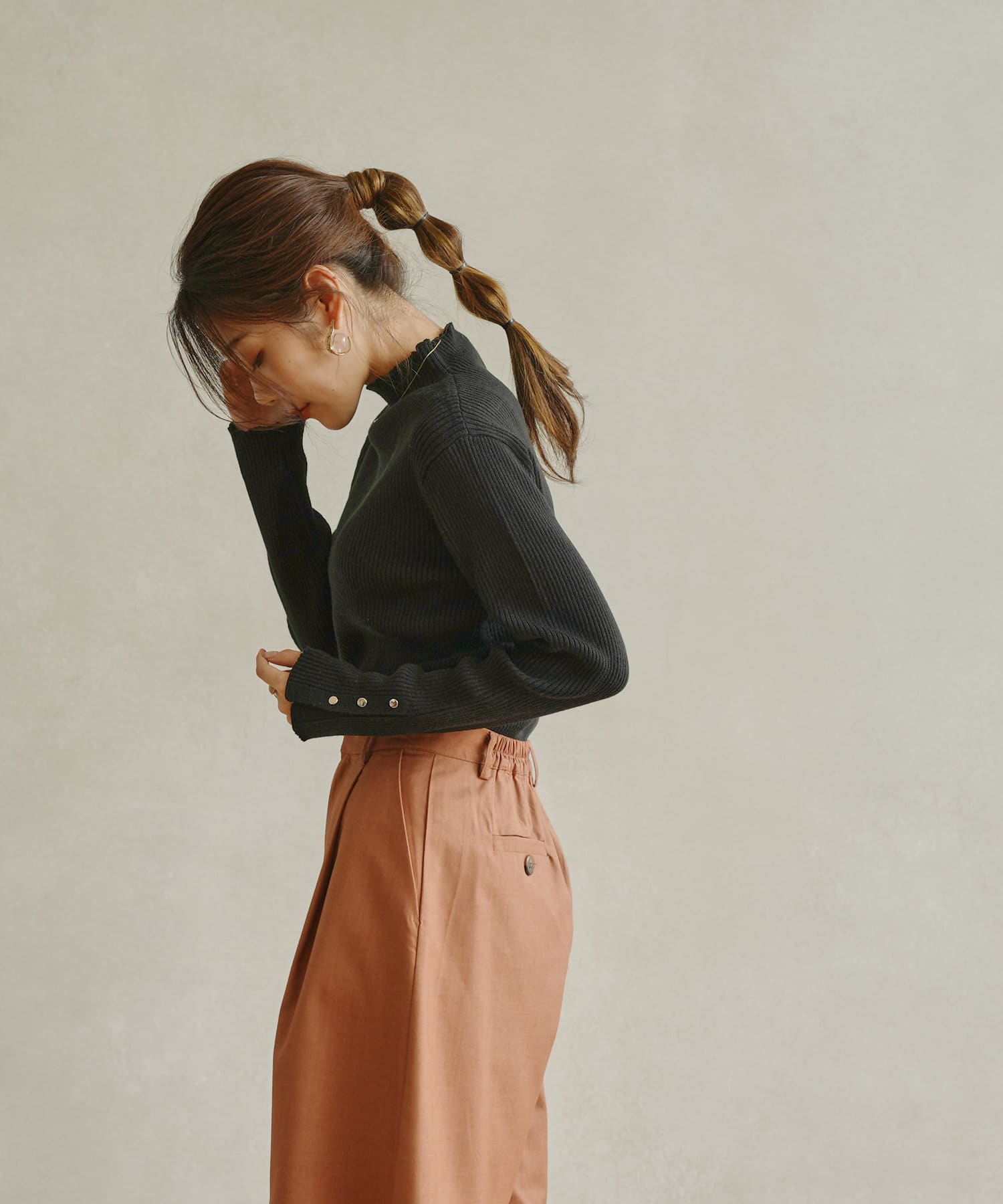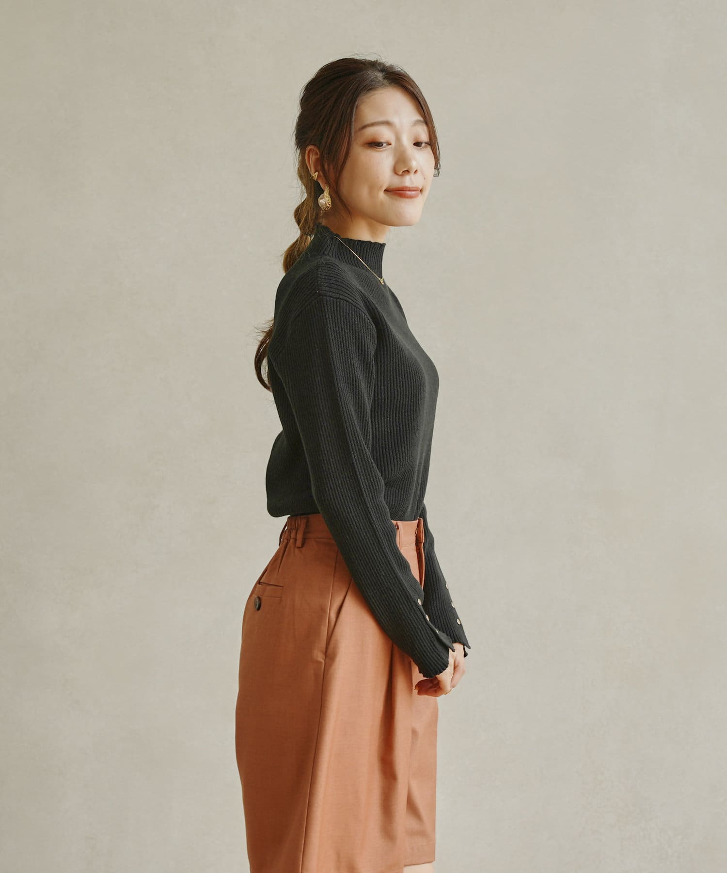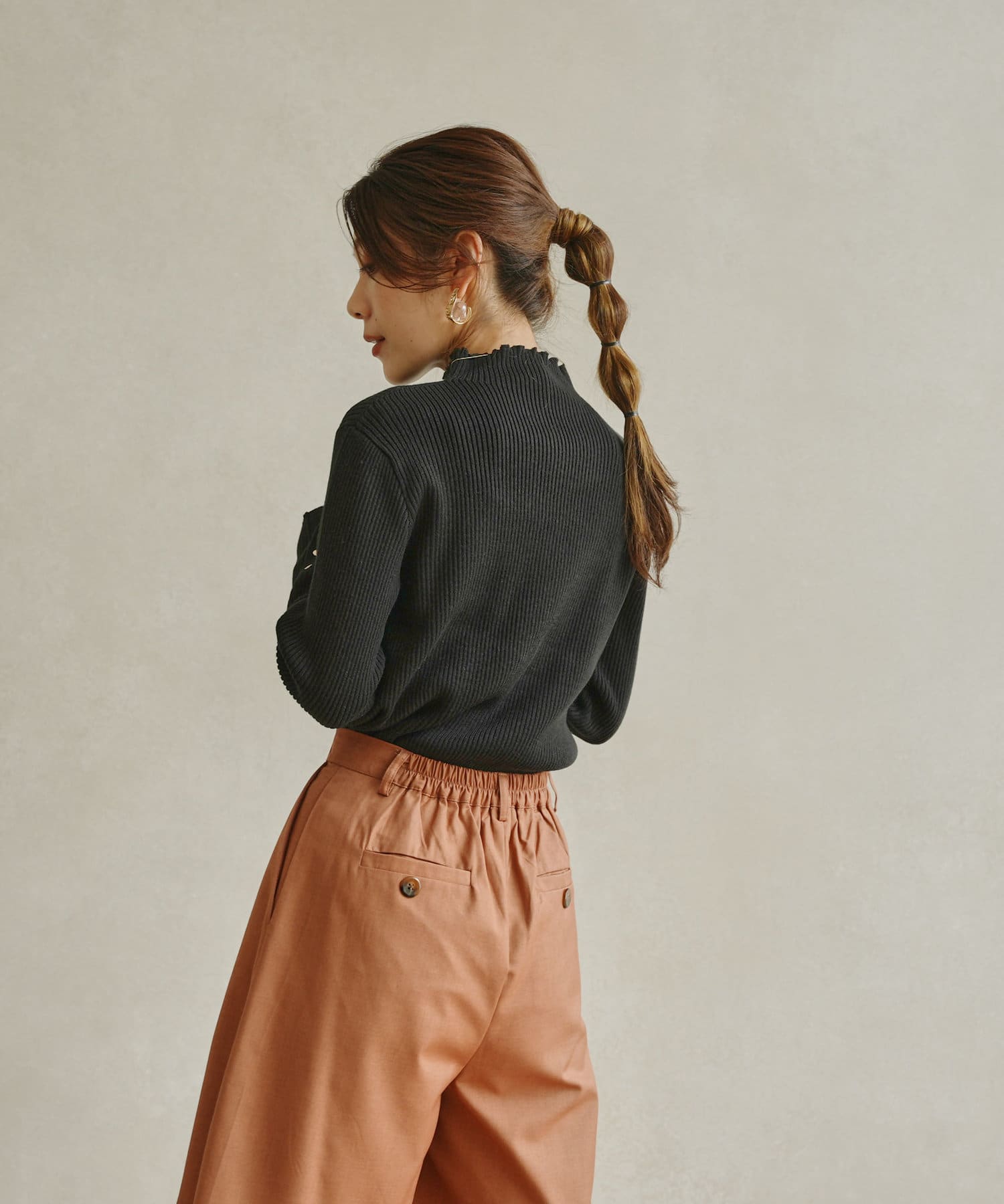 ・メロ―ネックの首元。詰まりすぎないのでタートルネックが苦手な方も使いやすいネックデザイン